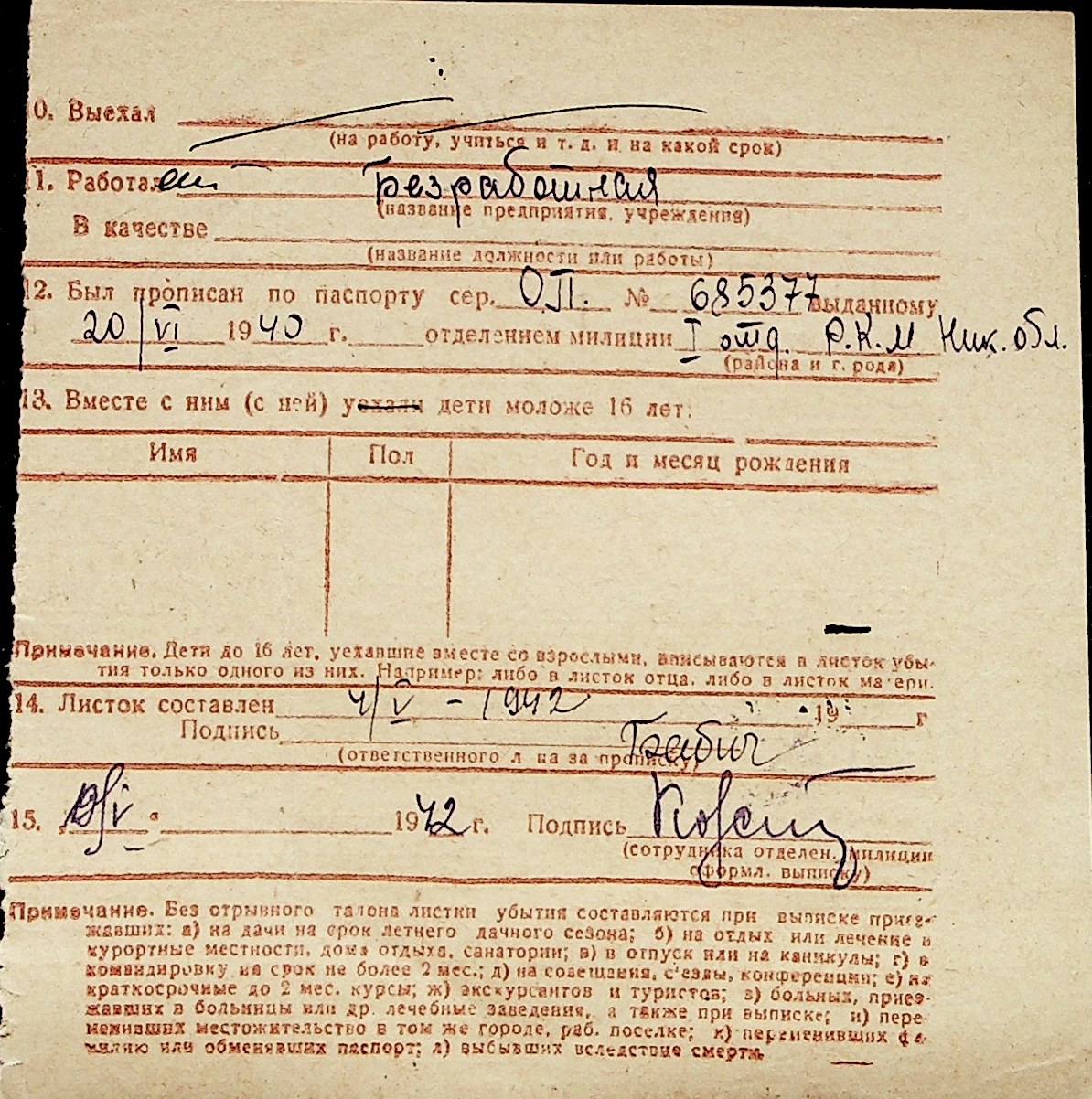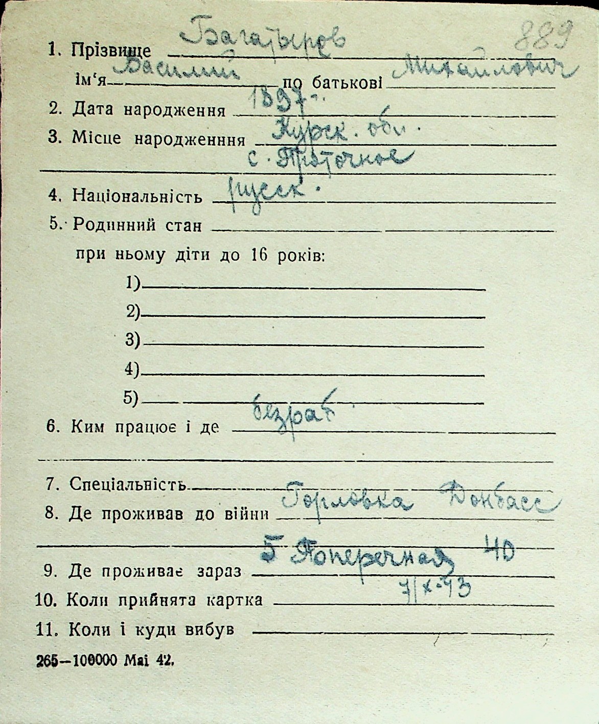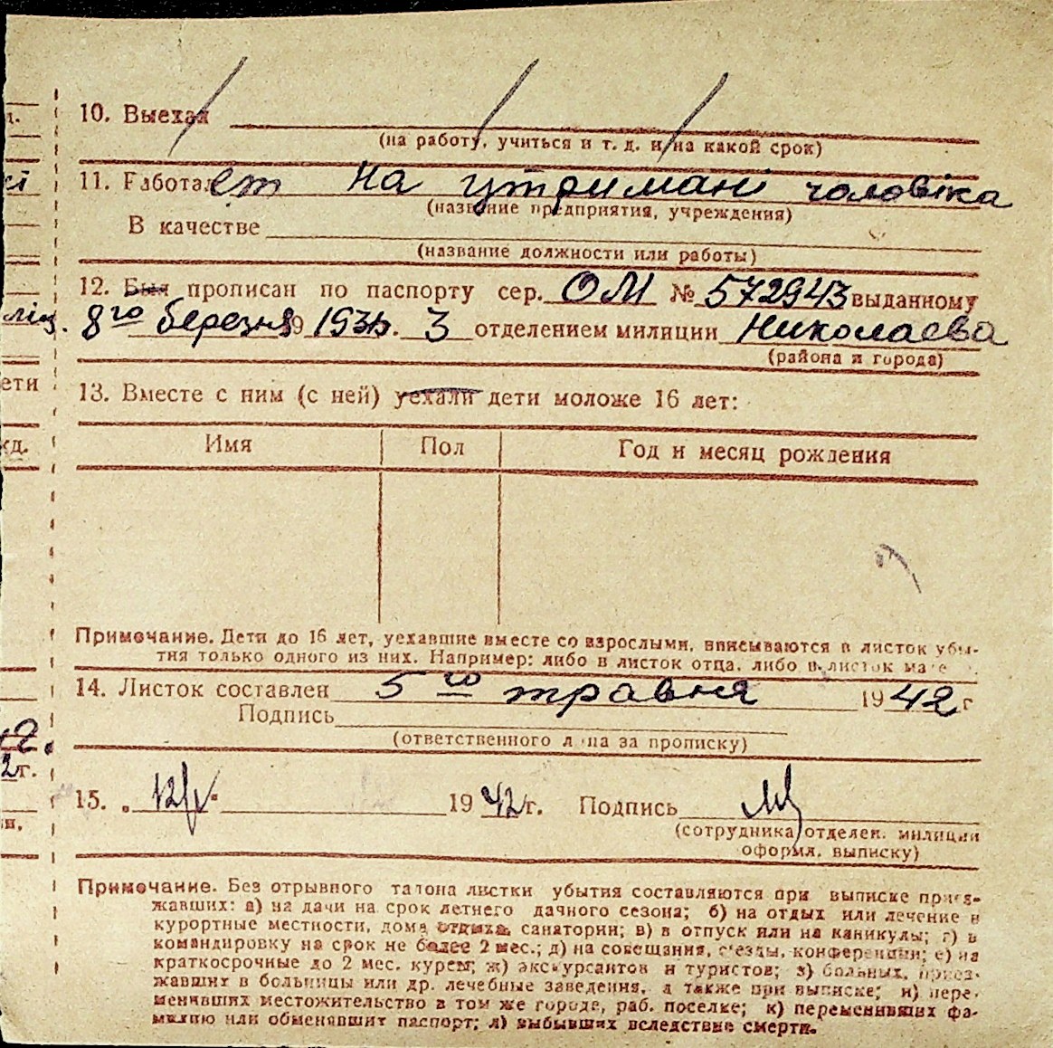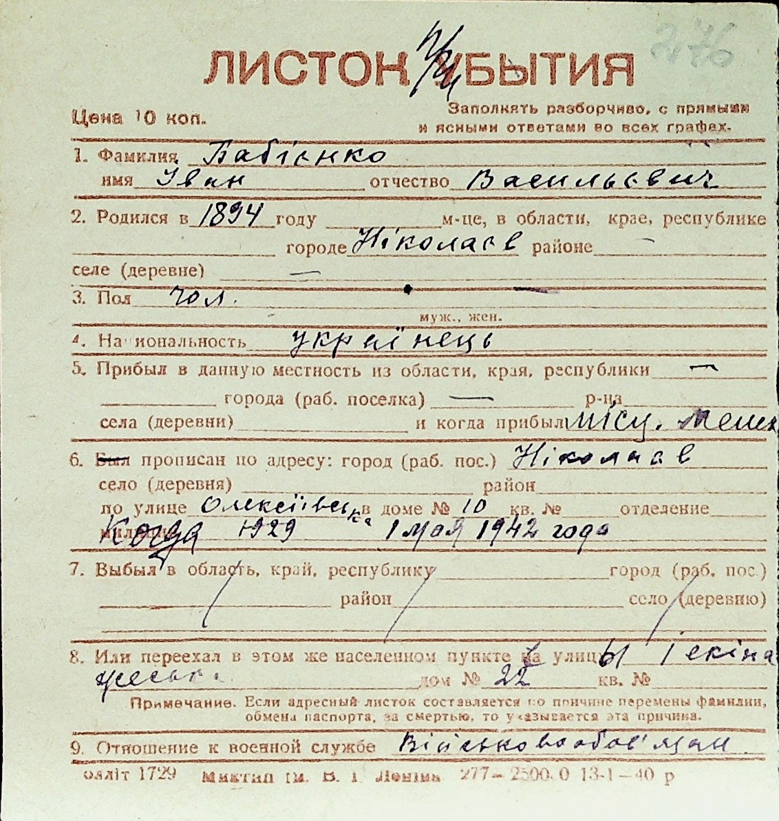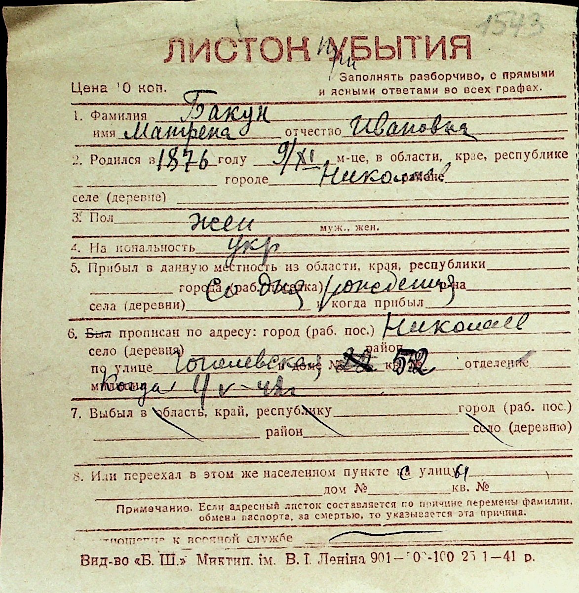 ◦ ◦ Перелік карток на осіб, які мешкали у м. Миколаїв у період окупації 1941–1944 років
