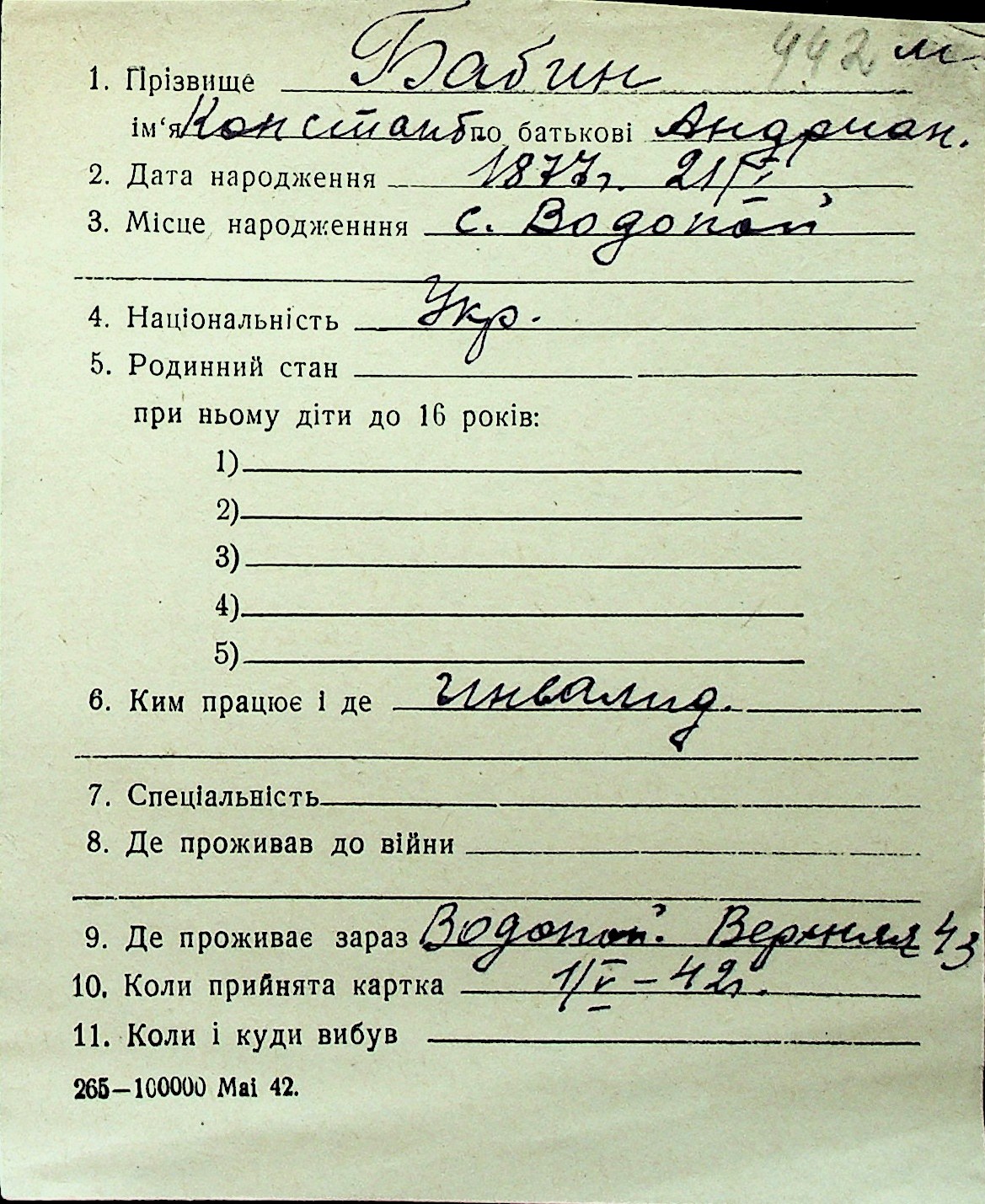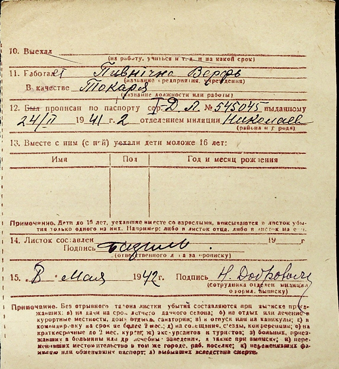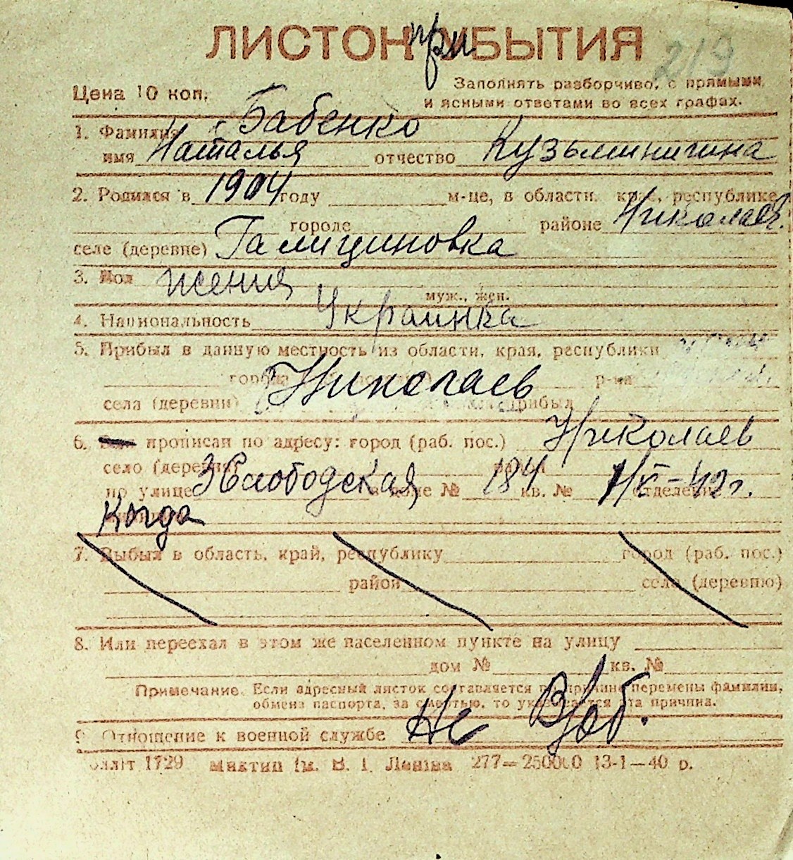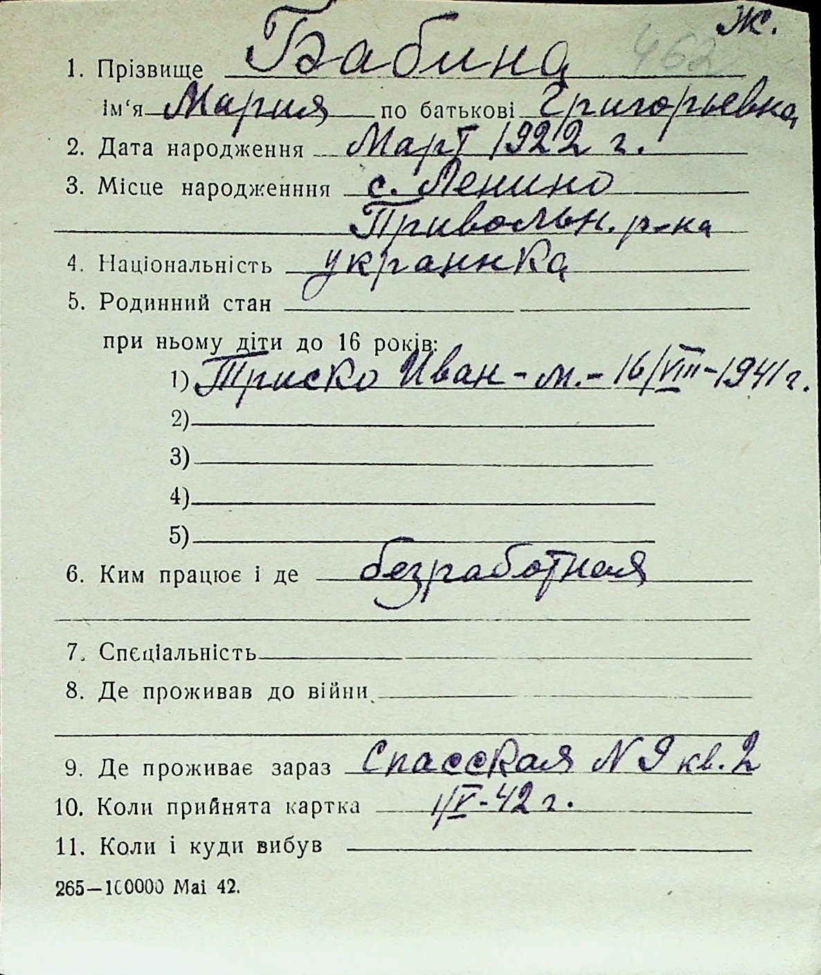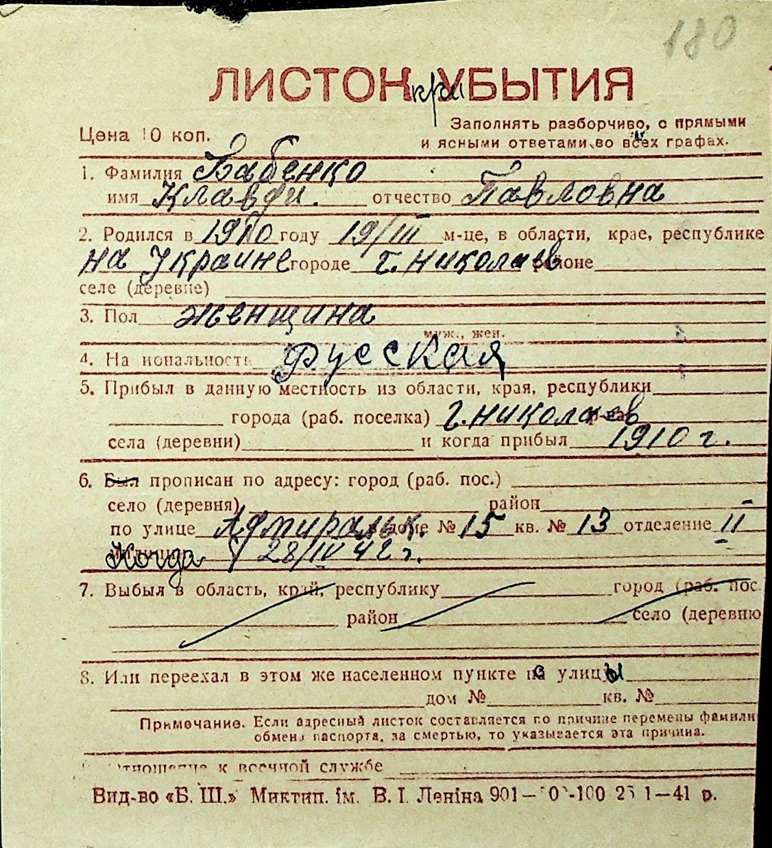 ◦ ◦ Перелік карток на осіб, які мешкали у м. Миколаїв у період окупації 1941–1944 років