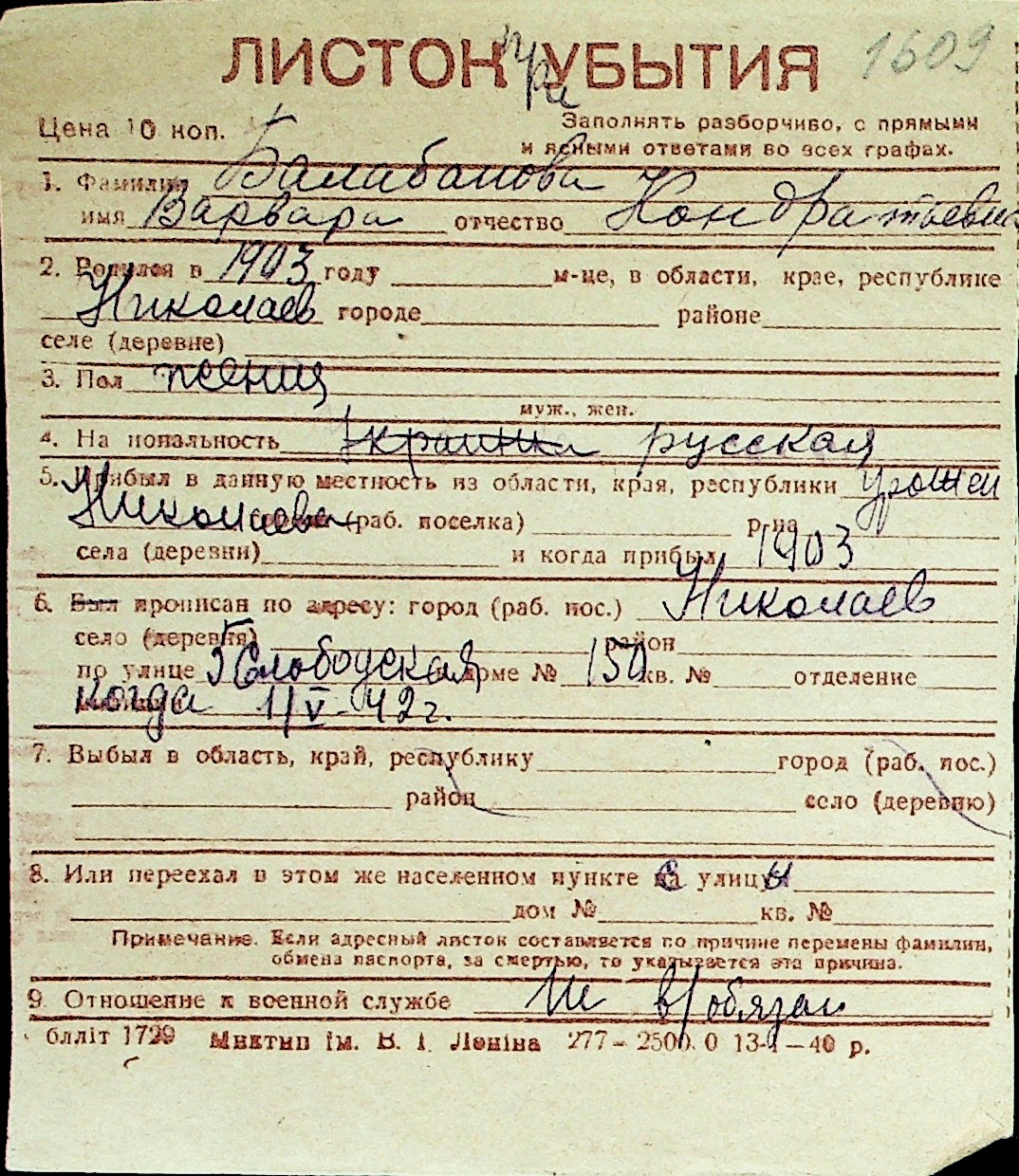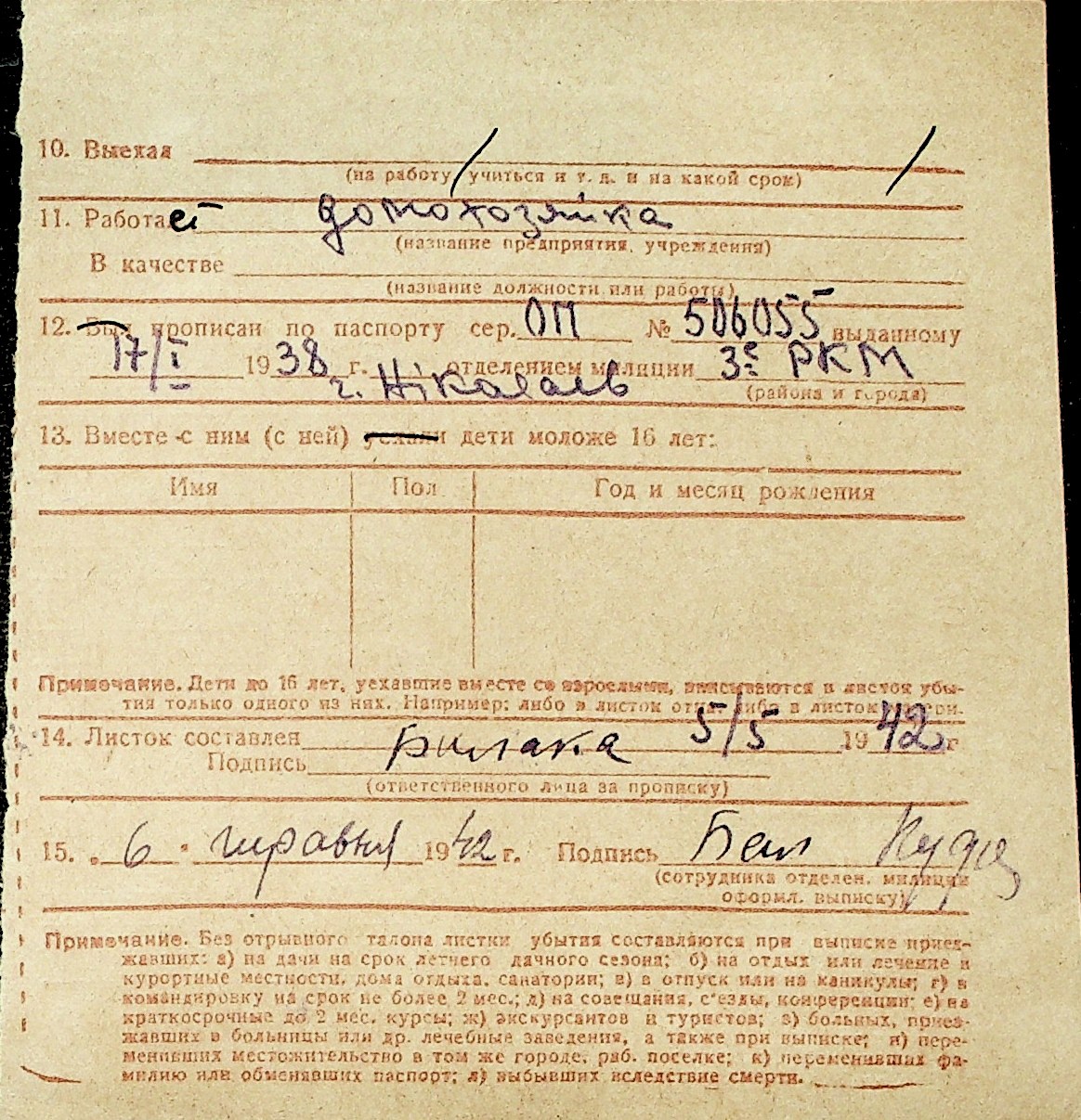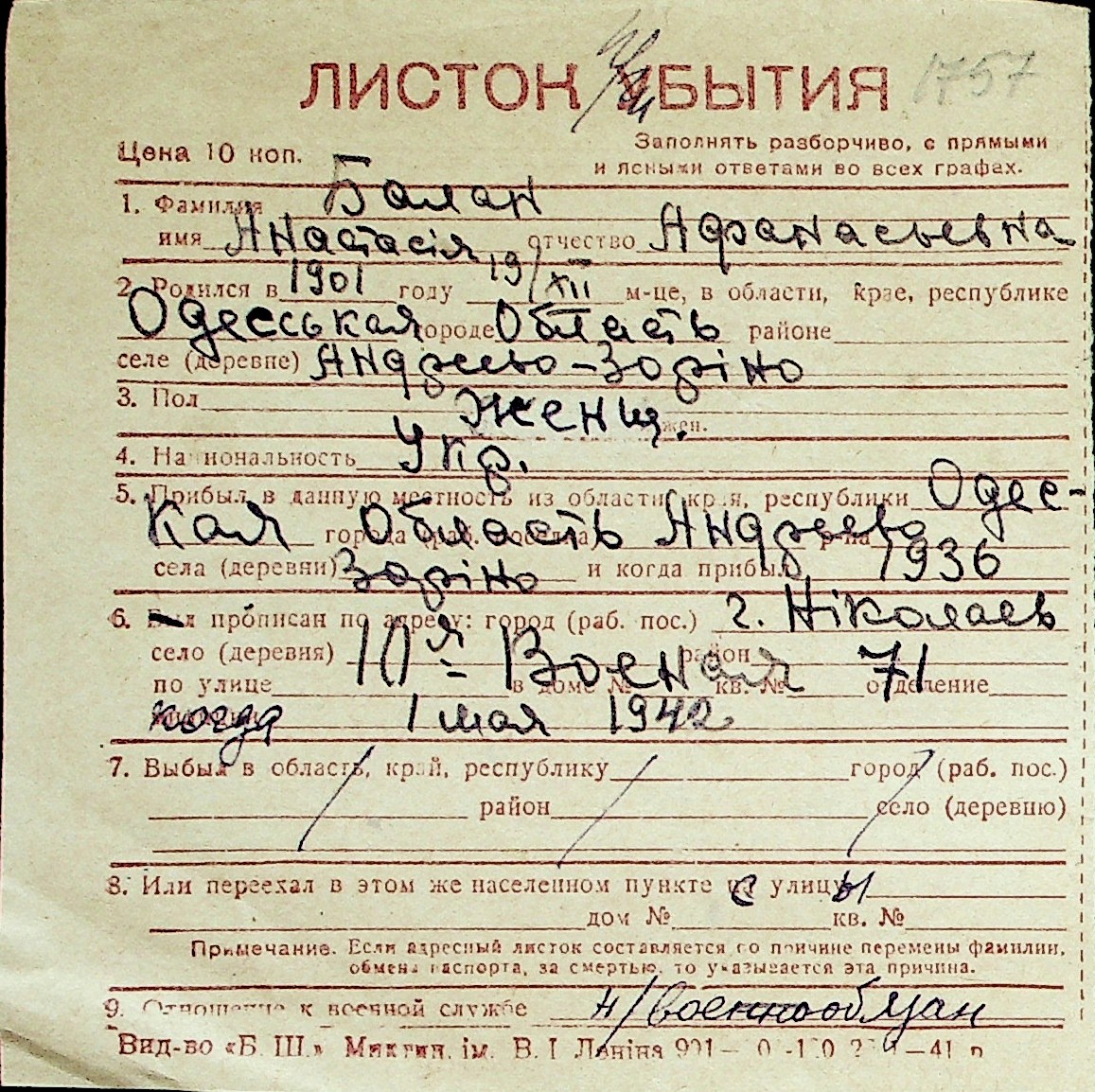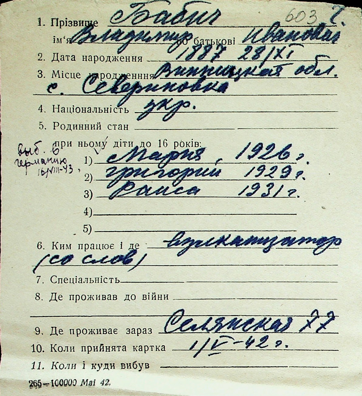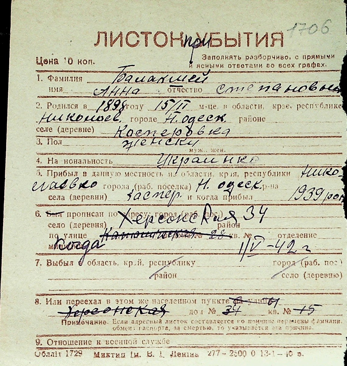 ◦ ◦ Перелік карток на осіб, які мешкали у м. Миколаїв у період окупації 1941–1944 років