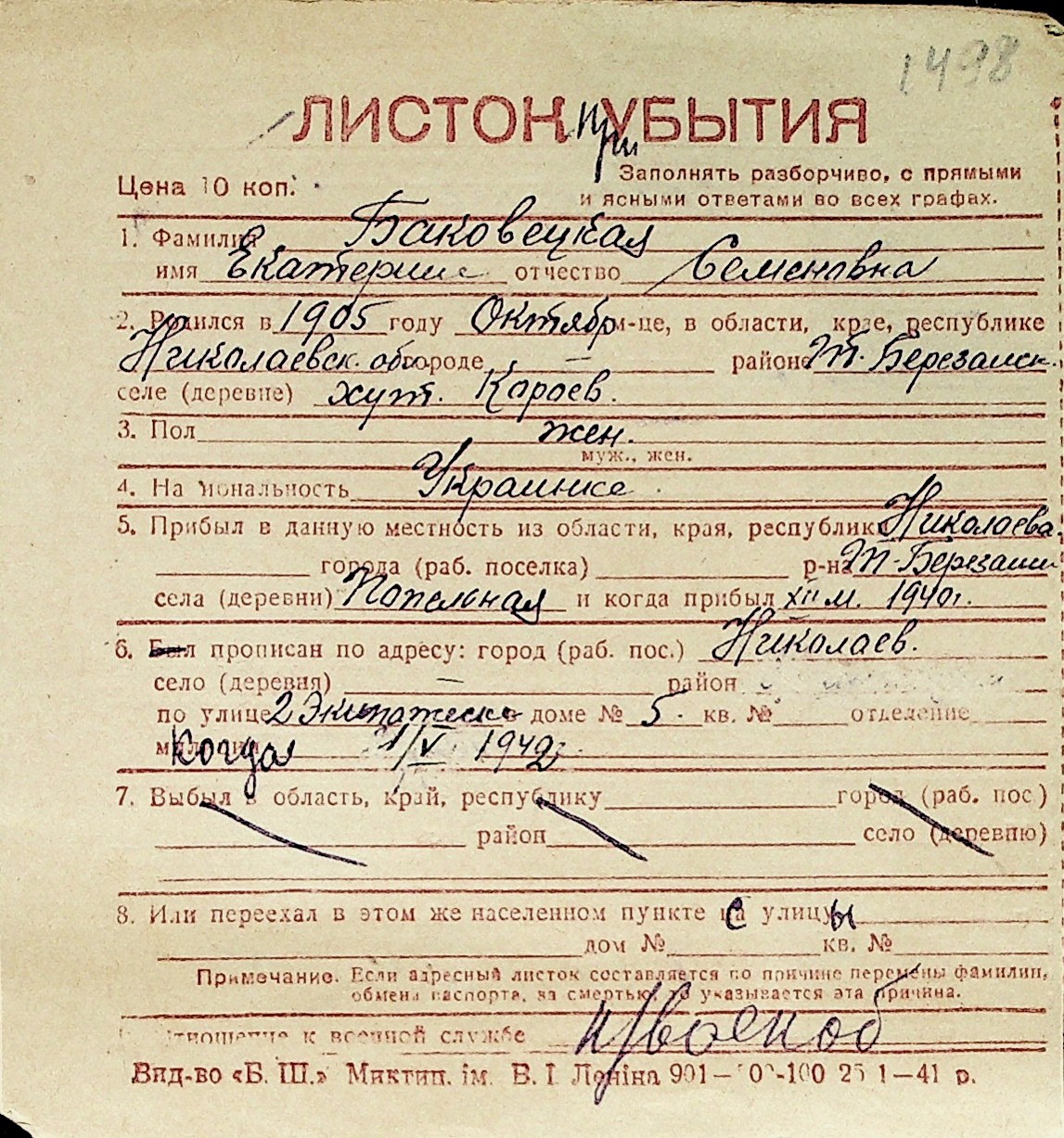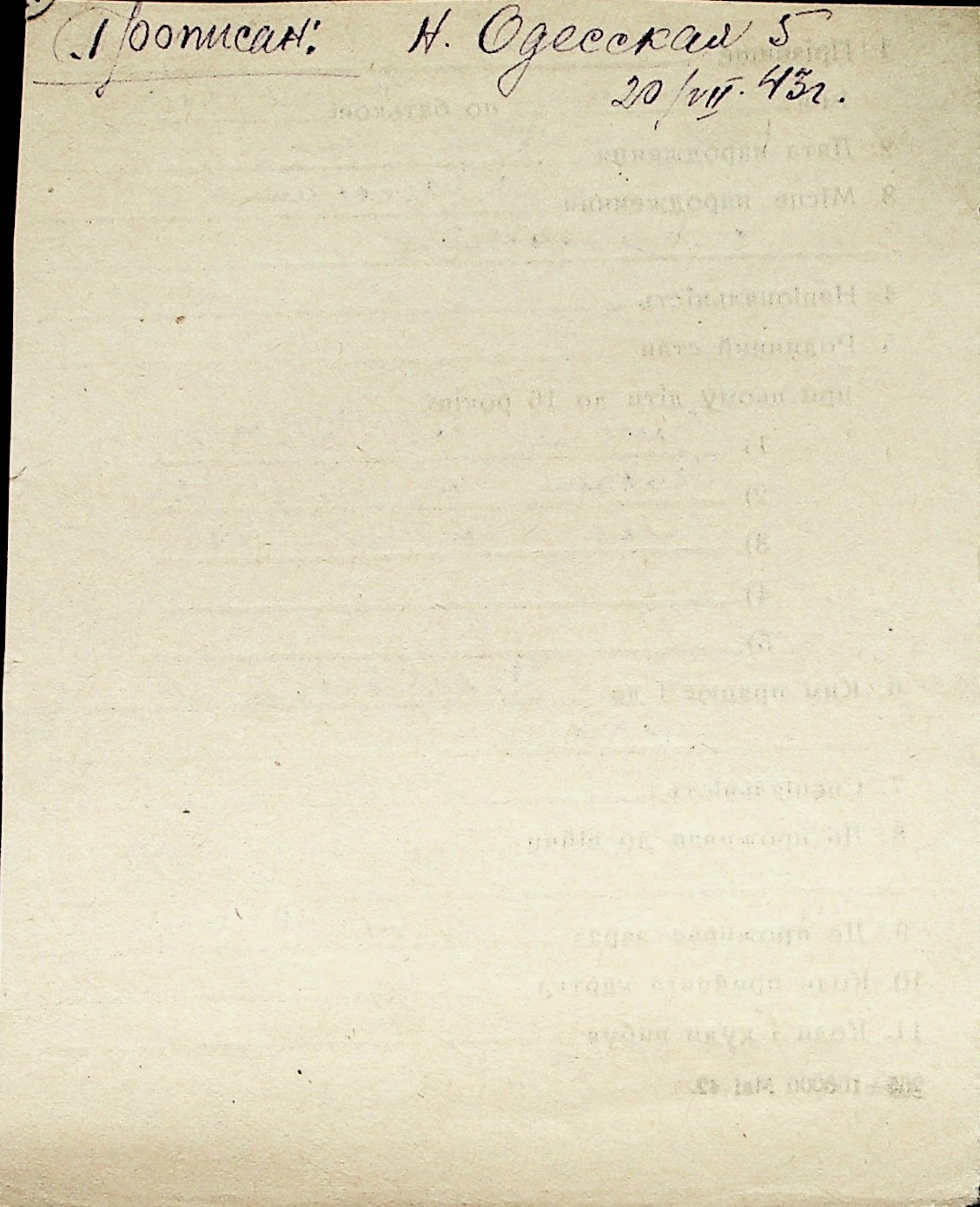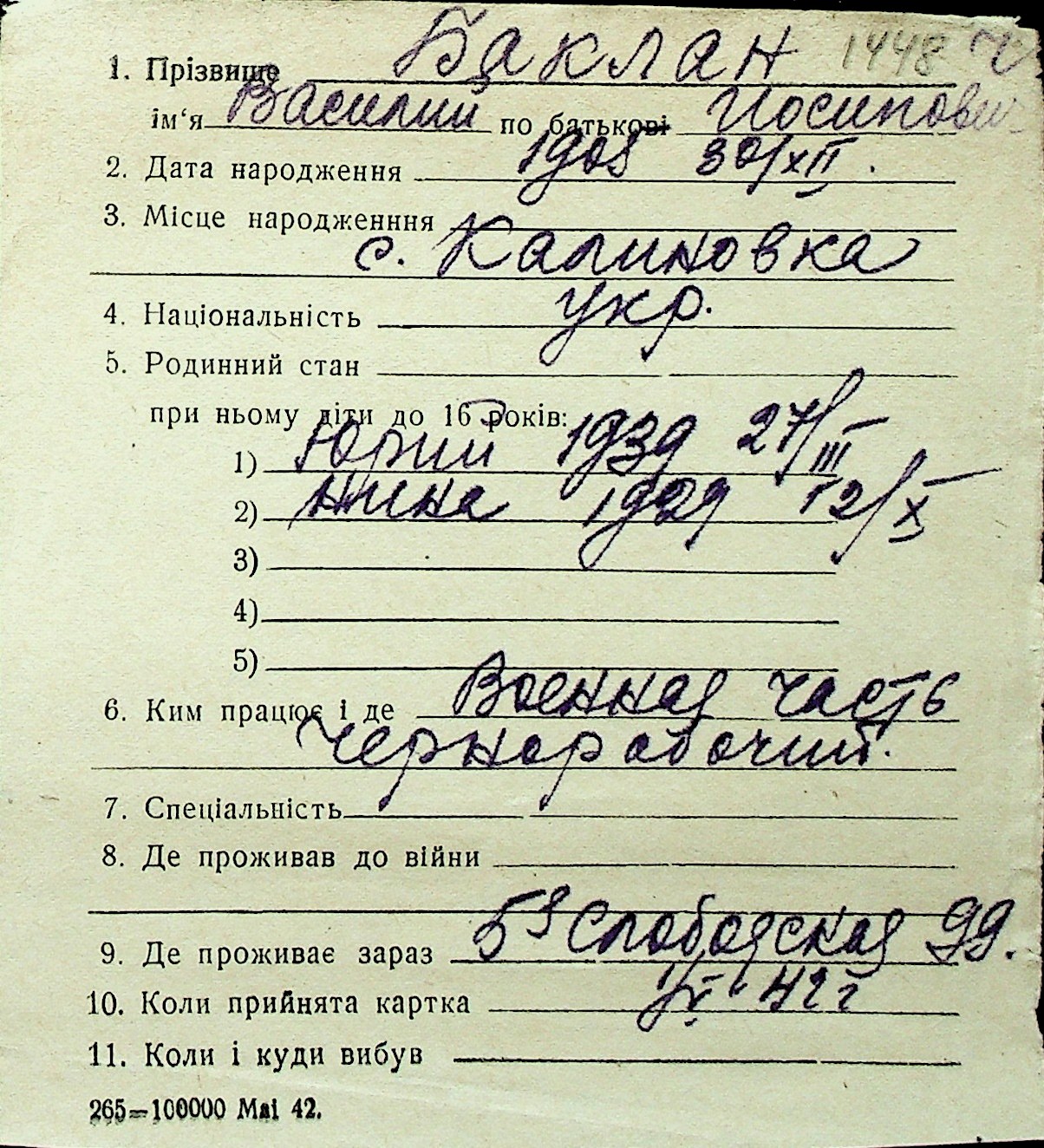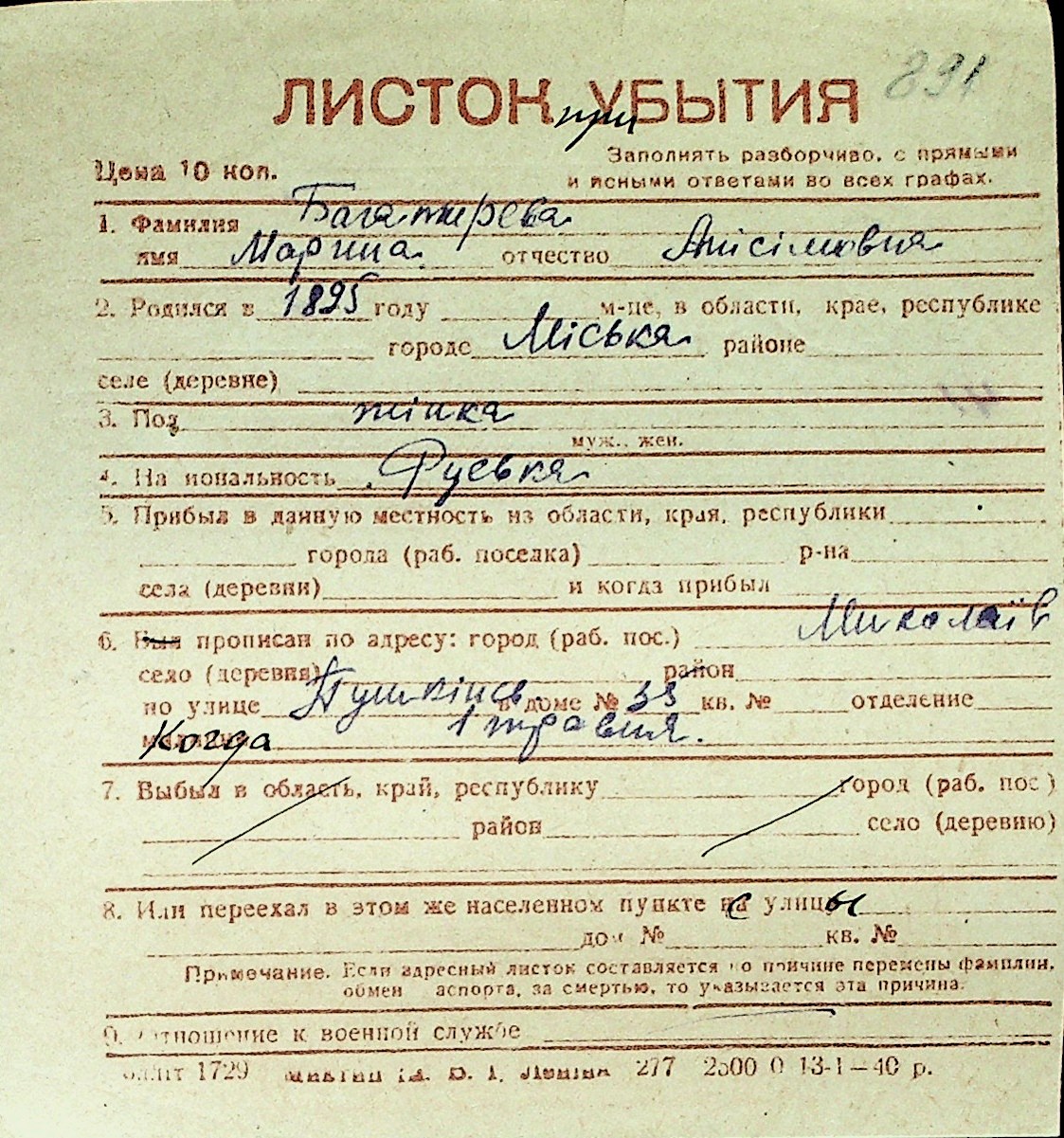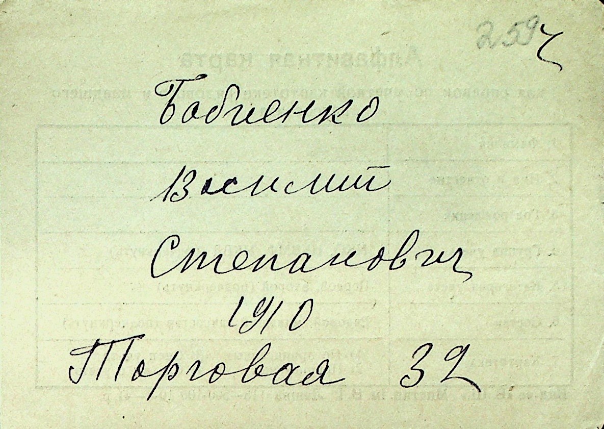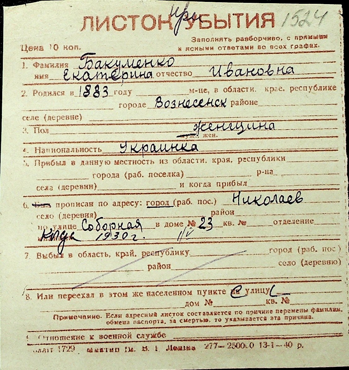 ◦ ◦ Перелік карток на осіб, які мешкали у м. Миколаїв у період окупації 1941–1944 років