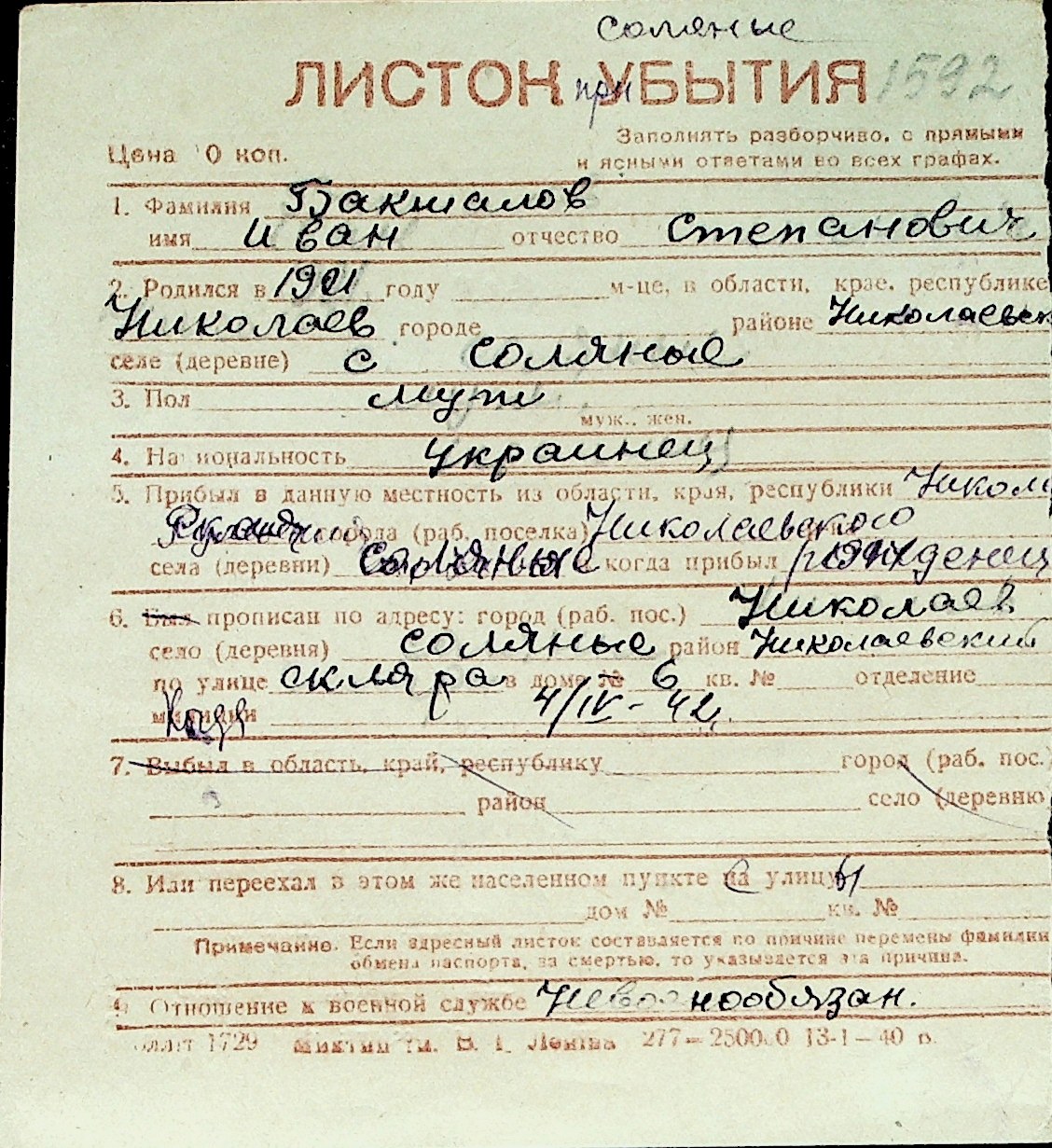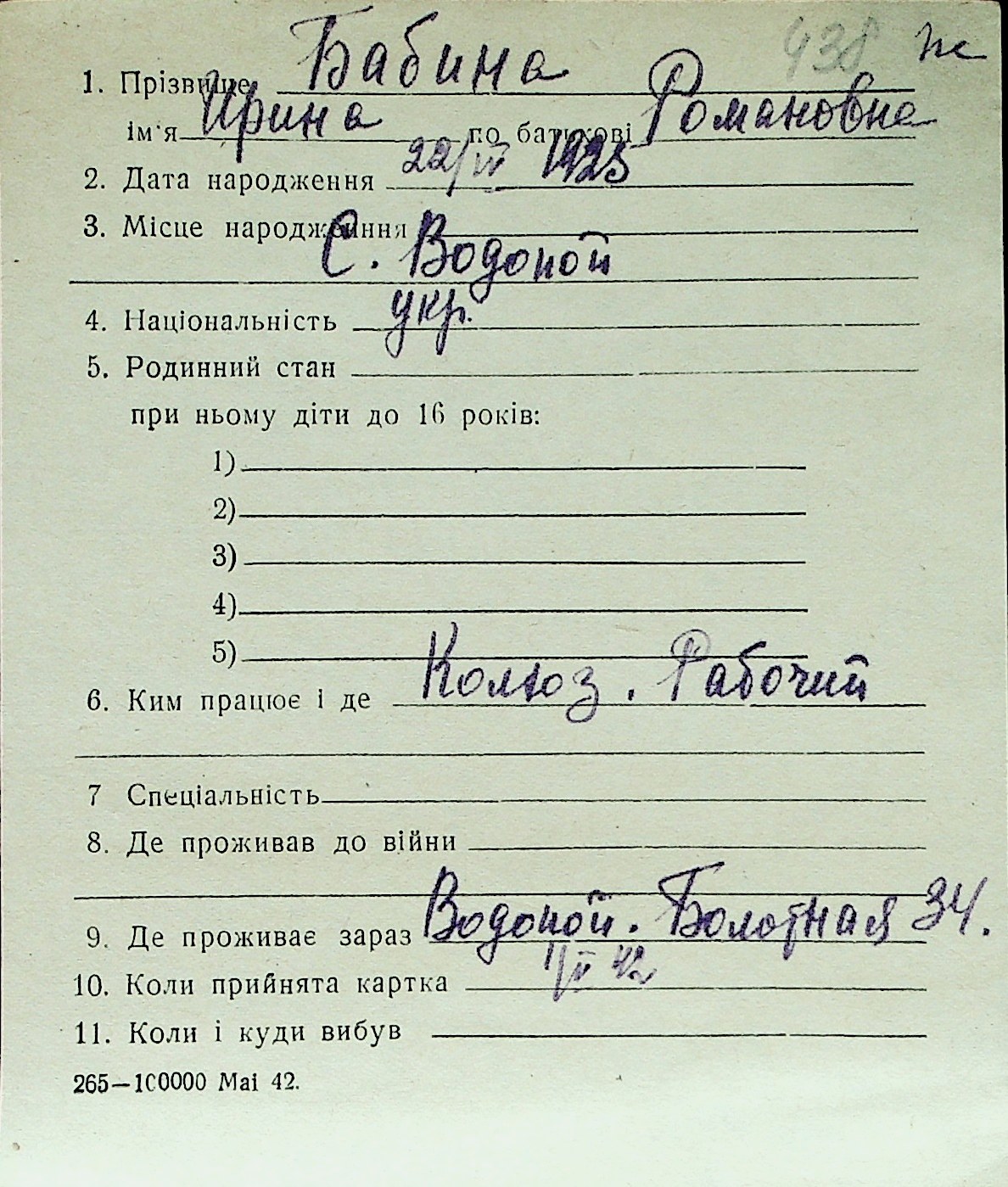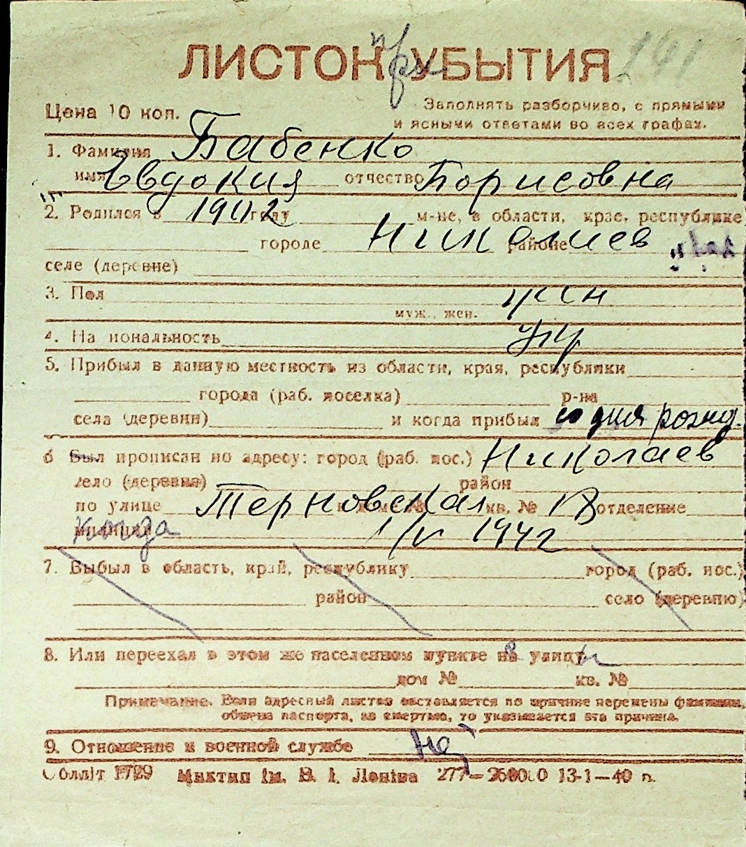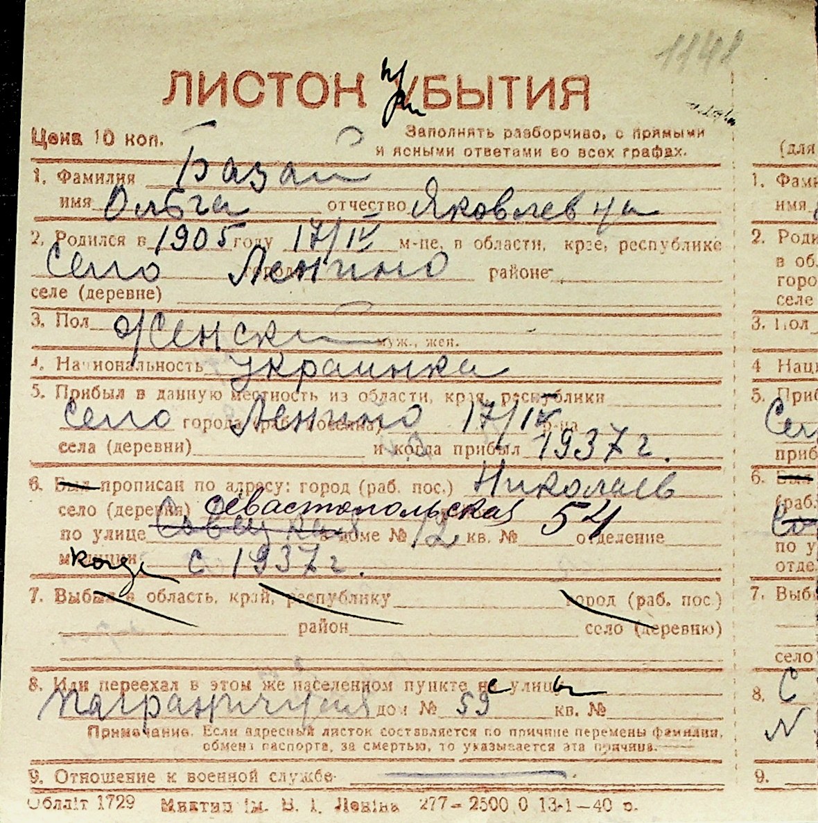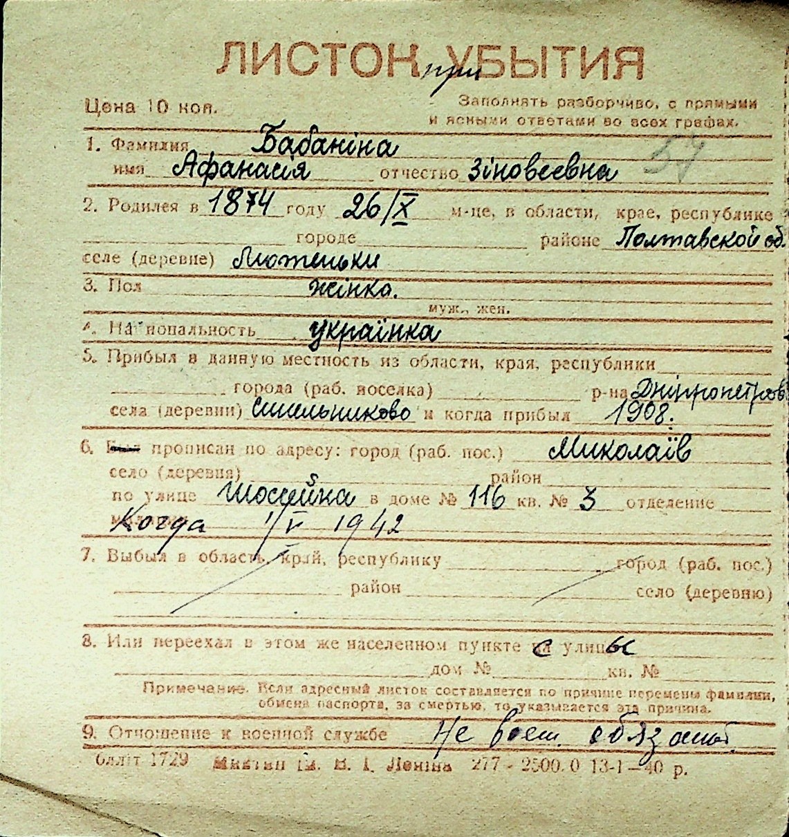 ◦ ◦ Перелік карток на осіб, які мешкали у м. Миколаїв у період окупації 1941–1944 років