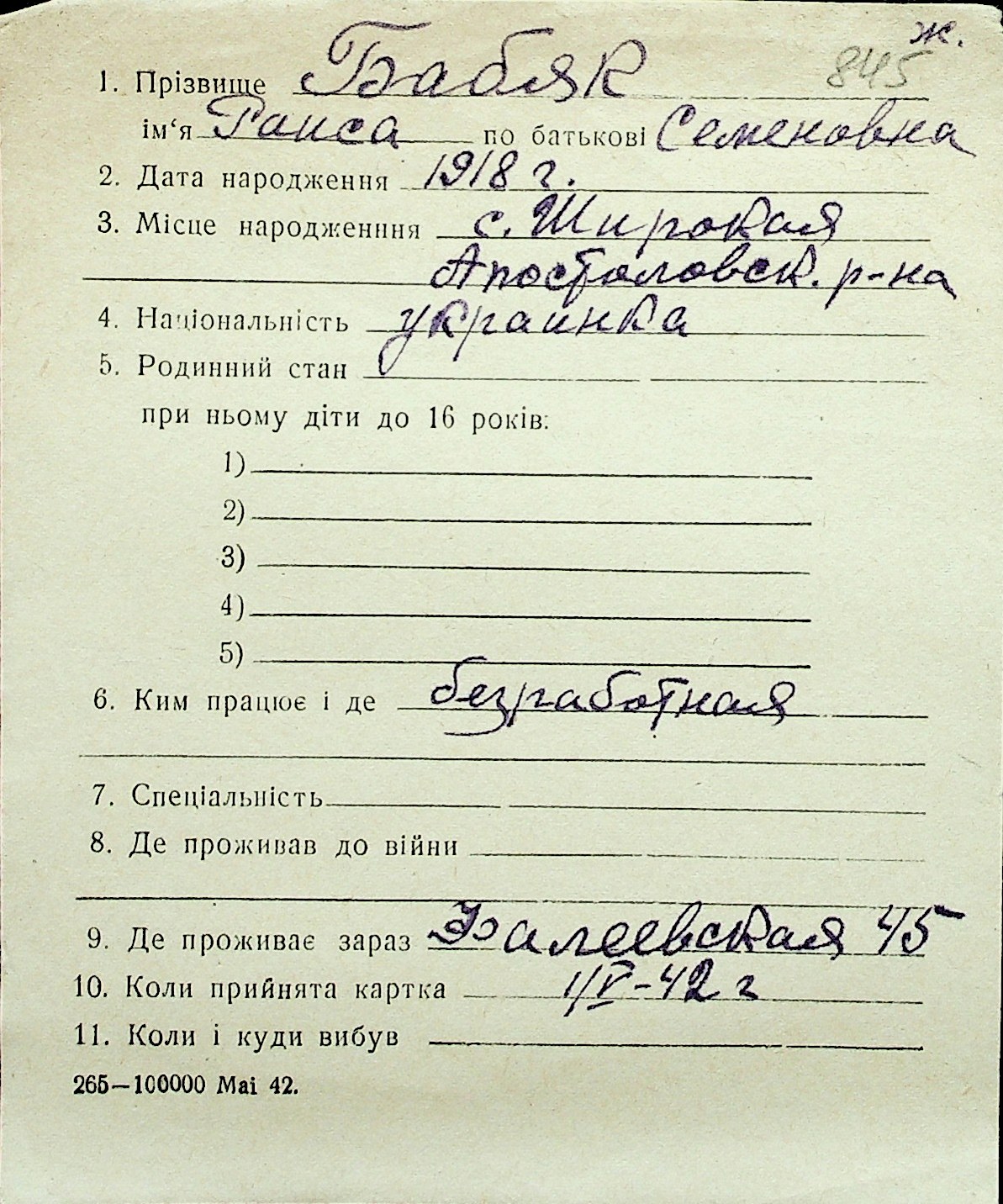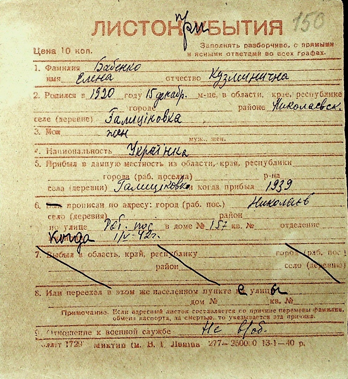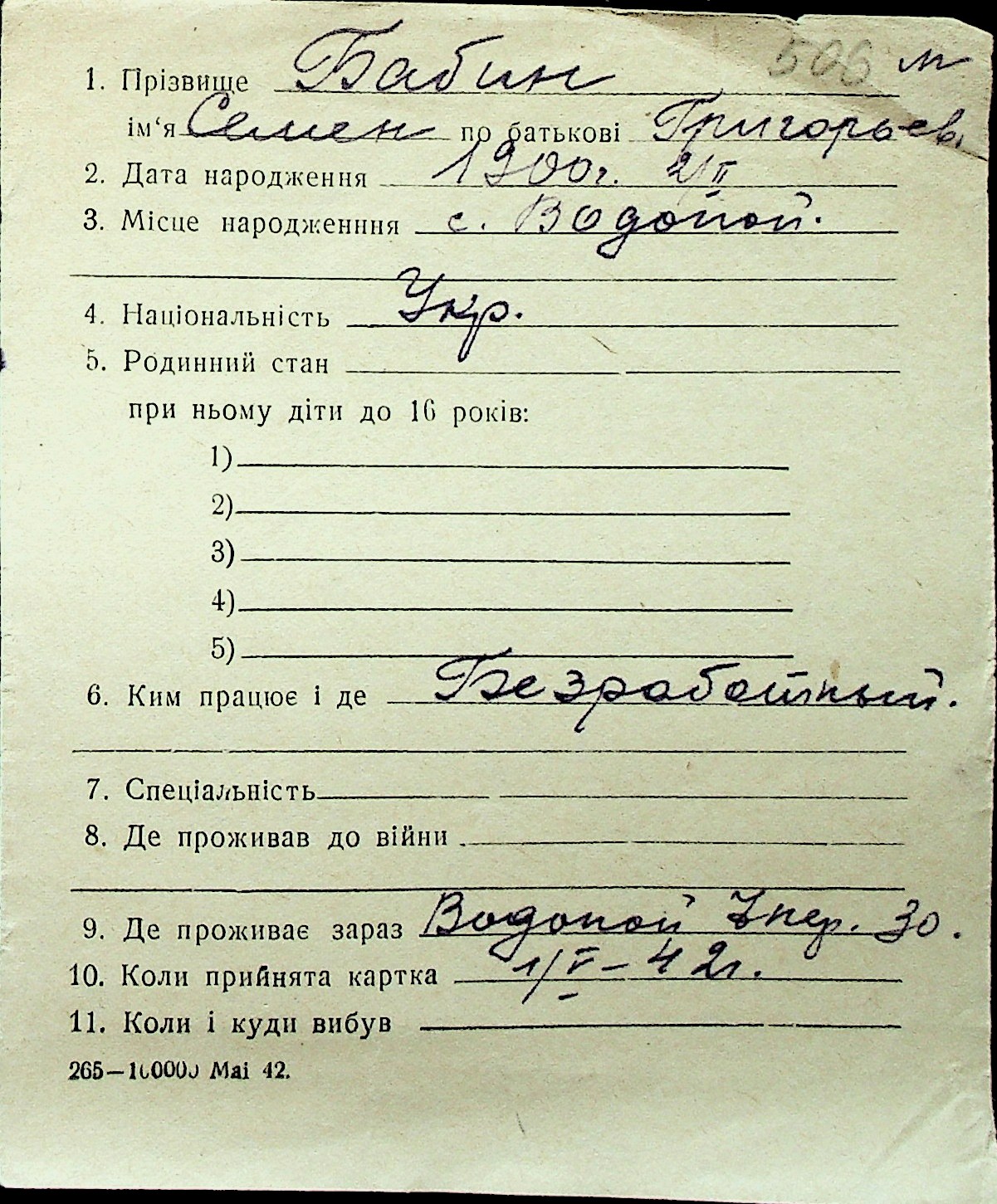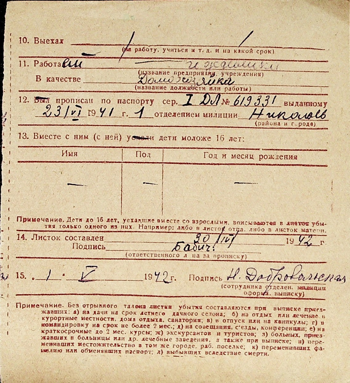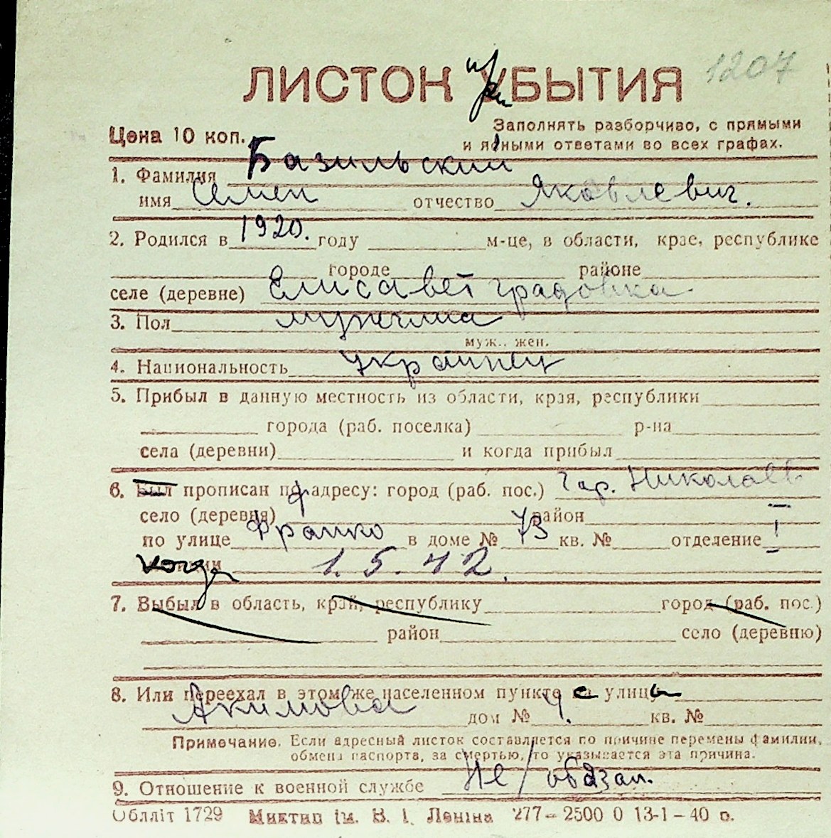 ◦ ◦ Перелік карток на осіб, які мешкали у м. Миколаїв у період окупації 1941–1944 років