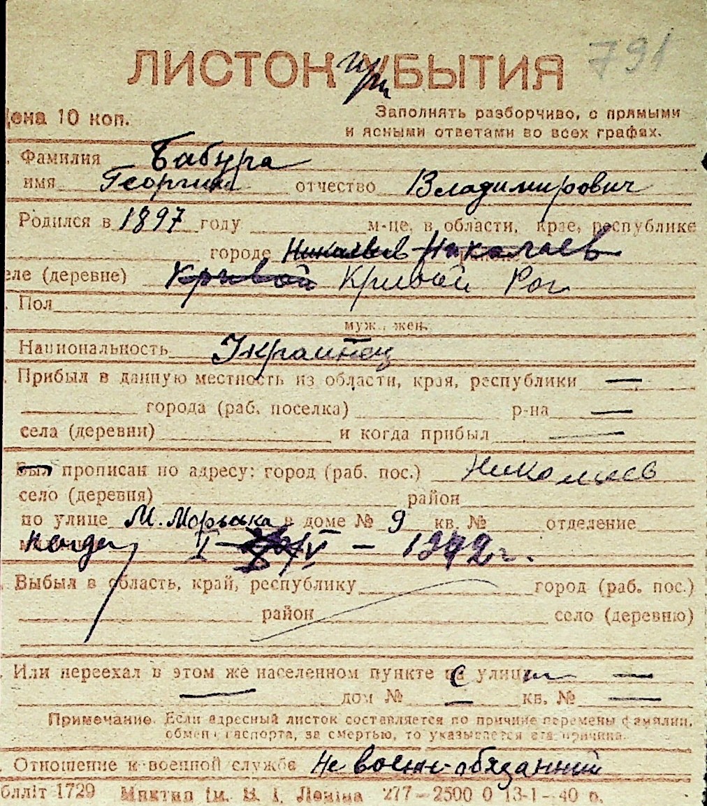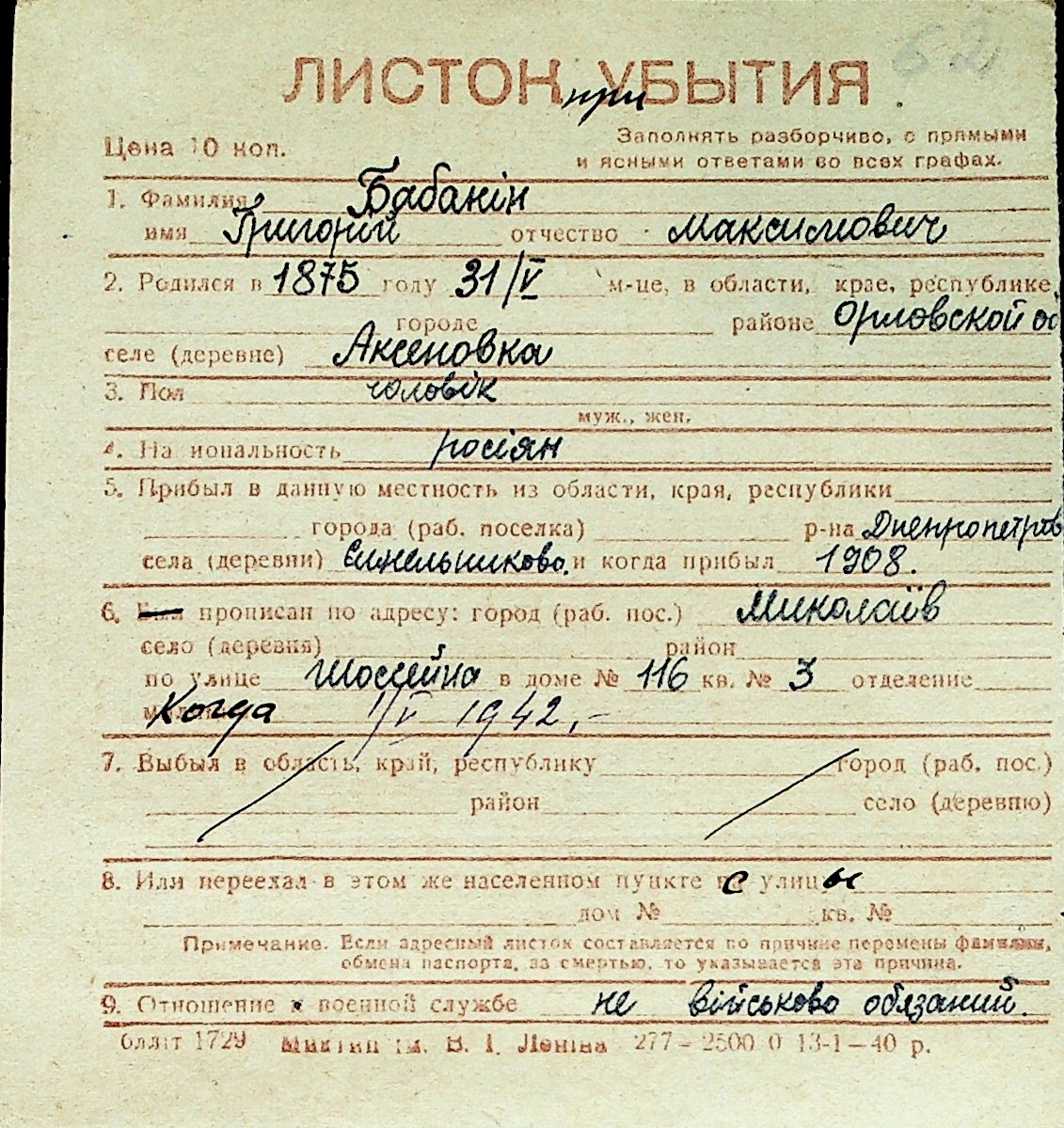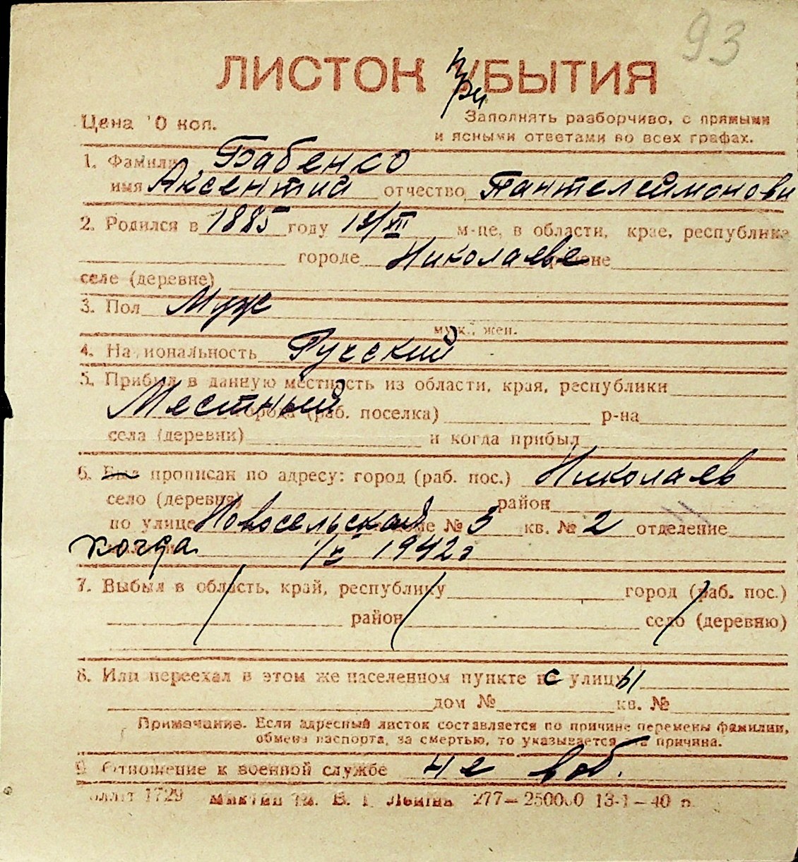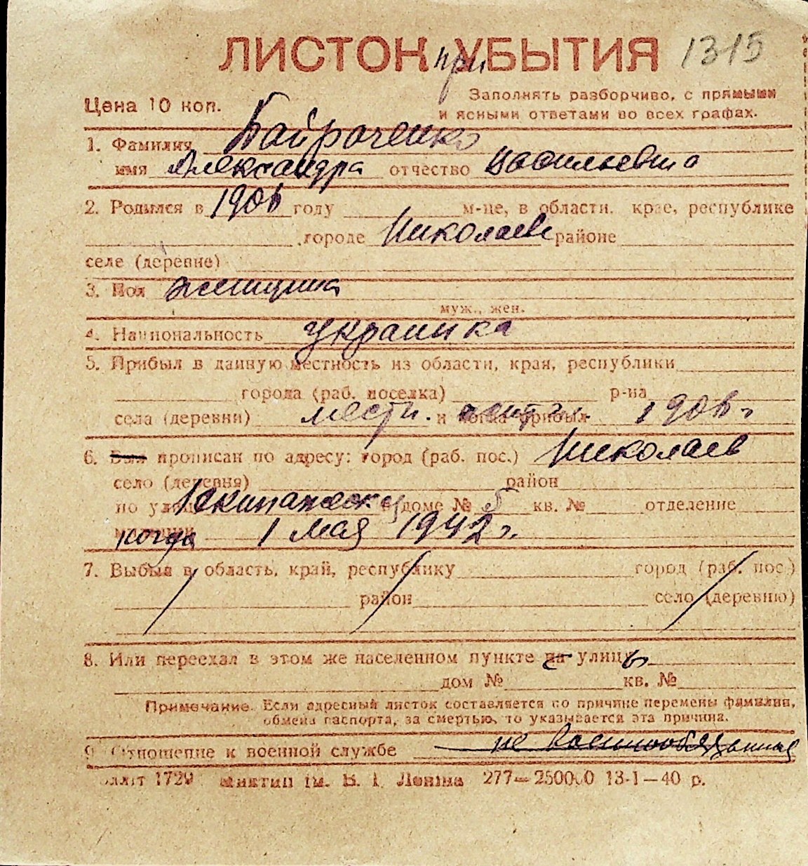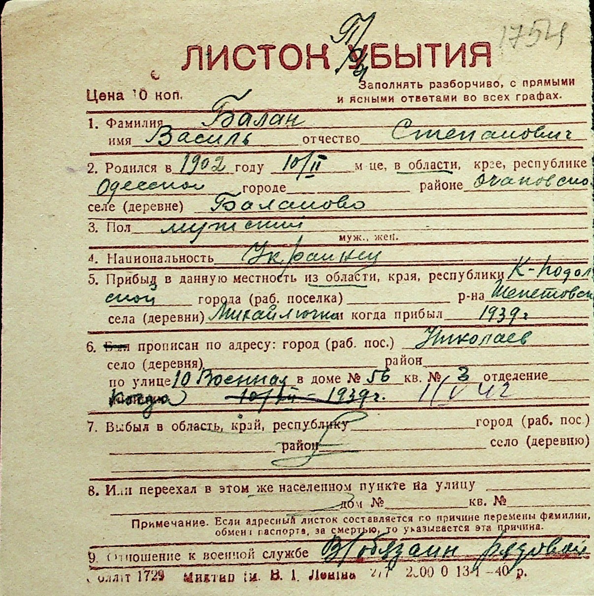 ◦ ◦ Перелік карток на осіб, які мешкали у м. Миколаїв у період окупації 1941–1944 років