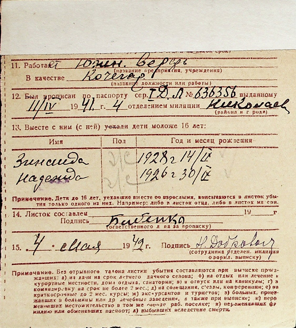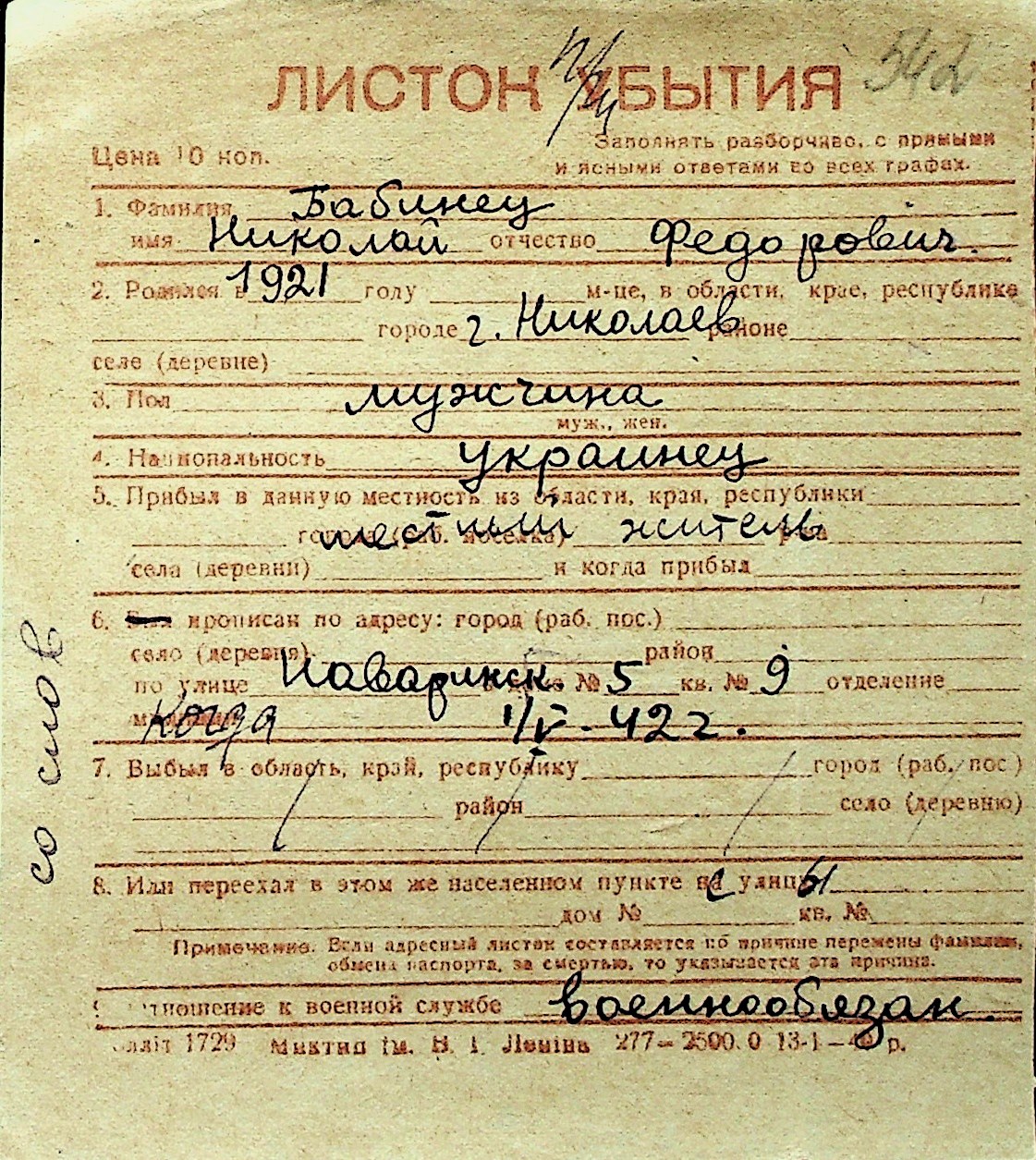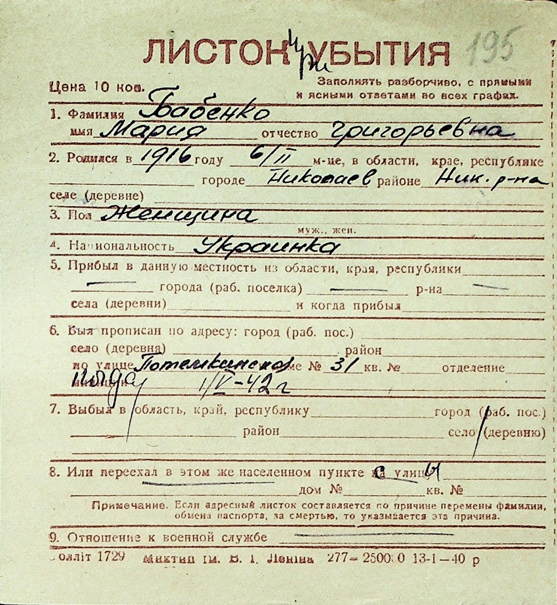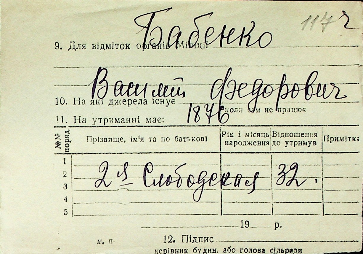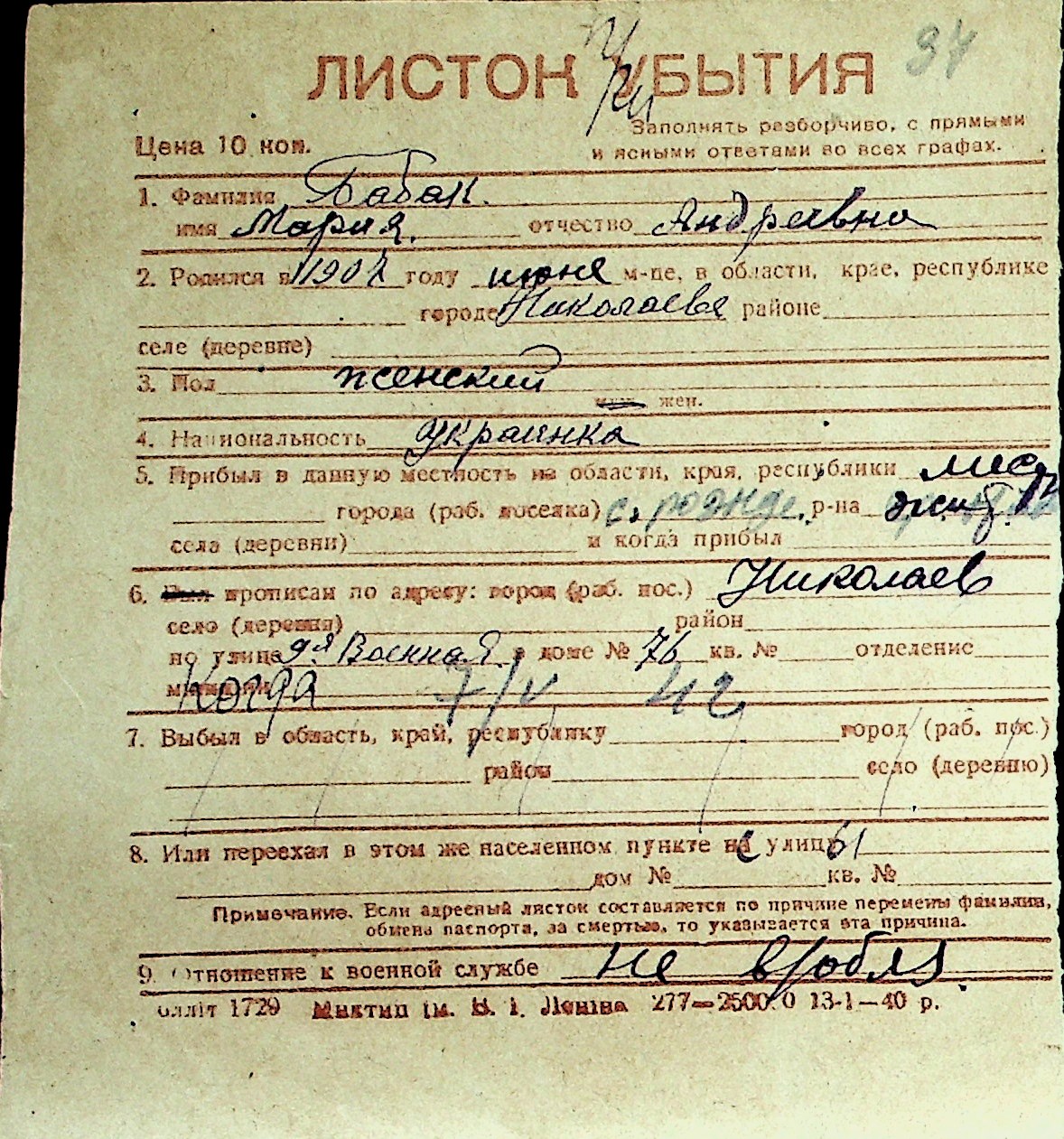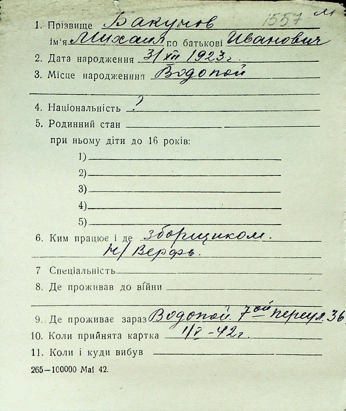 ◦ ◦ Перелік карток на осіб, які мешкали у м. Миколаїв у період окупації 1941–1944 років