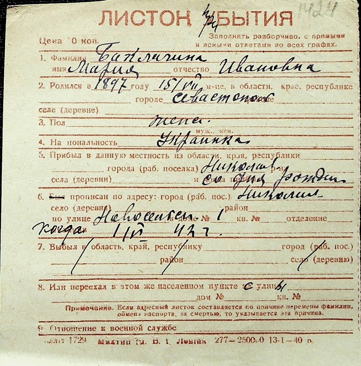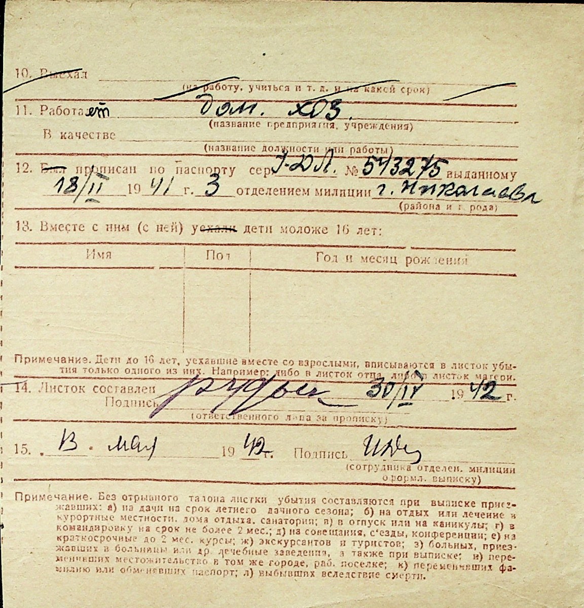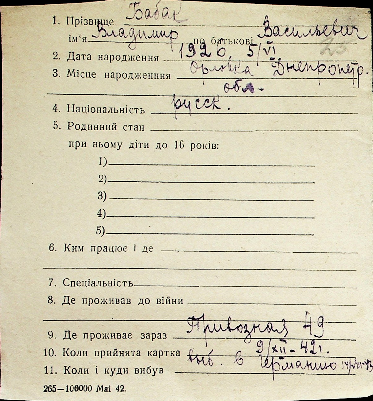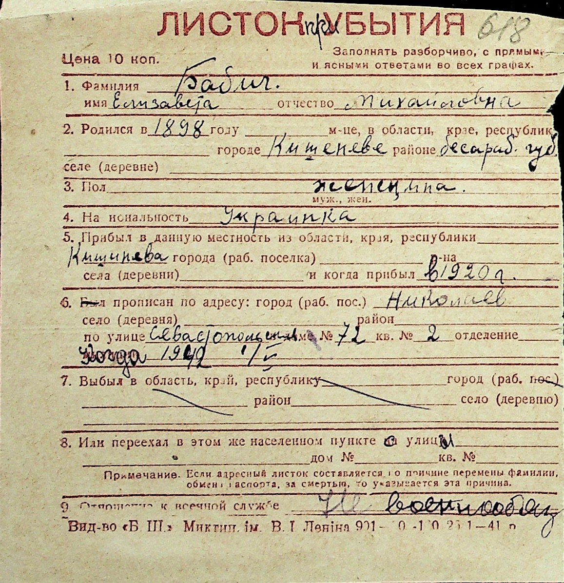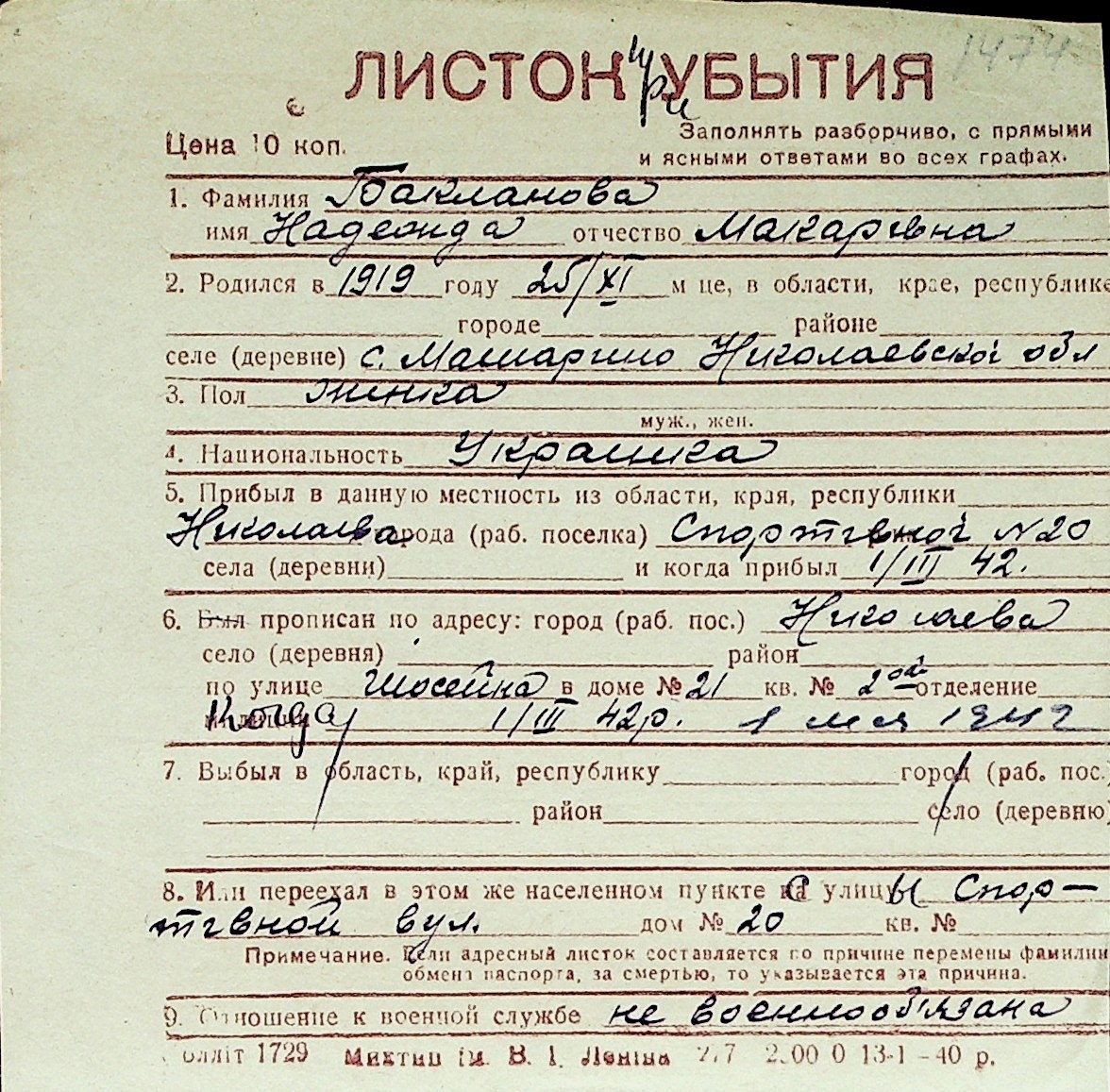 ◦ ◦ Перелік карток на осіб, які мешкали у м. Миколаїв у період окупації 1941–1944 років