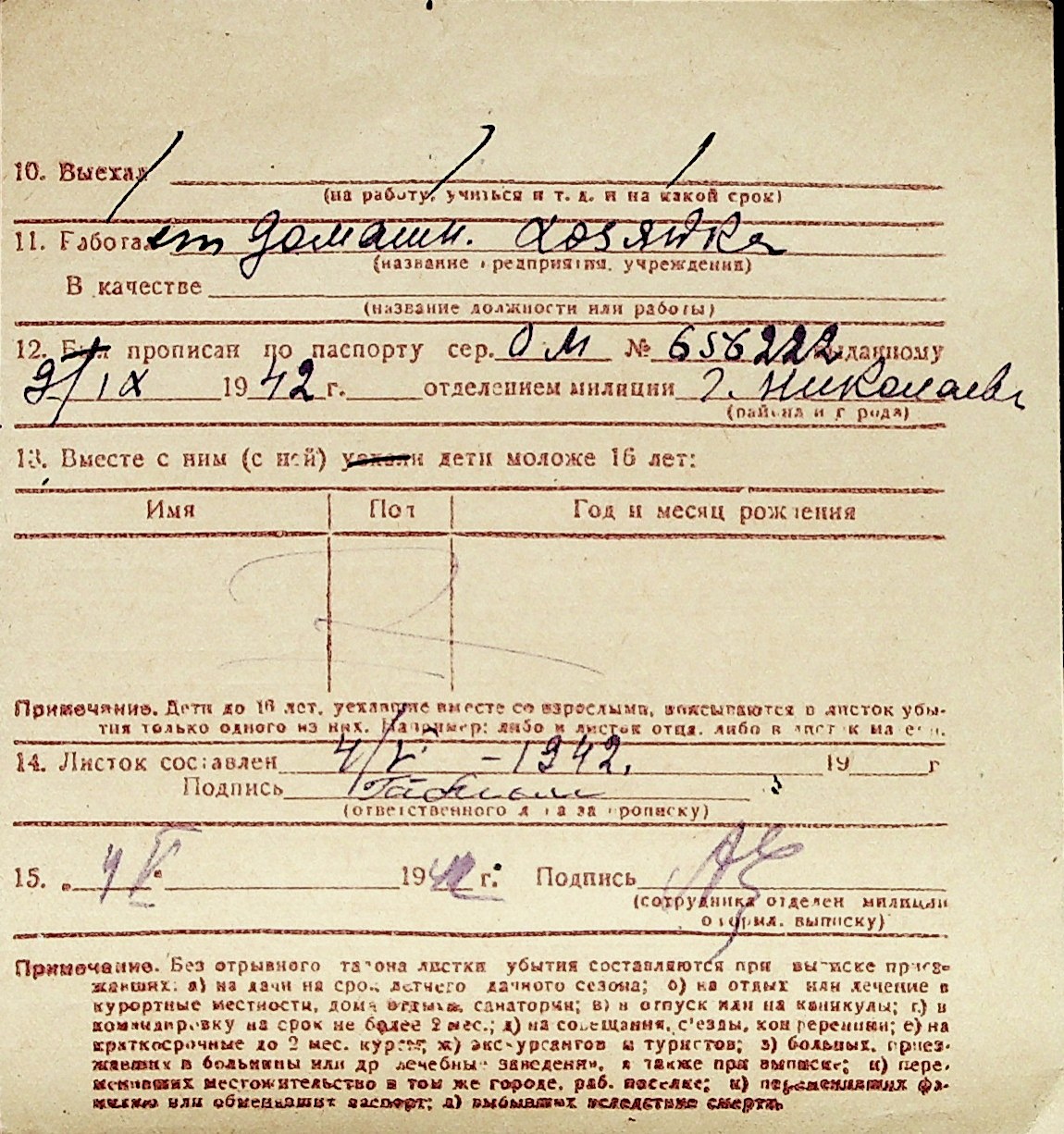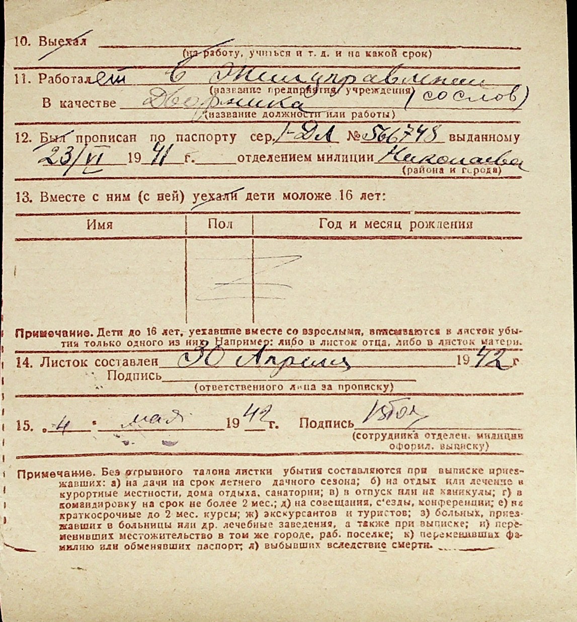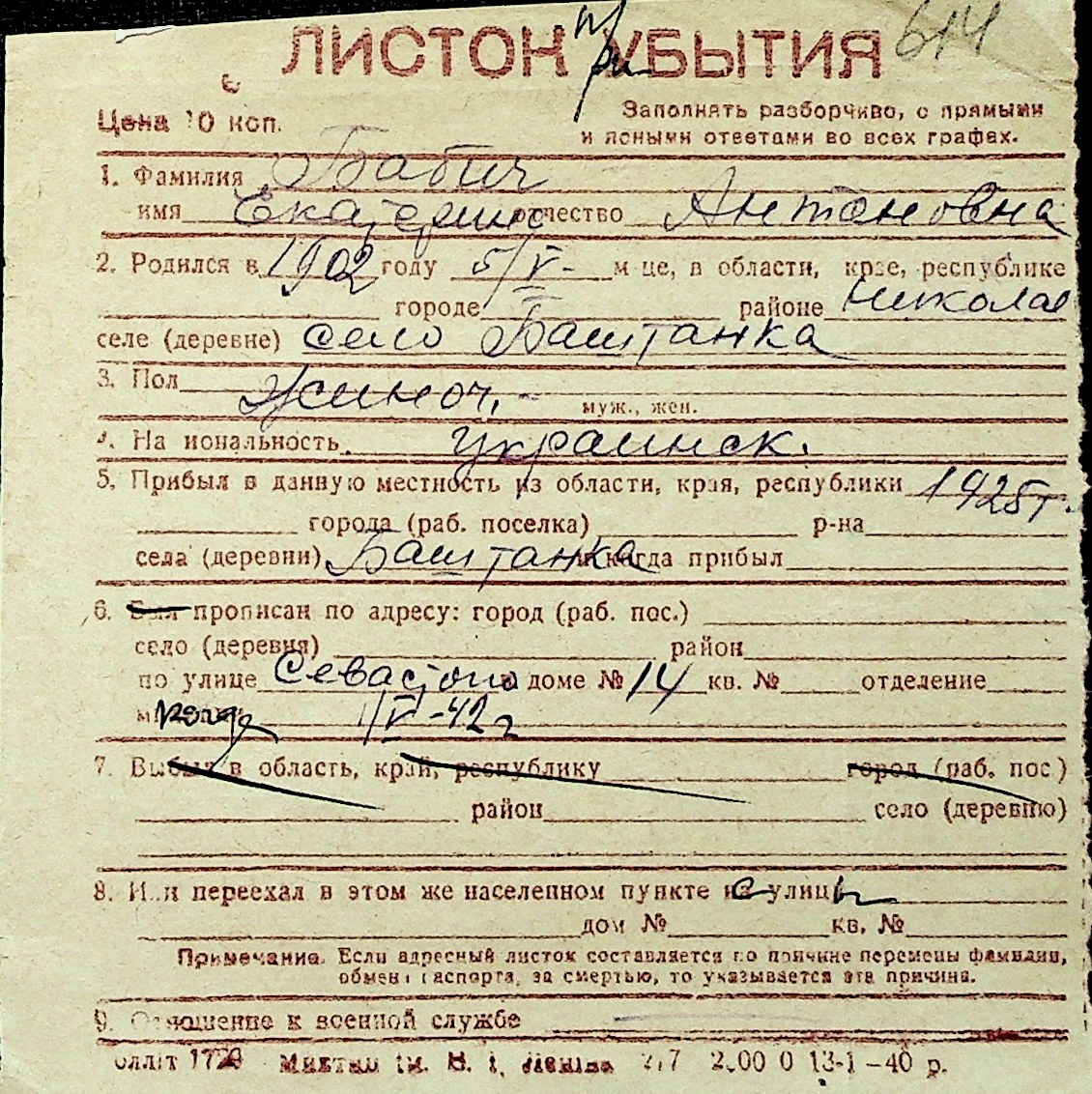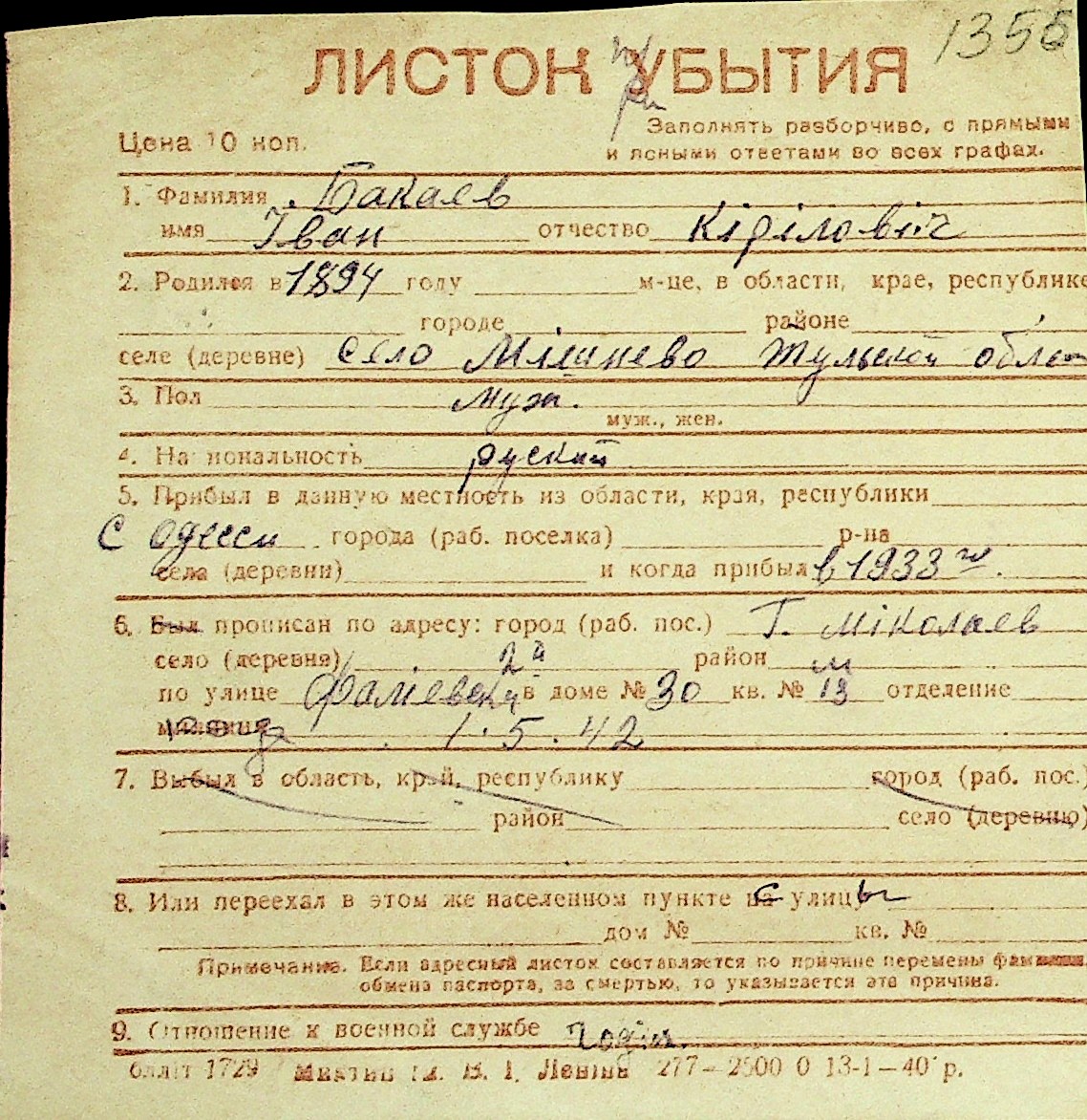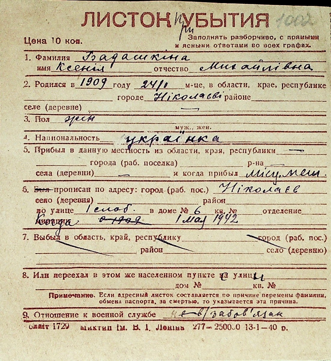 ◦ ◦ Перелік карток на осіб, які мешкали у м. Миколаїв у період окупації 1941–1944 років