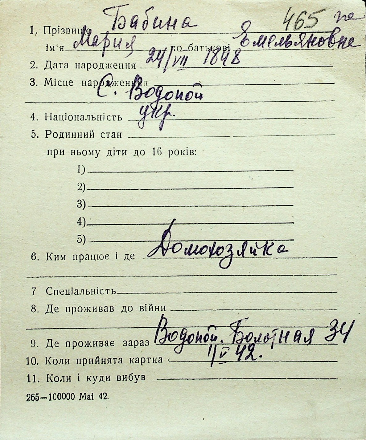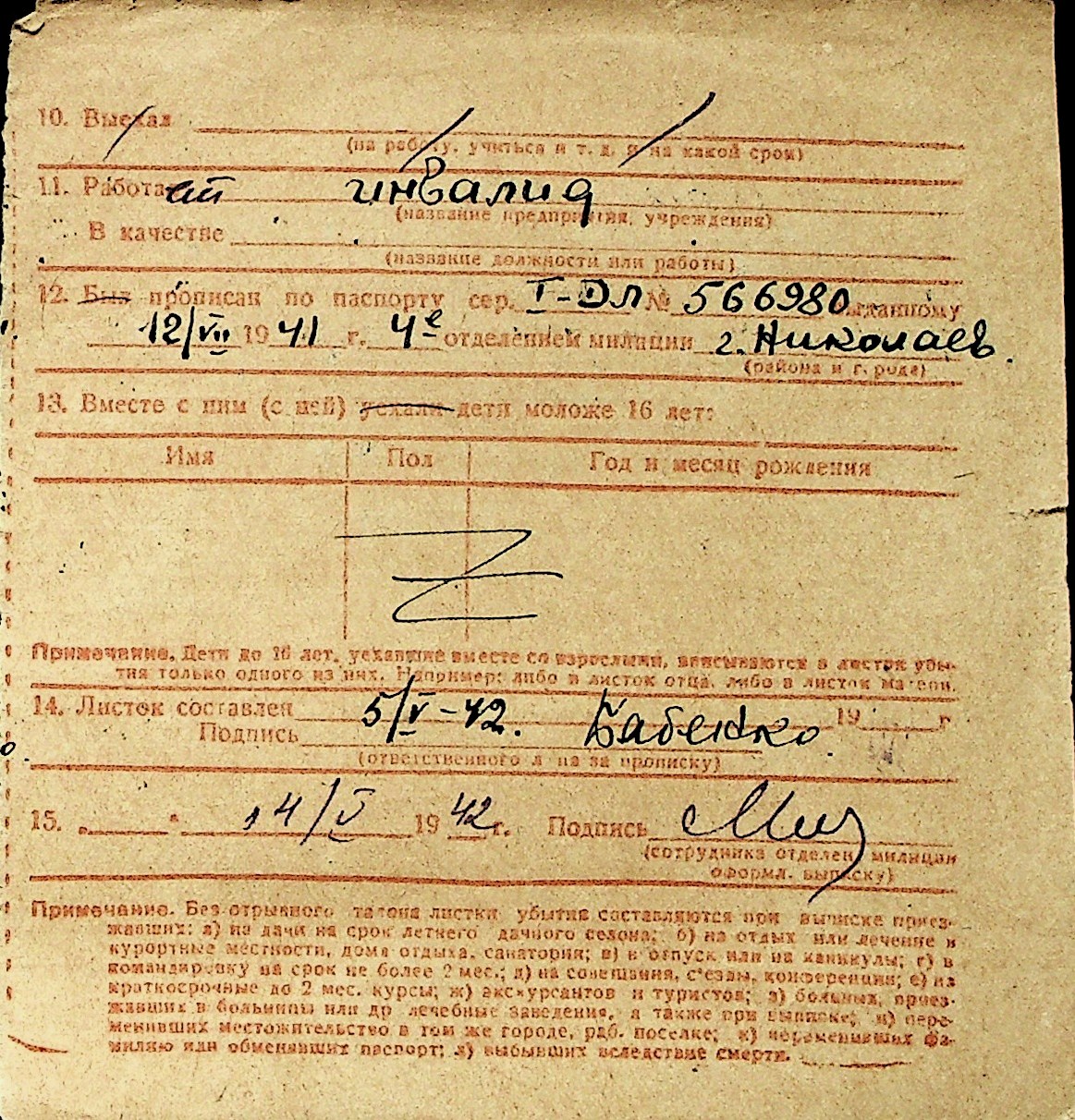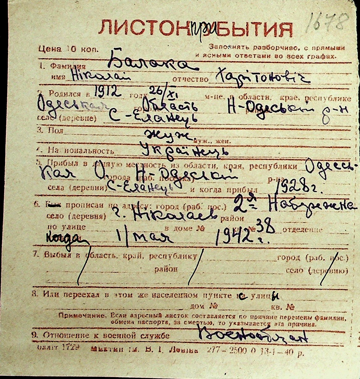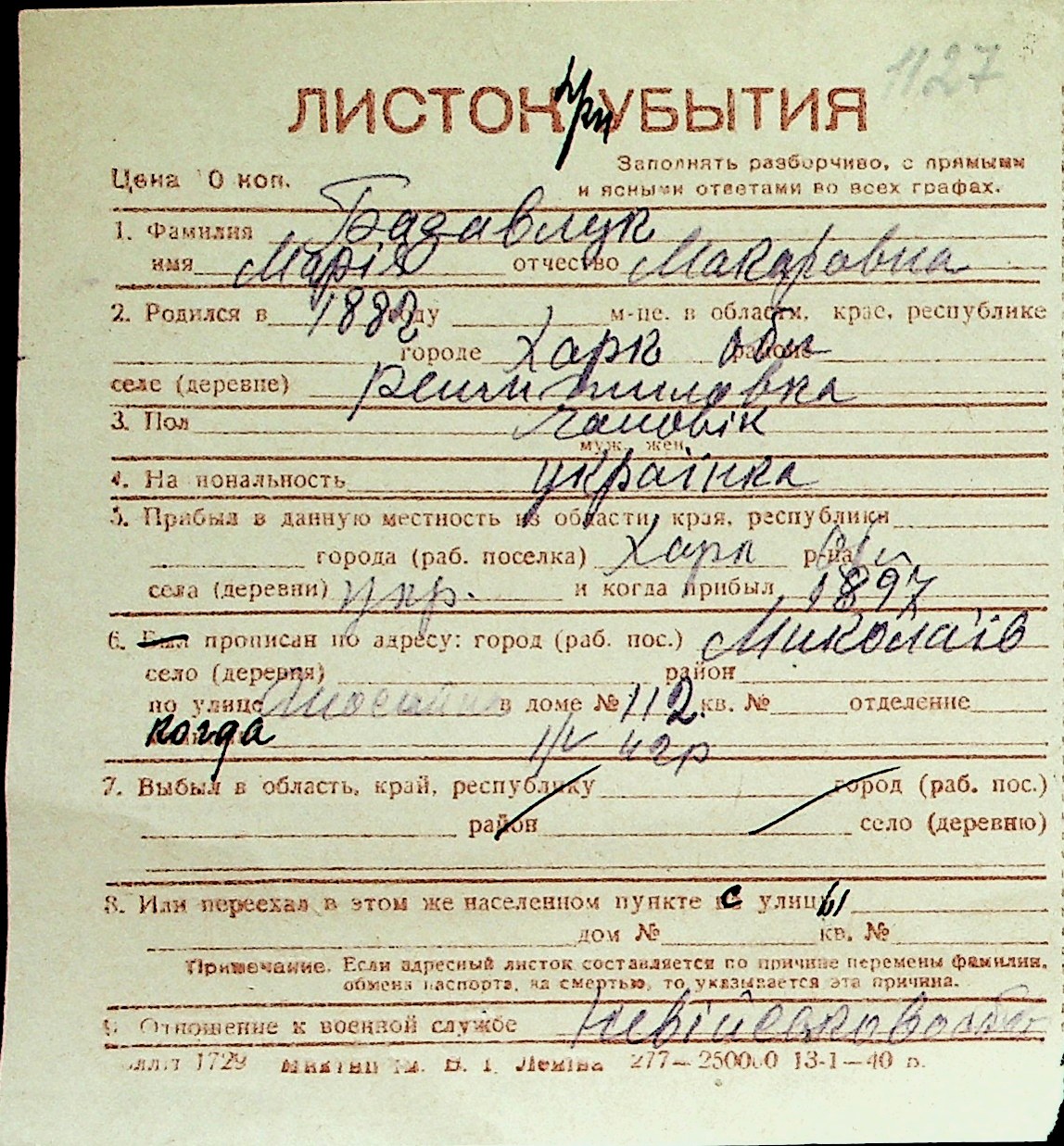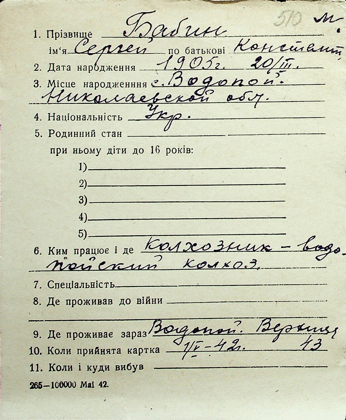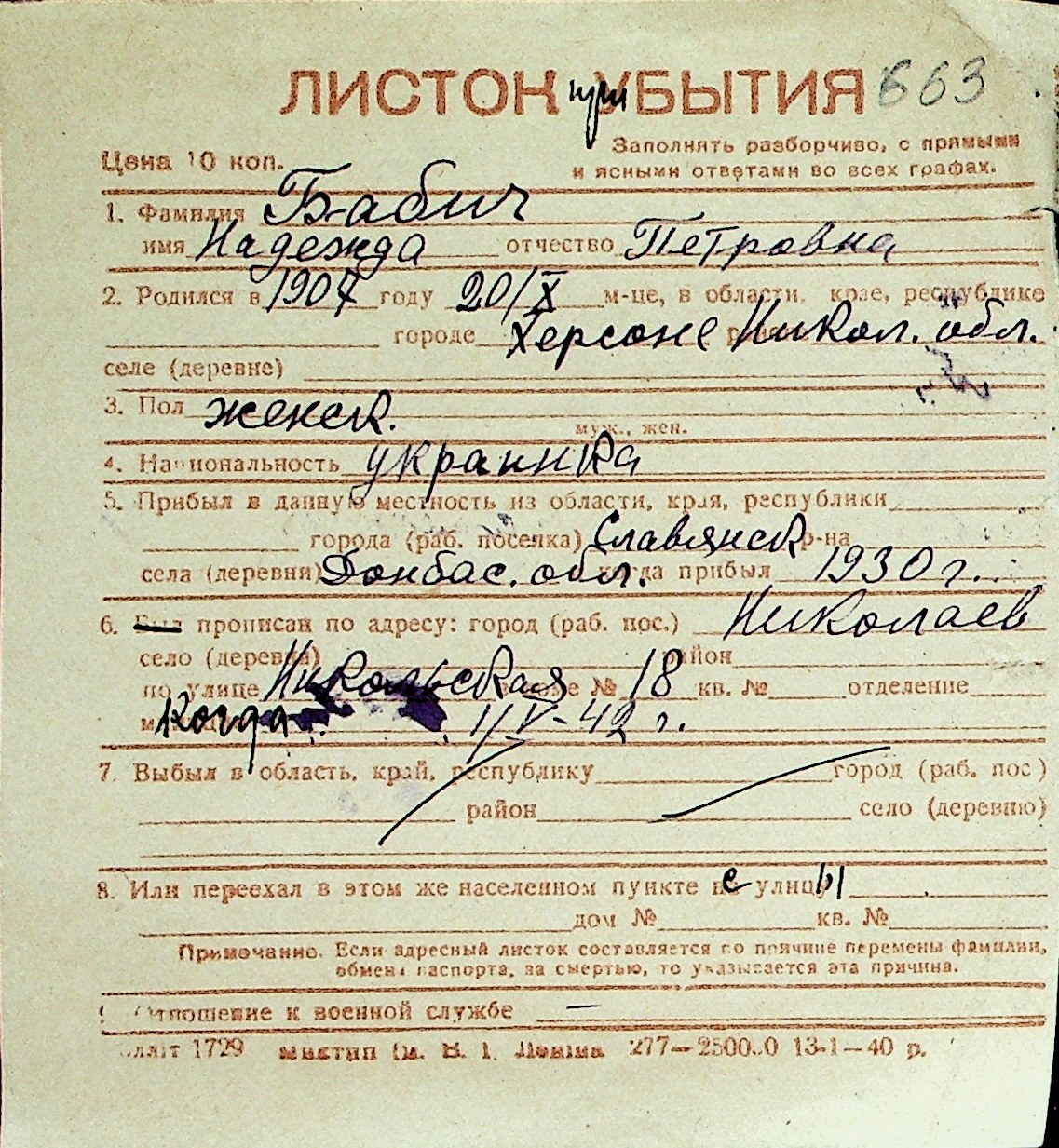 ◦ ◦ Перелік карток на осіб, які мешкали у м. Миколаїв у період окупації 1941–1944 років