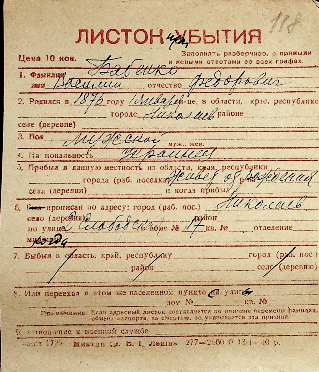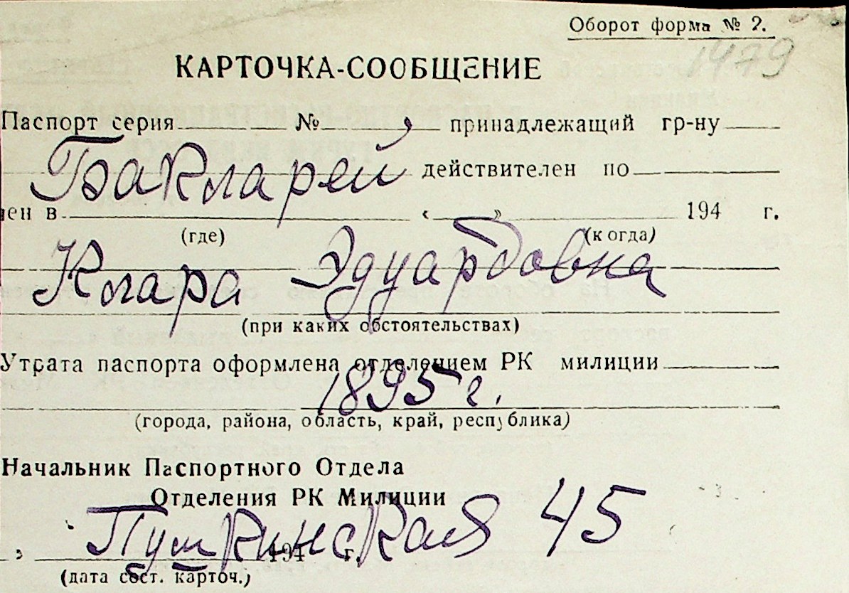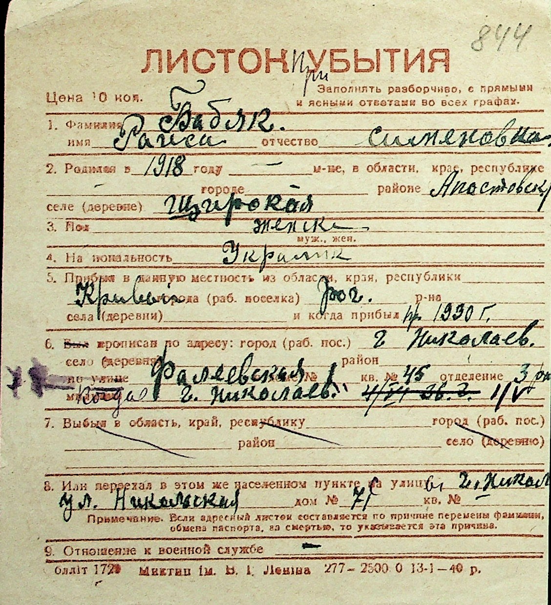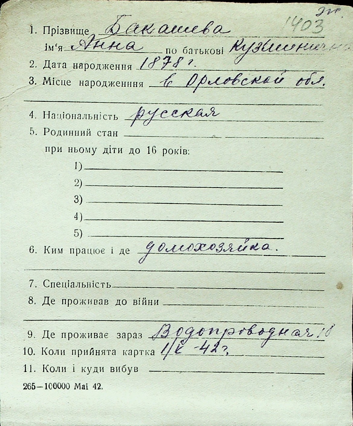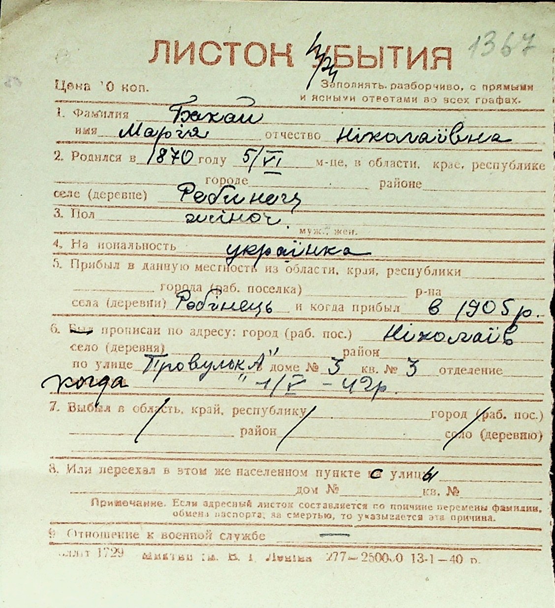 ◦ ◦ Перелік карток на осіб, які мешкали у м. Миколаїв у період окупації 1941–1944 років