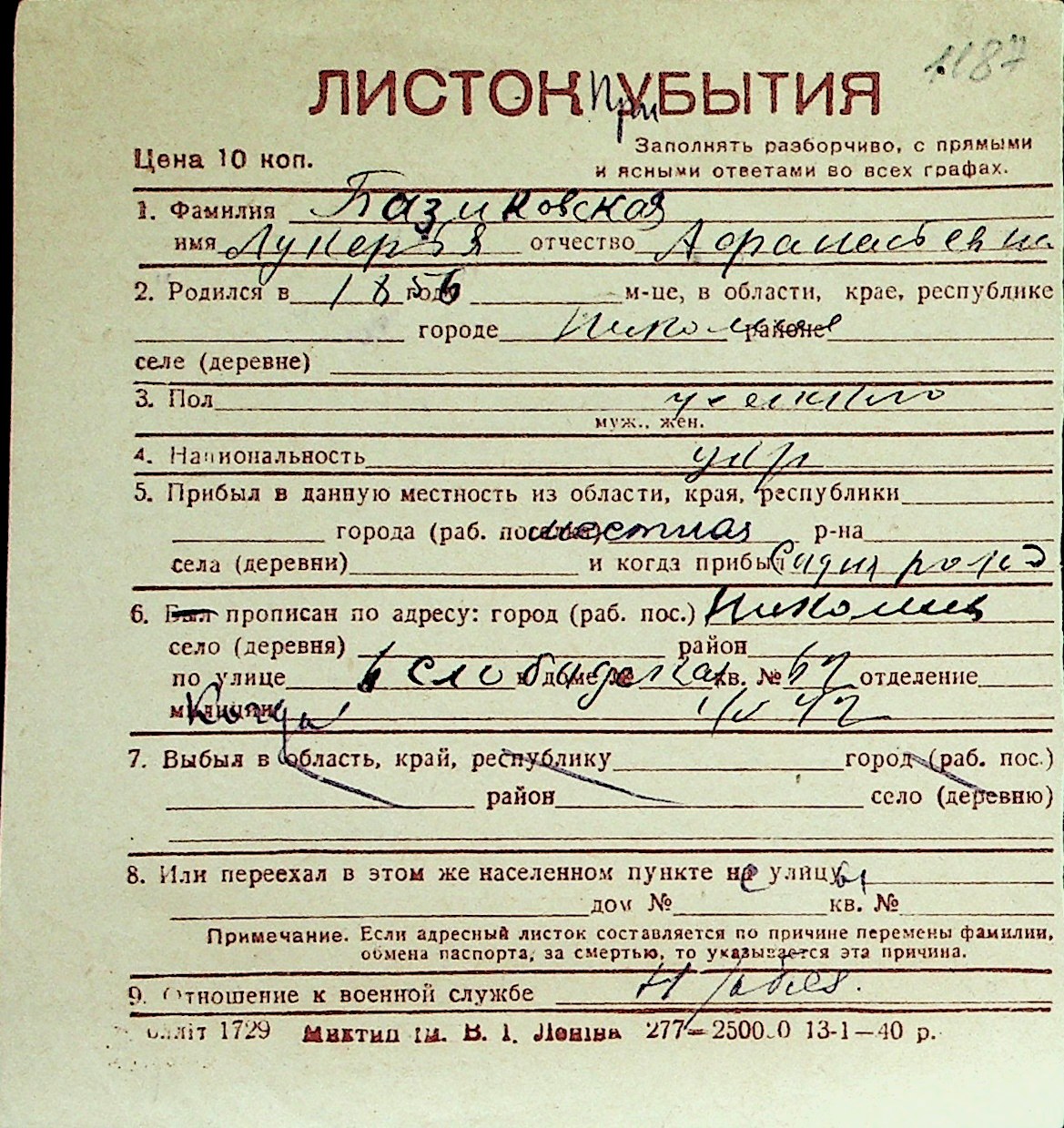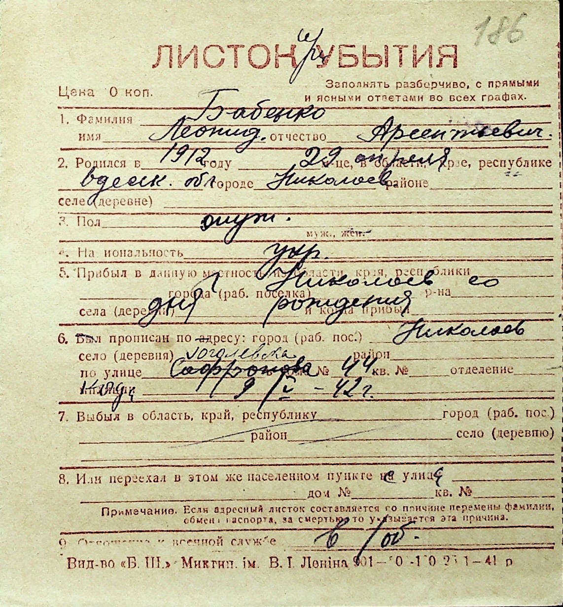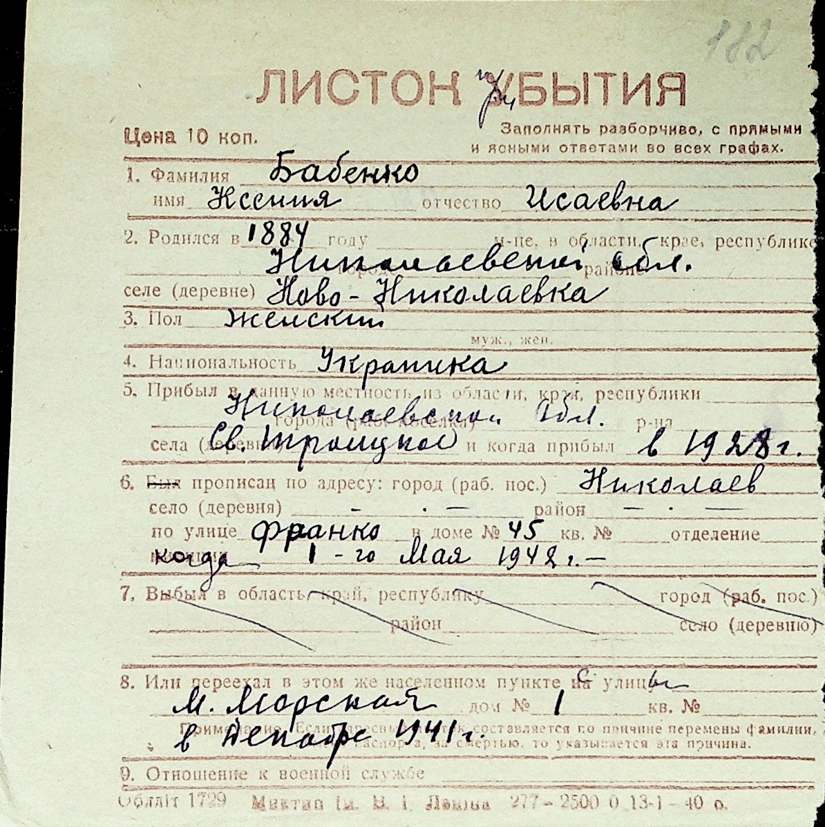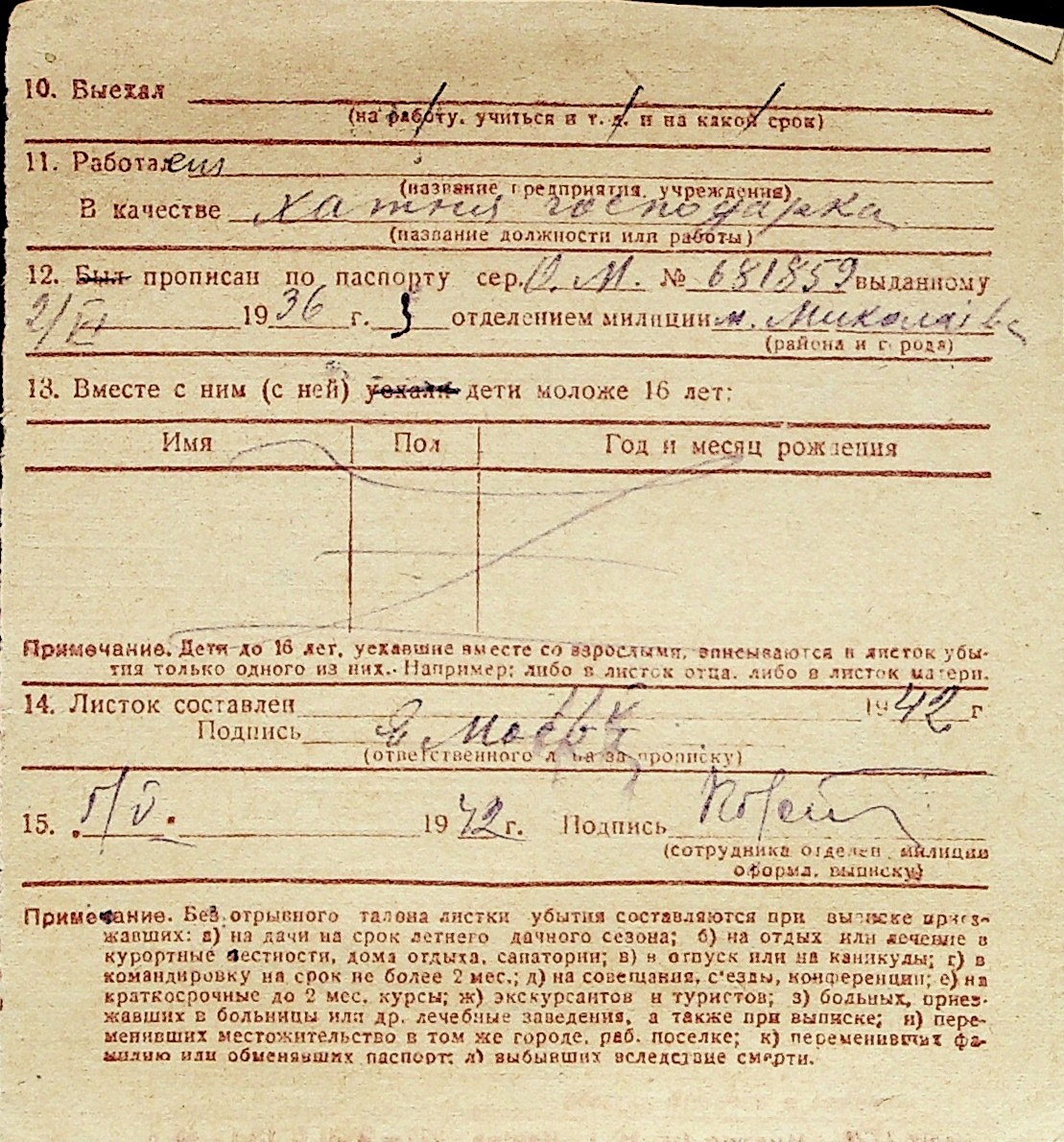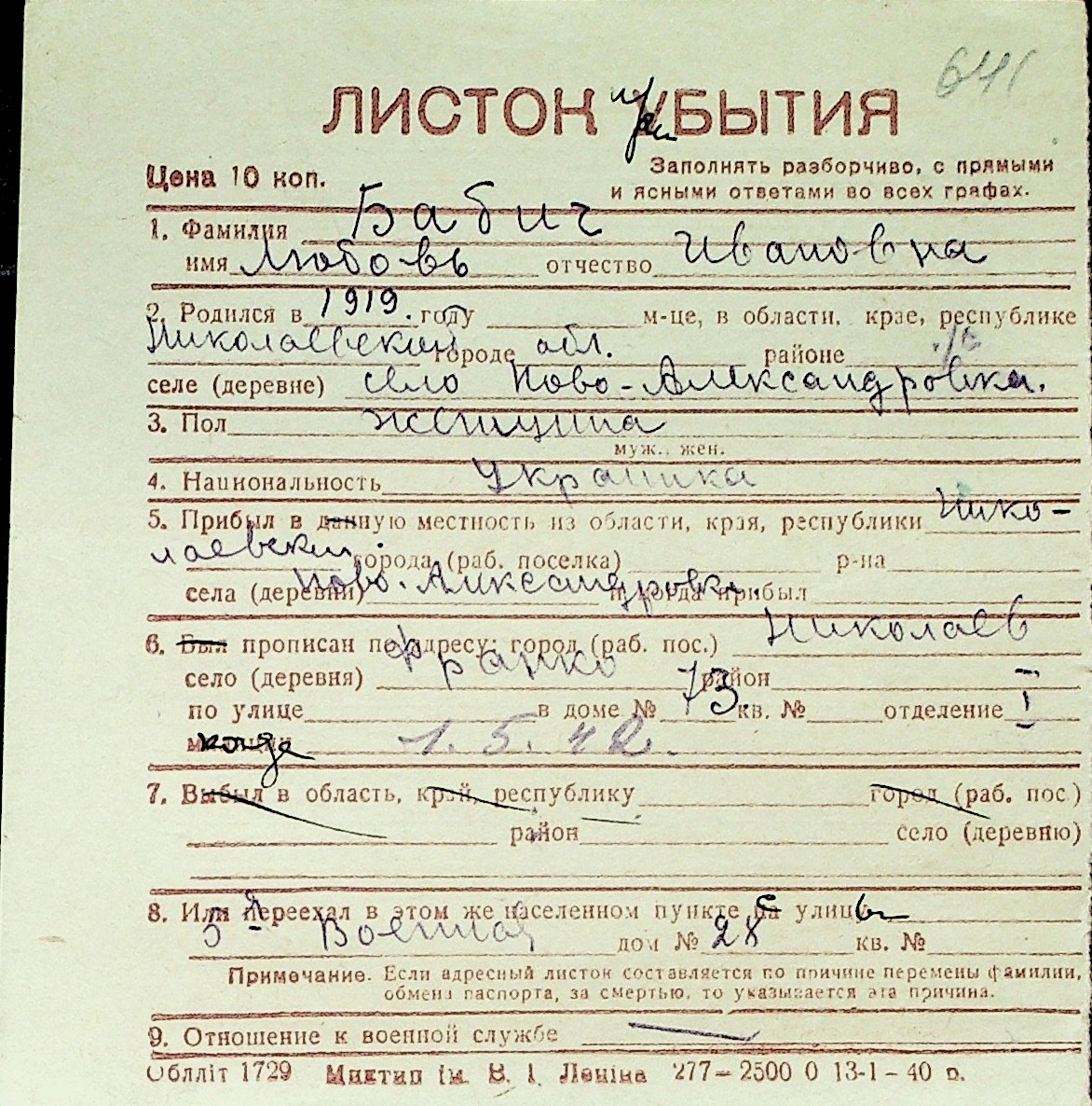 ◦ ◦ Перелік карток на осіб, які мешкали у м. Миколаїв у період окупації 1941–1944 років