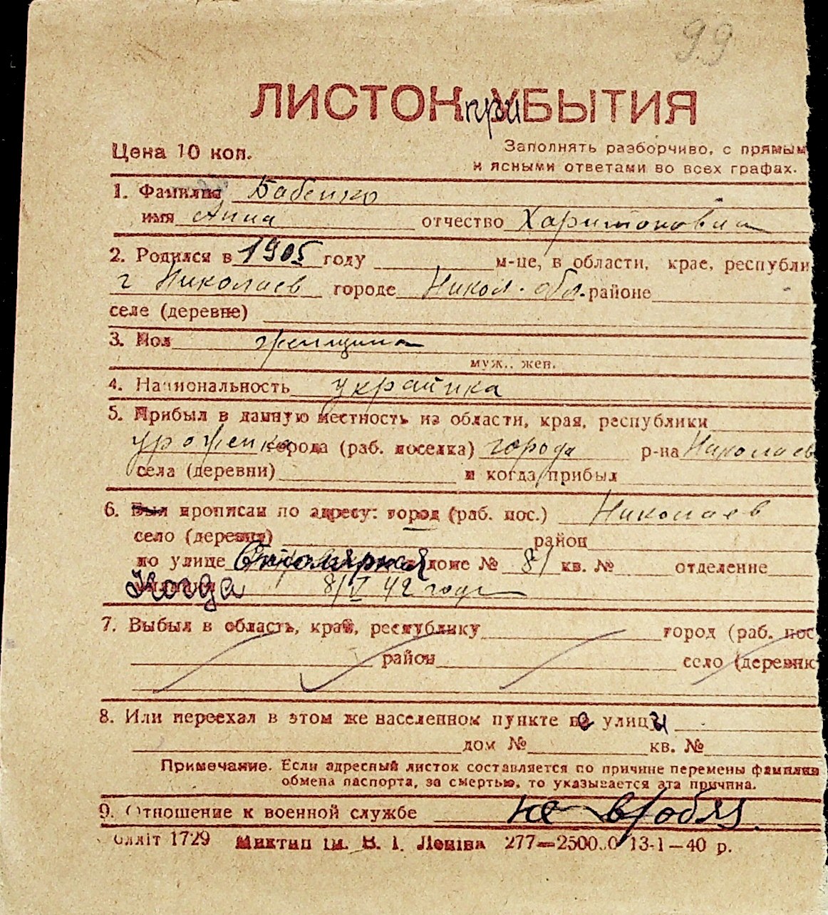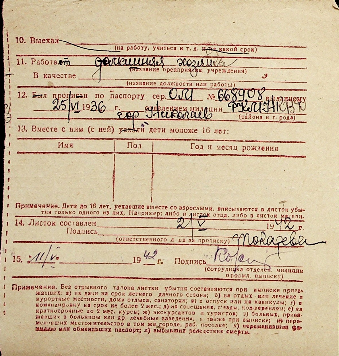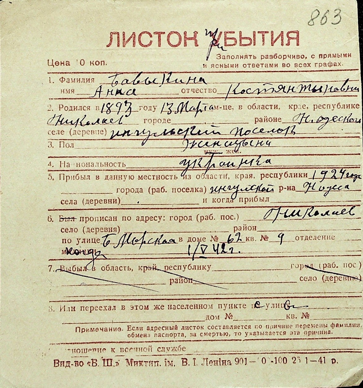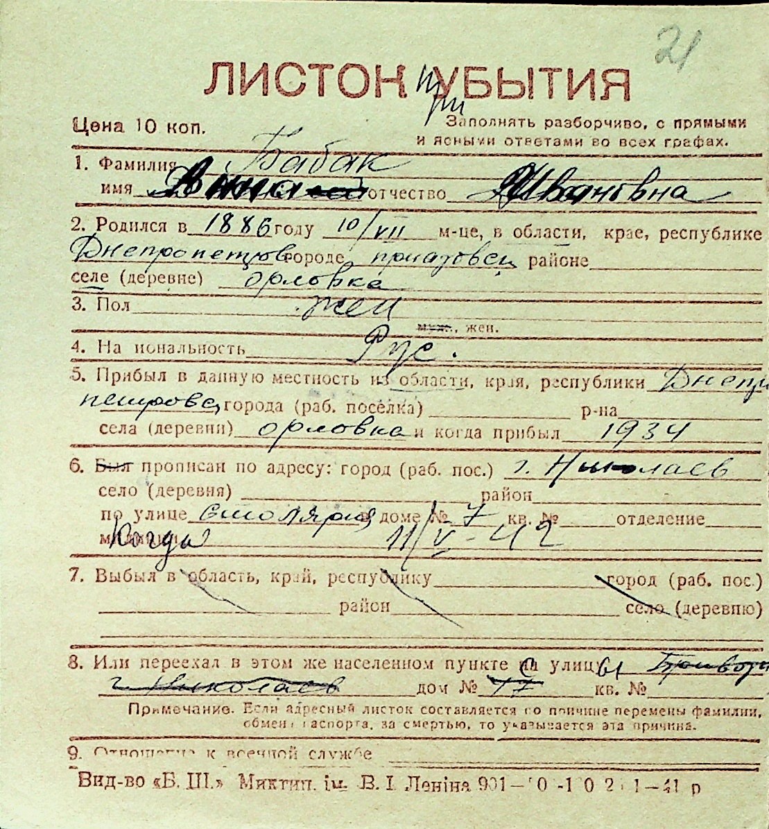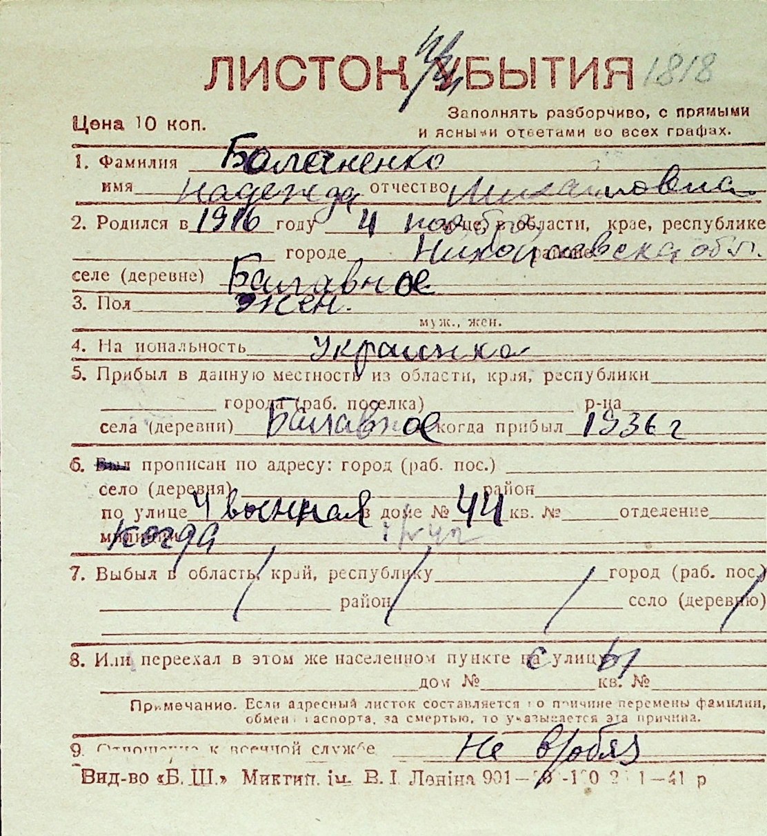 ◦ ◦ Перелік карток на осіб, які мешкали у м. Миколаїв у період окупації 1941–1944 років