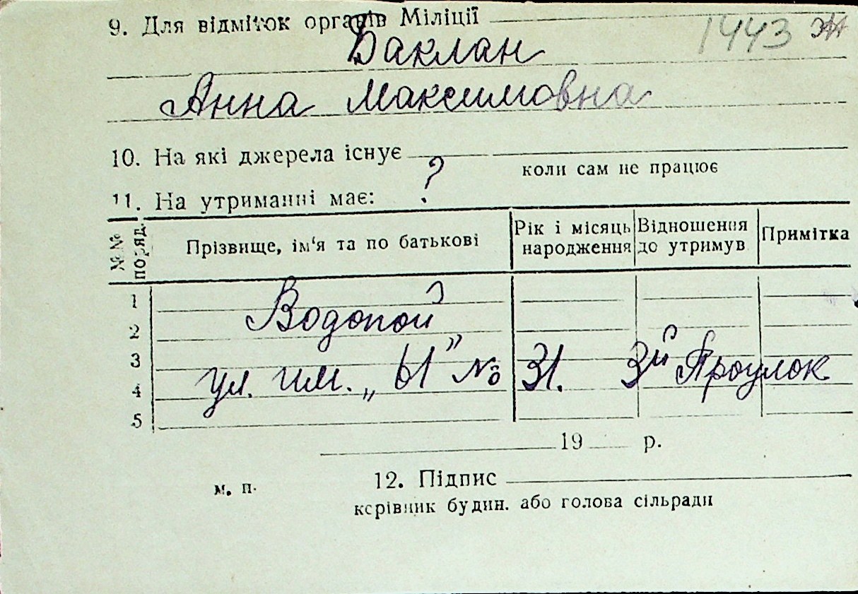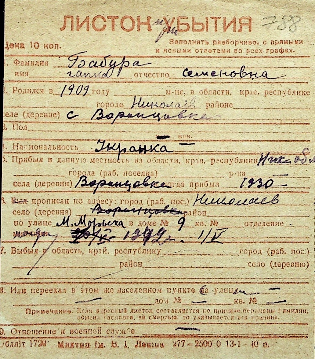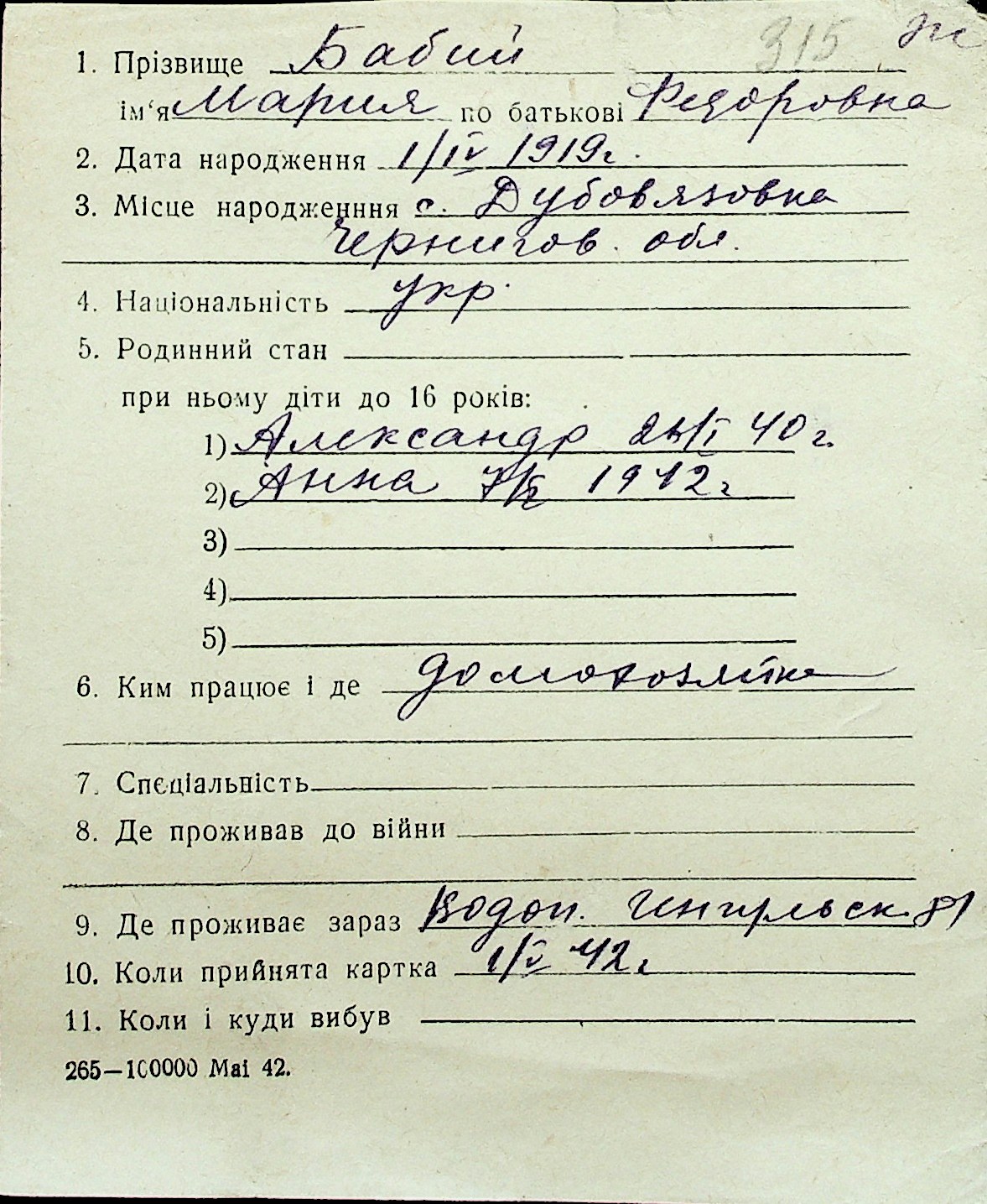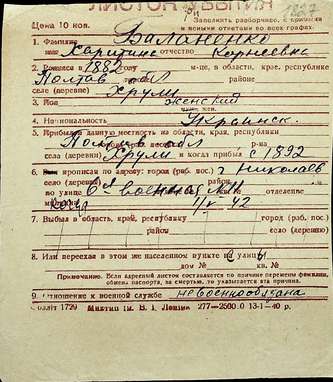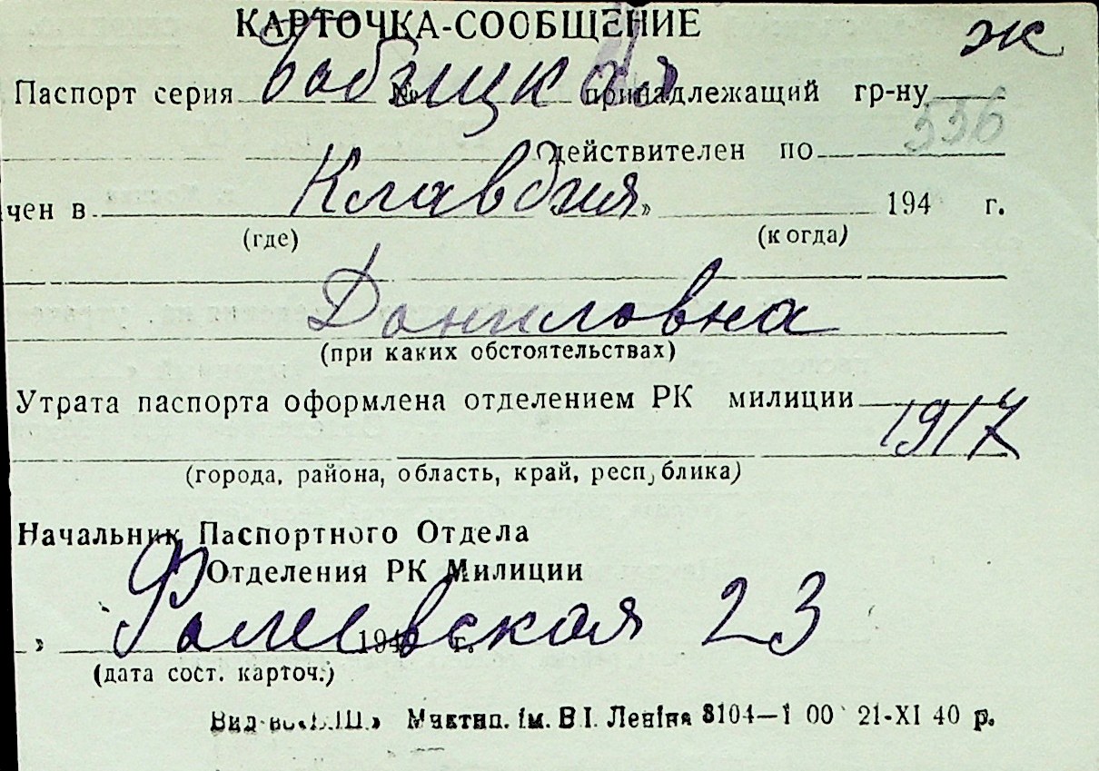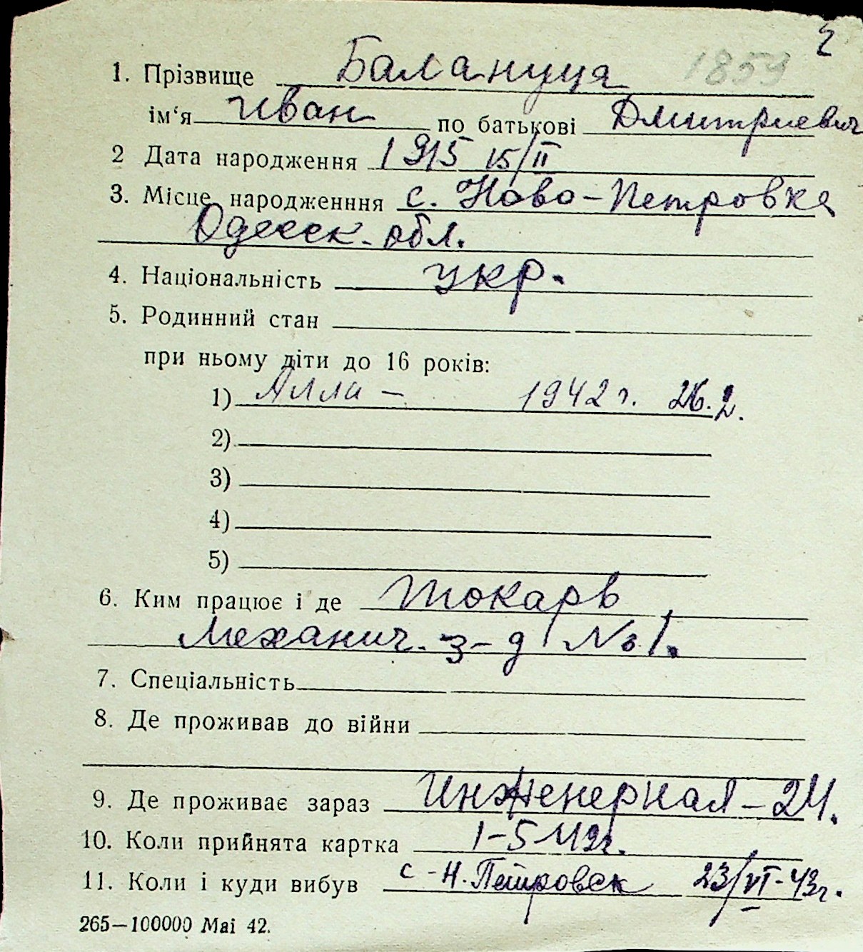 ◦ ◦ Перелік карток на осіб, які мешкали у м. Миколаїв у період окупації 1941–1944 років