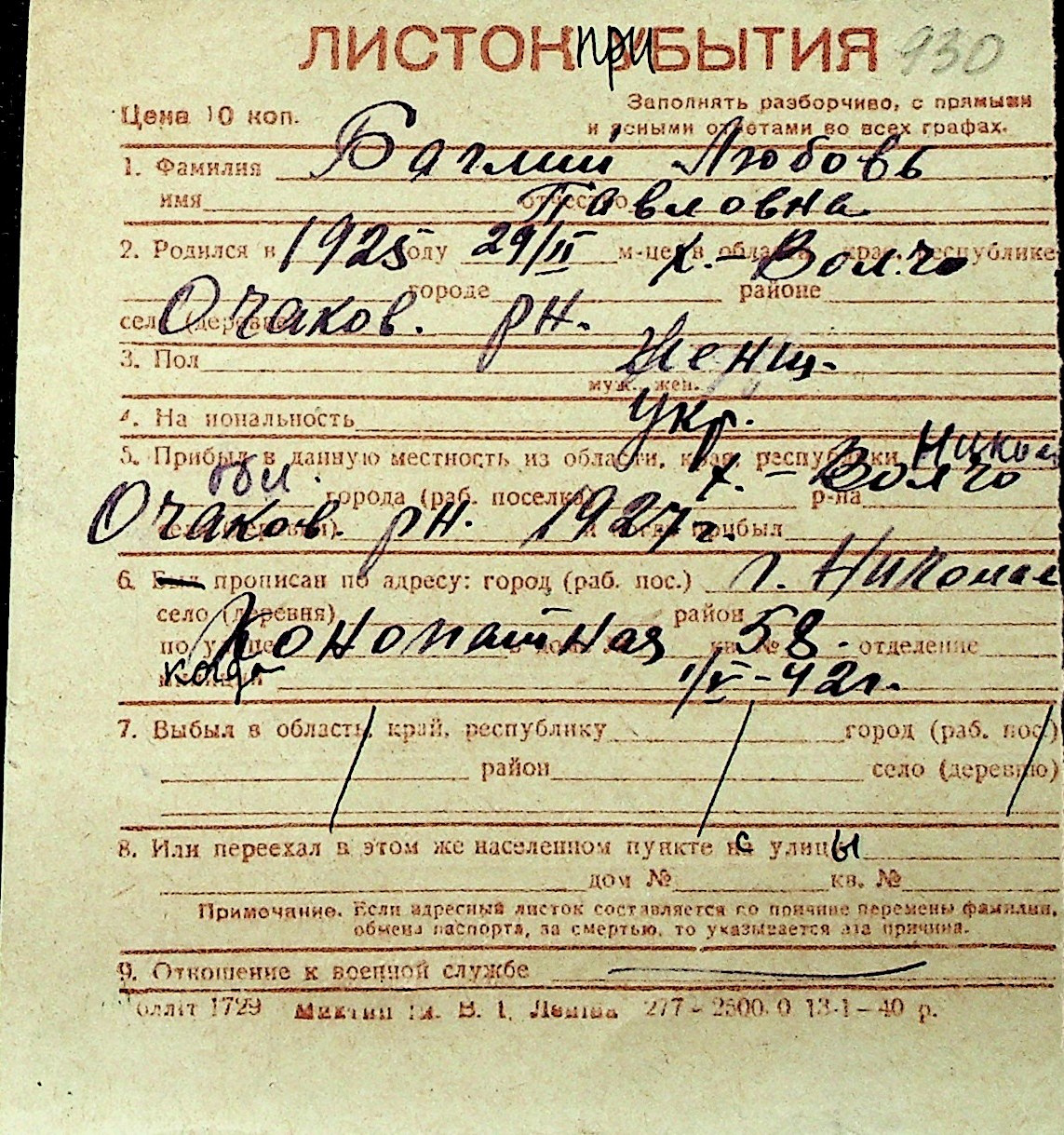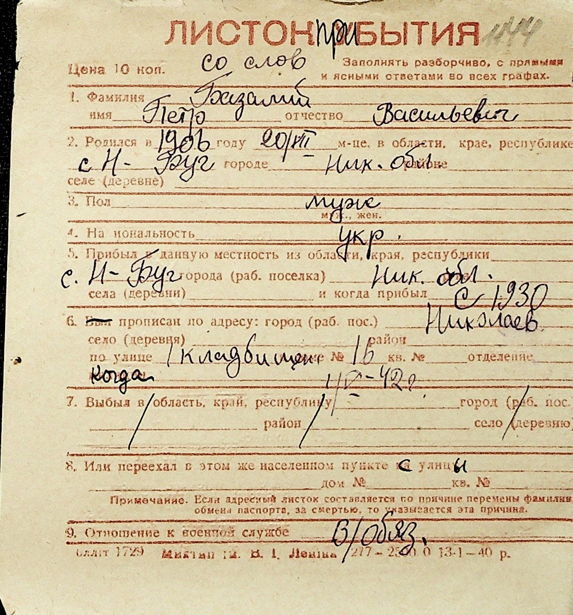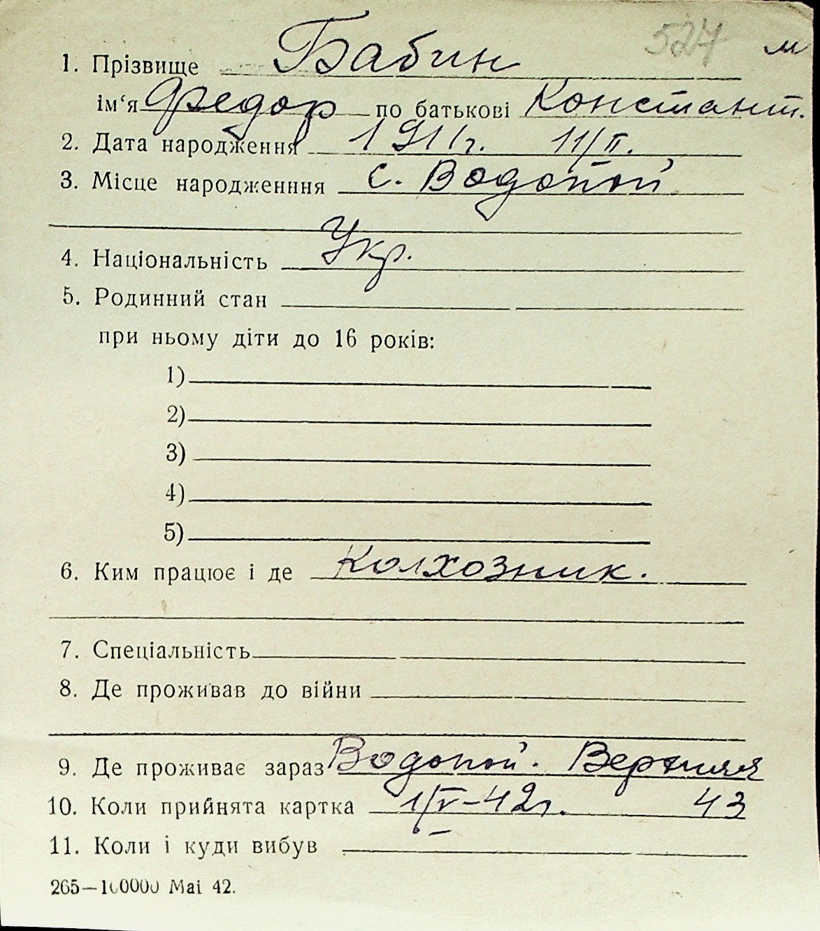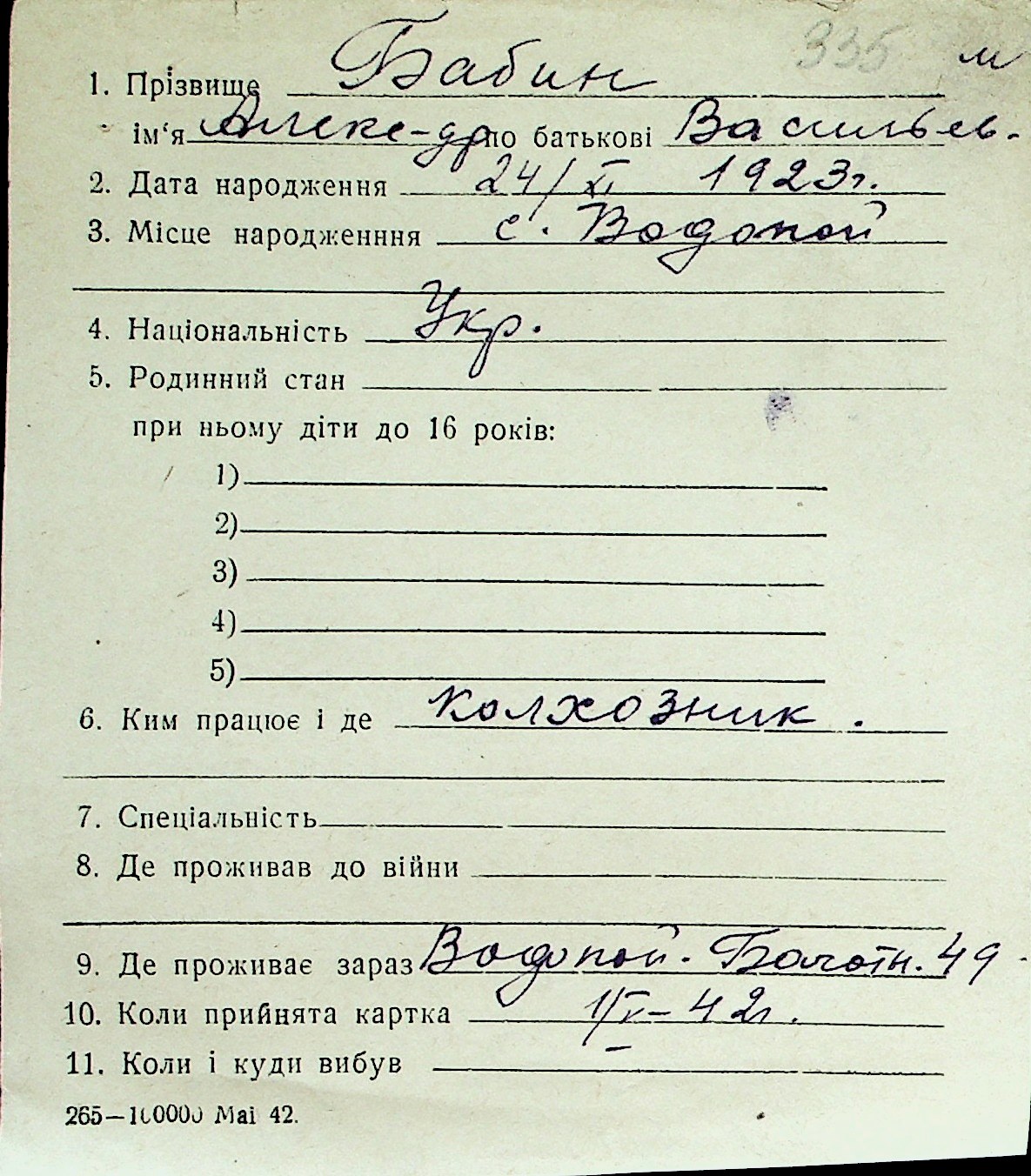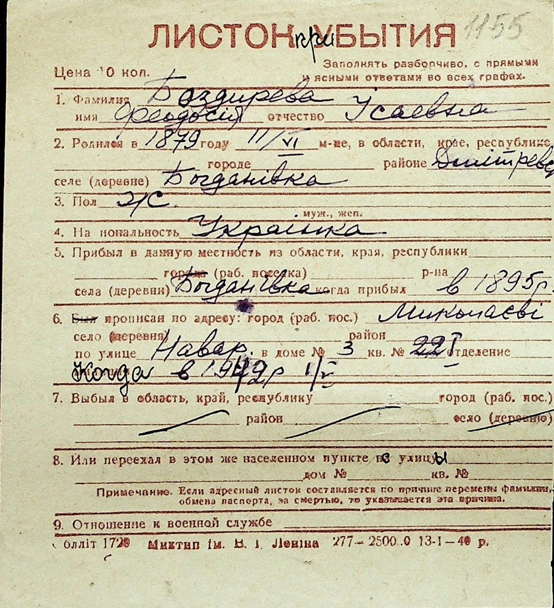 ◦ ◦ Перелік карток на осіб, які мешкали у м. Миколаїв у період окупації 1941–1944 років
