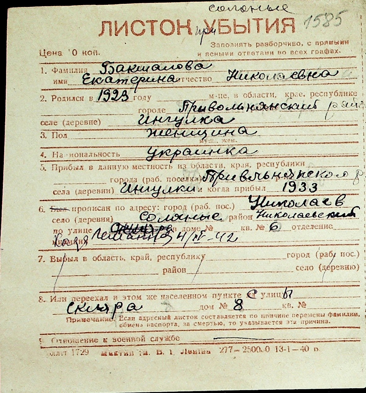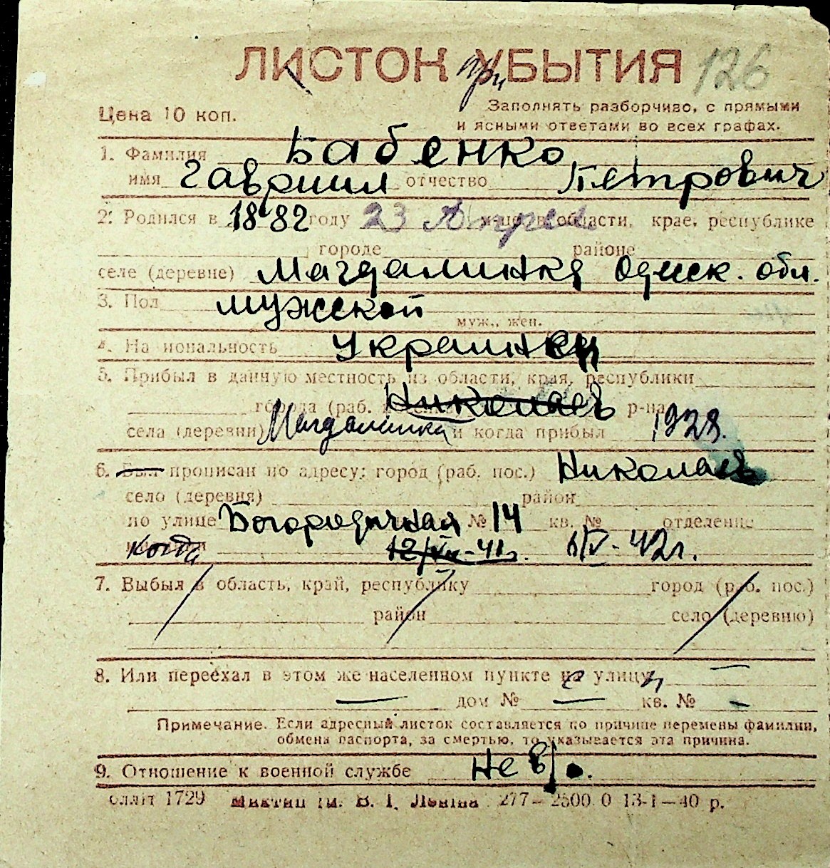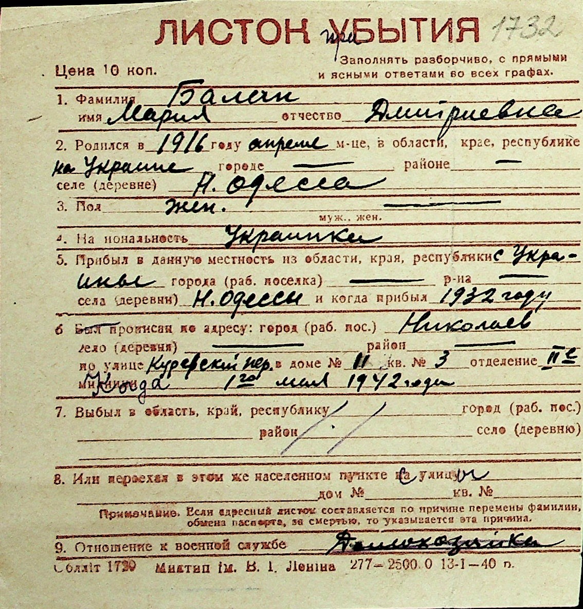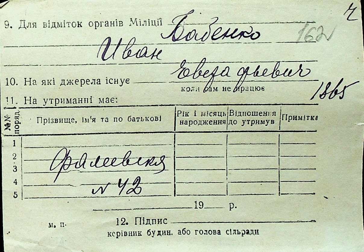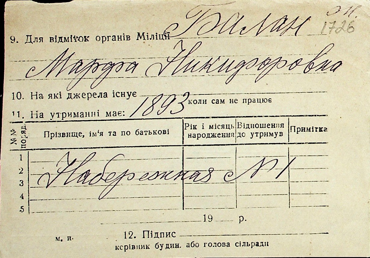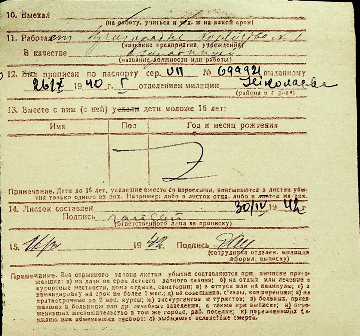 ◦ ◦ Перелік карток на осіб, які мешкали у м. Миколаїв у період окупації 1941–1944 років