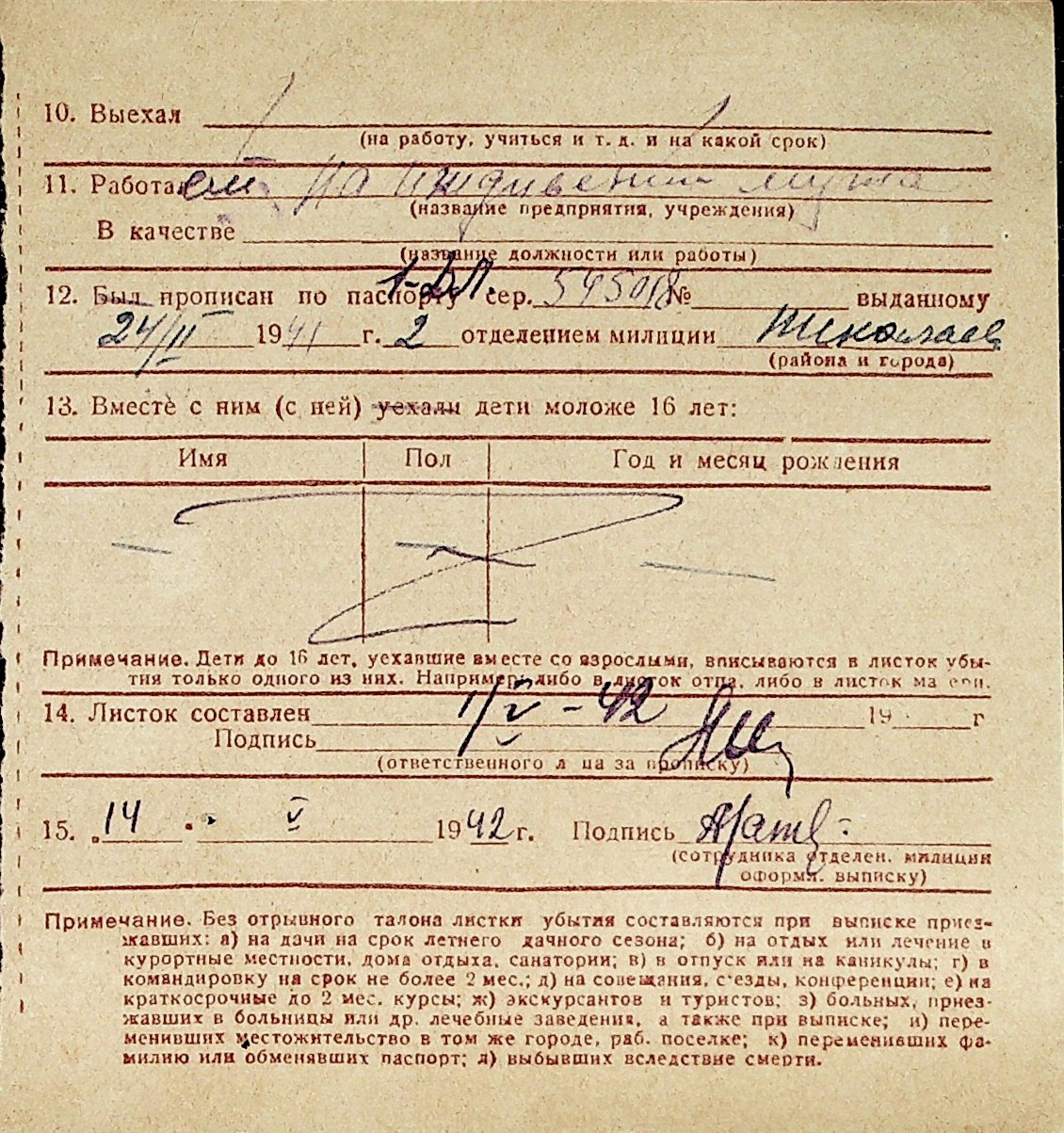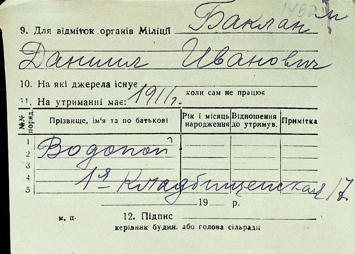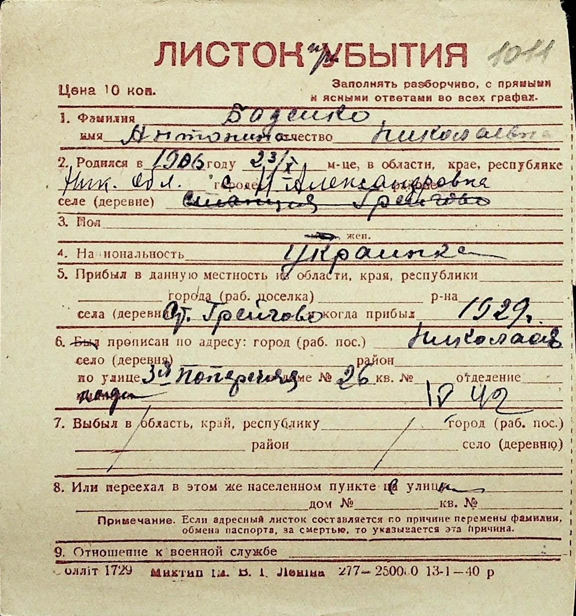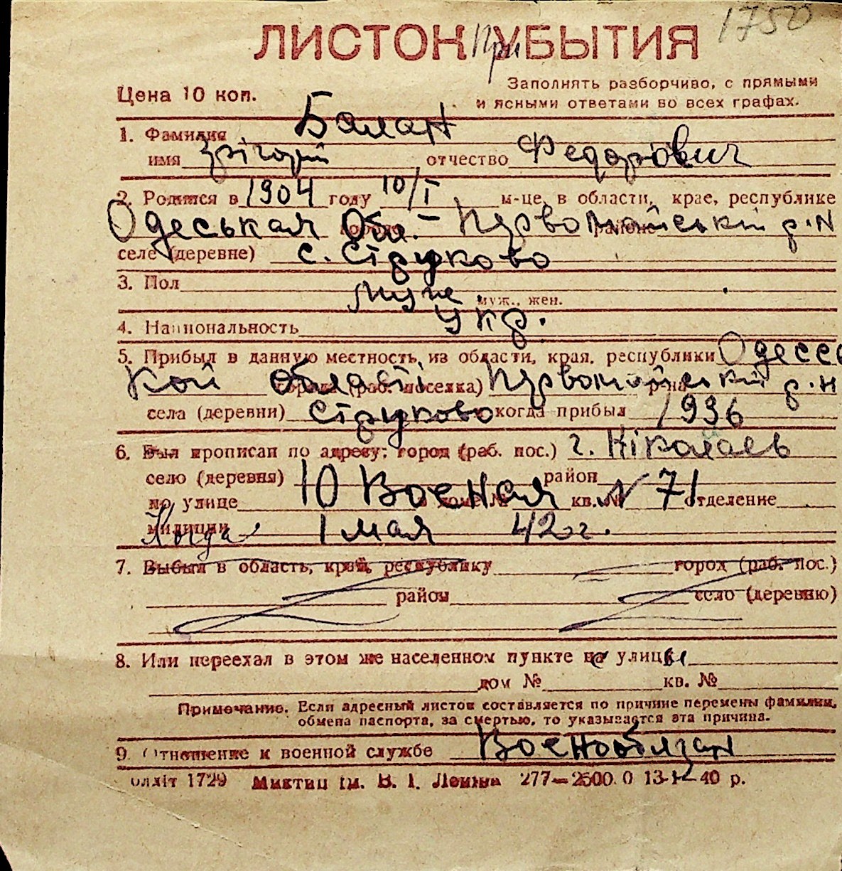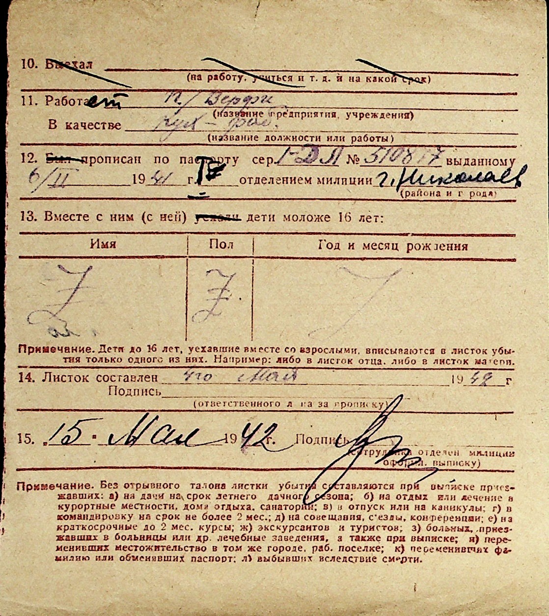 ◦ ◦ Перелік карток на осіб, які мешкали у м. Миколаїв у період окупації 1941–1944 років