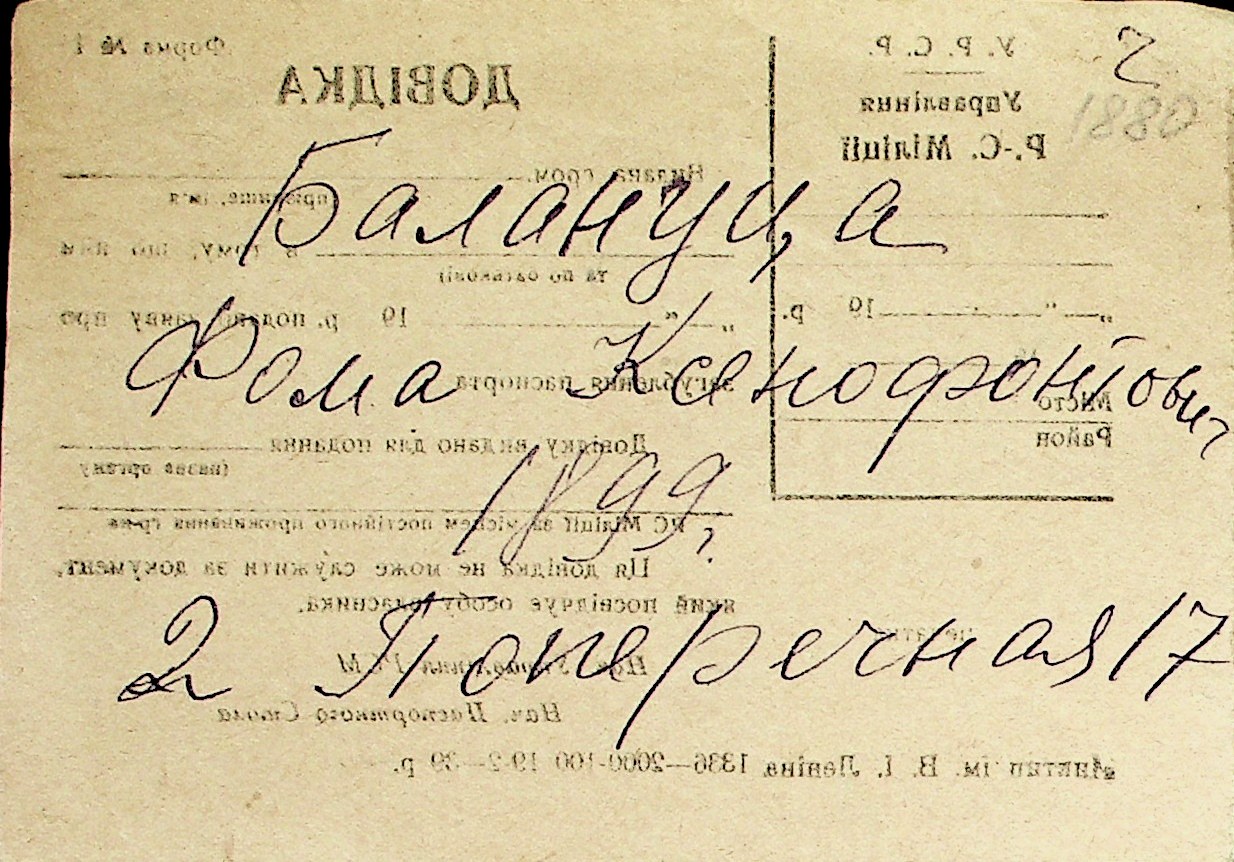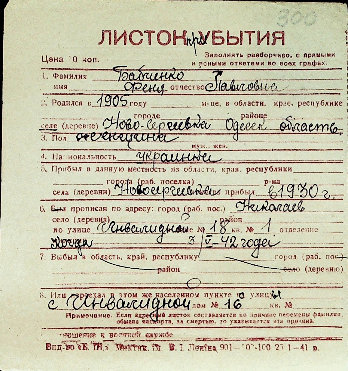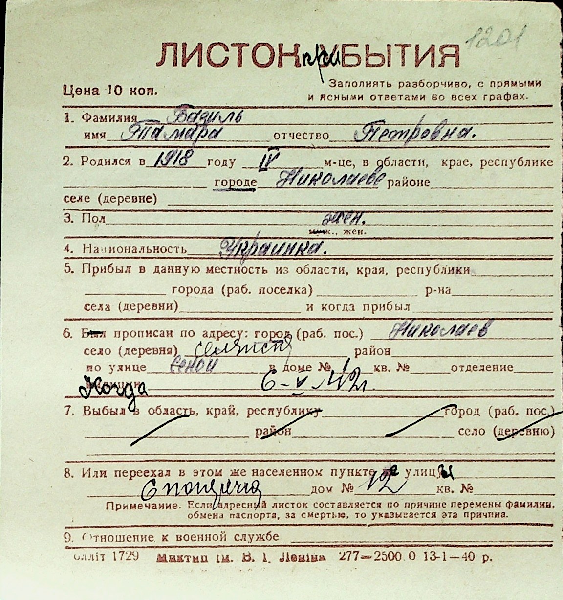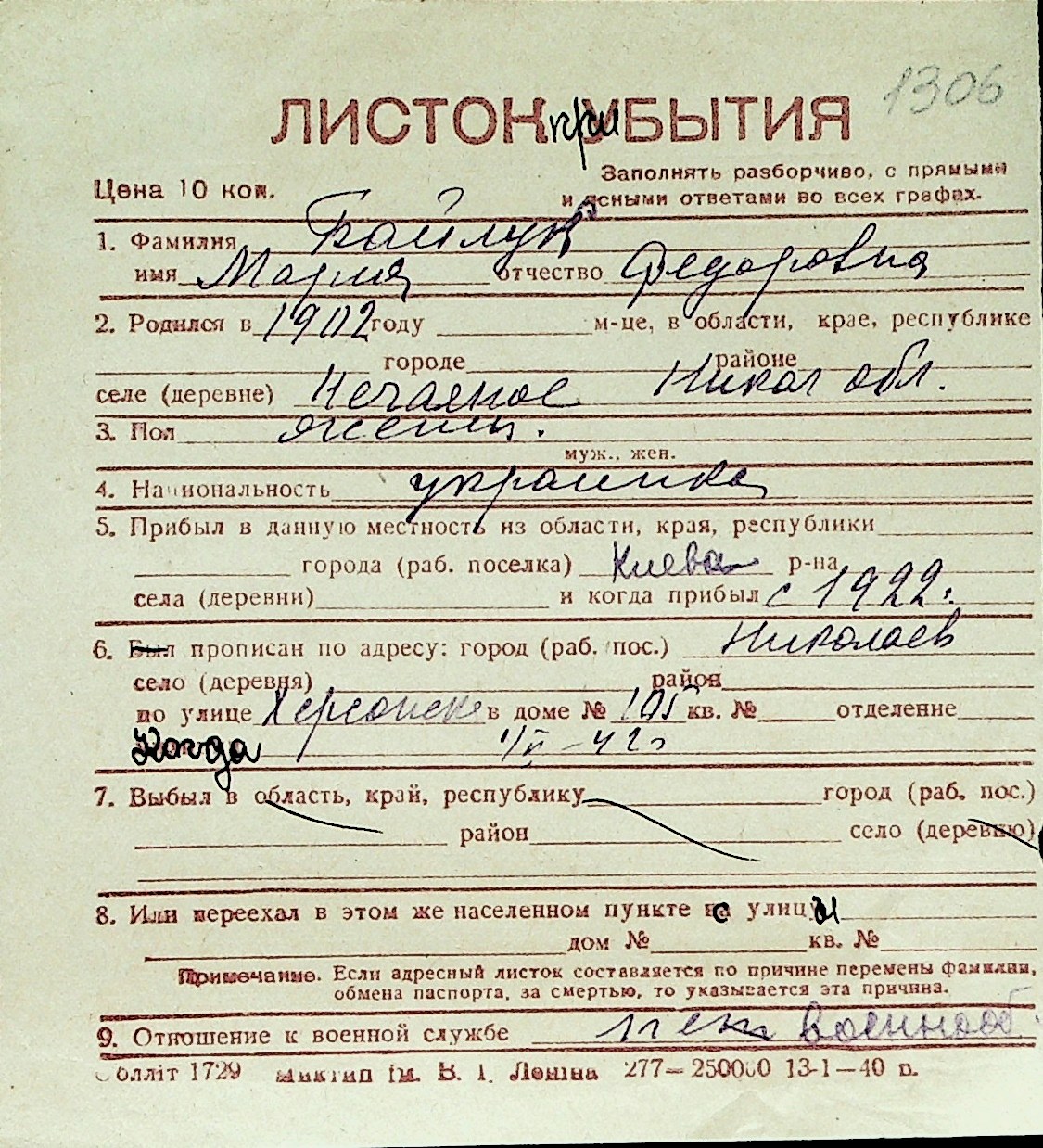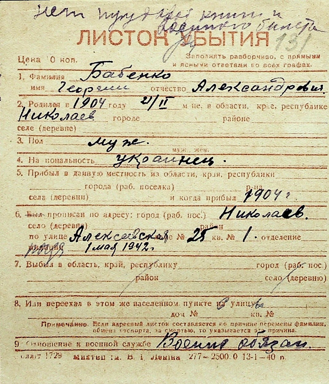 ◦ ◦ Перелік карток на осіб, які мешкали у м. Миколаїв у період окупації 1941–1944 років