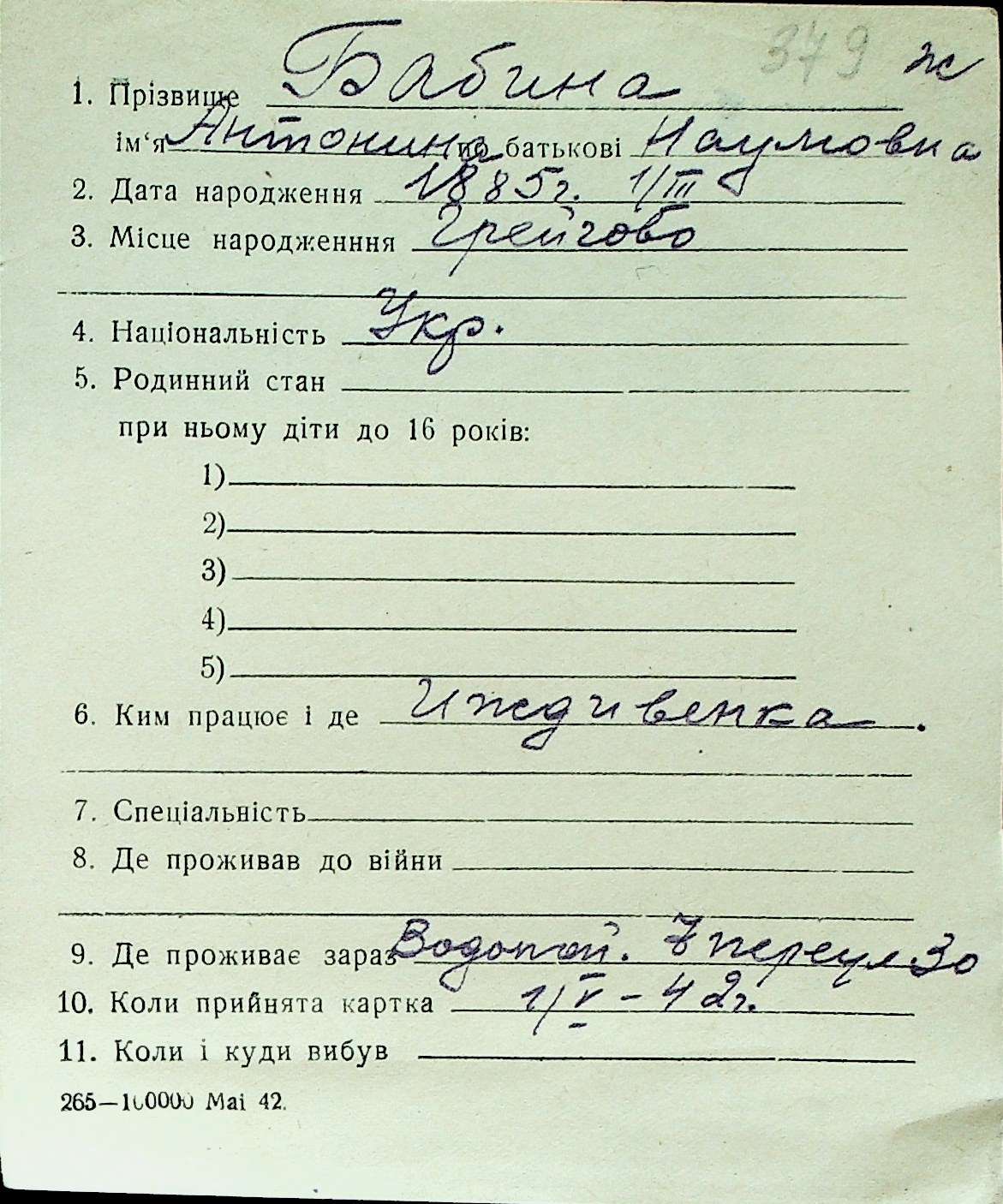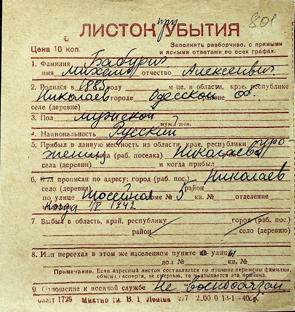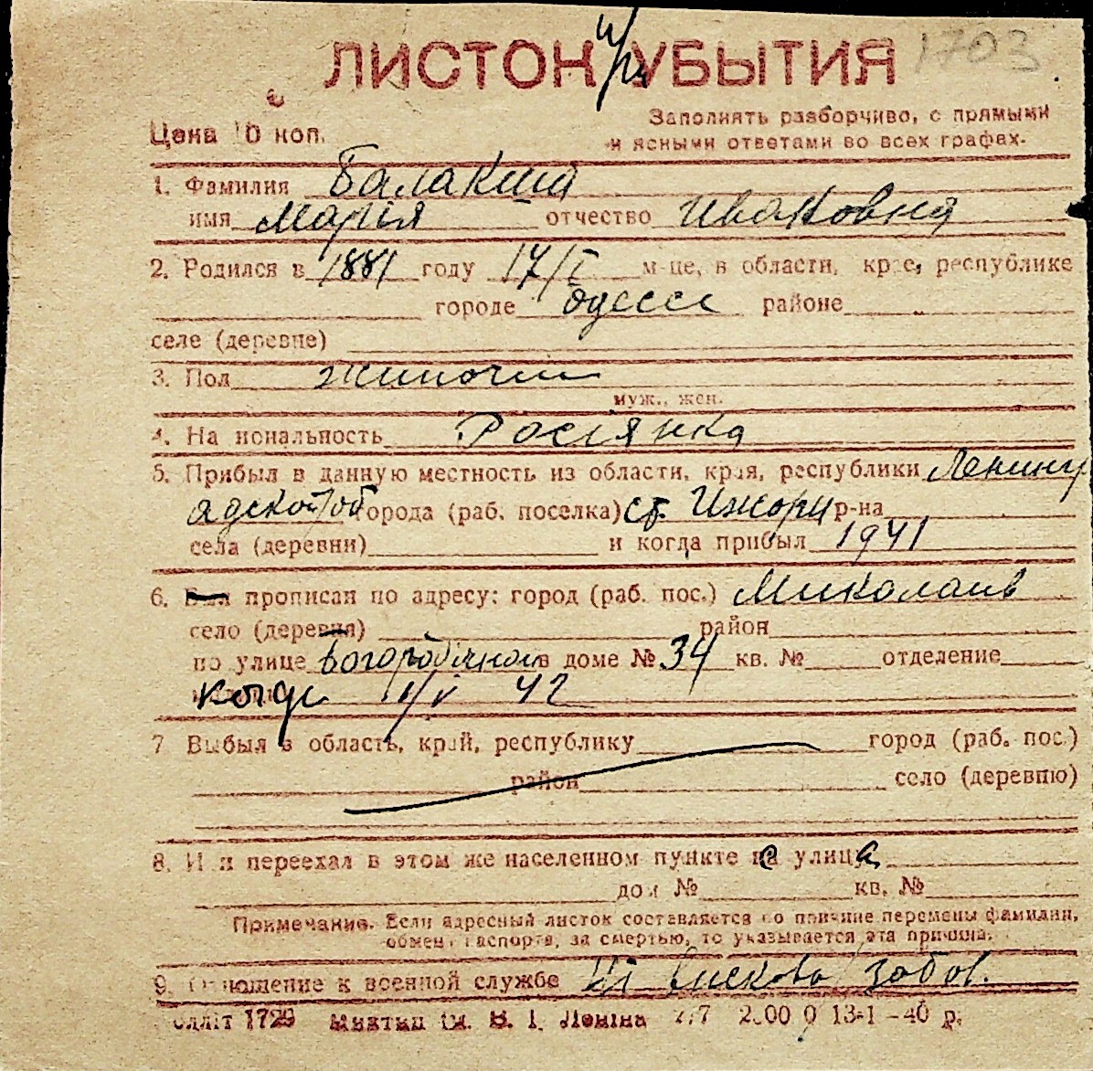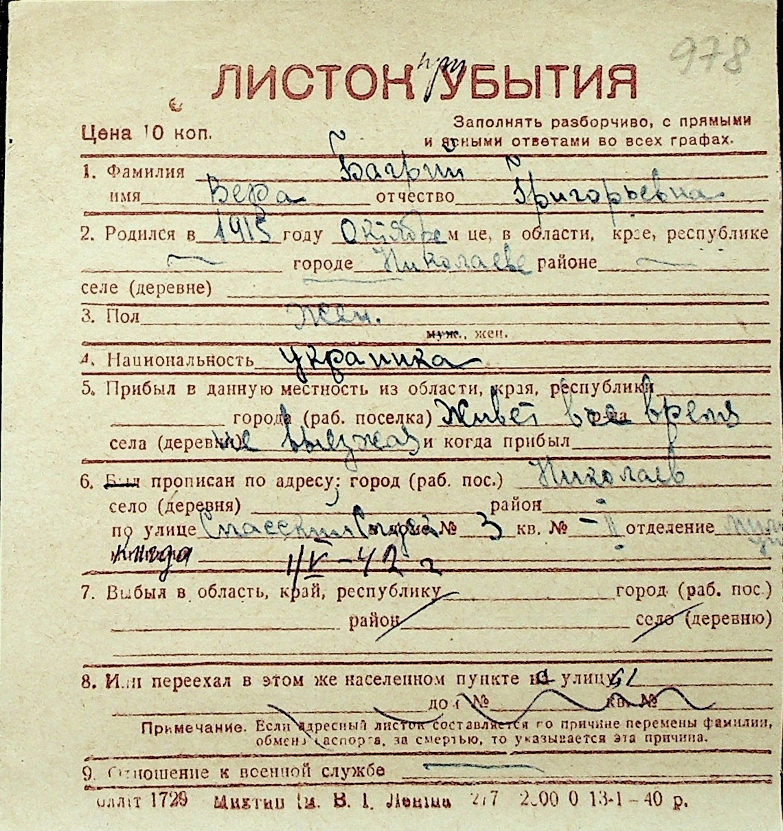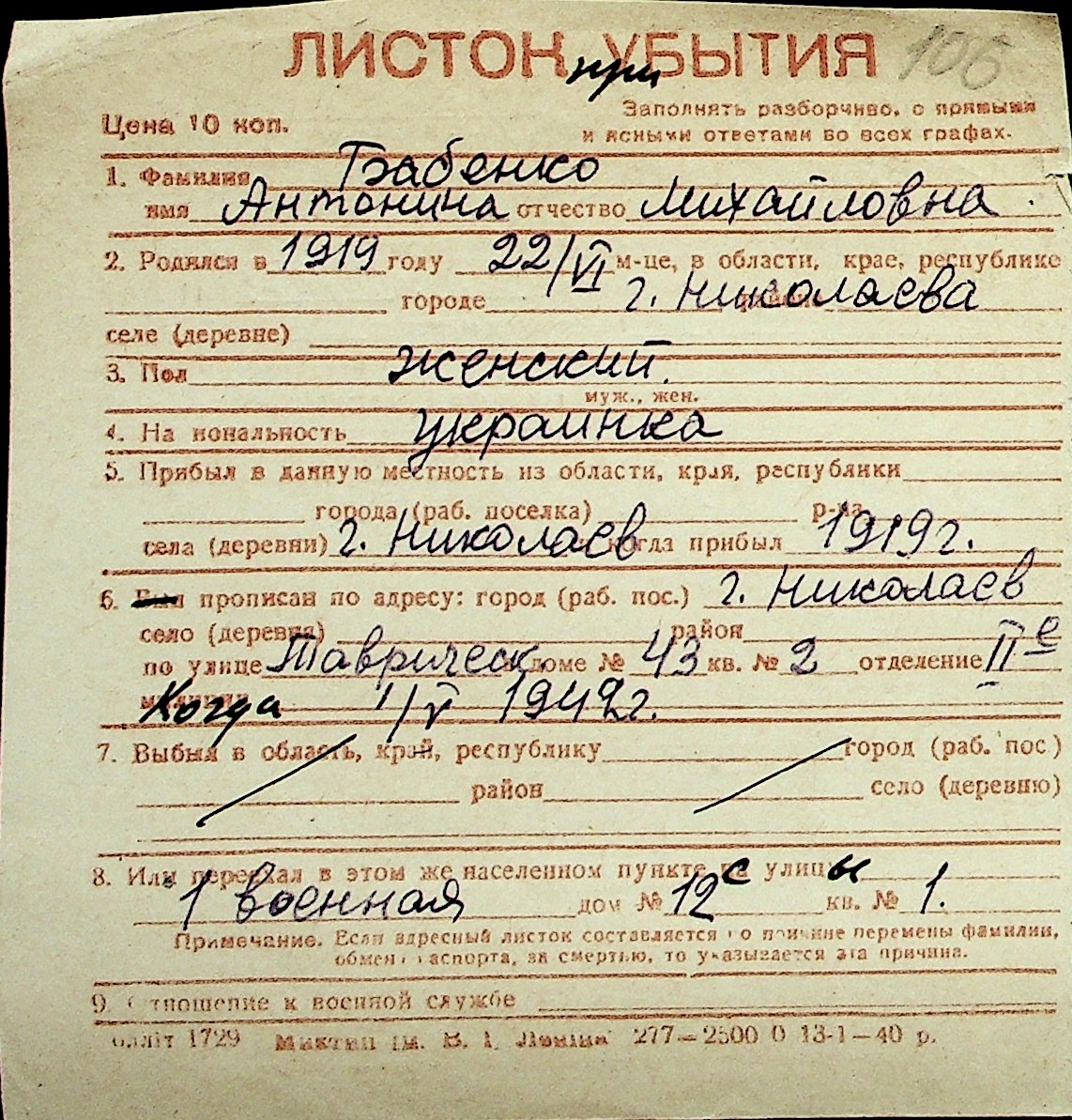 ◦ ◦ Перелік карток на осіб, які мешкали у м. Миколаїв у період окупації 1941–1944 років