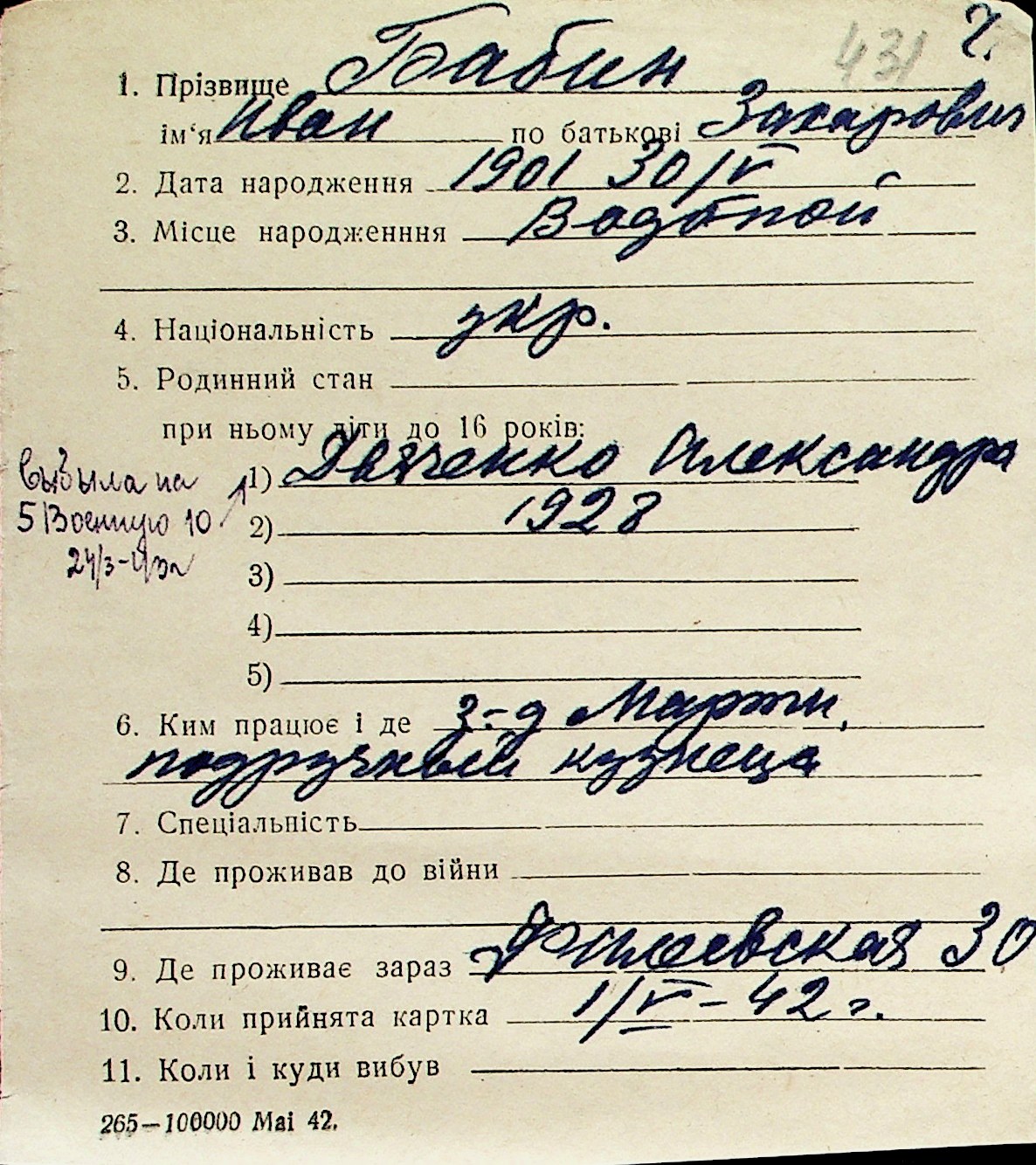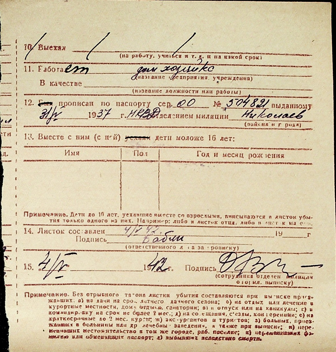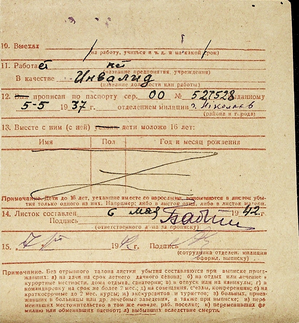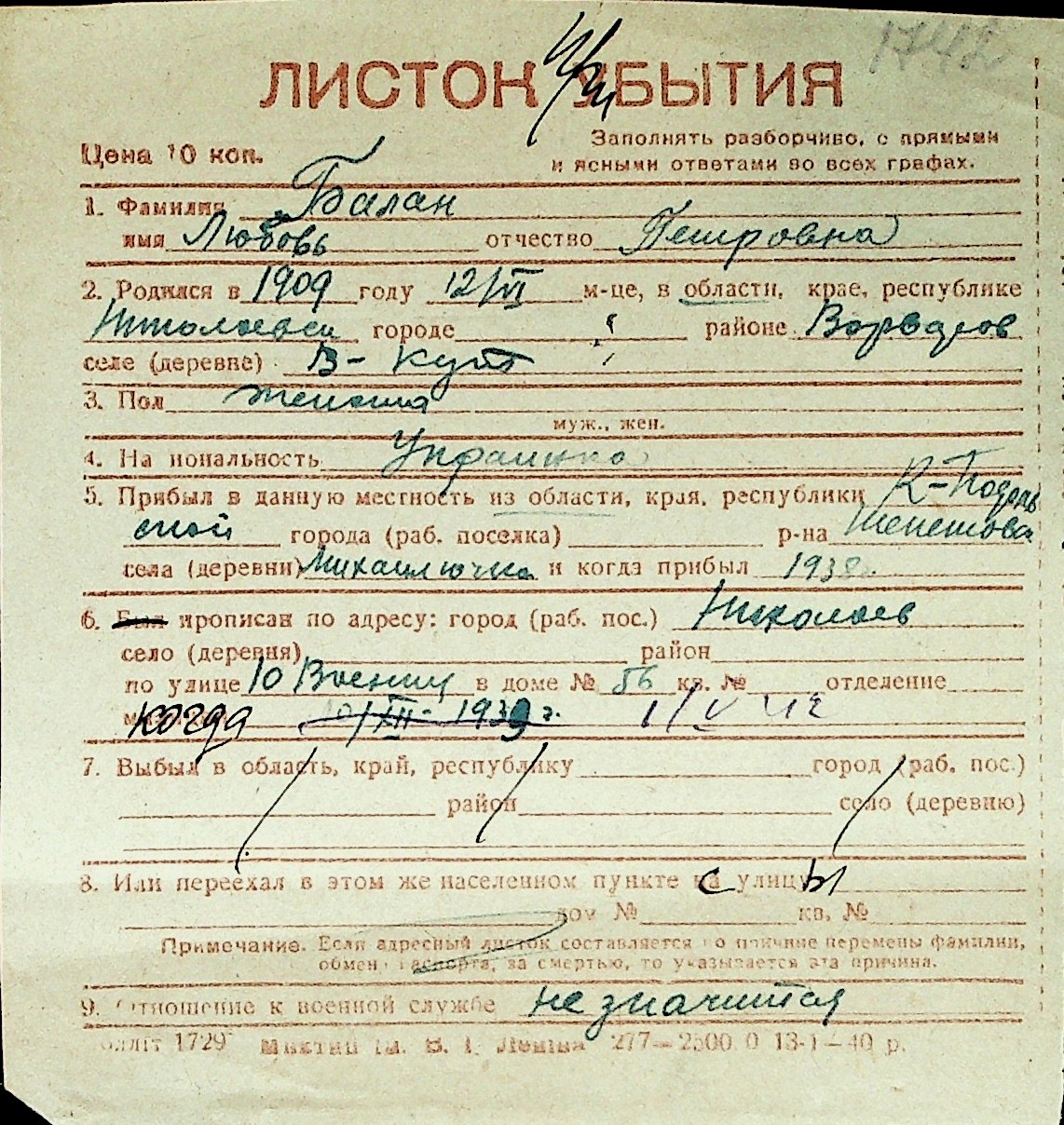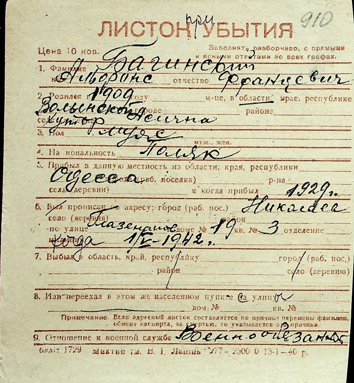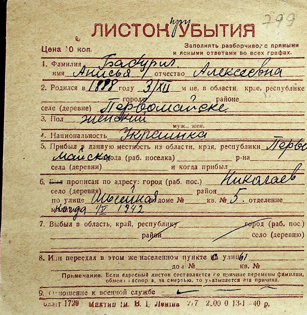 ◦ ◦ Перелік карток на осіб, які мешкали у м. Миколаїв у період окупації 1941–1944 років