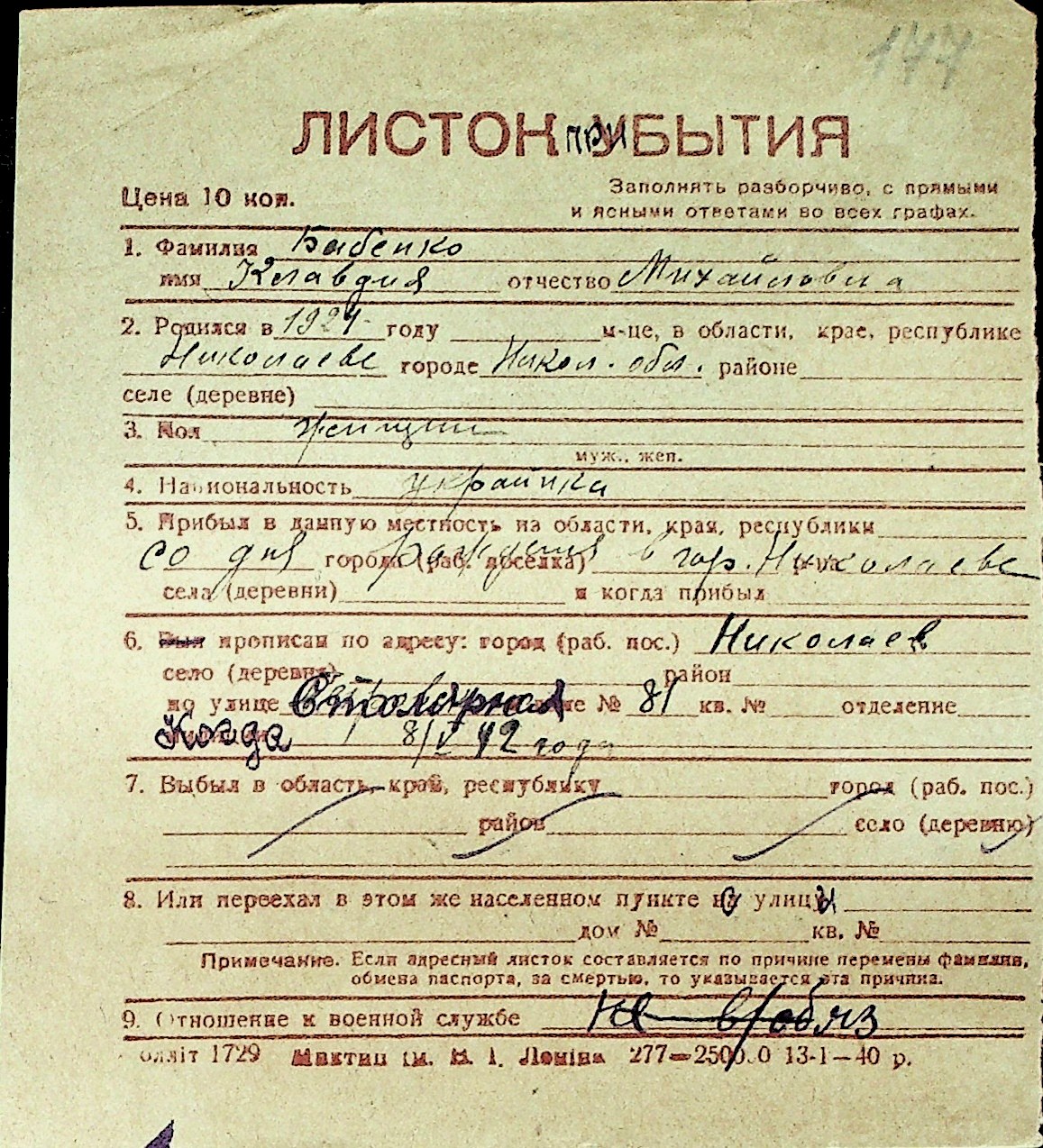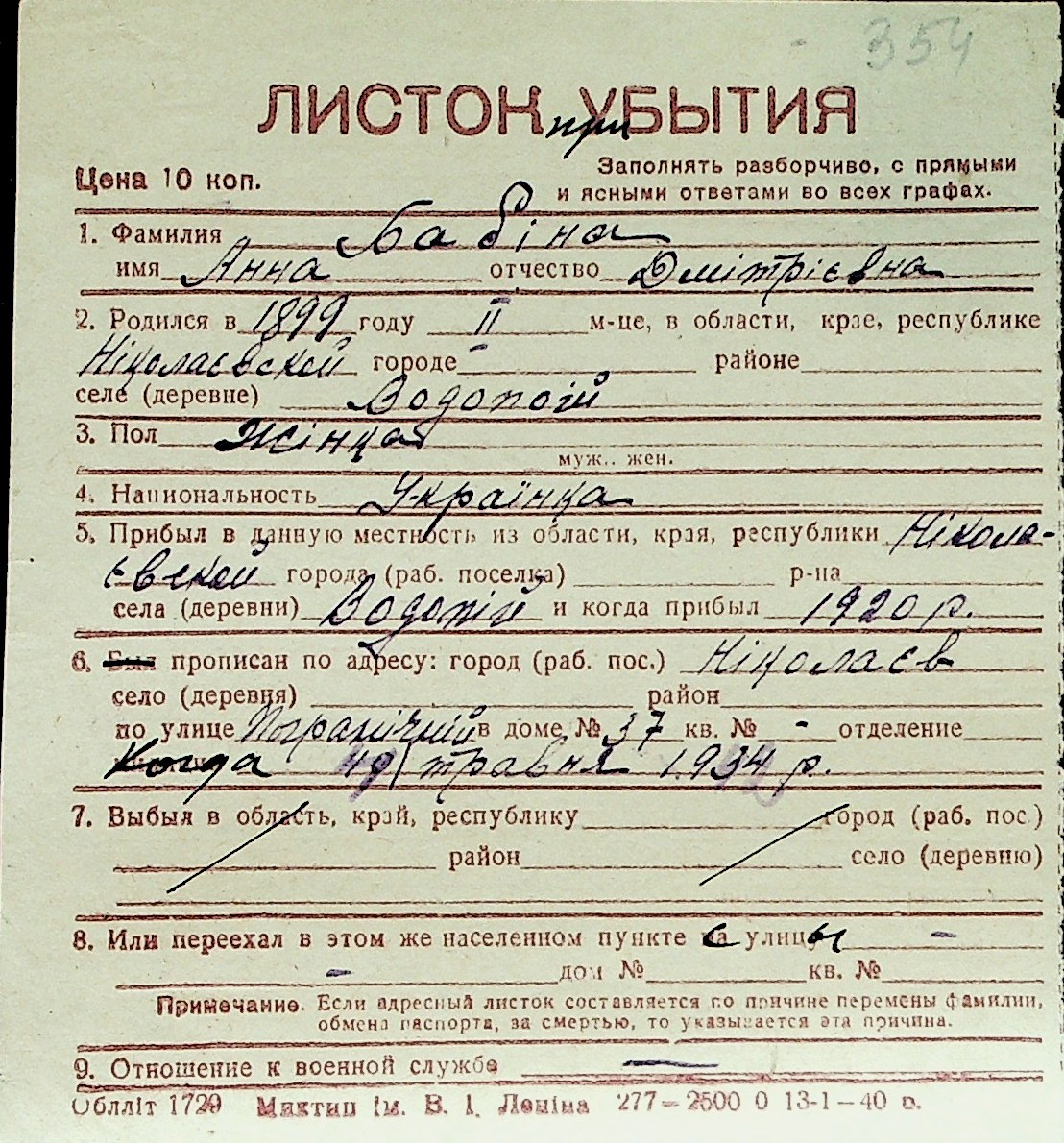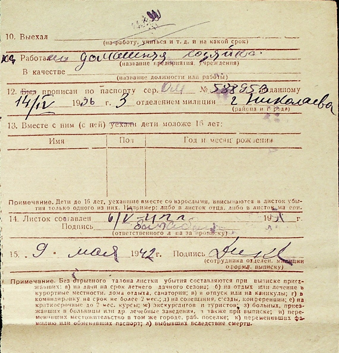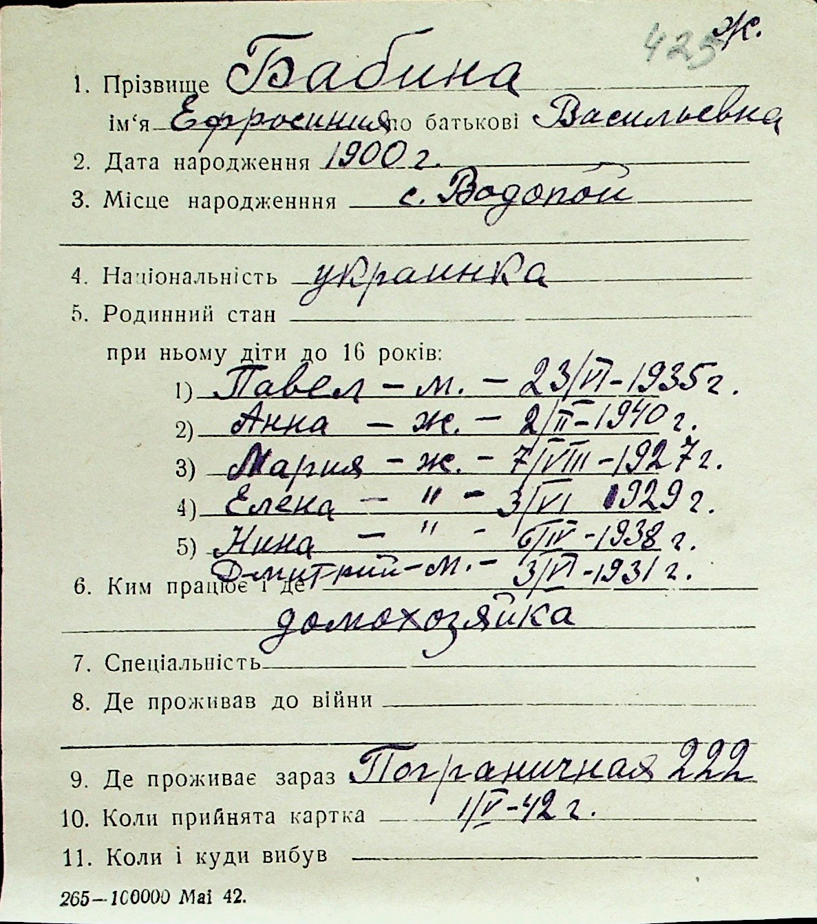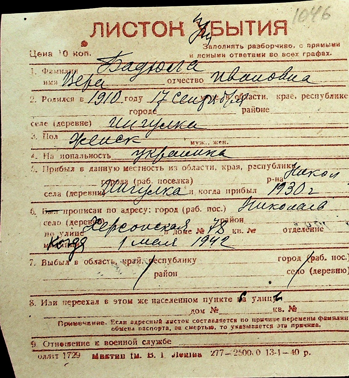◦ ◦ Перелік карток на осіб, які мешкали у м. Миколаїв у період окупації 1941–1944 років
