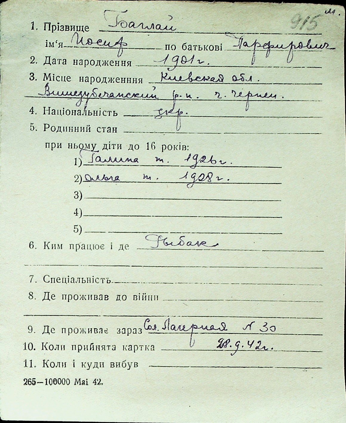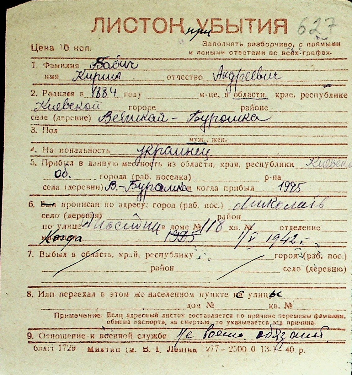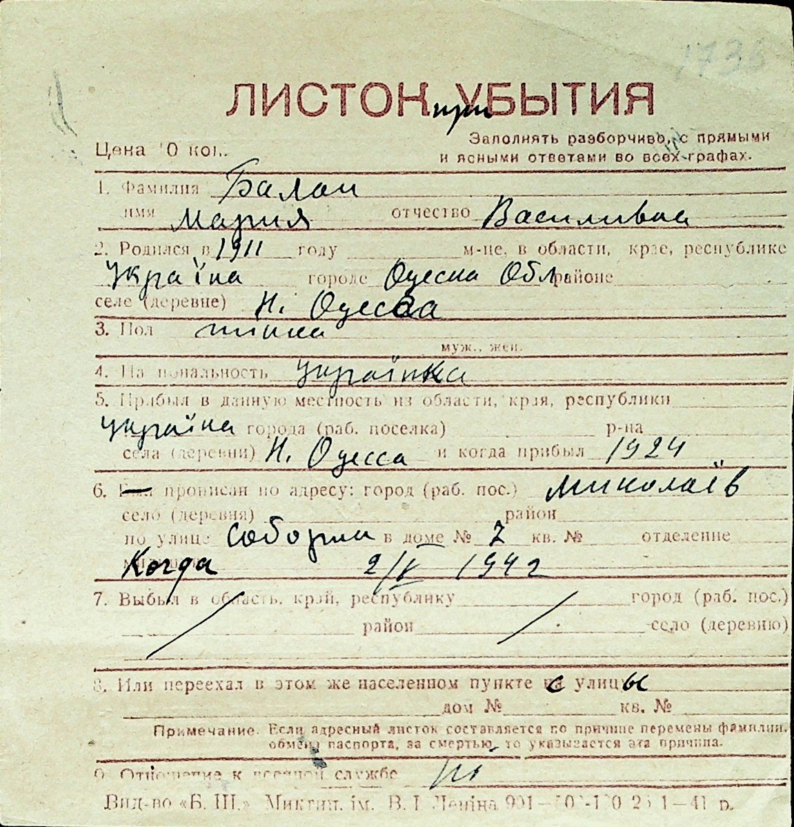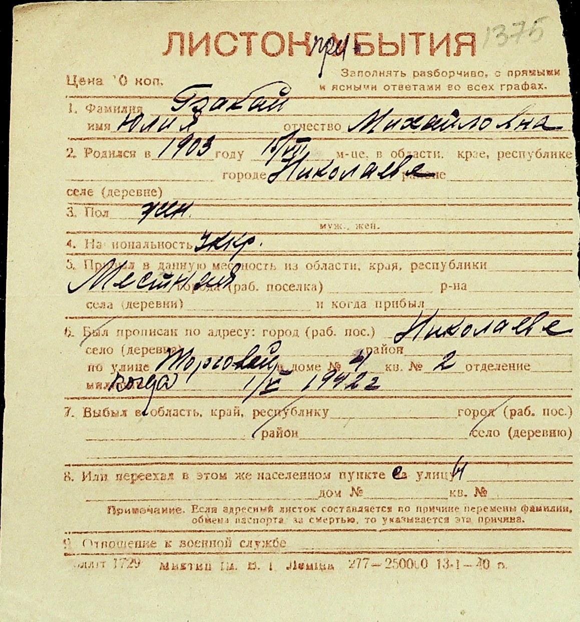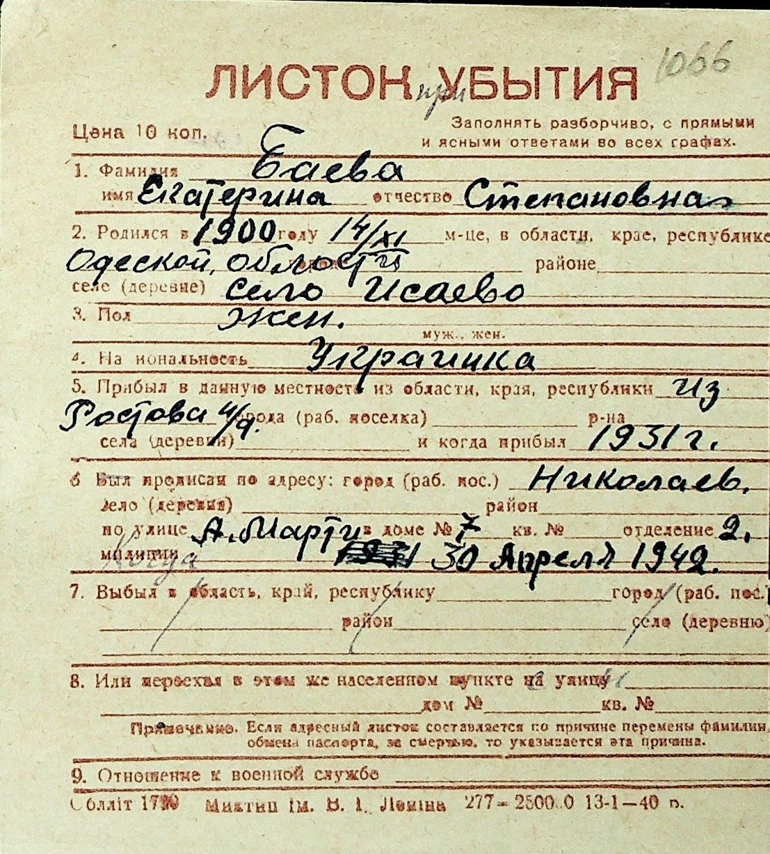 ◦ ◦ Перелік карток на осіб, які мешкали у м. Миколаїв у період окупації 1941–1944 років