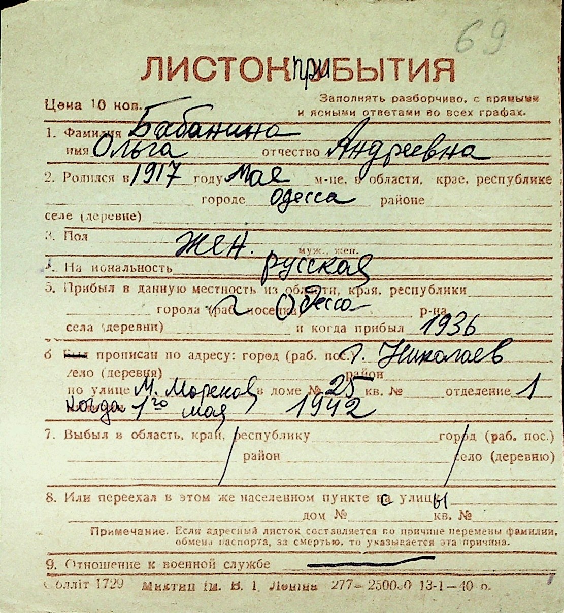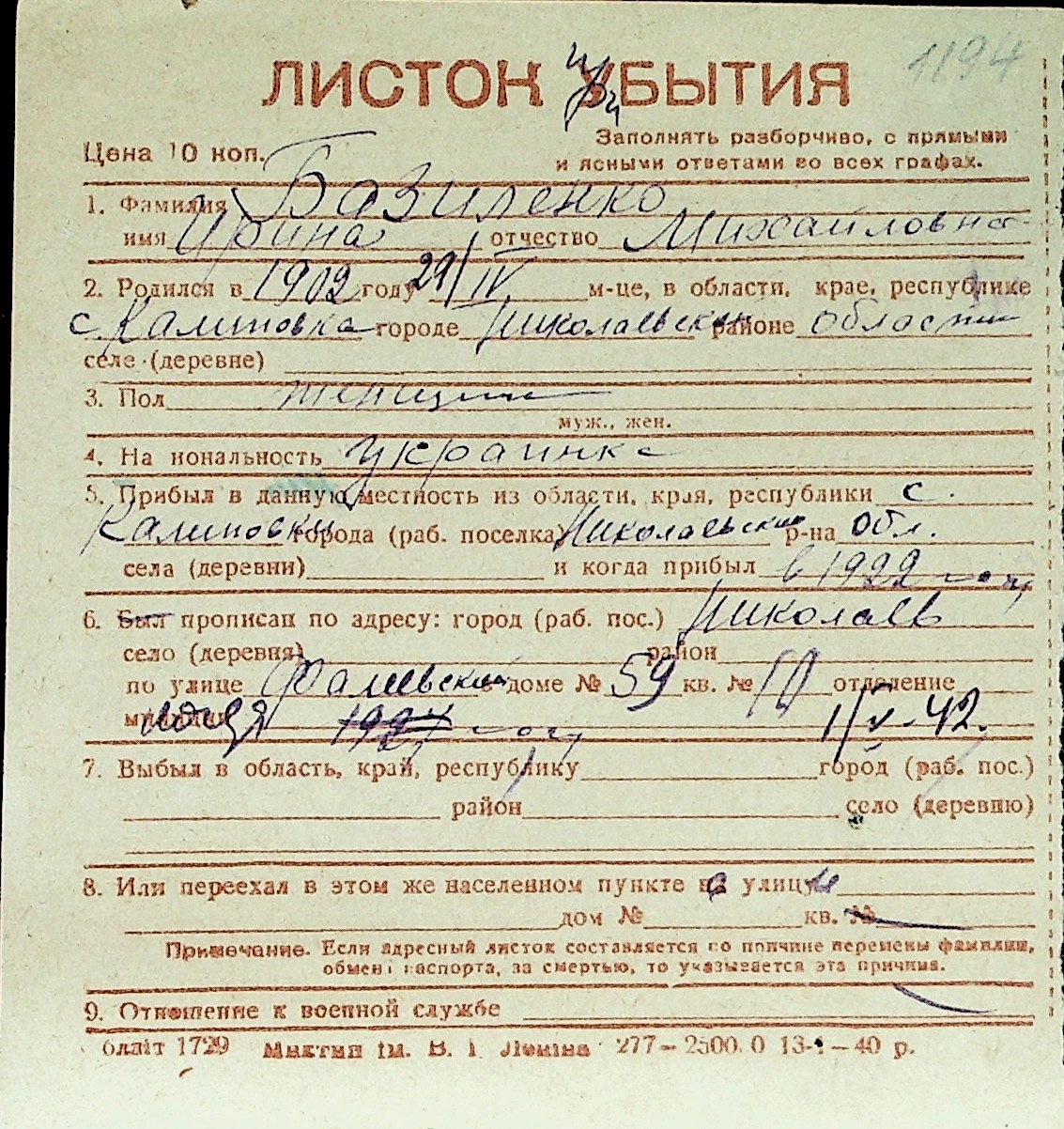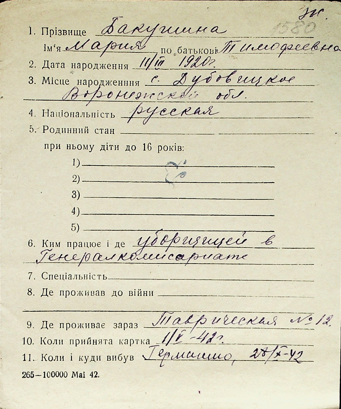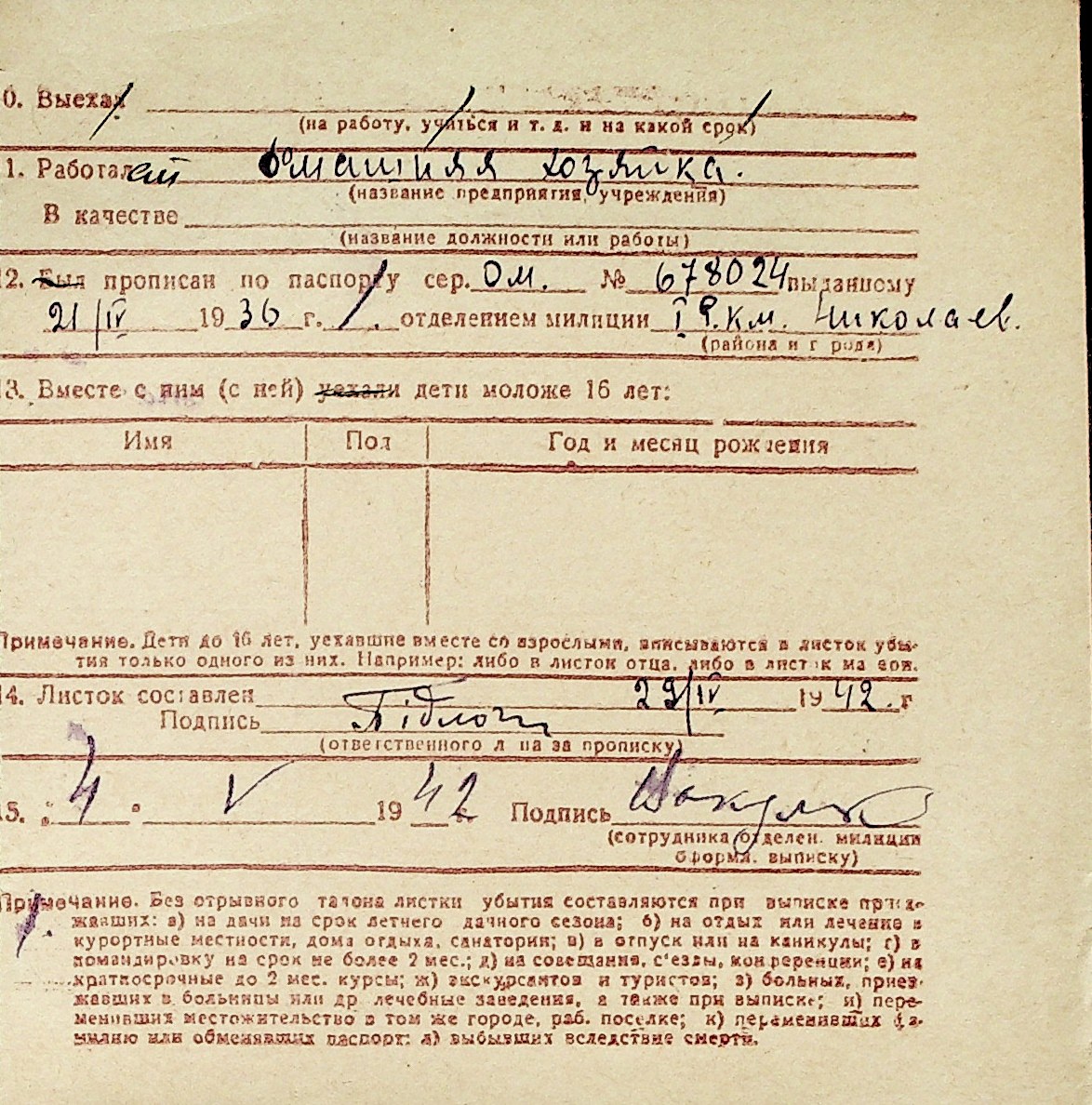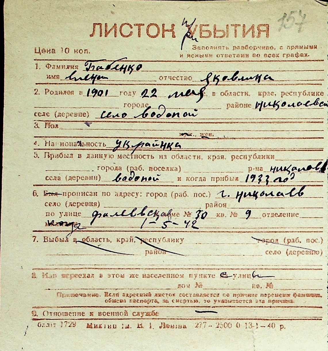 ◦ ◦ Перелік карток на осіб, які мешкали у м. Миколаїв у період окупації 1941–1944 років