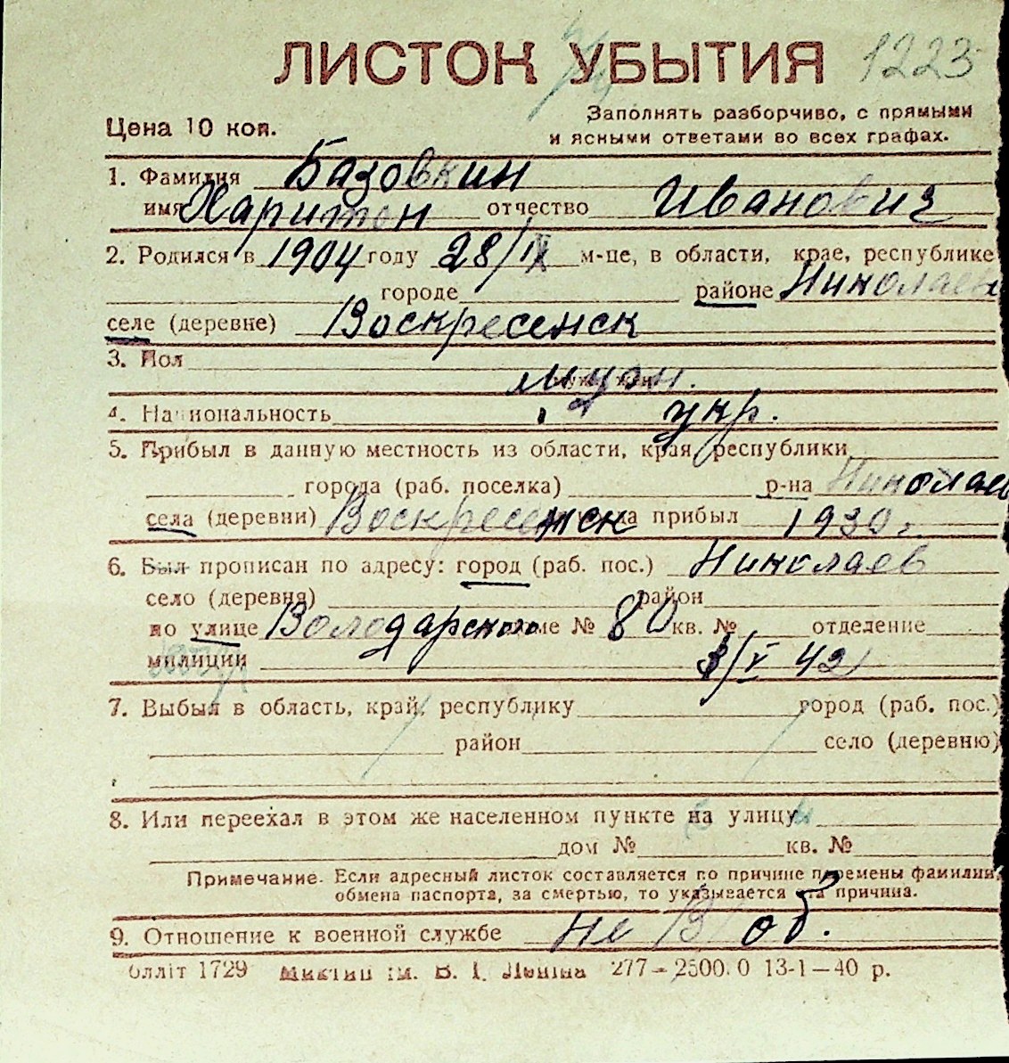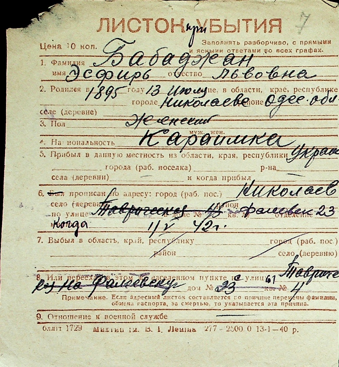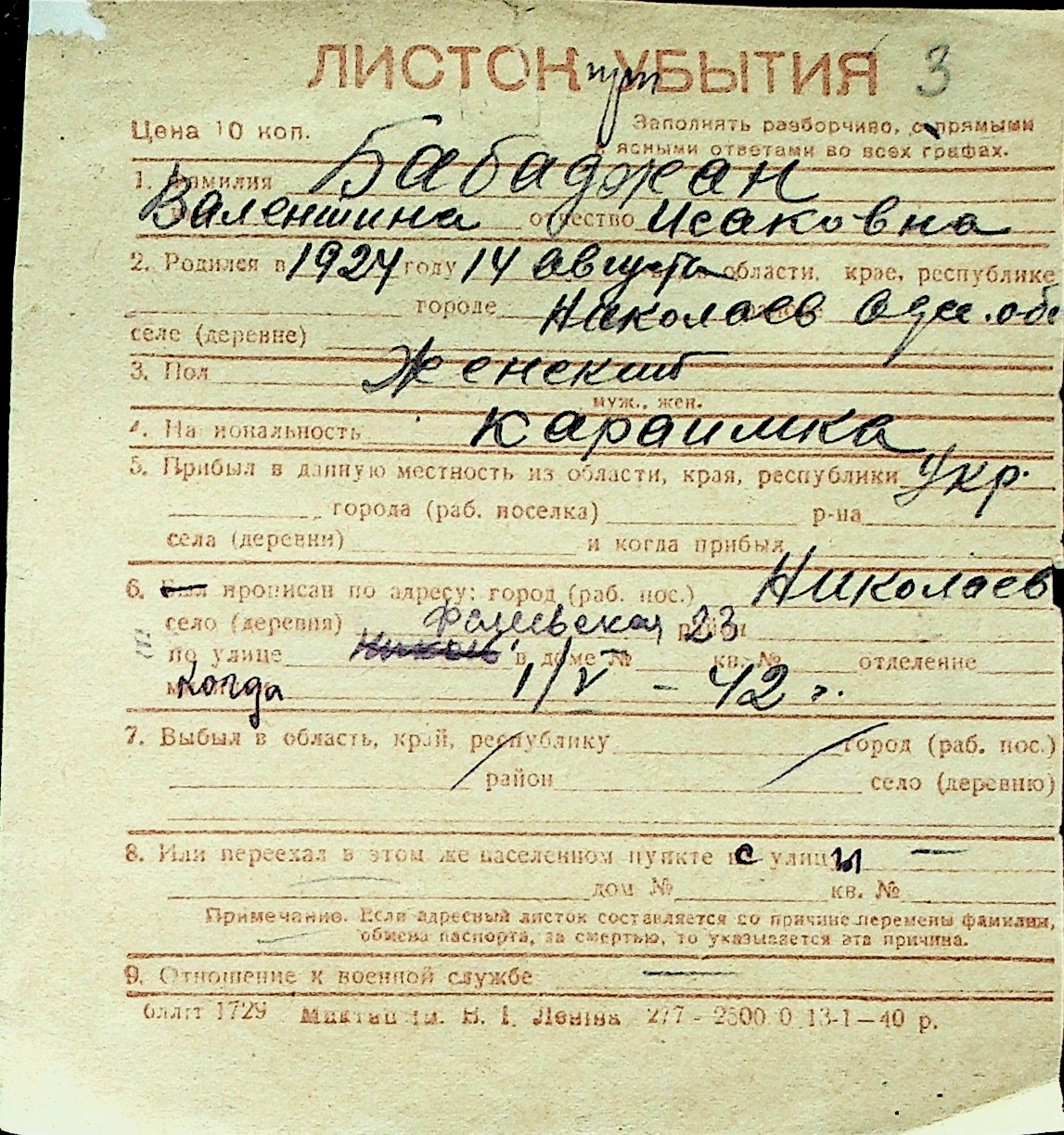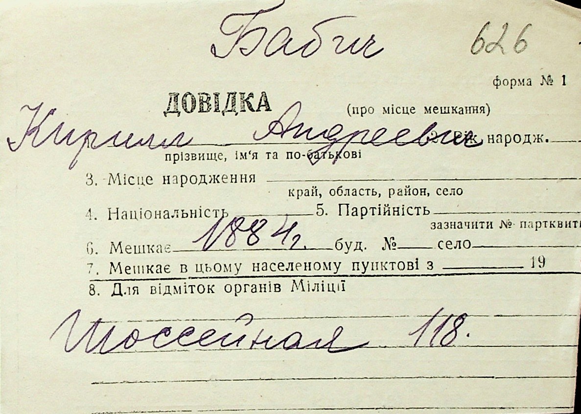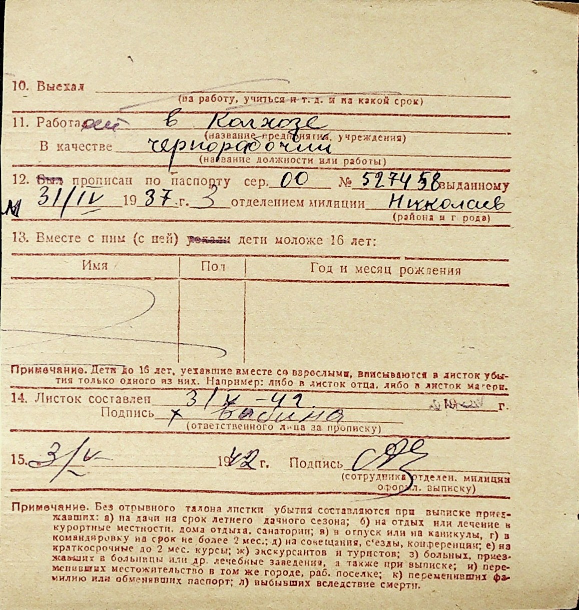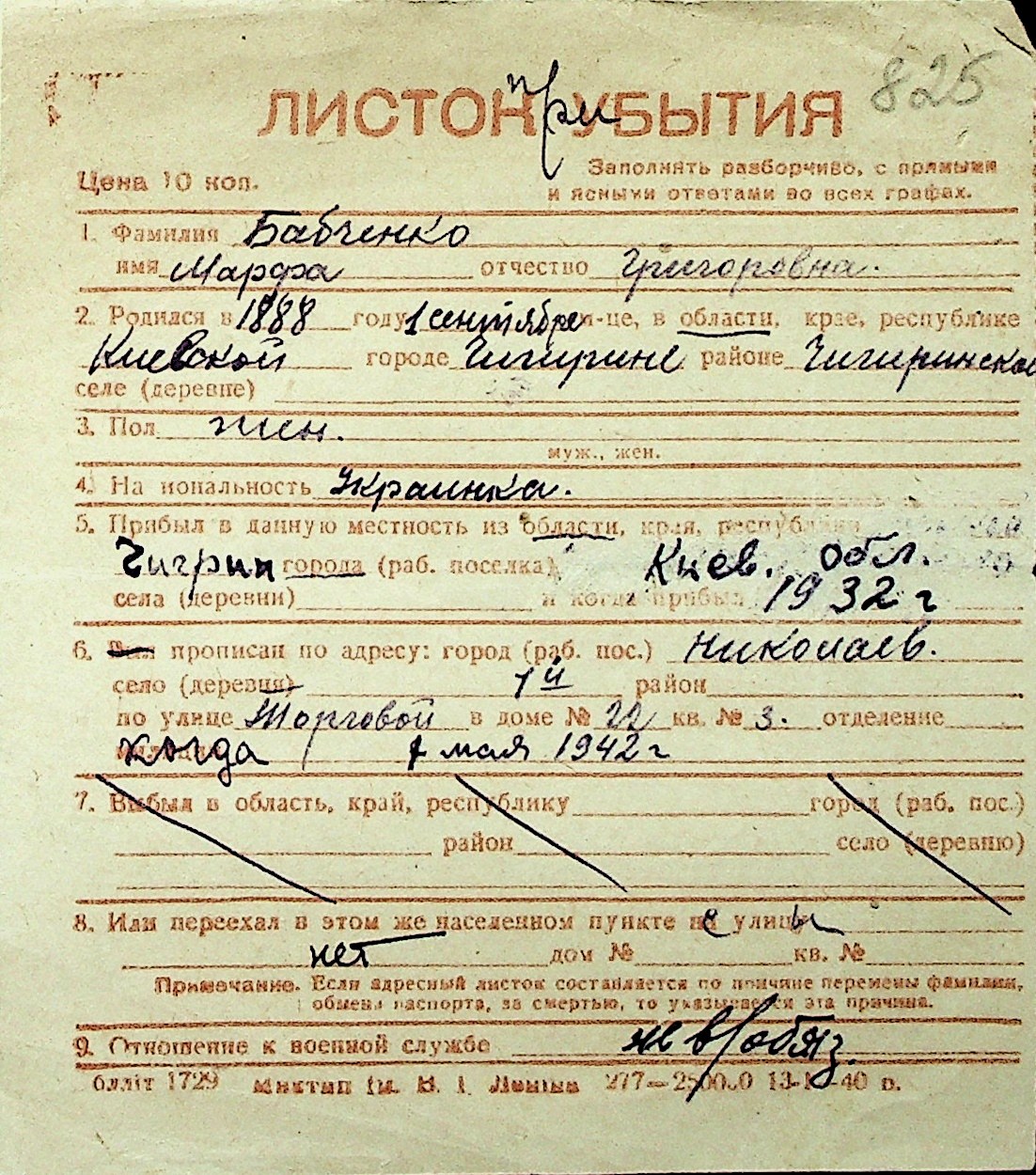 ◦ ◦ Перелік карток на осіб, які мешкали у м. Миколаїв у період окупації 1941–1944 років