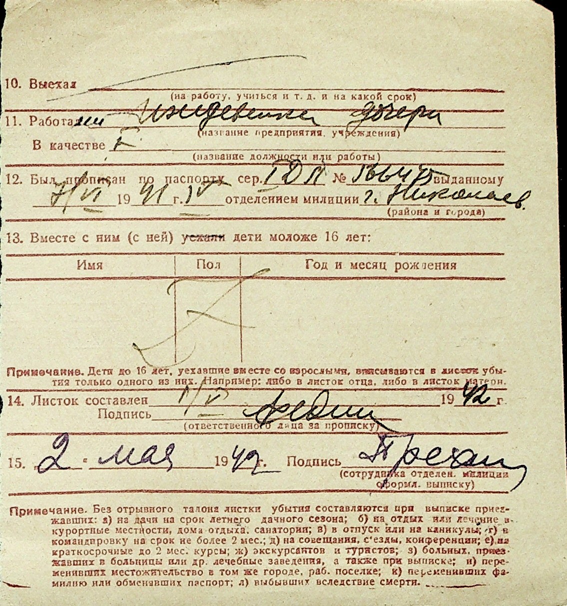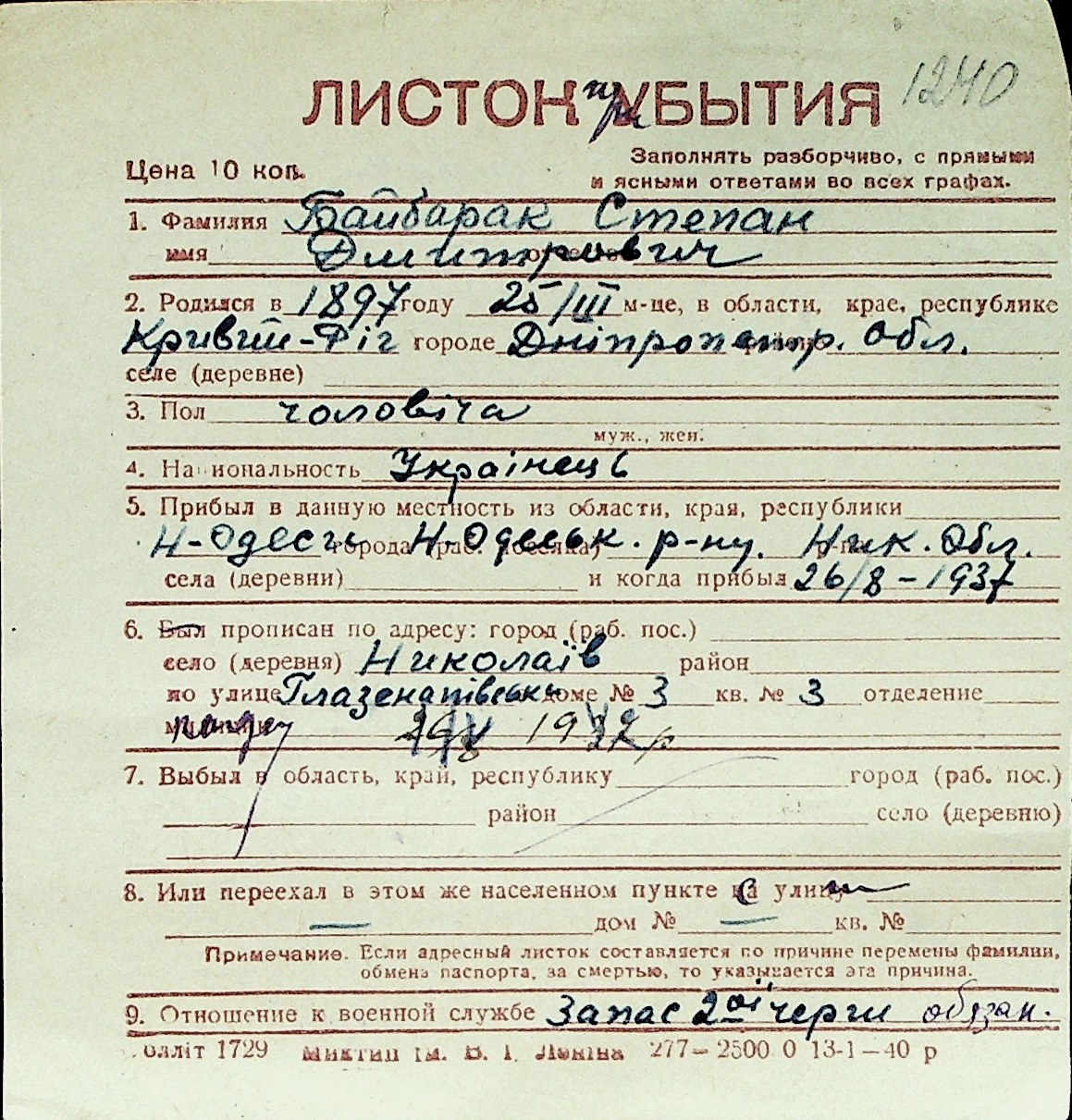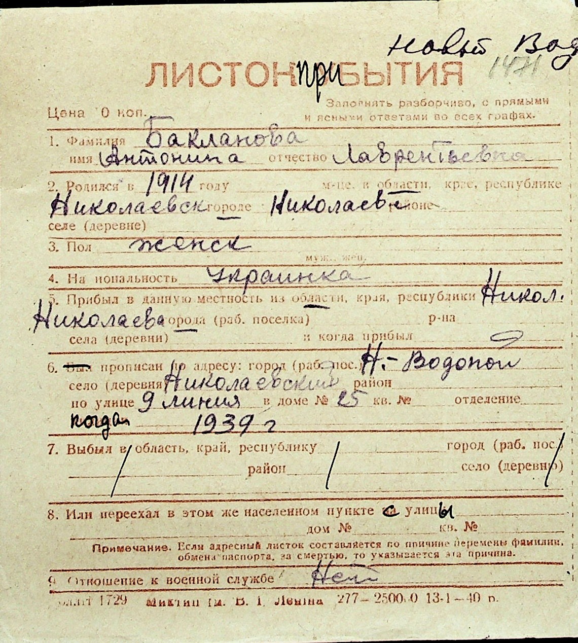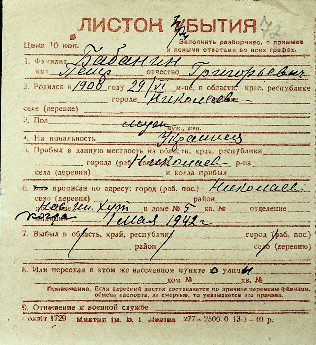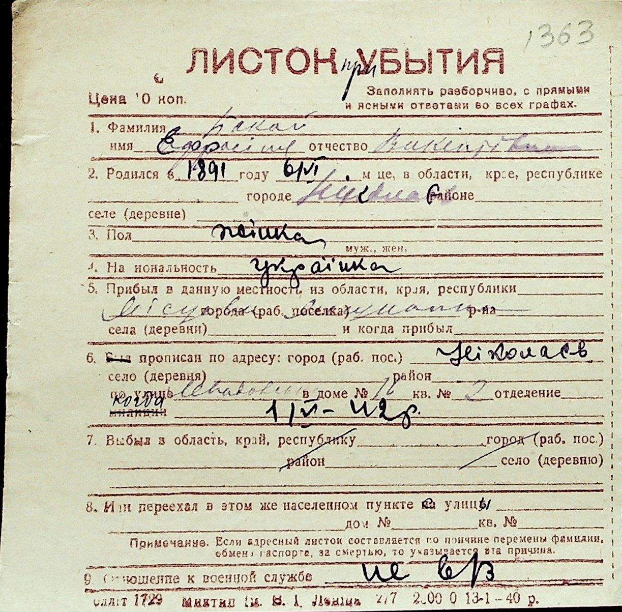 ◦ ◦ Перелік карток на осіб, які мешкали у м. Миколаїв у період окупації 1941–1944 років
