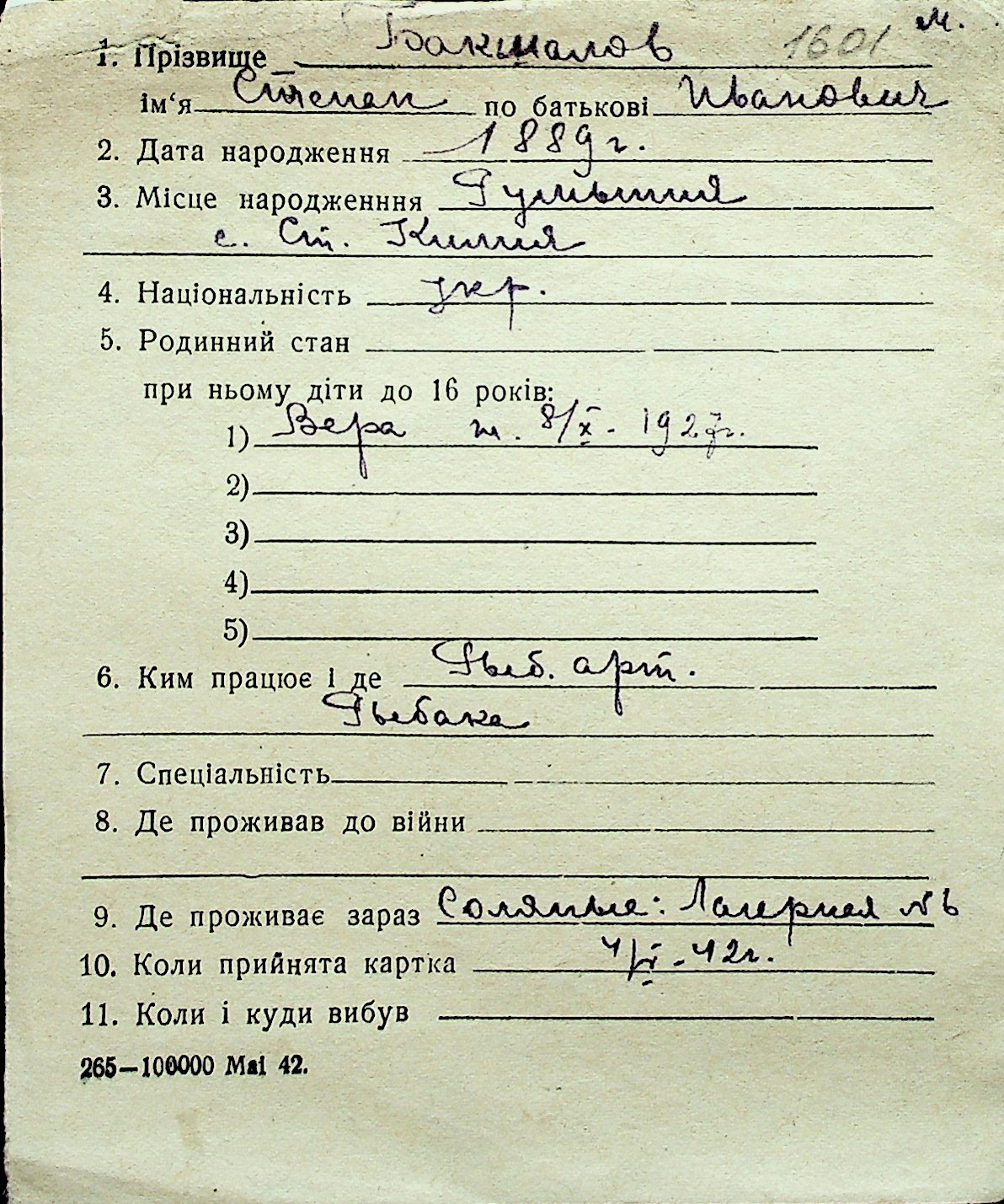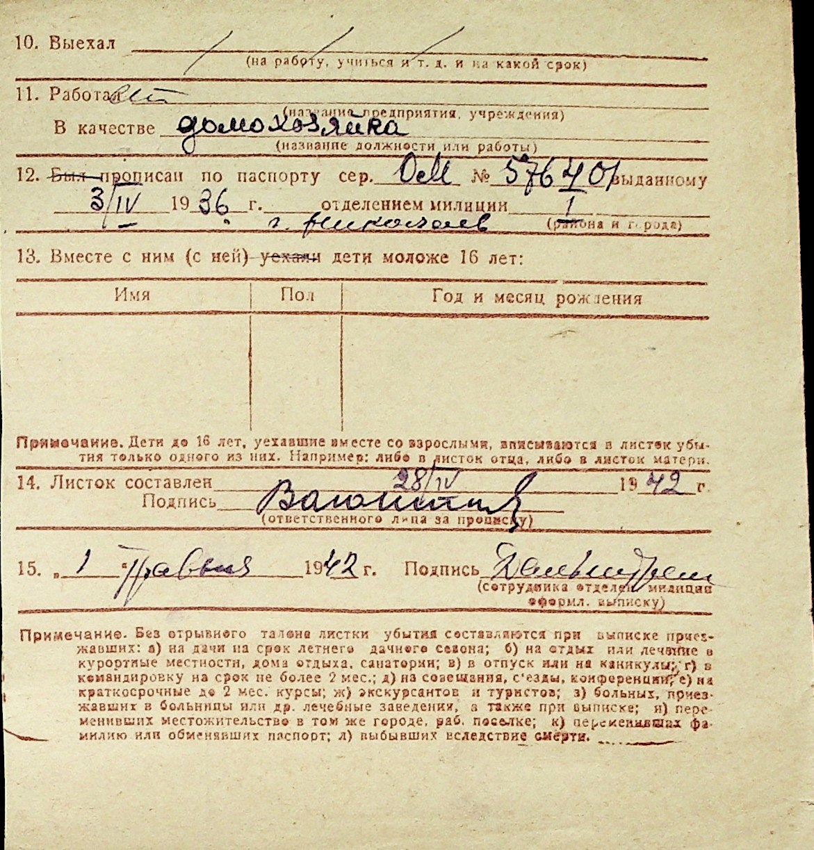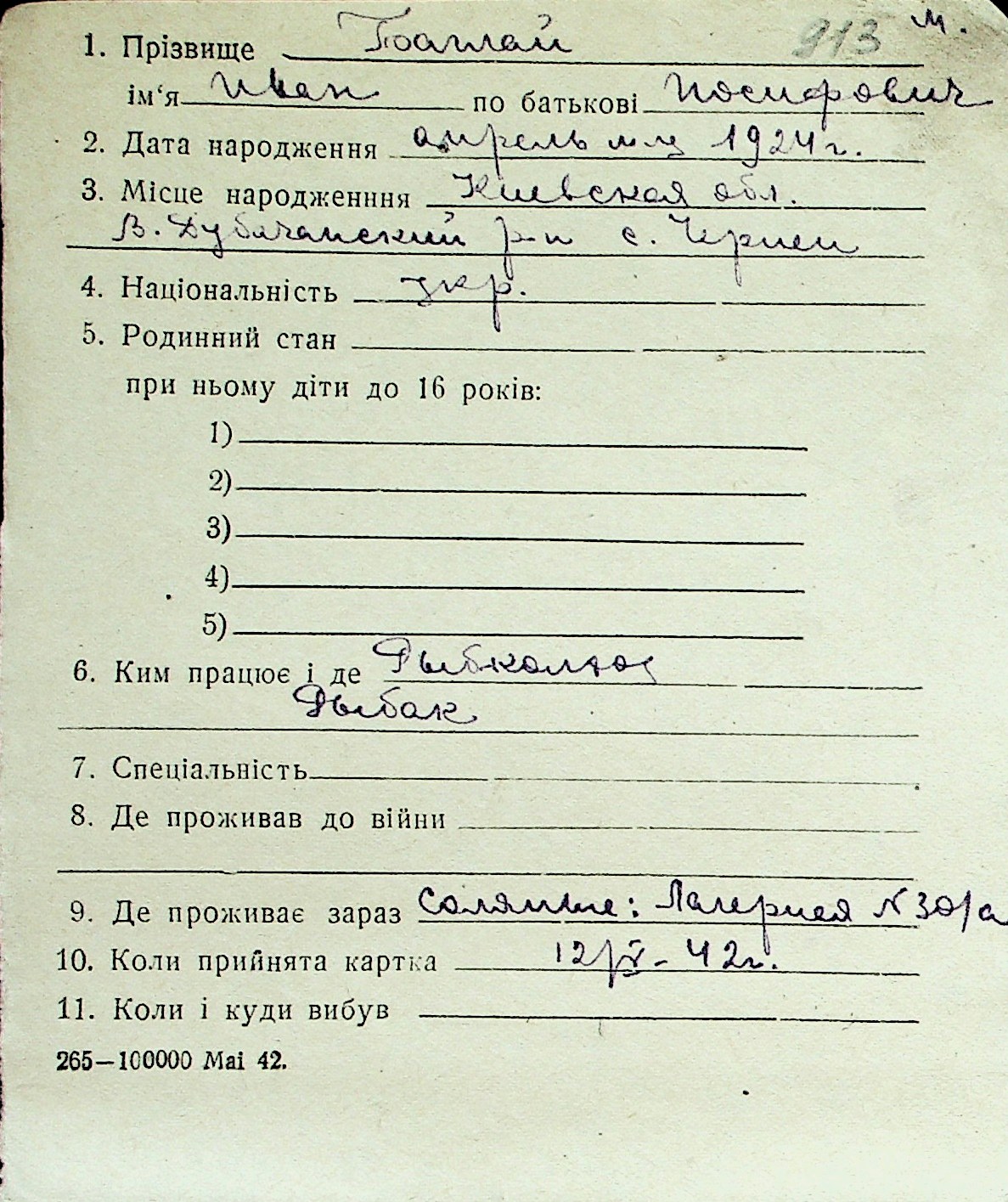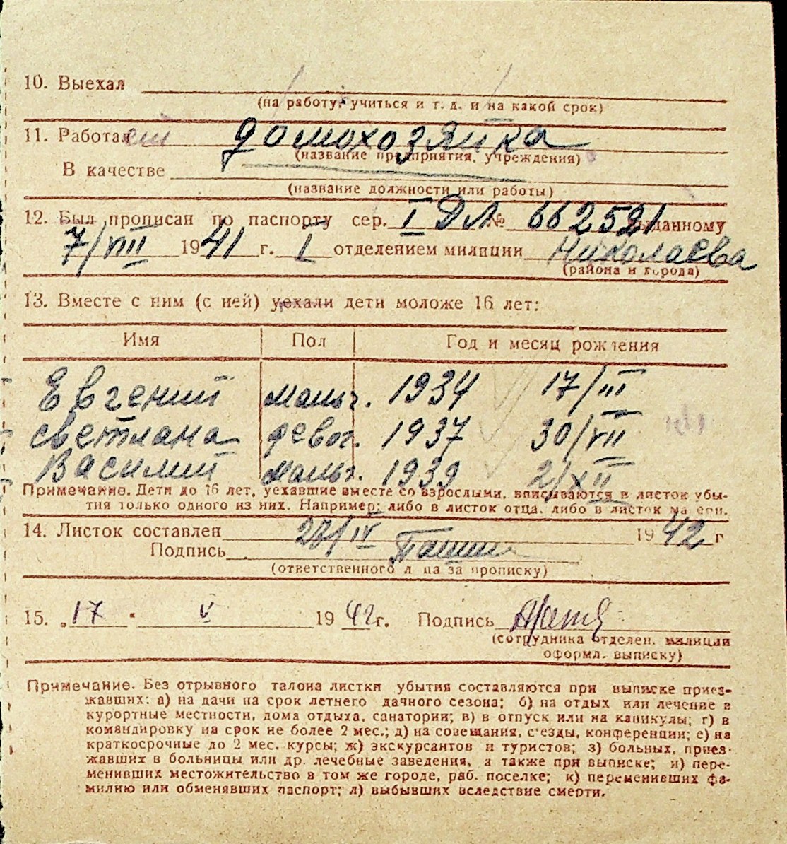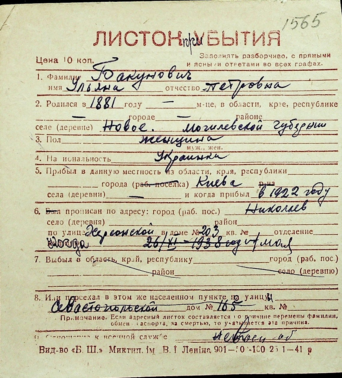 ◦ ◦ Перелік карток на осіб, які мешкали у м. Миколаїв у період окупації 1941–1944 років