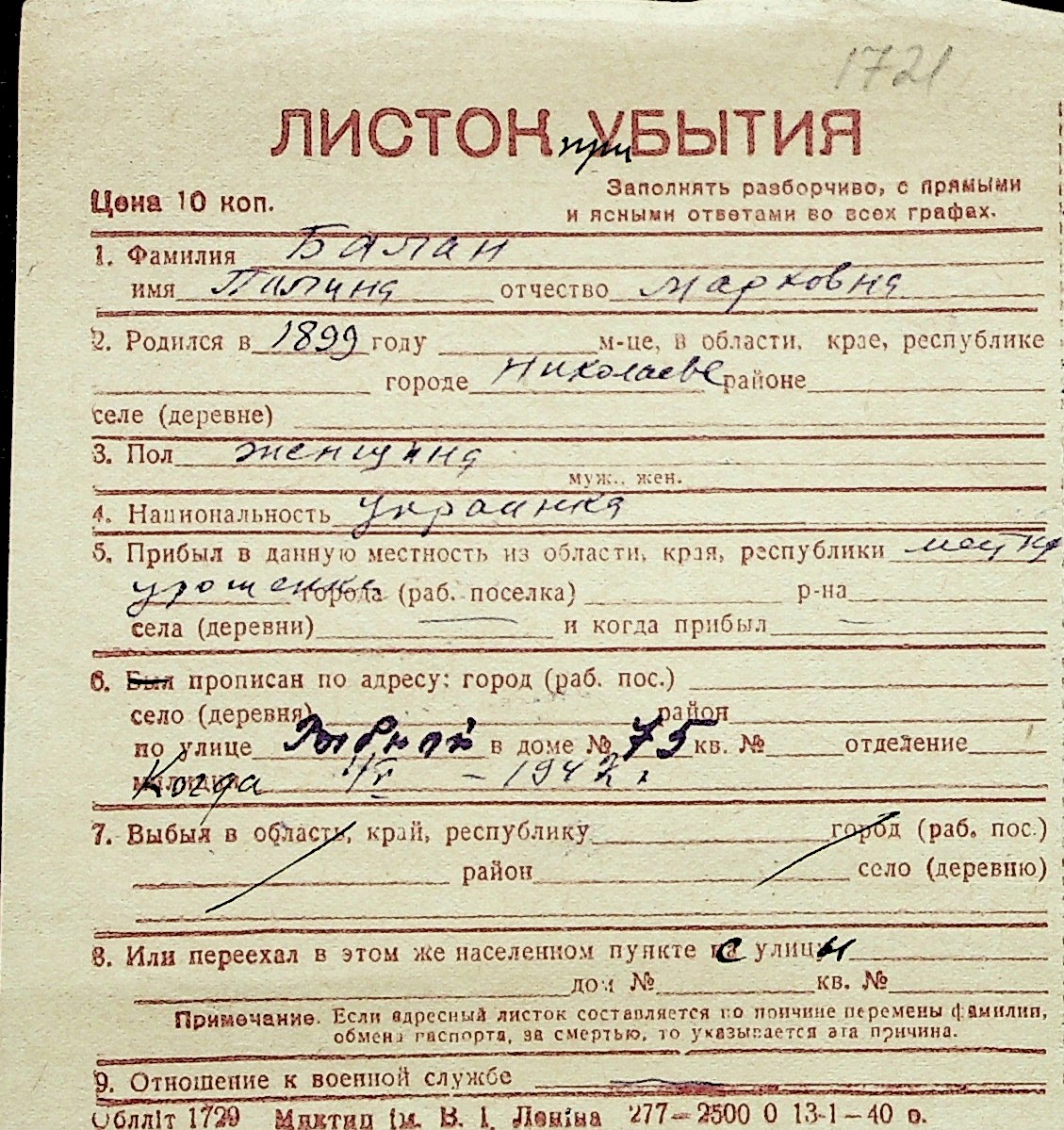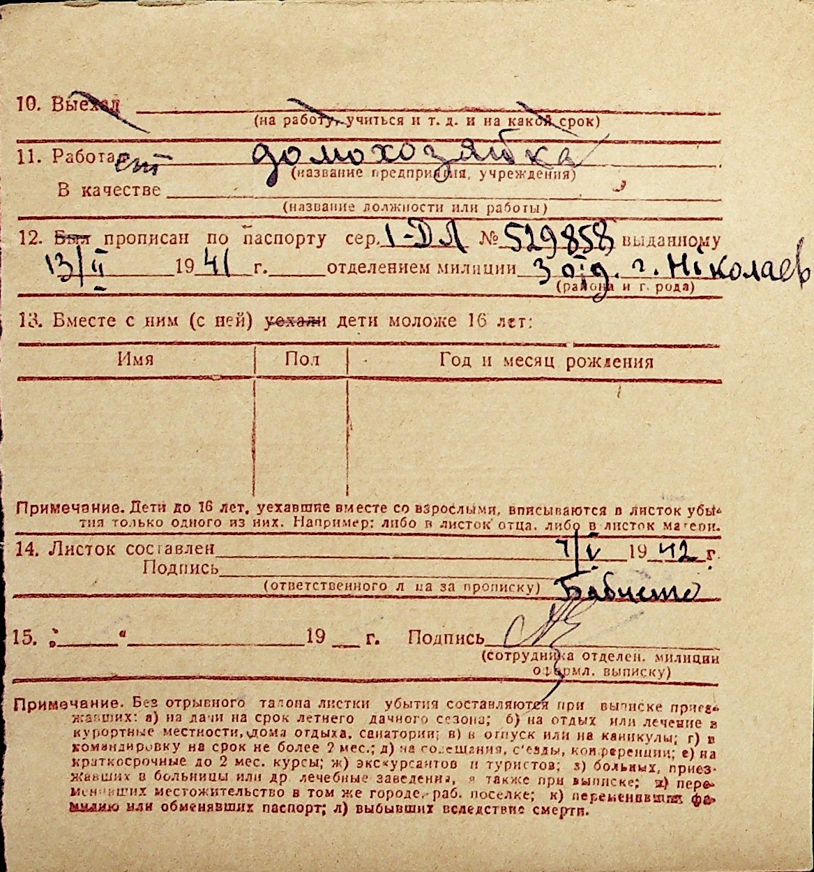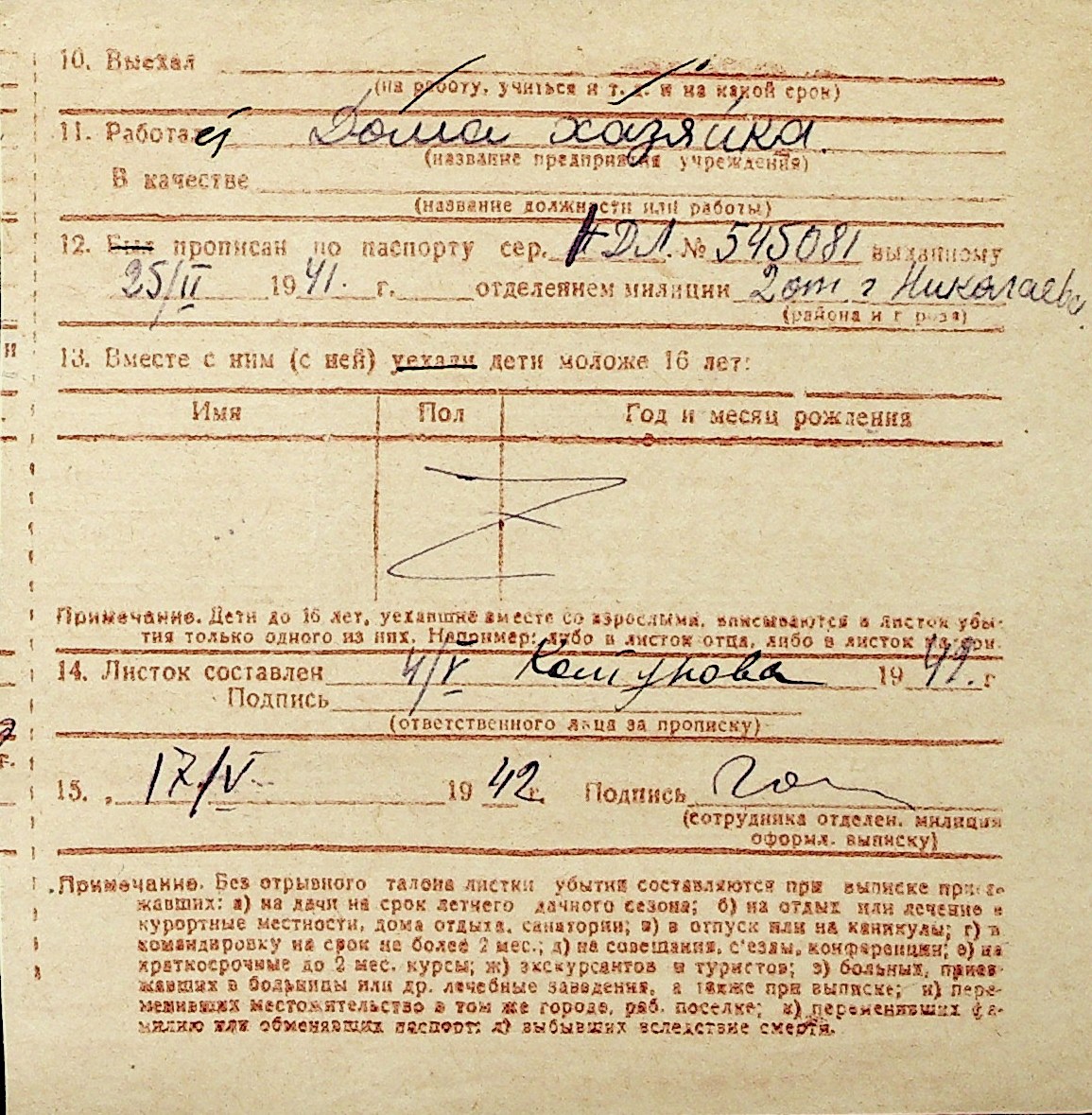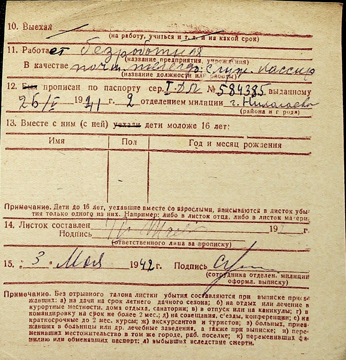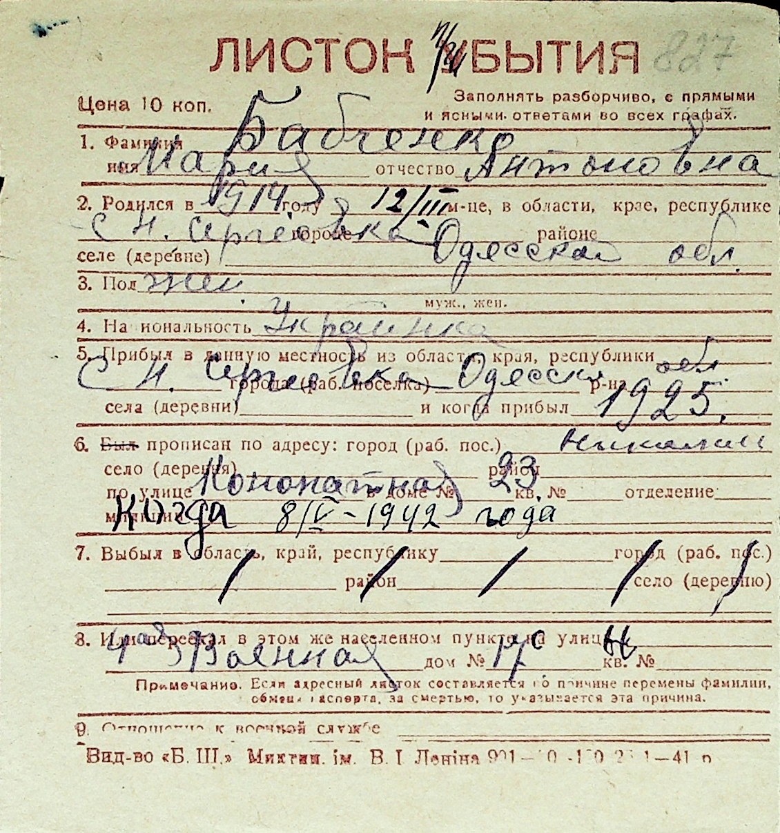 ◦ ◦ Перелік карток на осіб, які мешкали у м. Миколаїв у період окупації 1941–1944 років