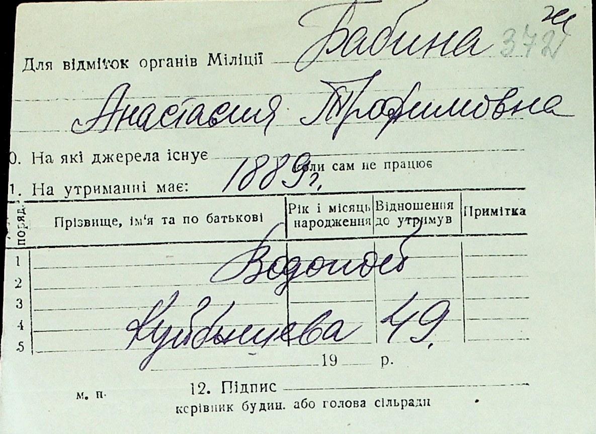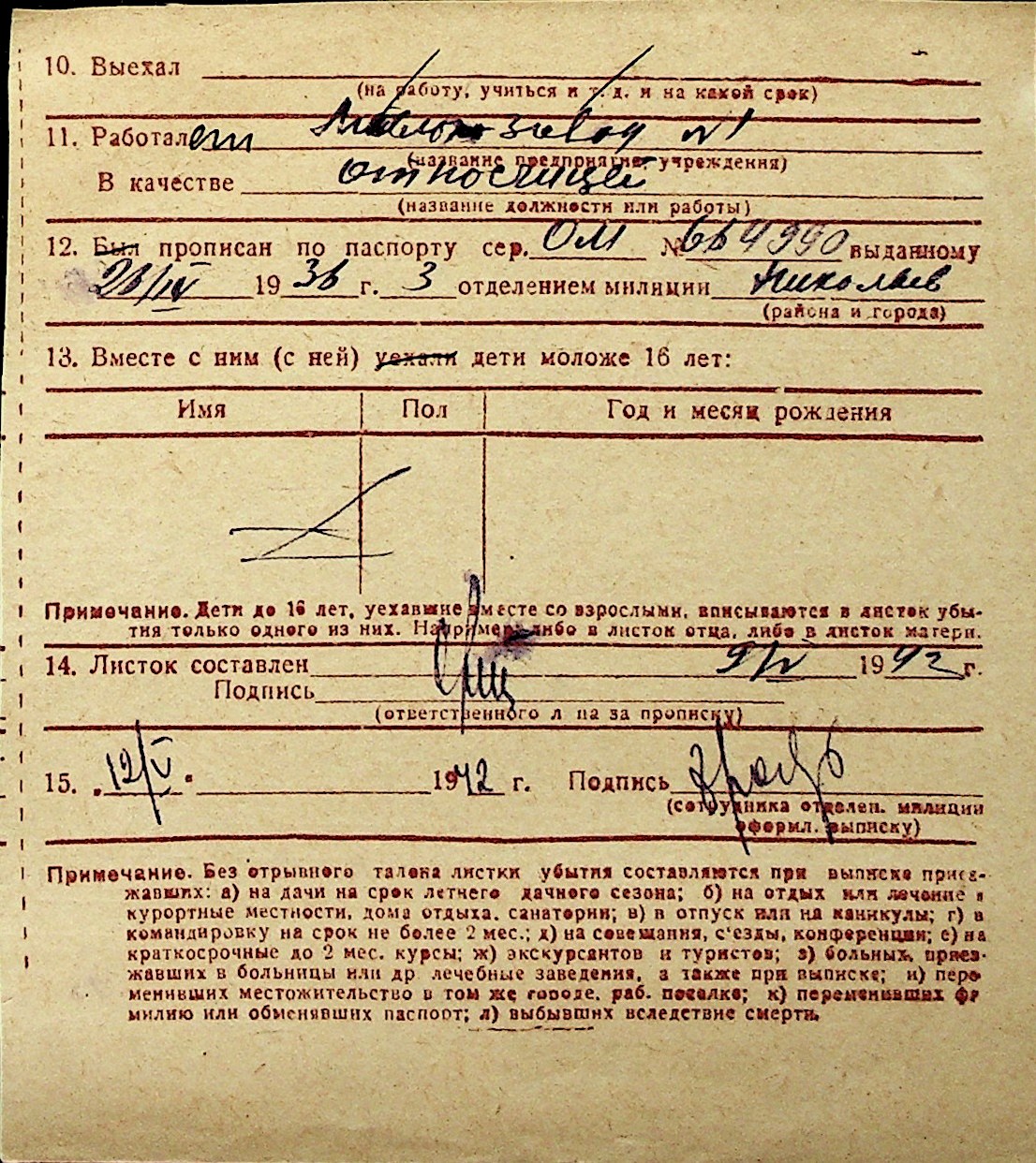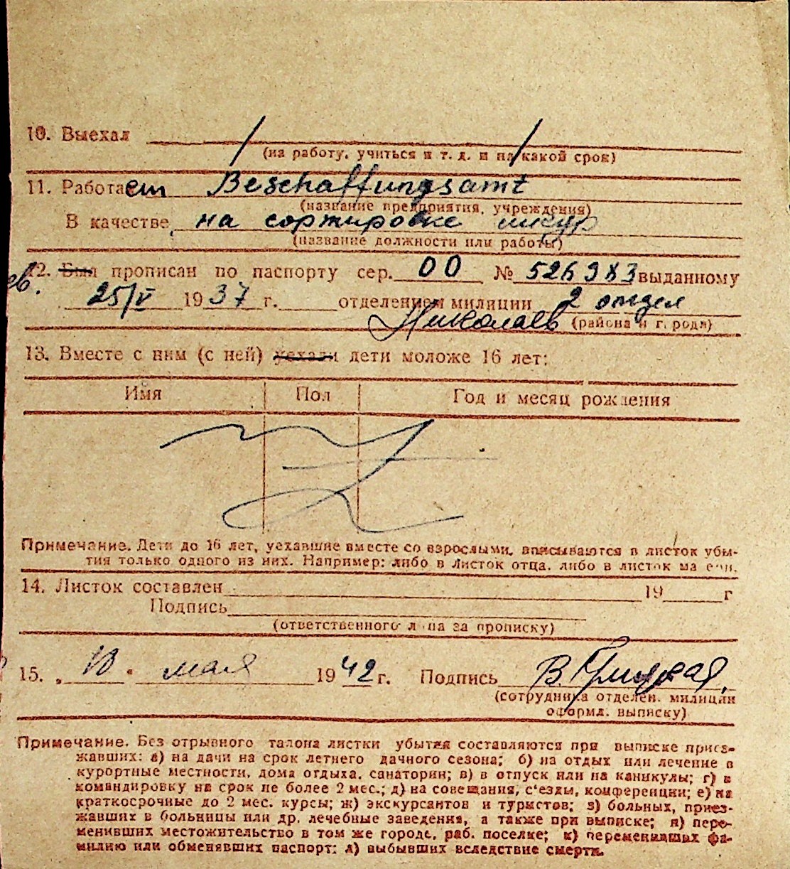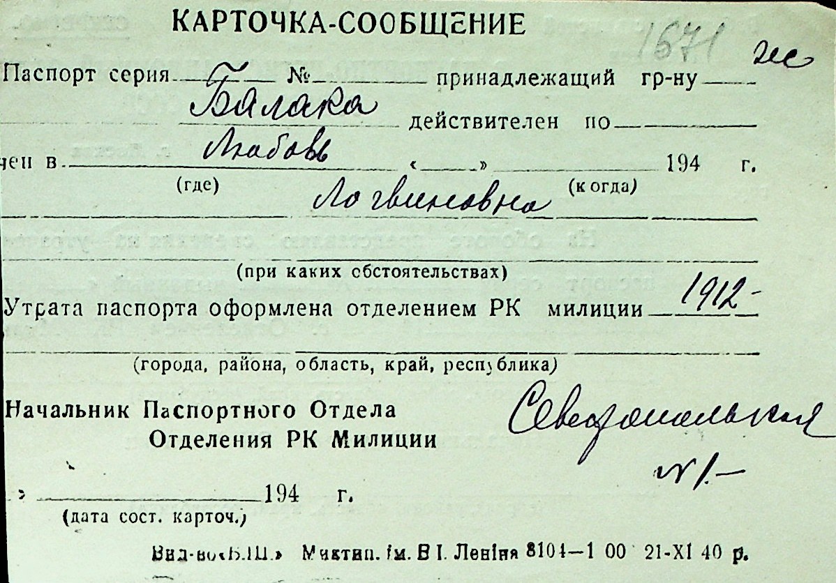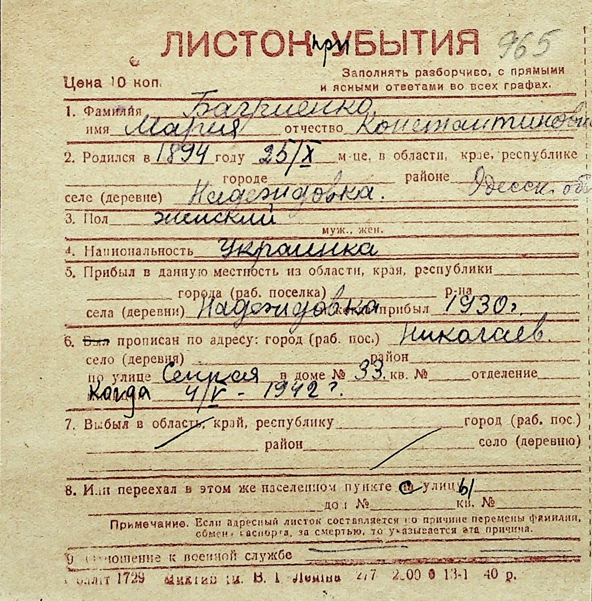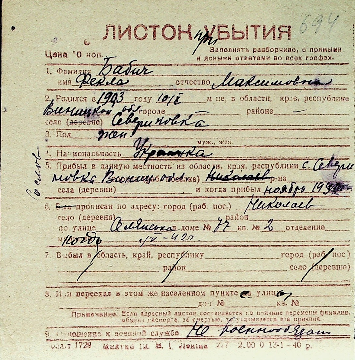 ◦ ◦ Перелік карток на осіб, які мешкали у м. Миколаїв у період окупації 1941–1944 років