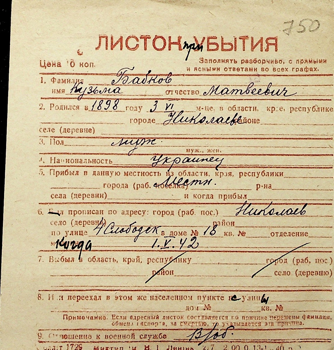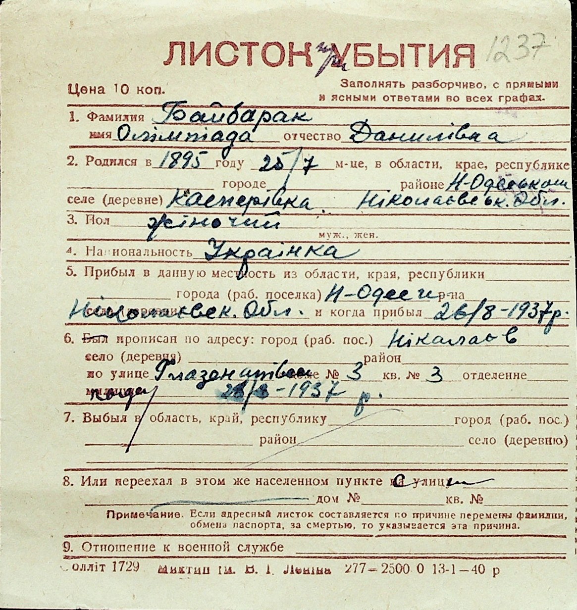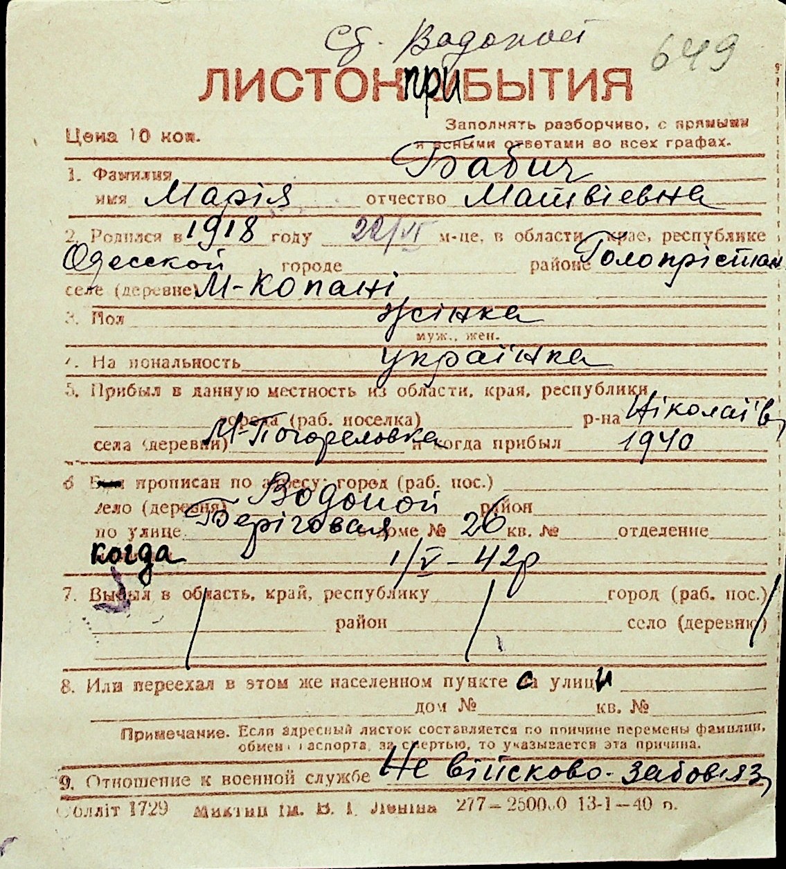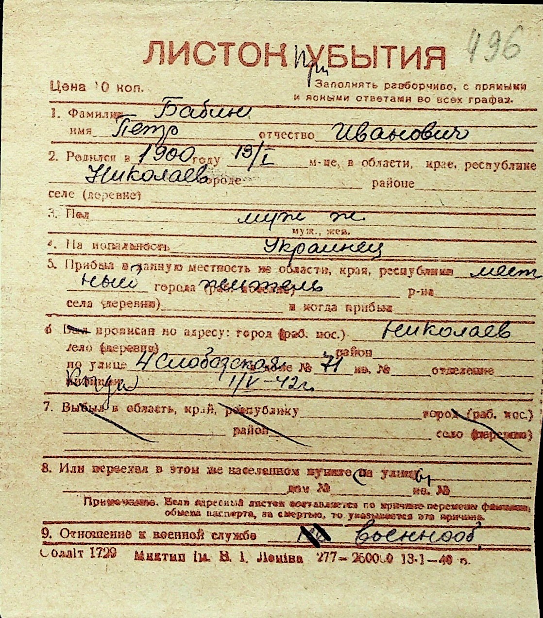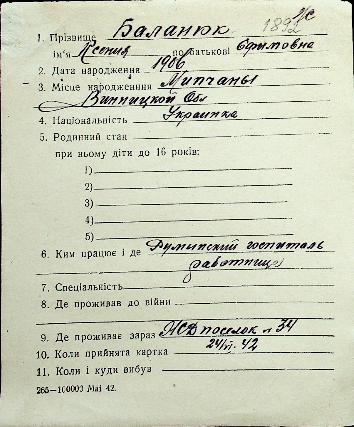◦ ◦ Перелік карток на осіб, які мешкали у м. Миколаїв у період окупації 1941–1944 років