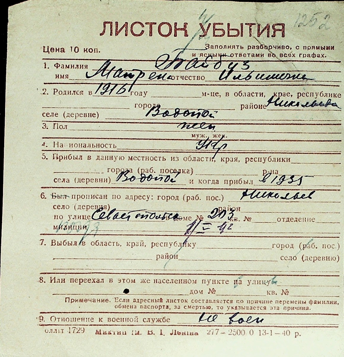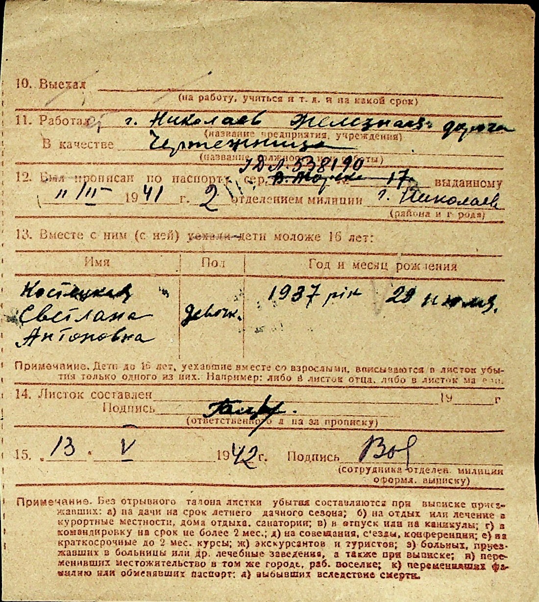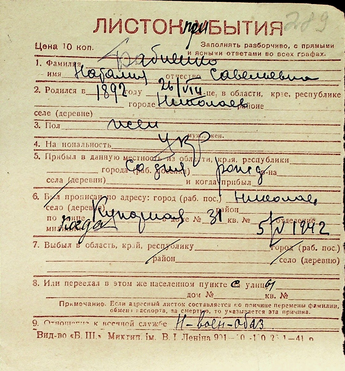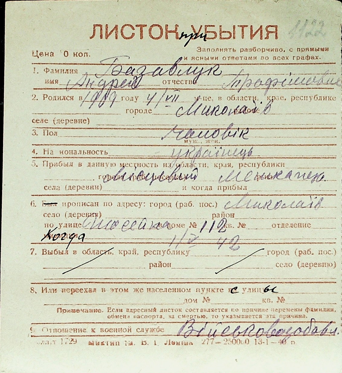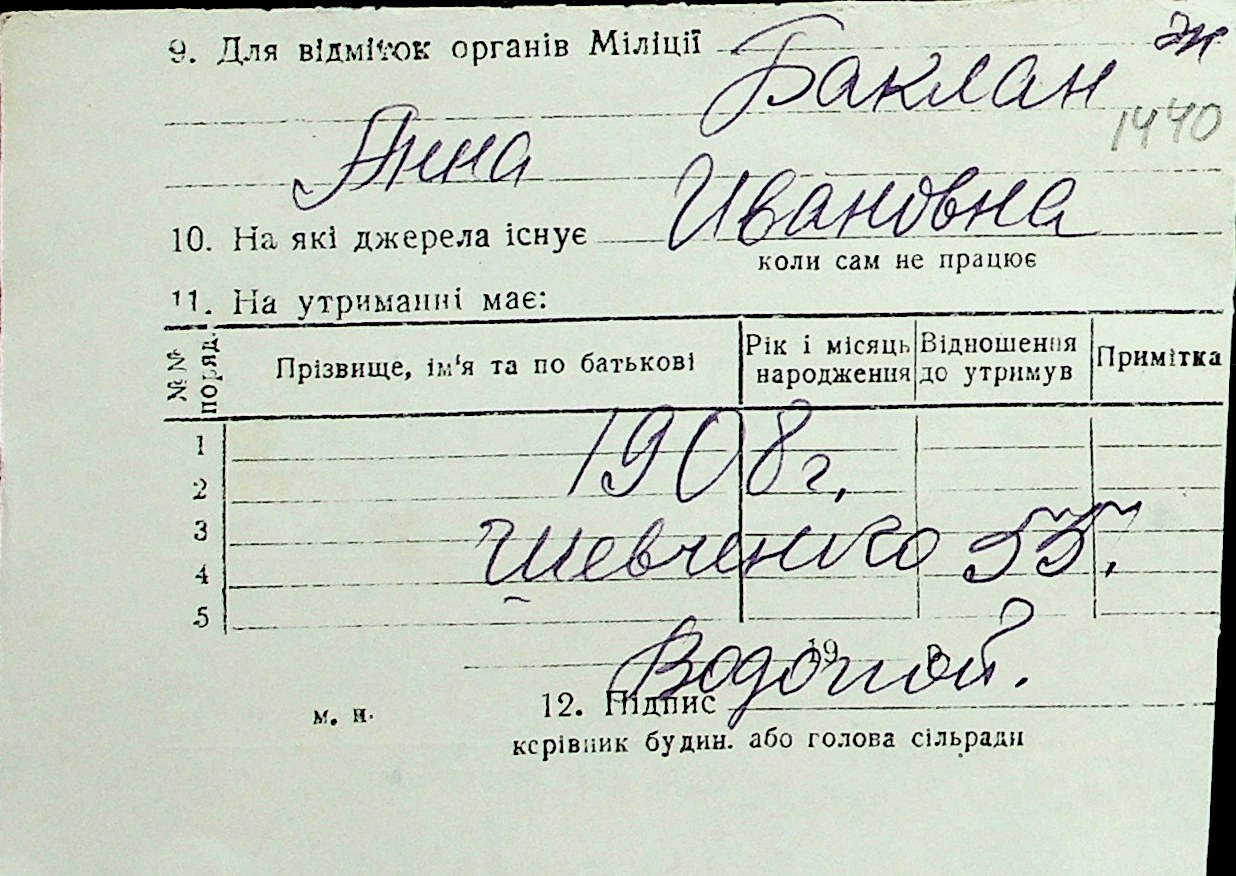 ◦ ◦ Перелік карток на осіб, які мешкали у м. Миколаїв у період окупації 1941–1944 років
