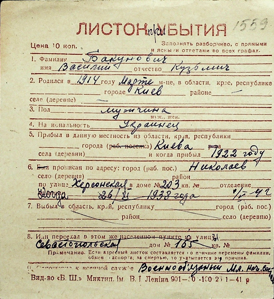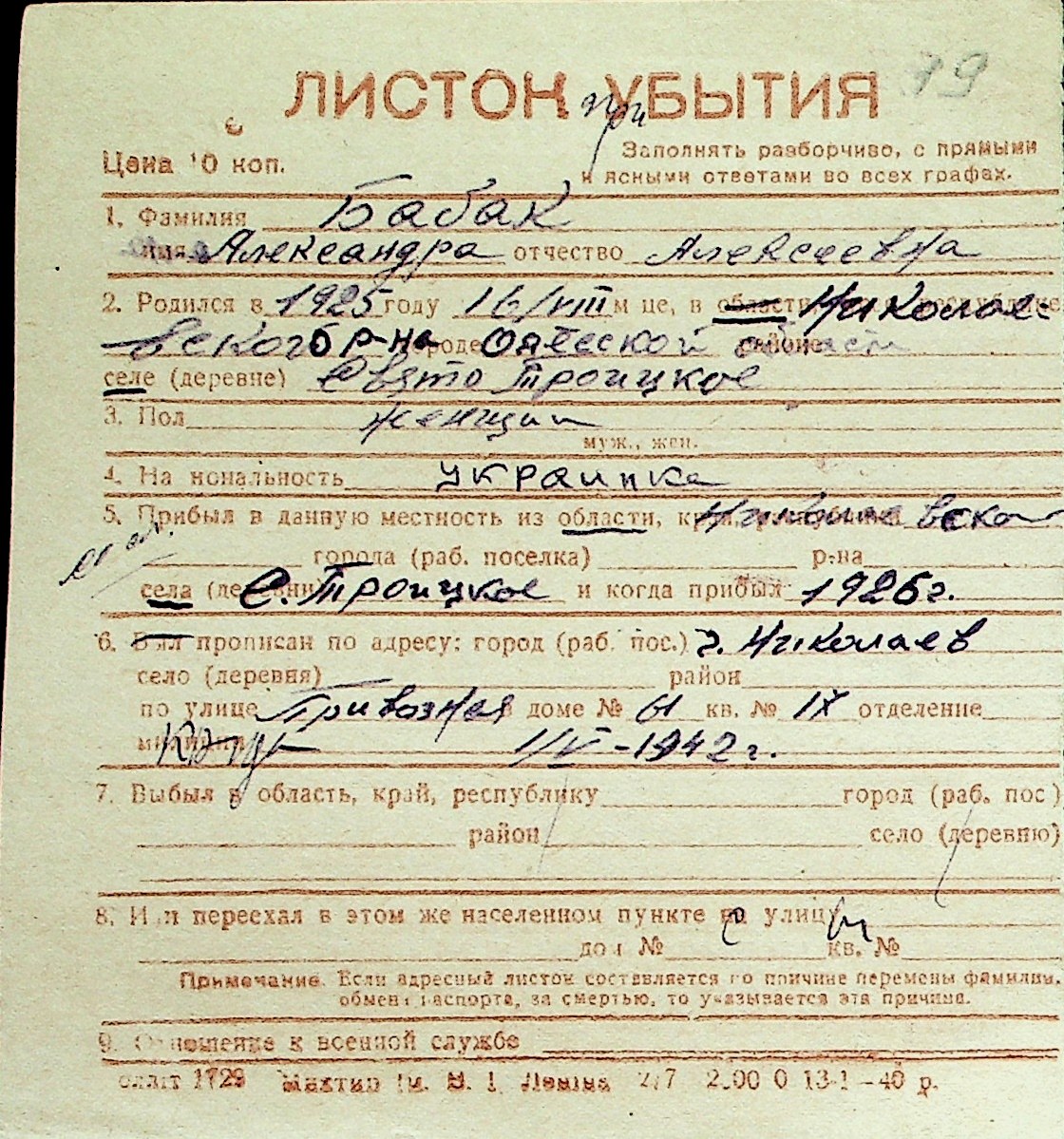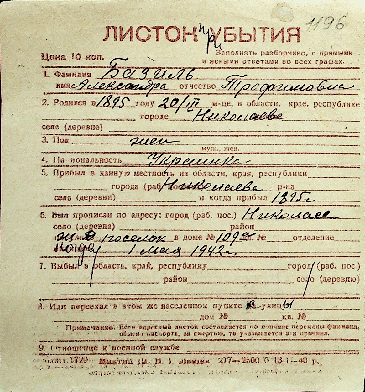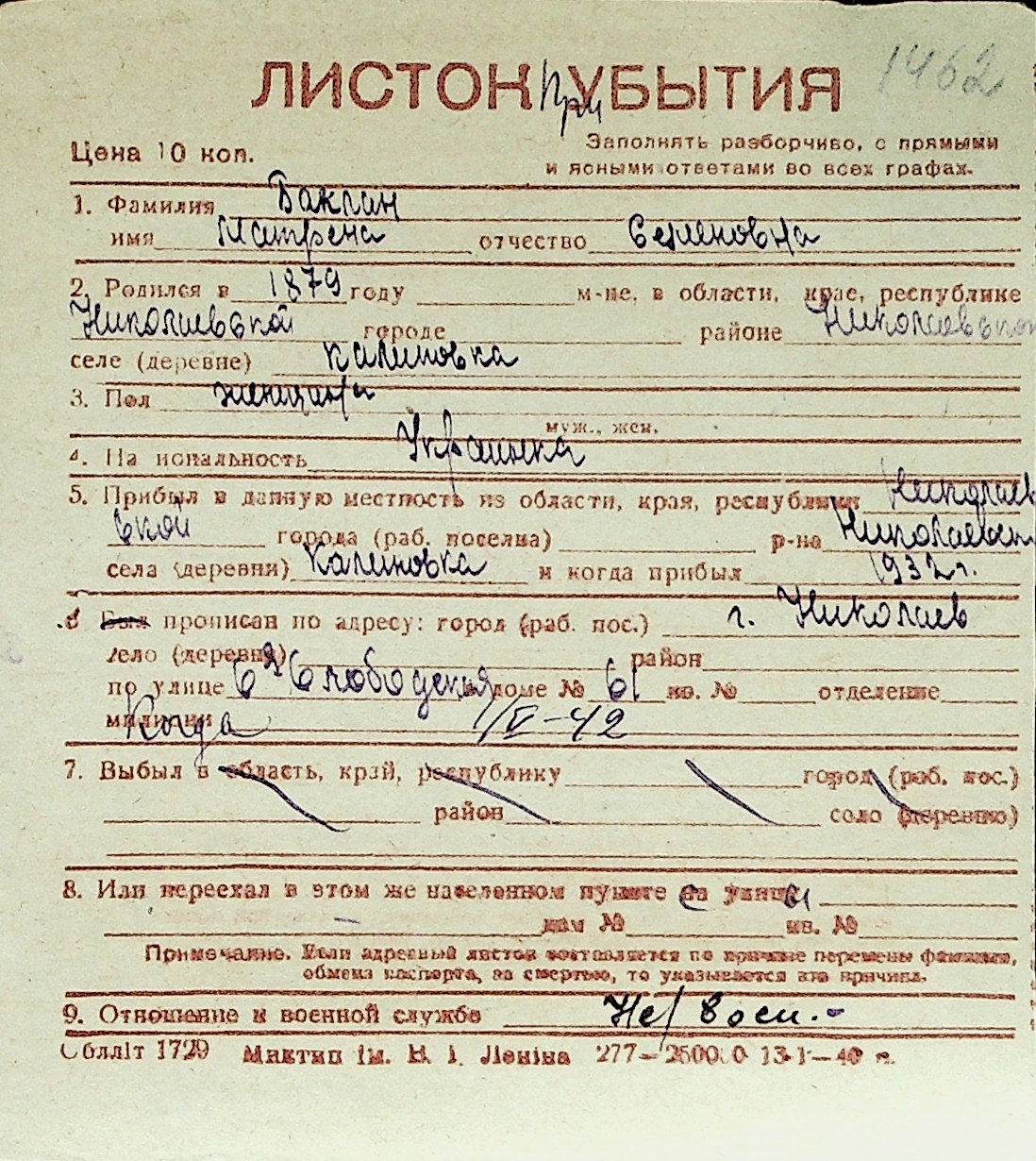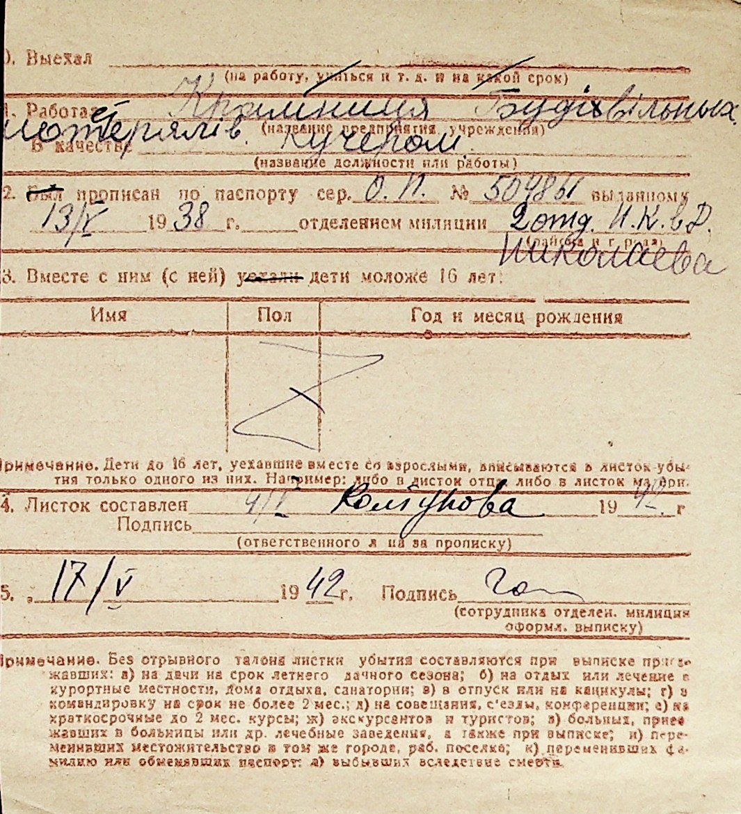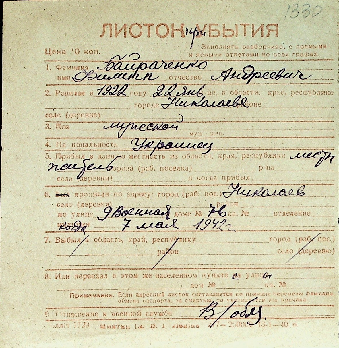 ◦ ◦ Перелік карток на осіб, які мешкали у м. Миколаїв у період окупації 1941–1944 років