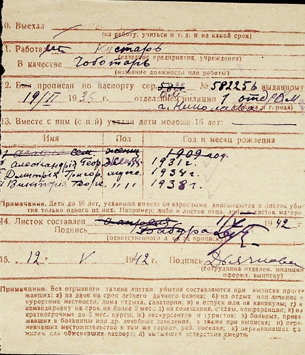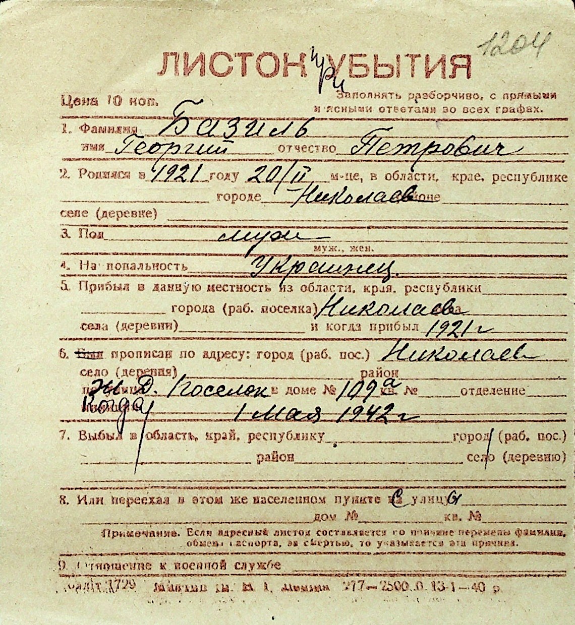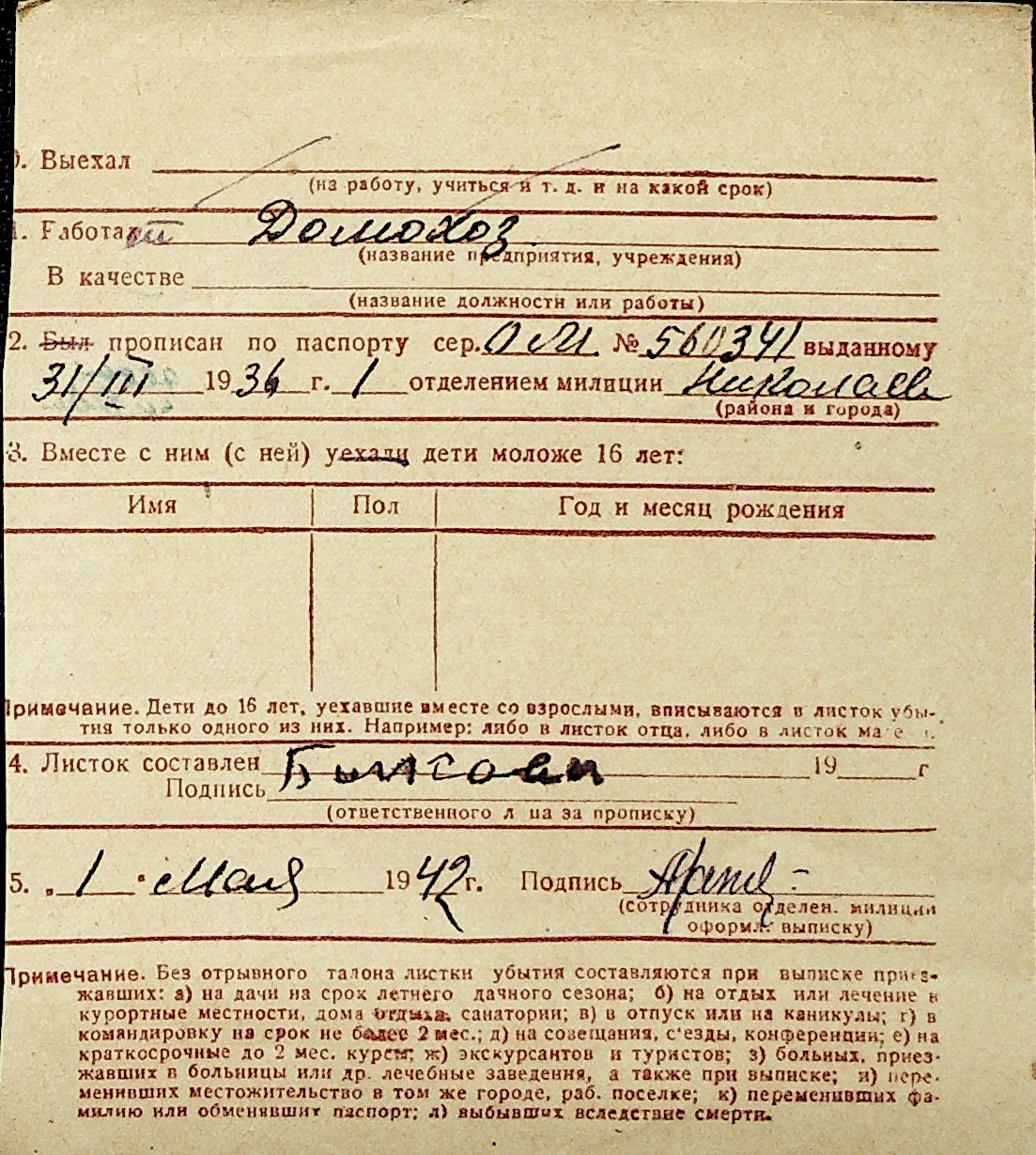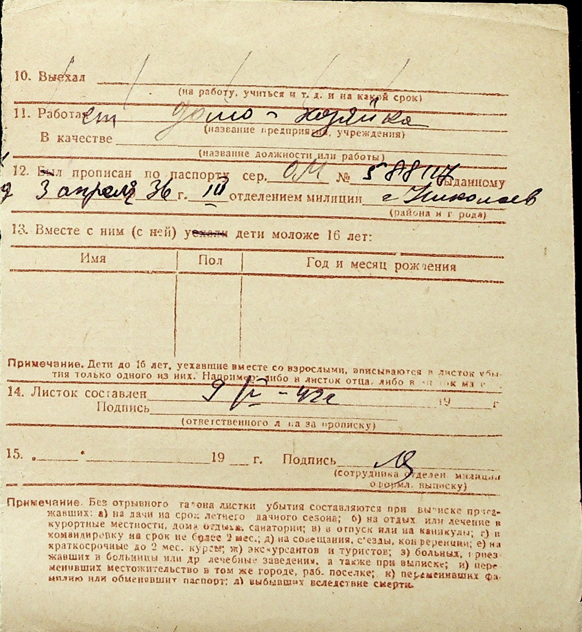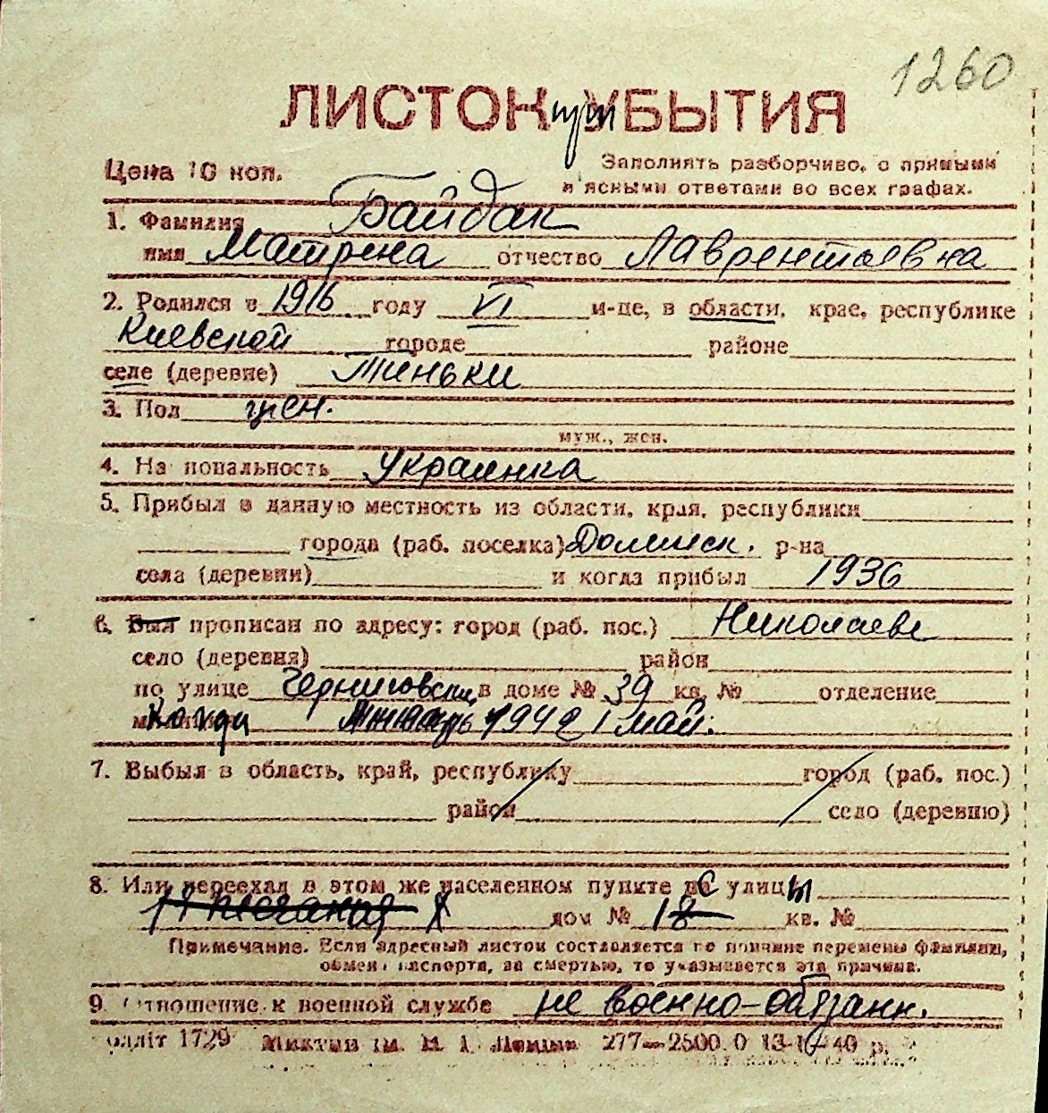 ◦ ◦ Перелік карток на осіб, які мешкали у м. Миколаїв у період окупації 1941–1944 років