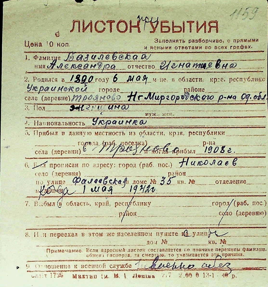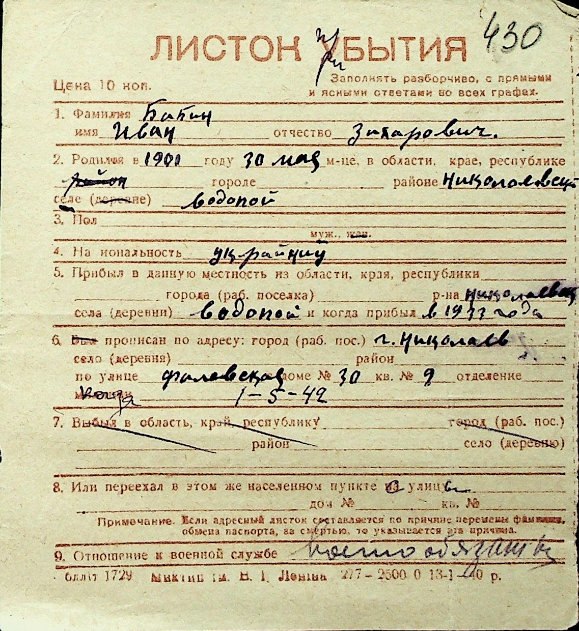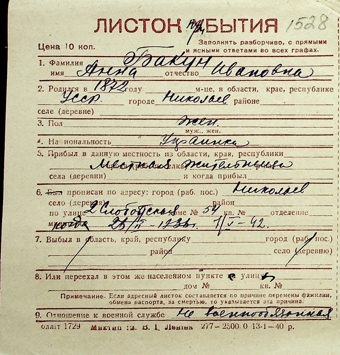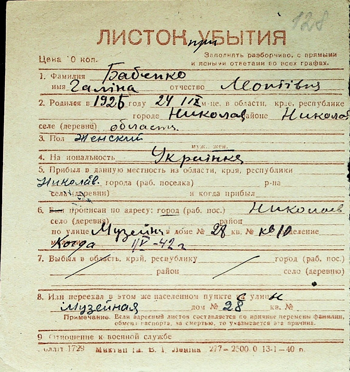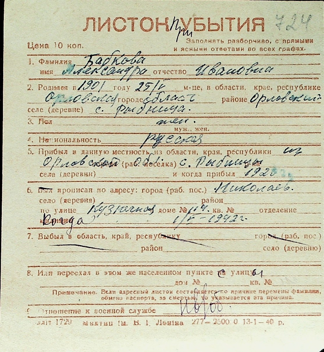 ◦ ◦ Перелік карток на осіб, які мешкали у м. Миколаїв у період окупації 1941–1944 років
