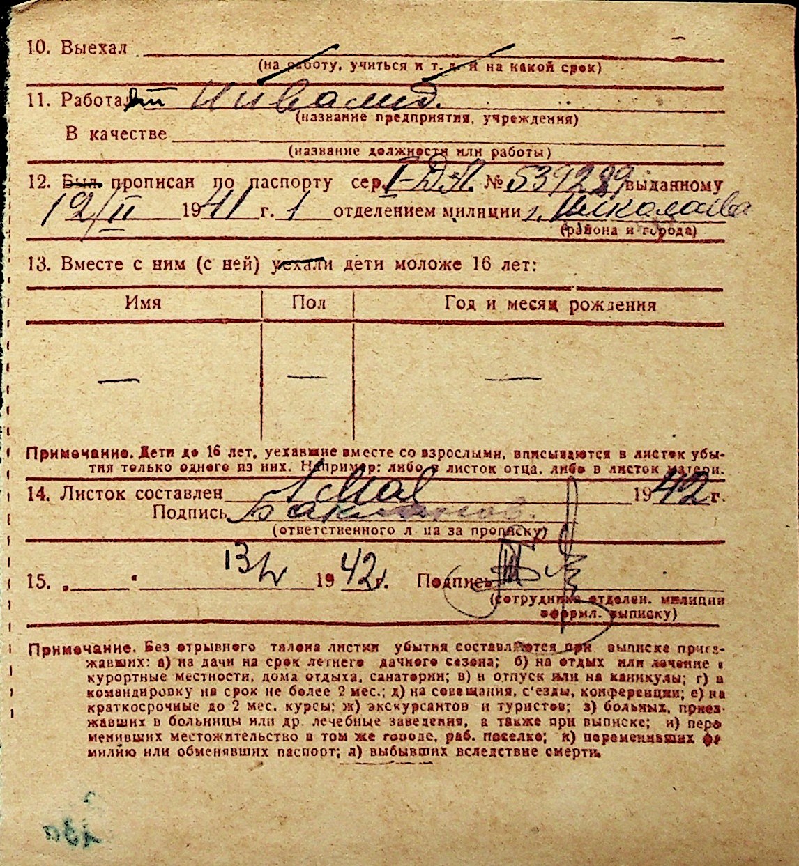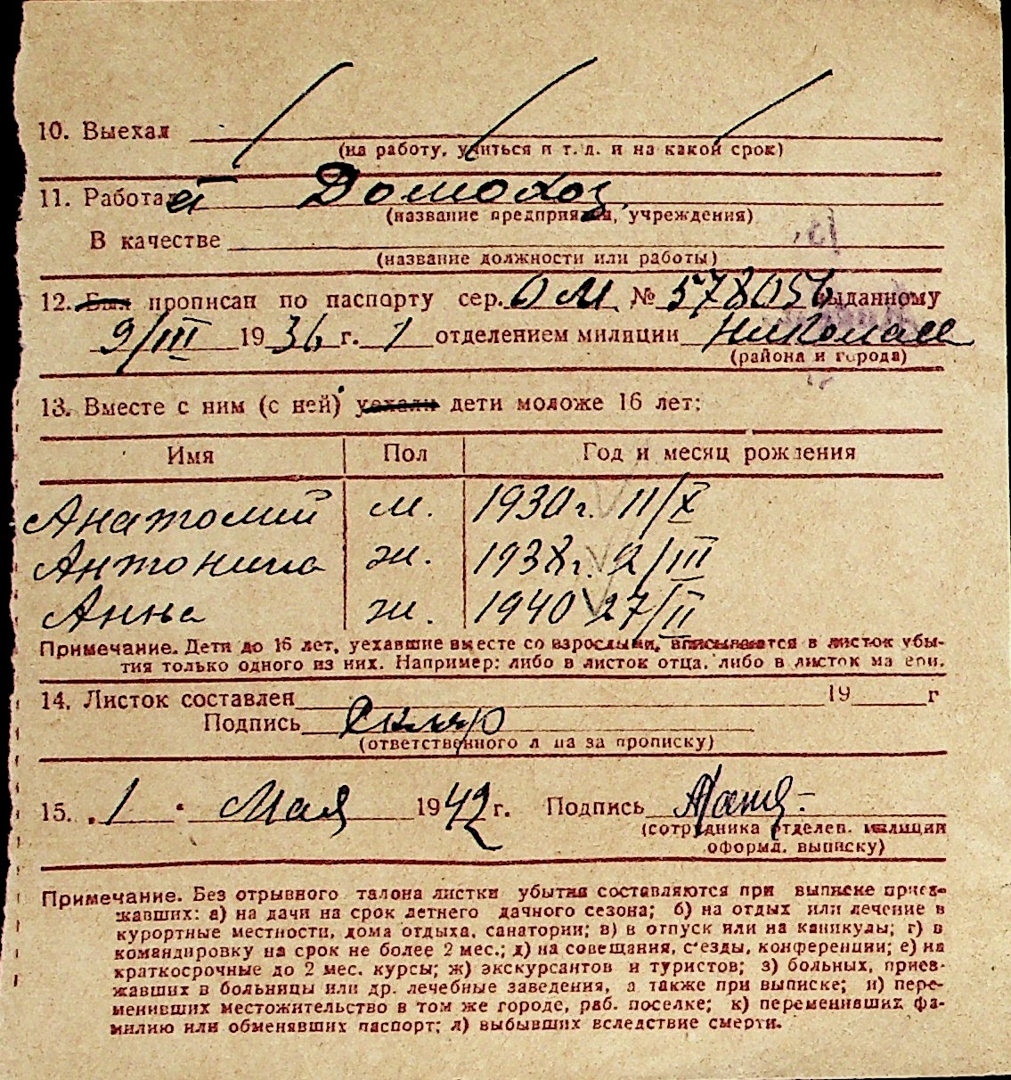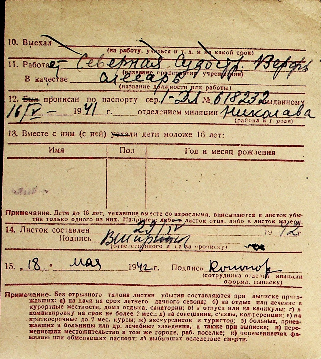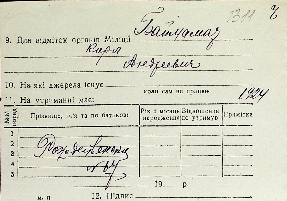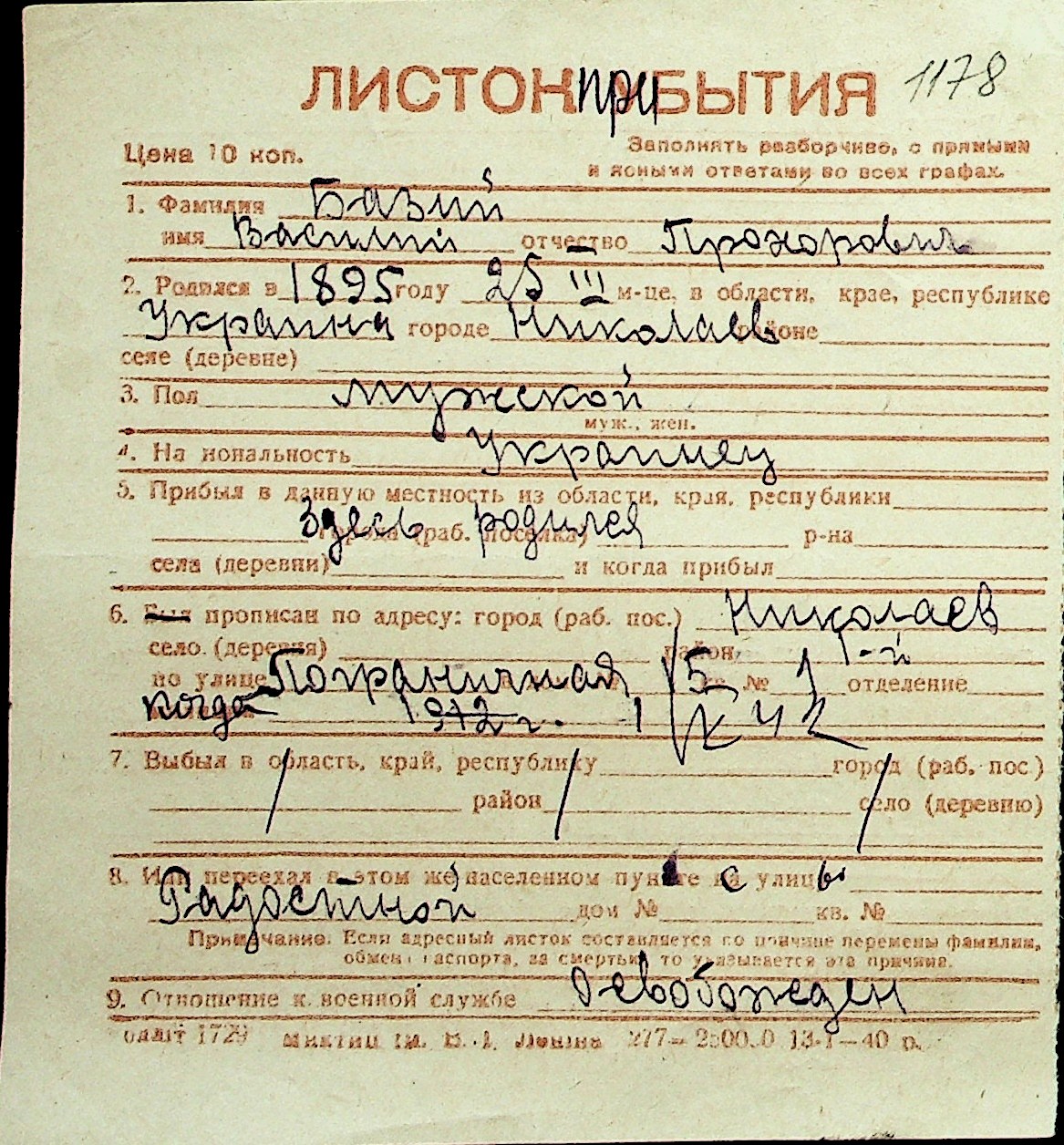 ◦ ◦ Перелік карток на осіб, які мешкали у м. Миколаїв у період окупації 1941–1944 років