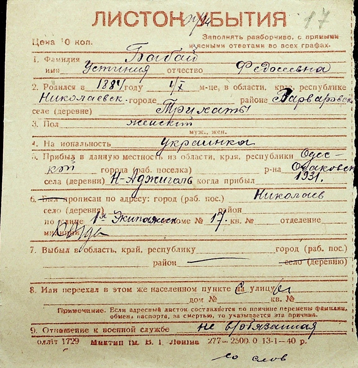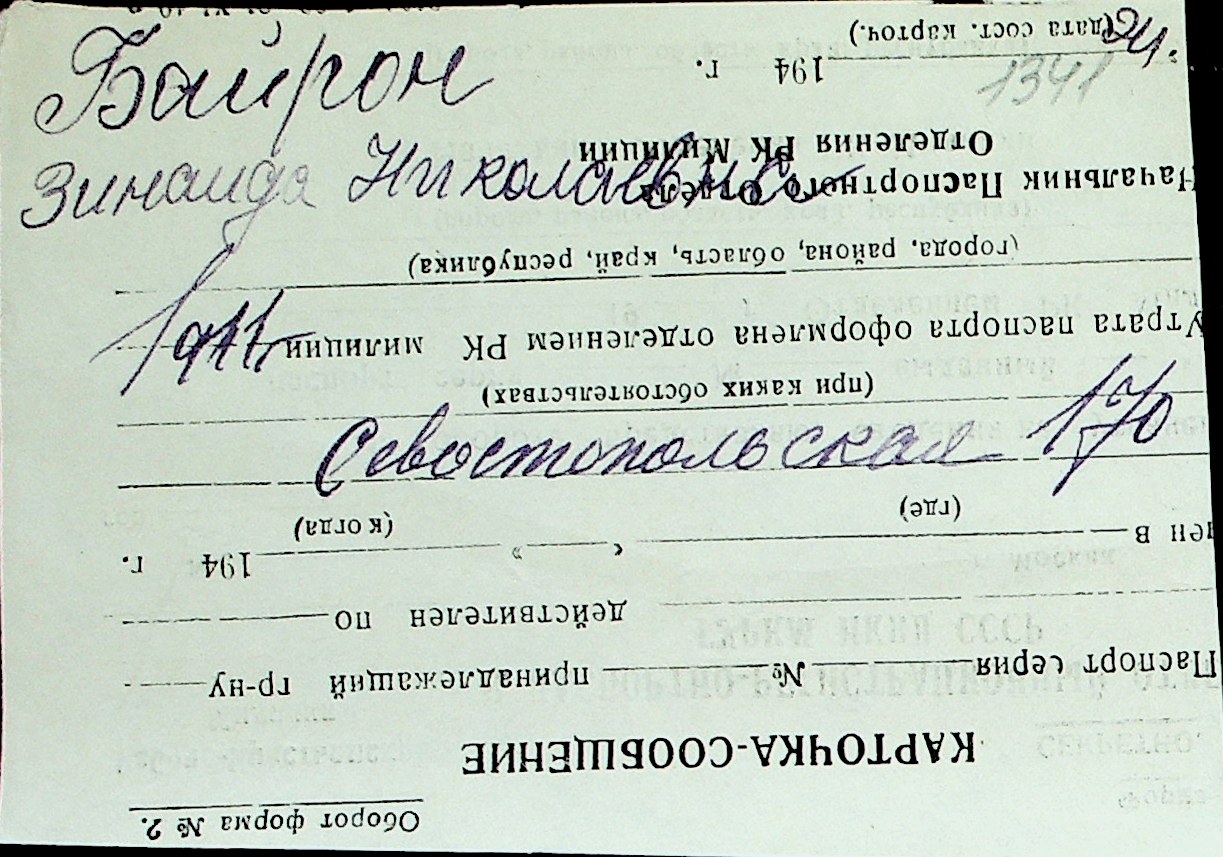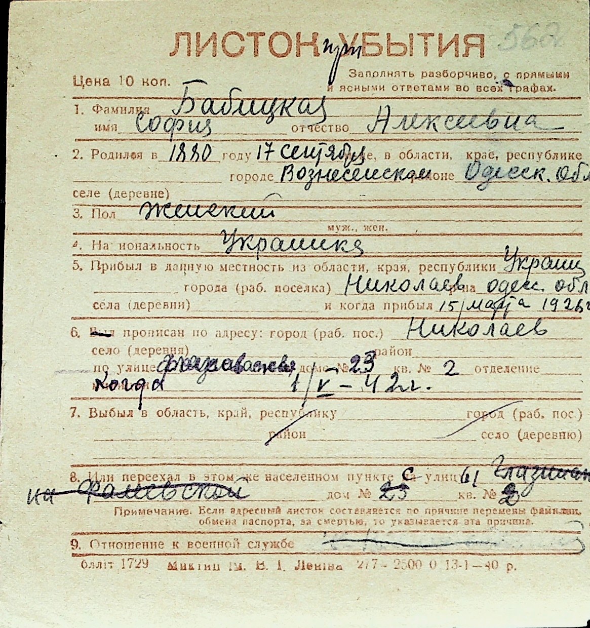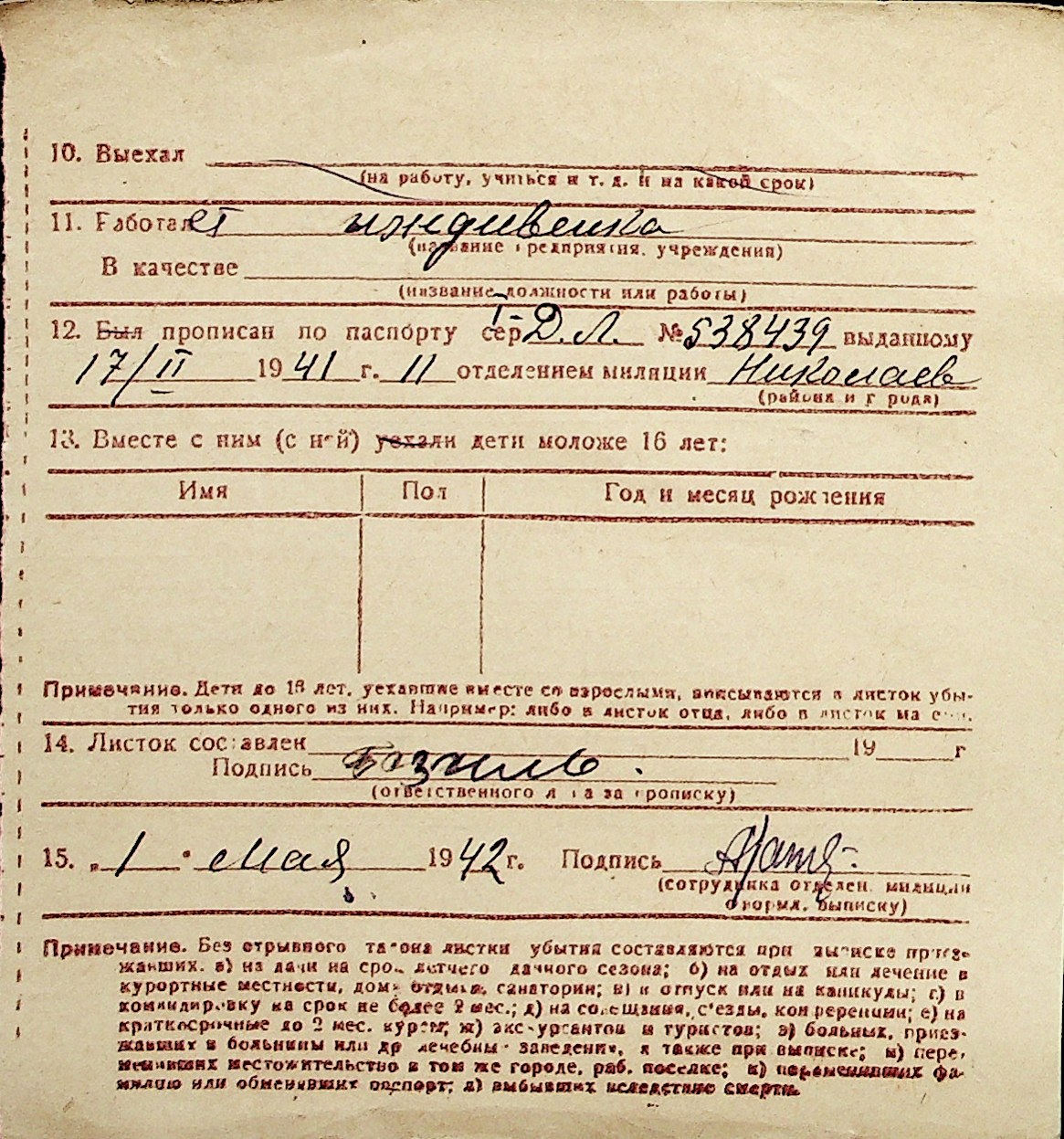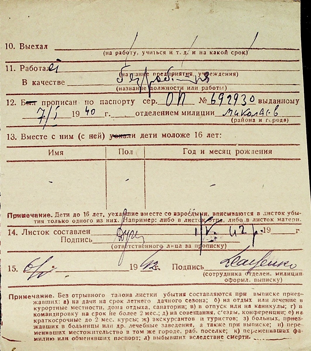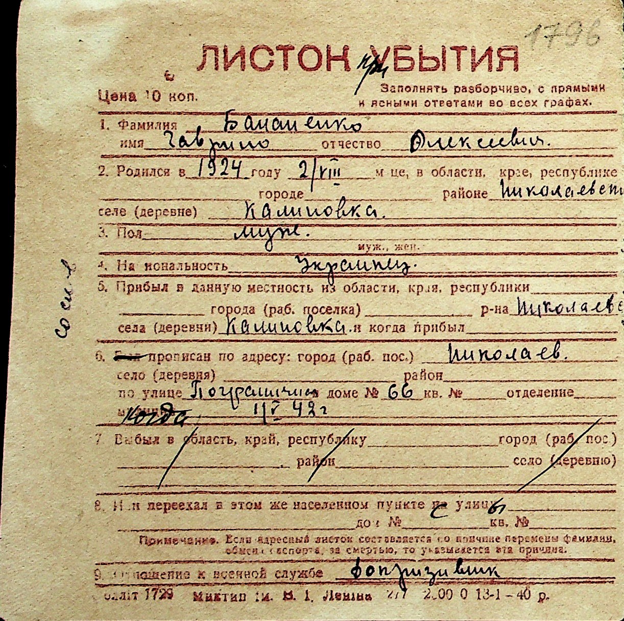 ◦ ◦ Перелік карток на осіб, які мешкали у м. Миколаїв у період окупації 1941–1944 років