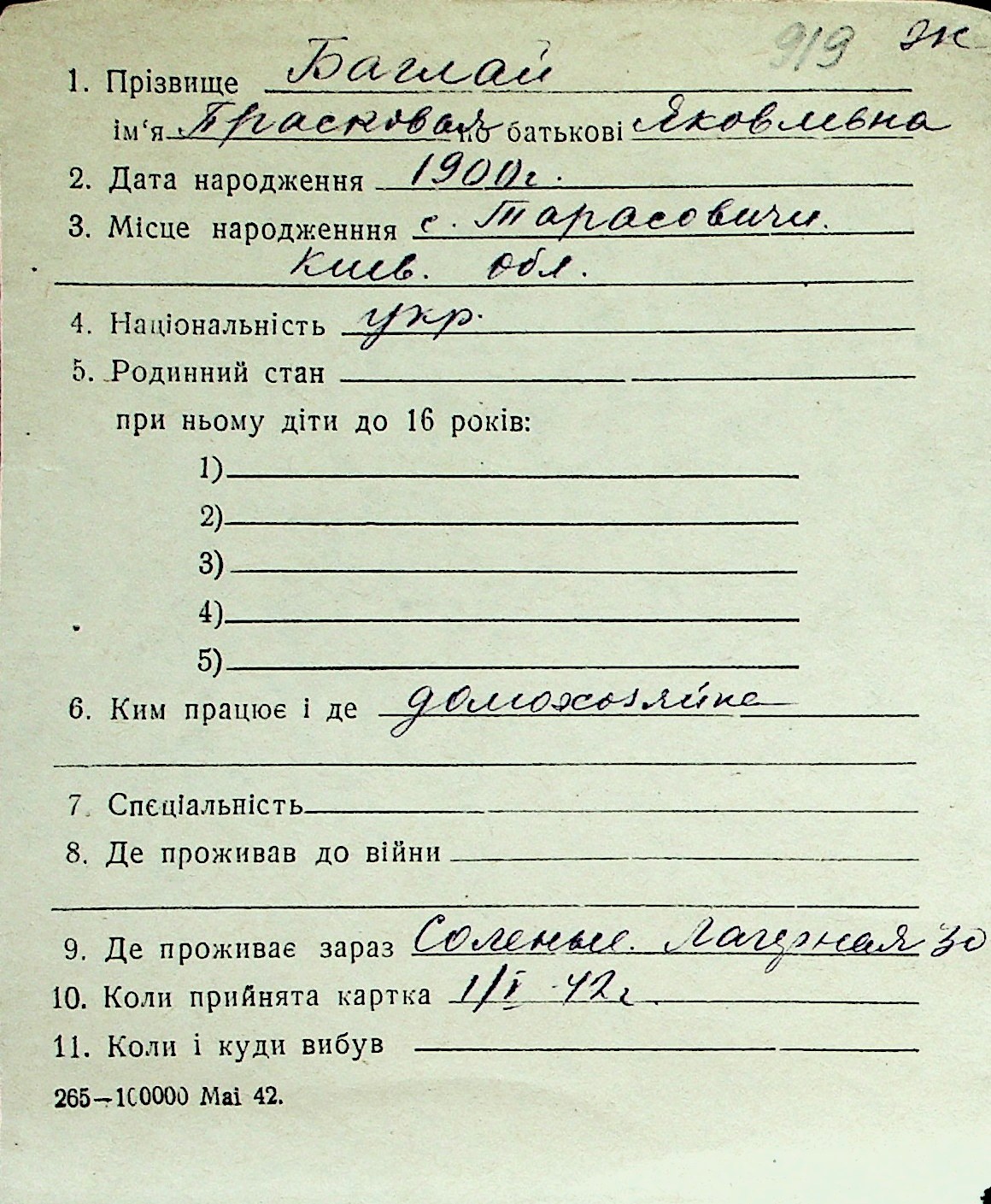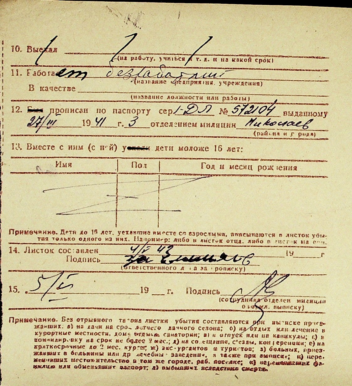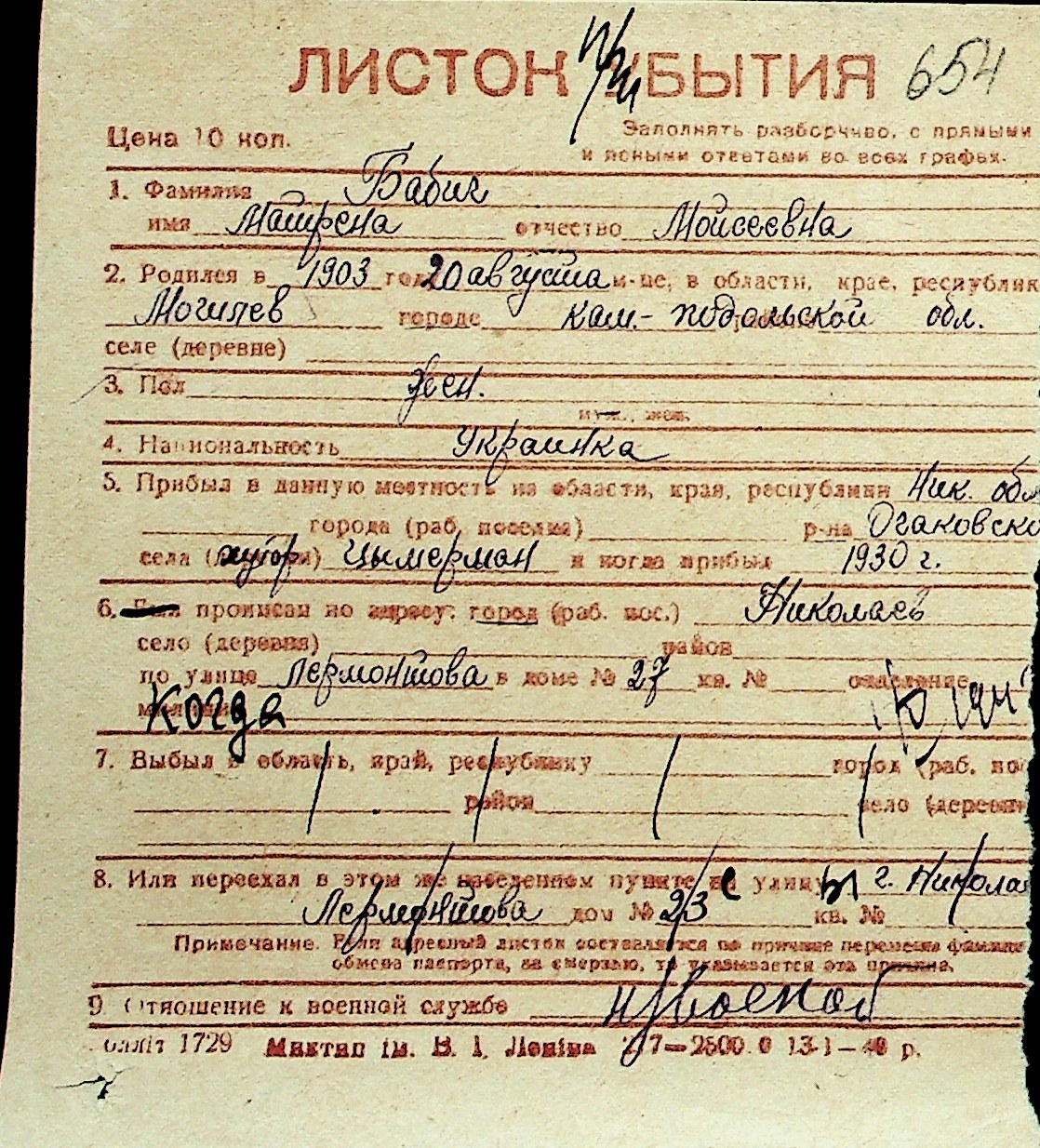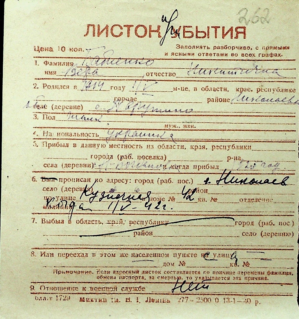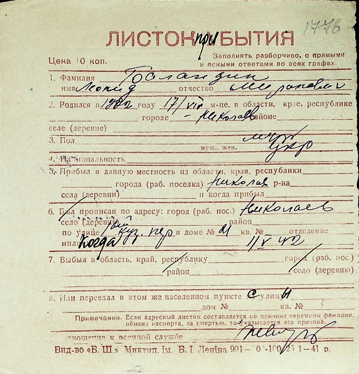 ◦ ◦ Перелік карток на осіб, які мешкали у м. Миколаїв у період окупації 1941–1944 років