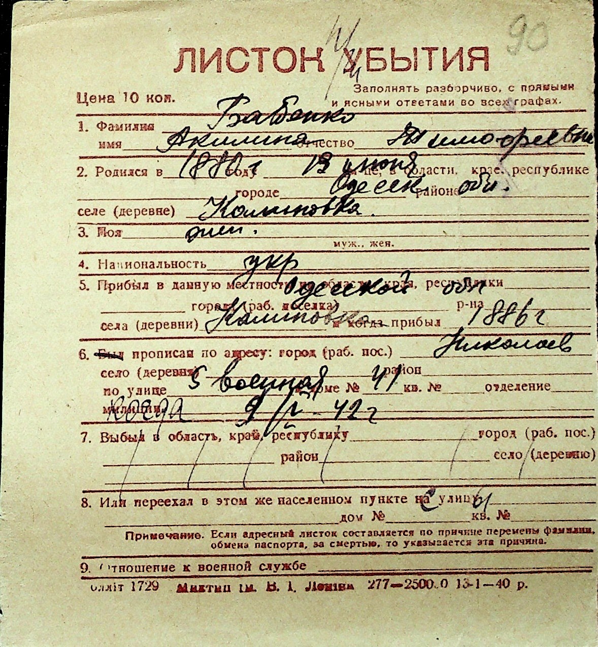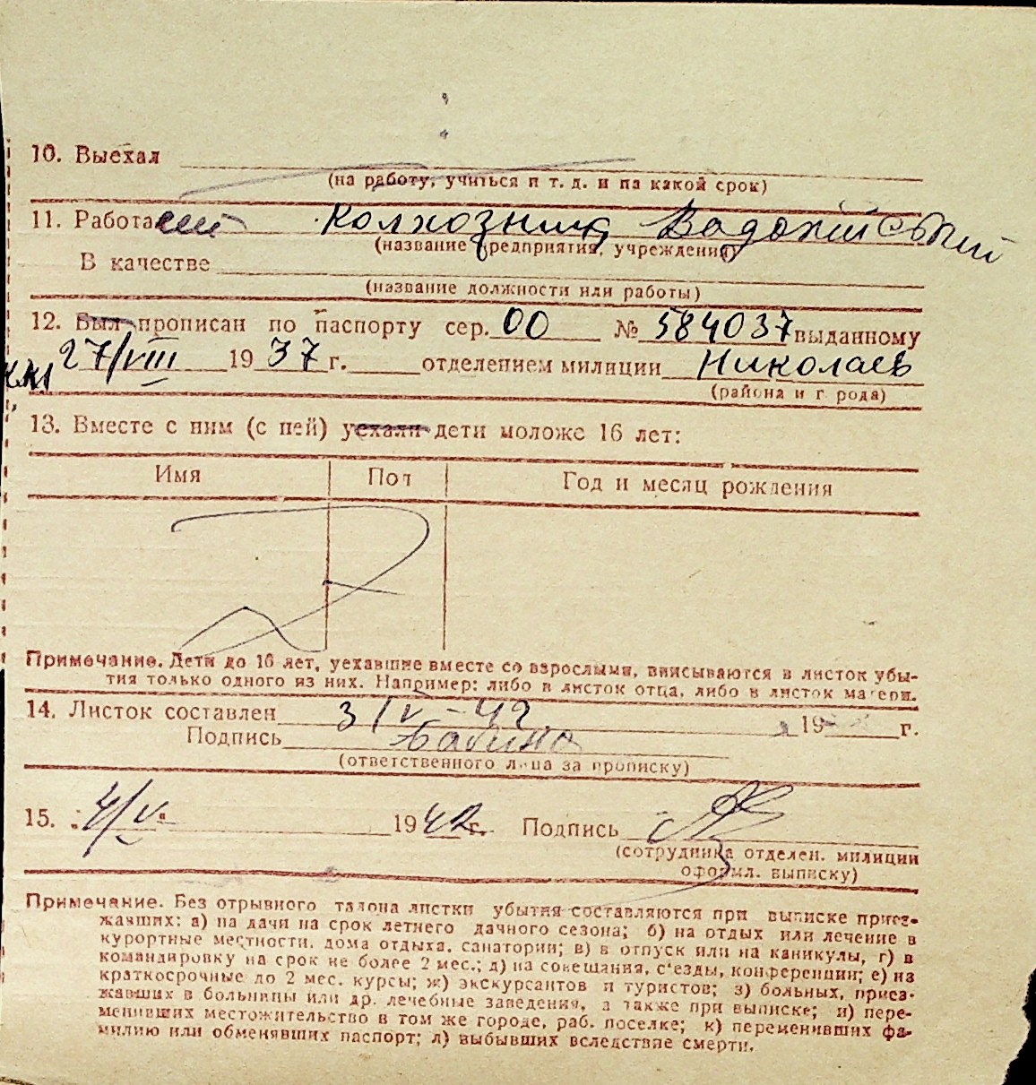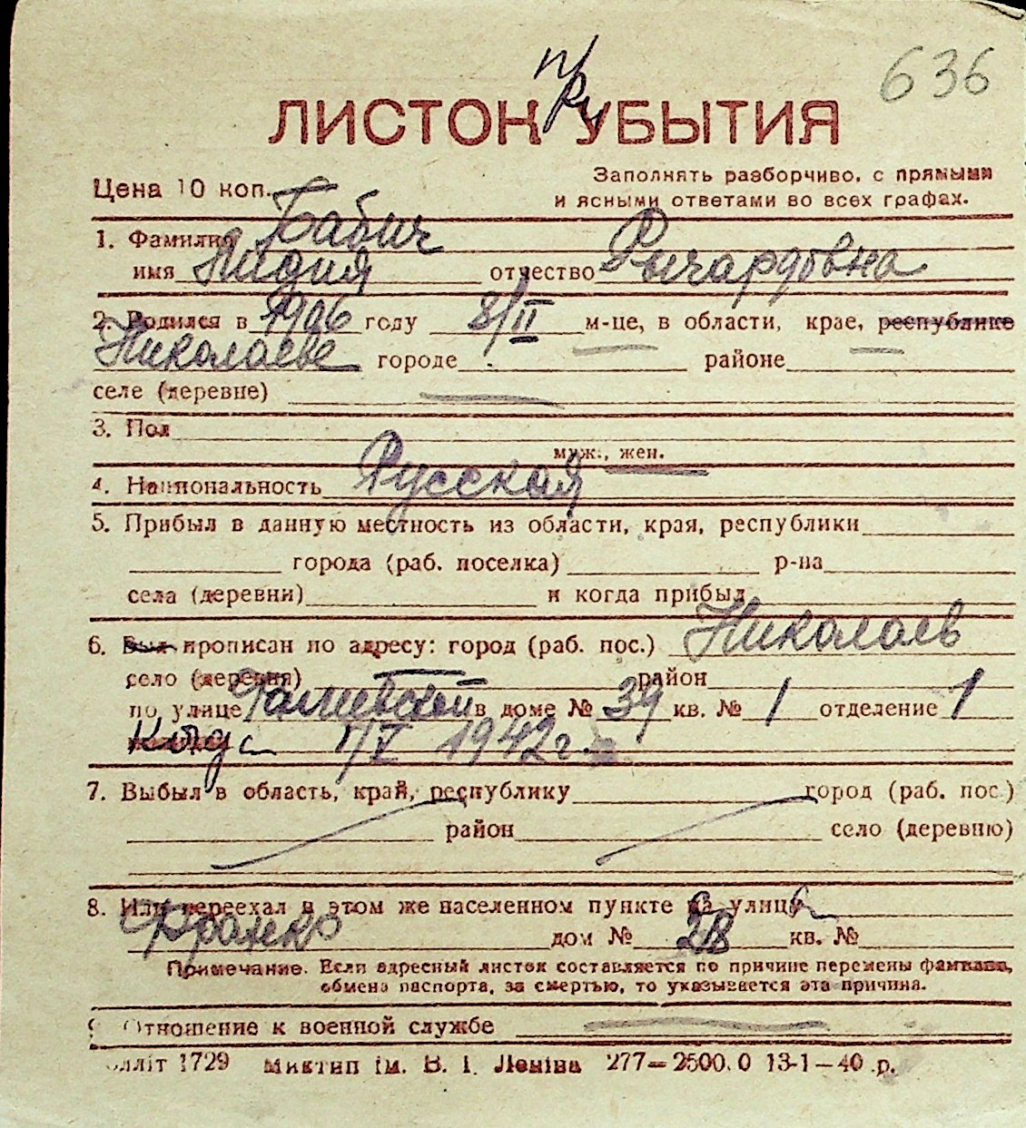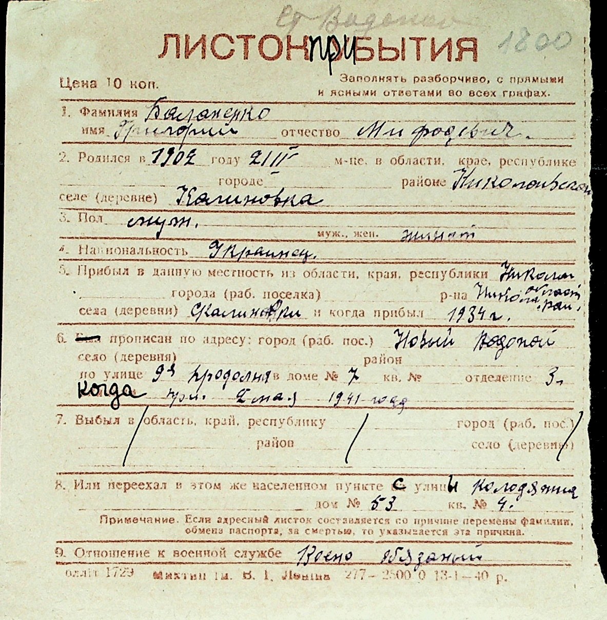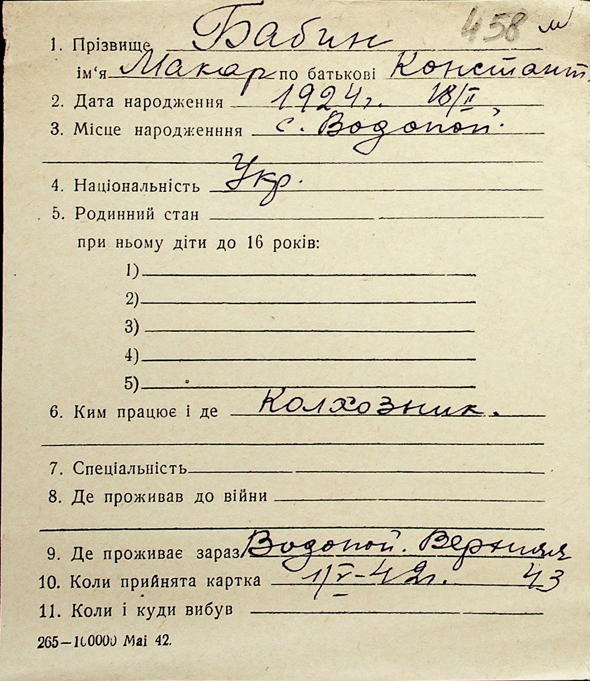 ◦ ◦ Перелік карток на осіб, які мешкали у м. Миколаїв у період окупації 1941–1944 років