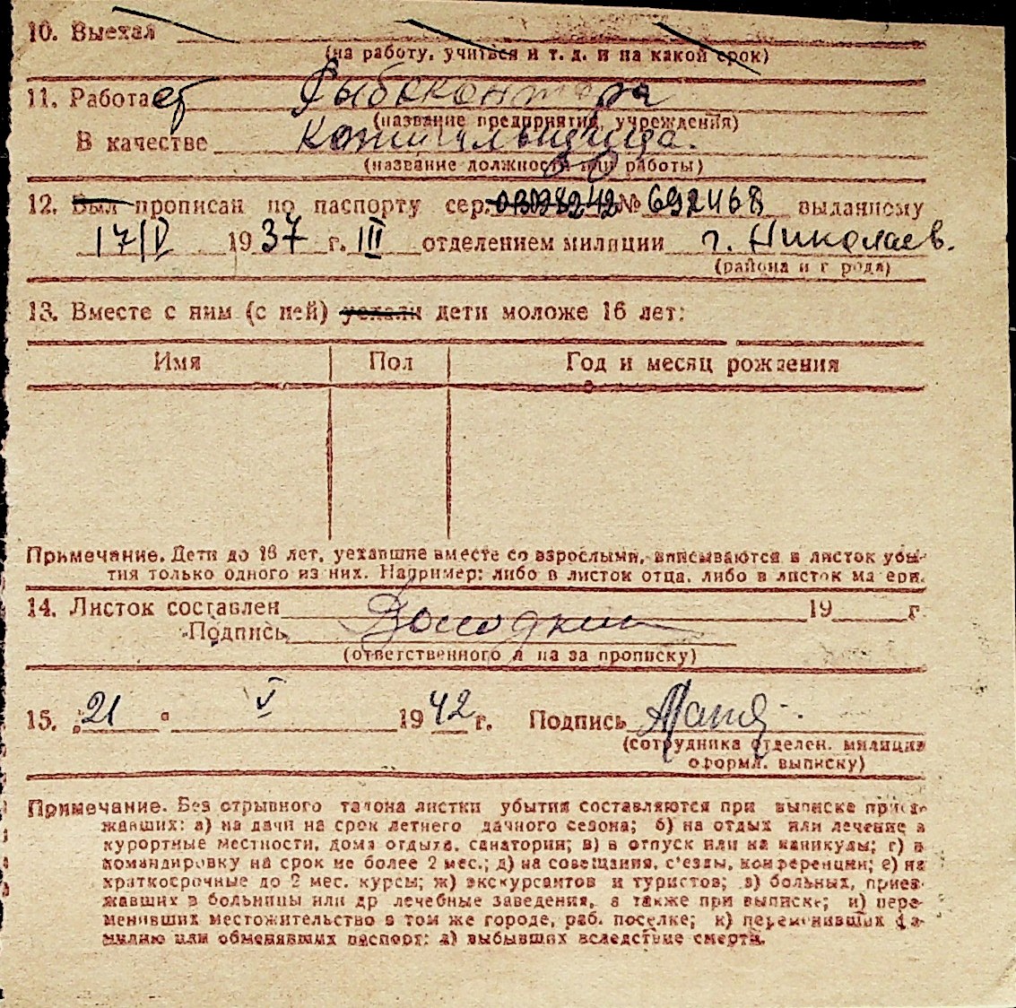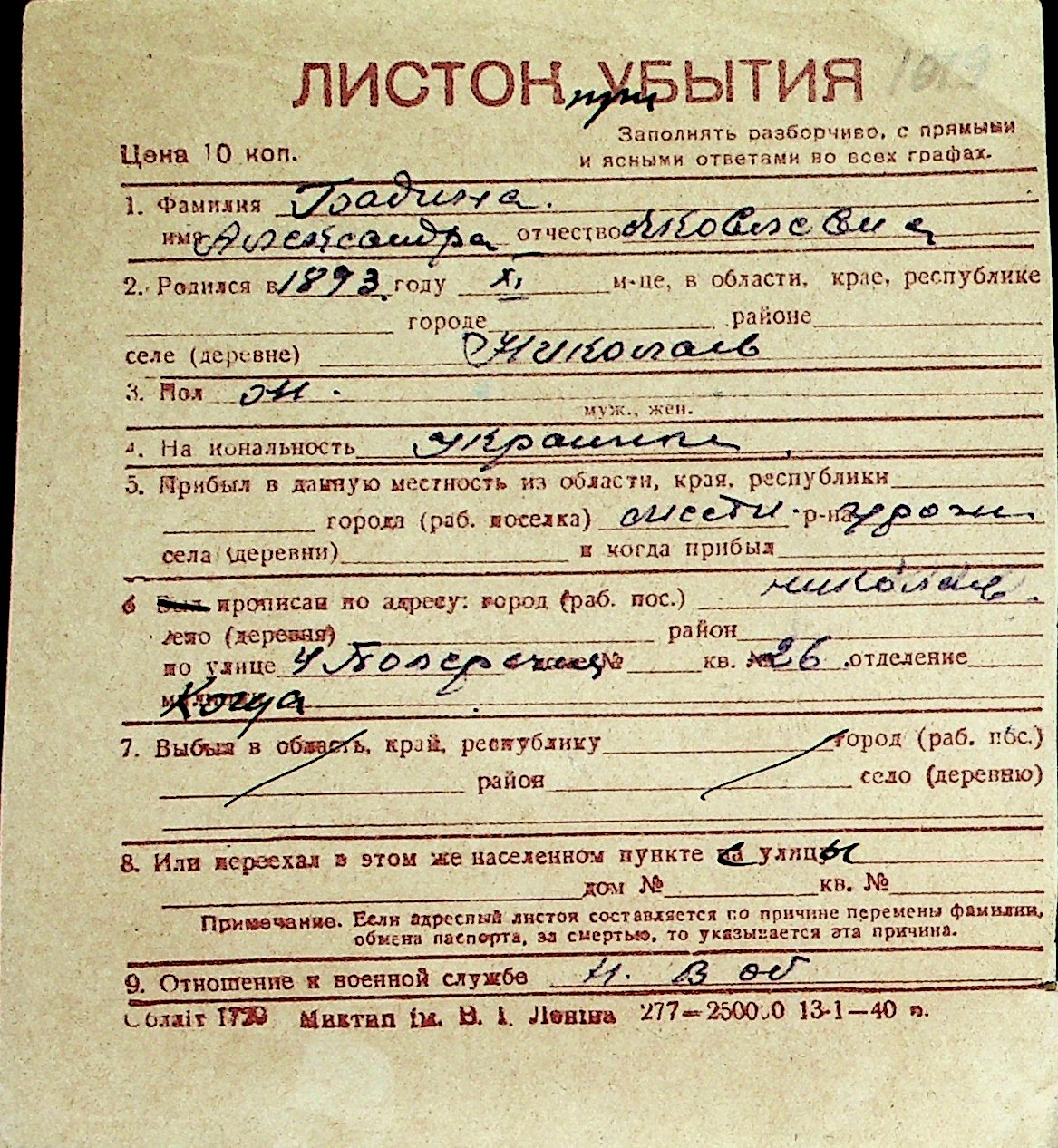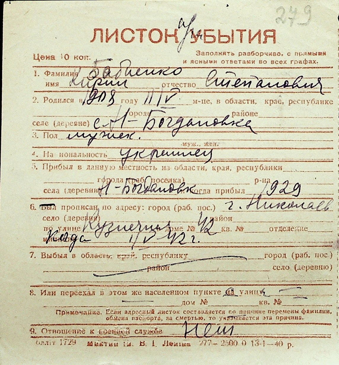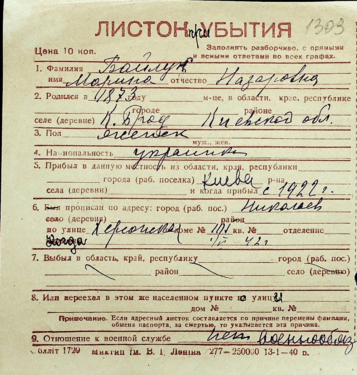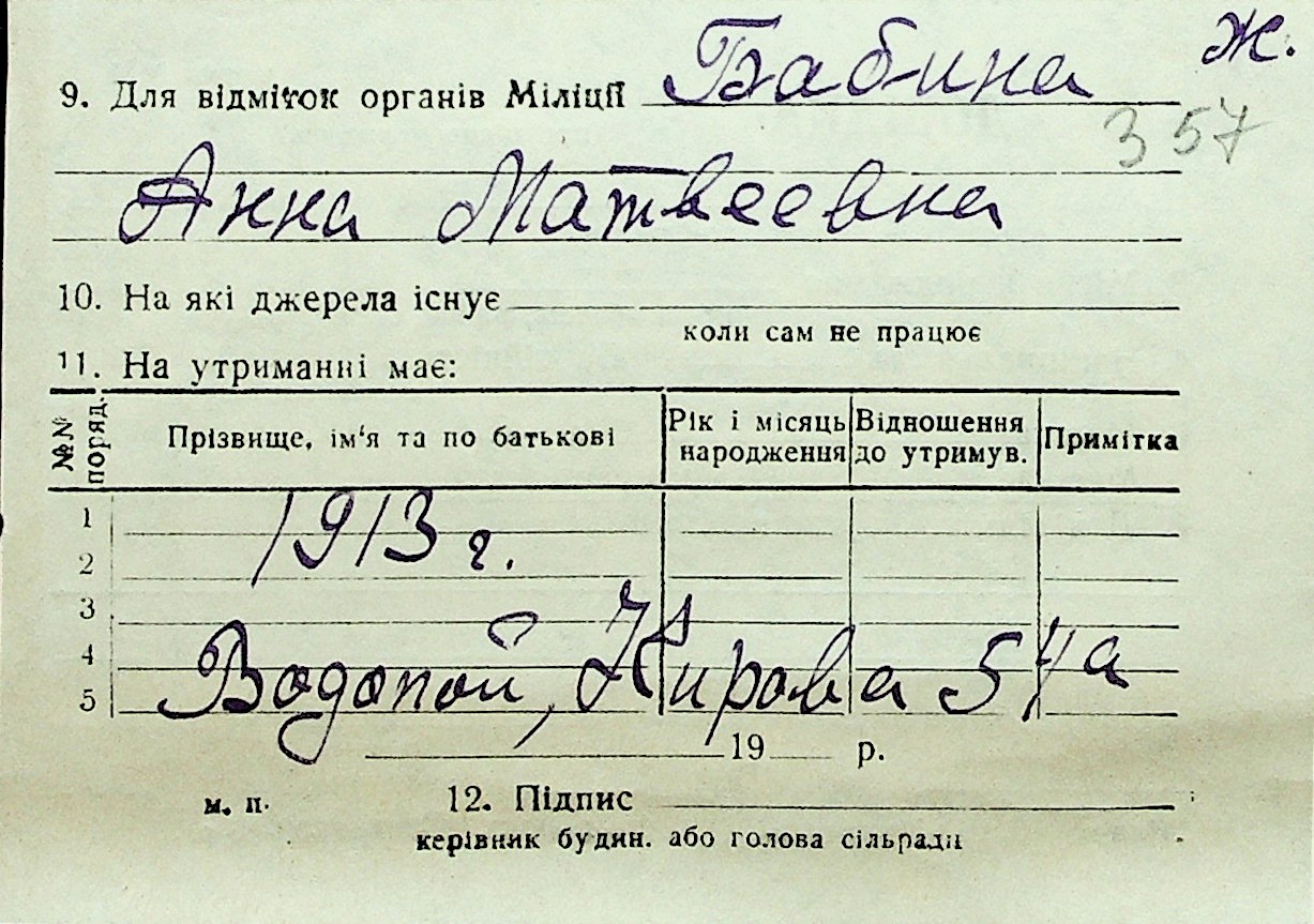 ◦ ◦ Перелік карток на осіб, які мешкали у м. Миколаїв у період окупації 1941–1944 років