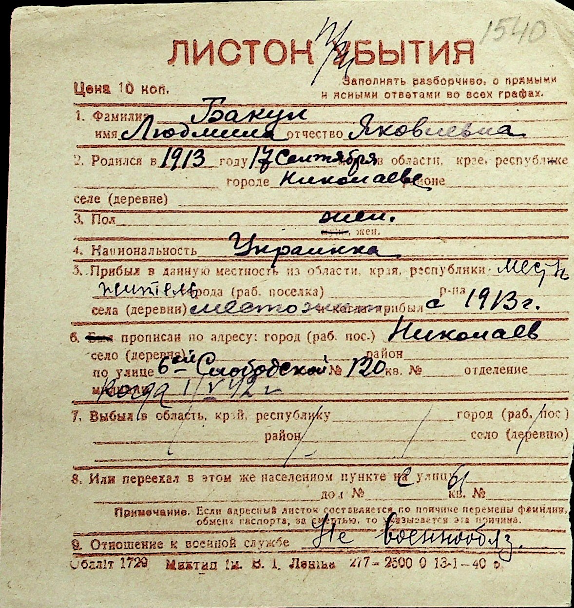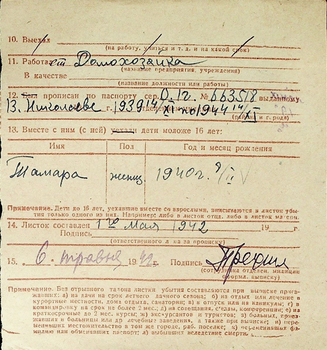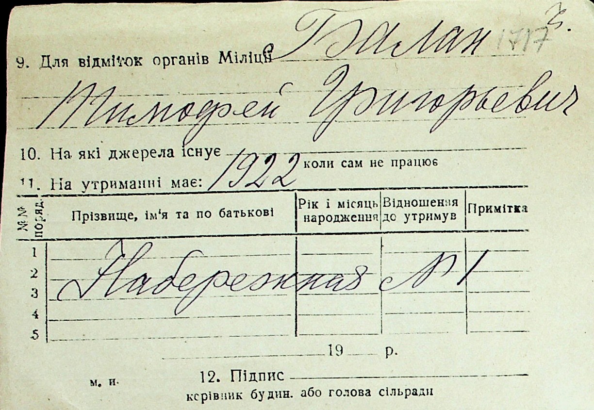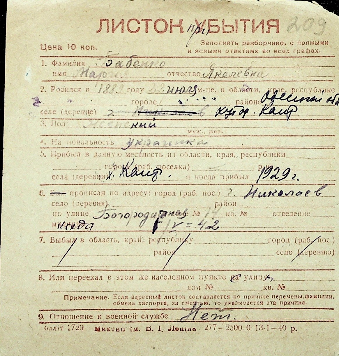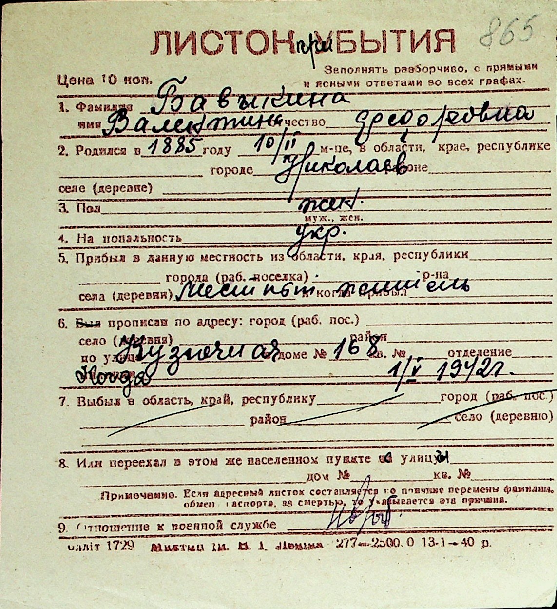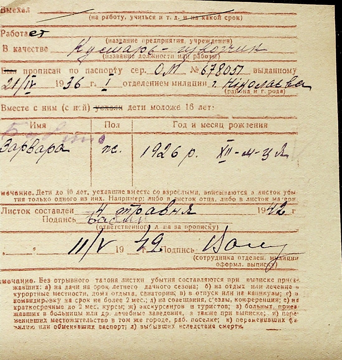 ◦ ◦ Перелік карток на осіб, які мешкали у м. Миколаїв у період окупації 1941–1944 років