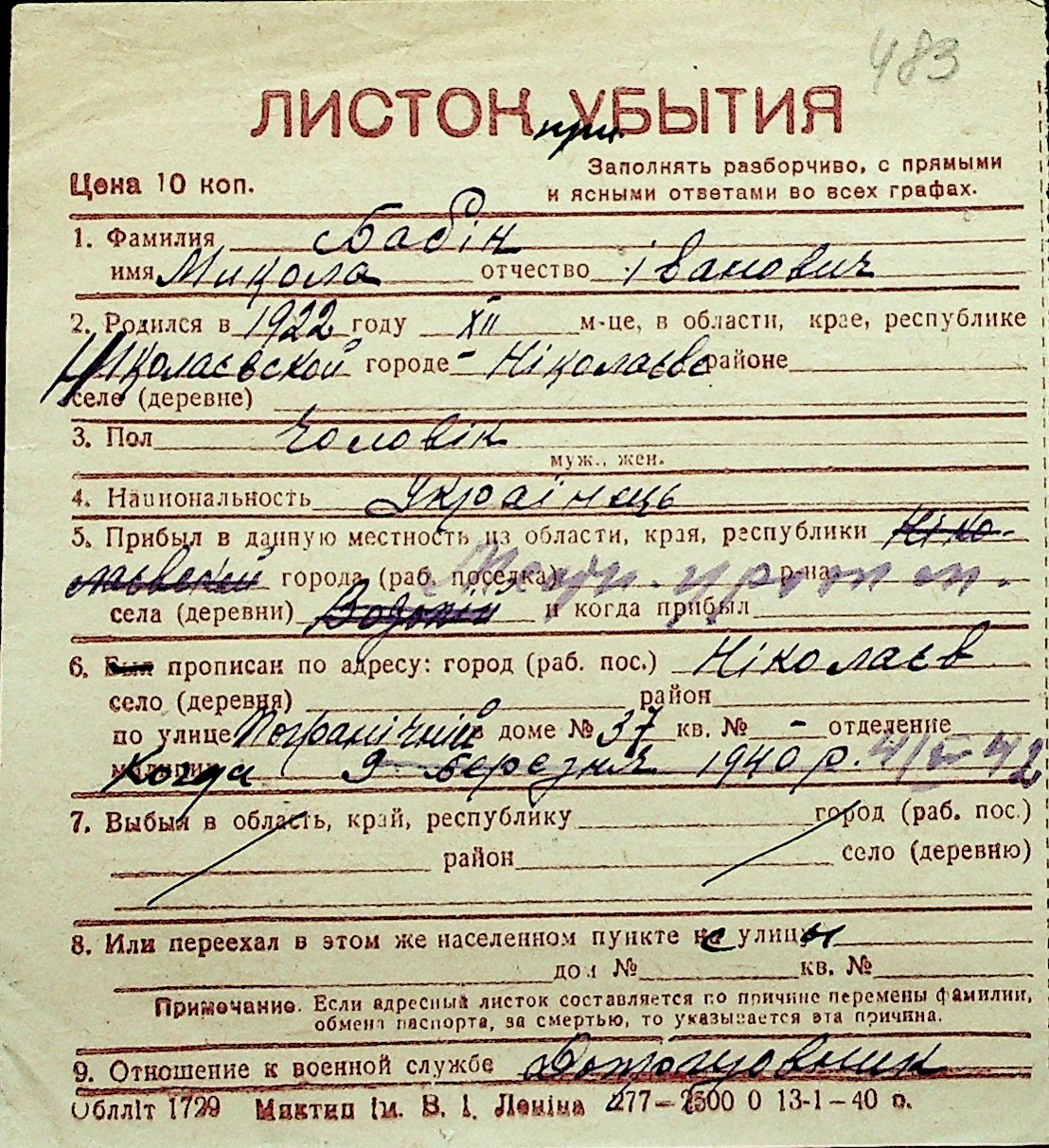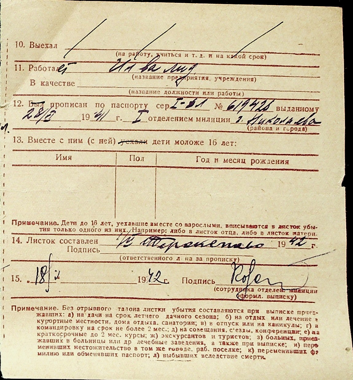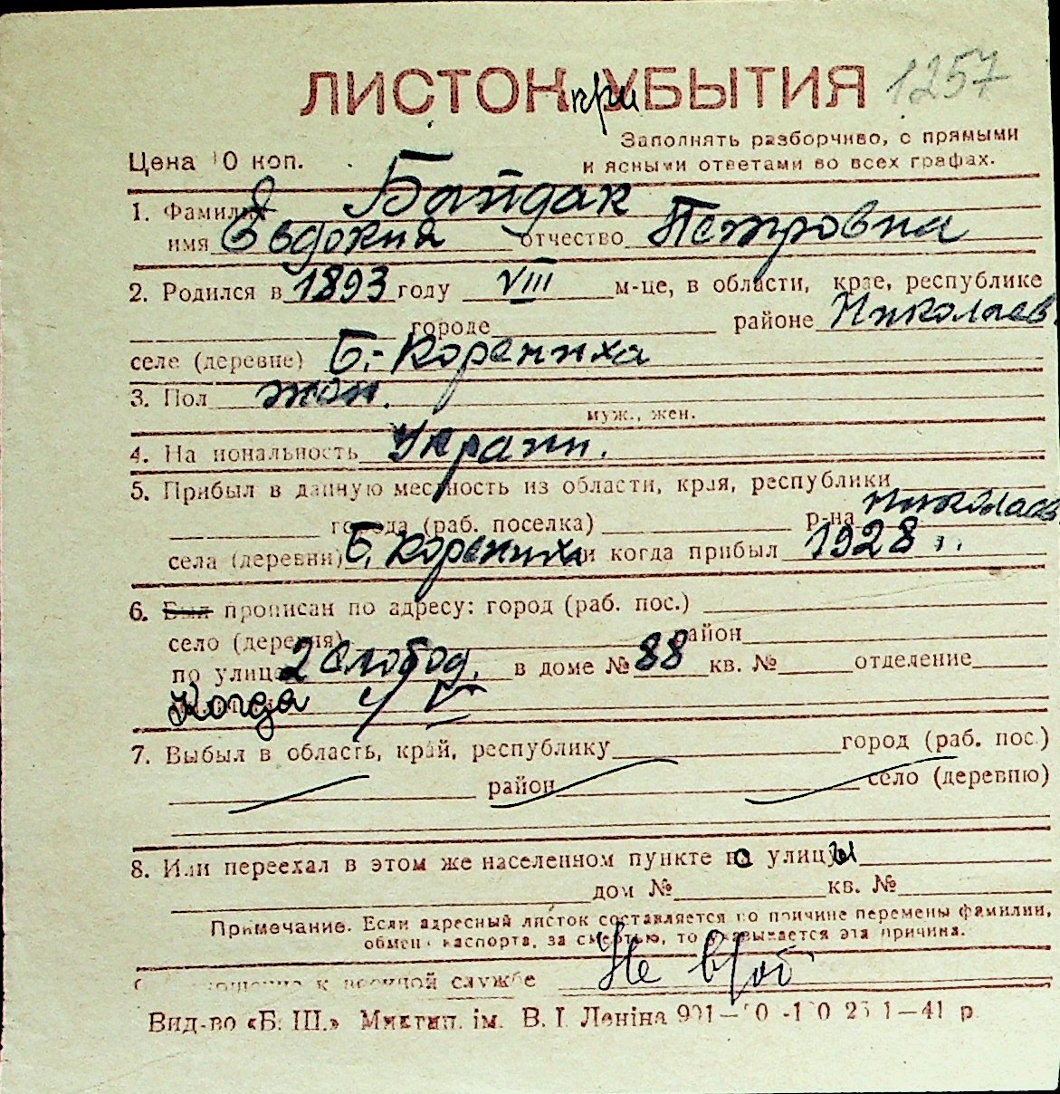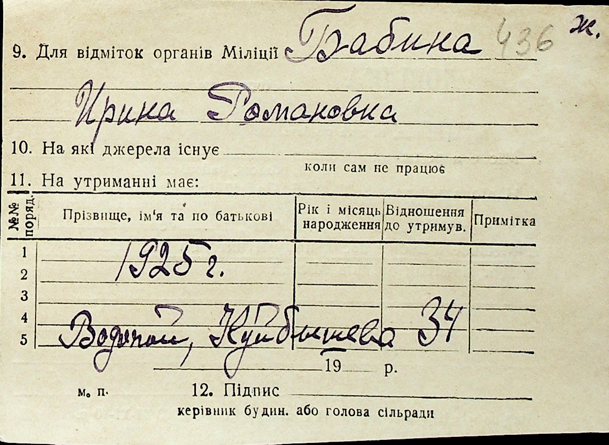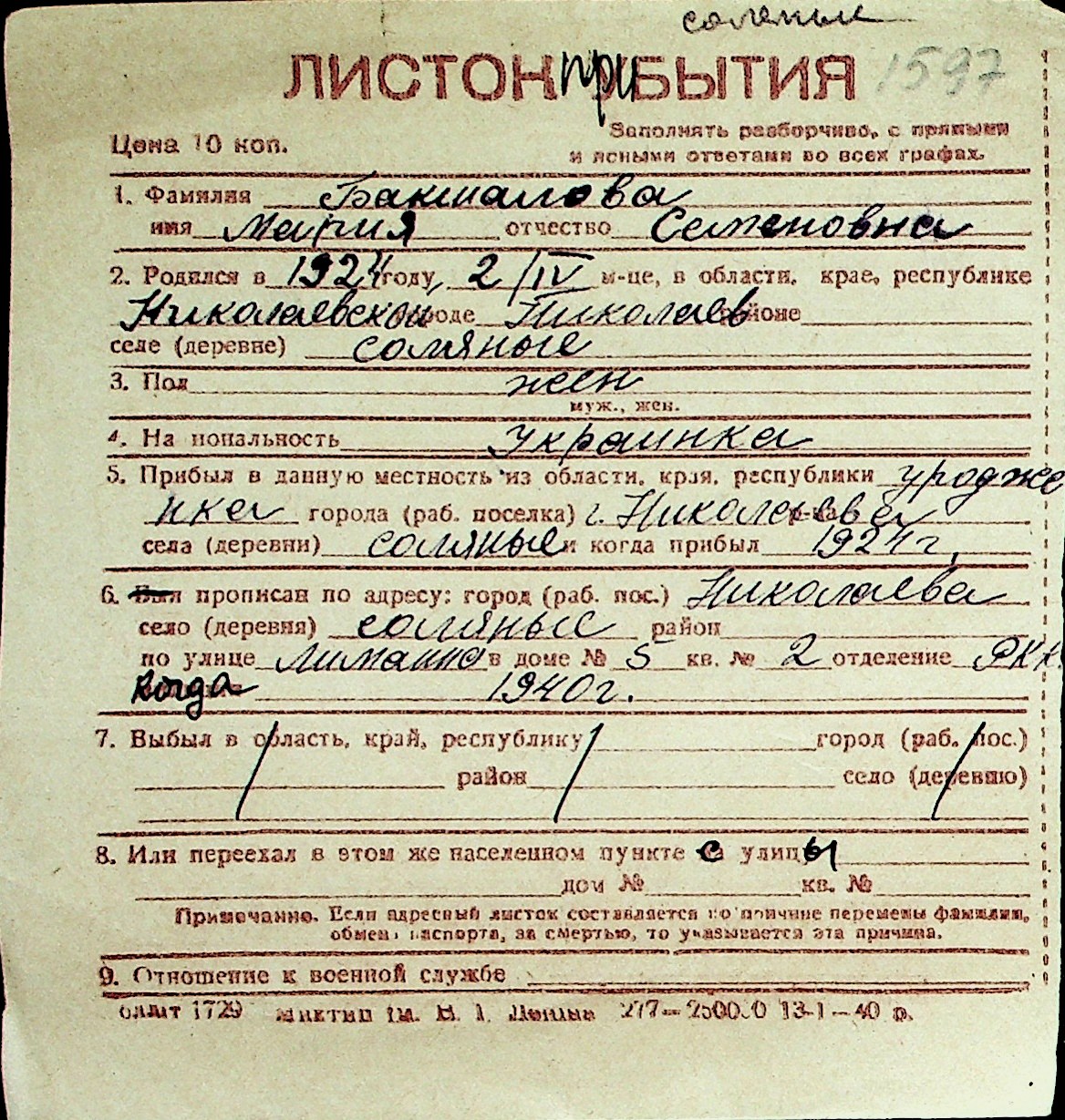 ◦ ◦ Перелік карток на осіб, які мешкали у м. Миколаїв у період окупації 1941–1944 років