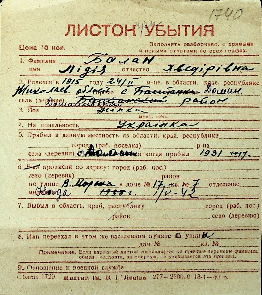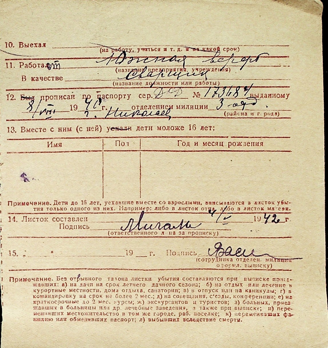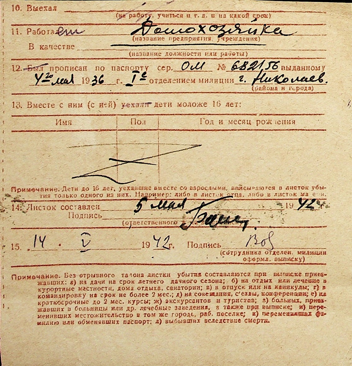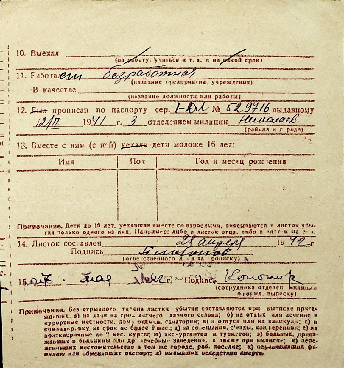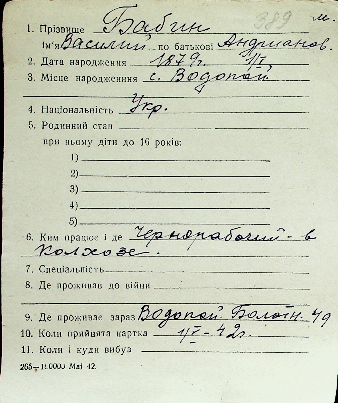 ◦ ◦ Перелік карток на осіб, які мешкали у м. Миколаїв у період окупації 1941–1944 років