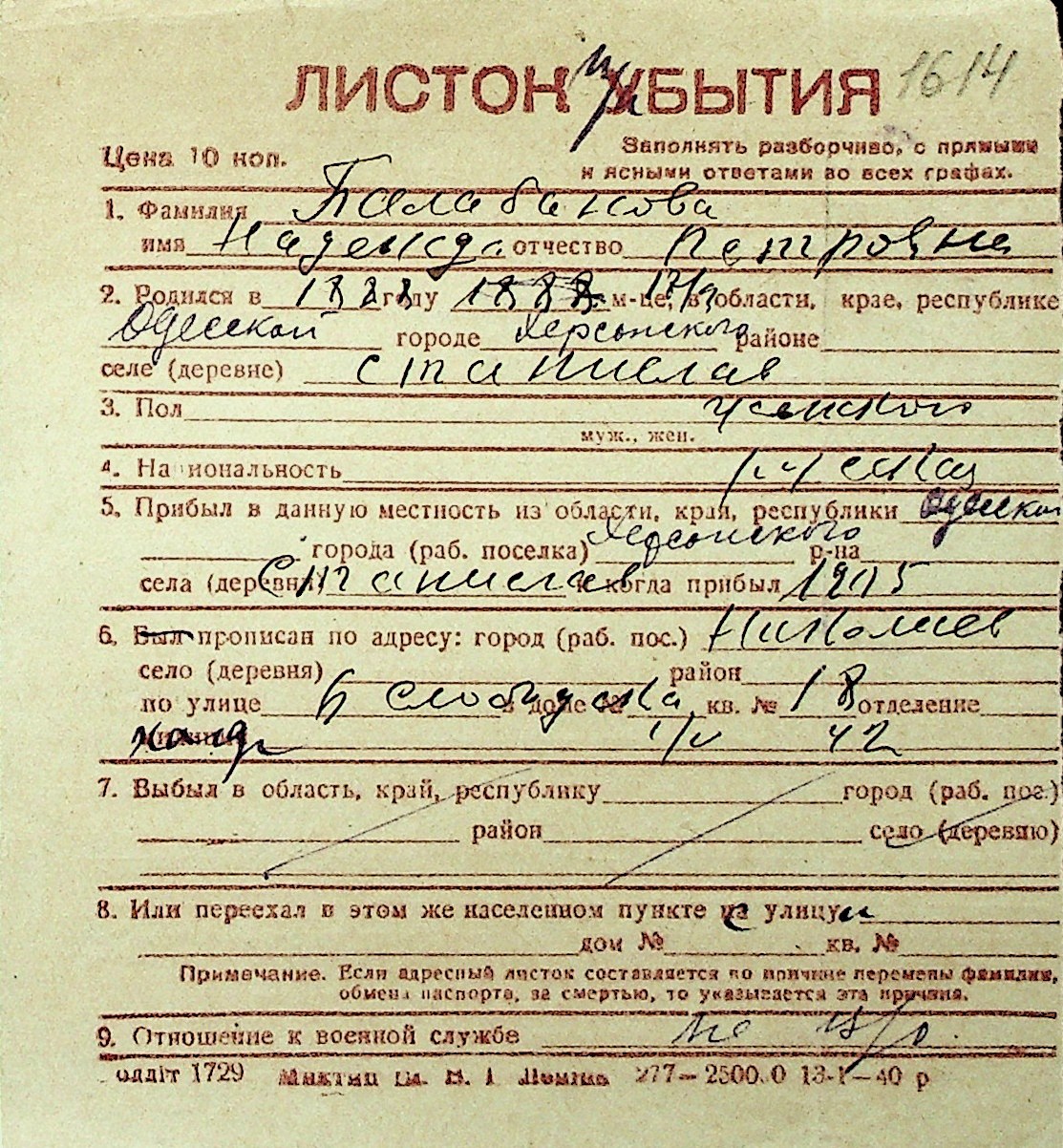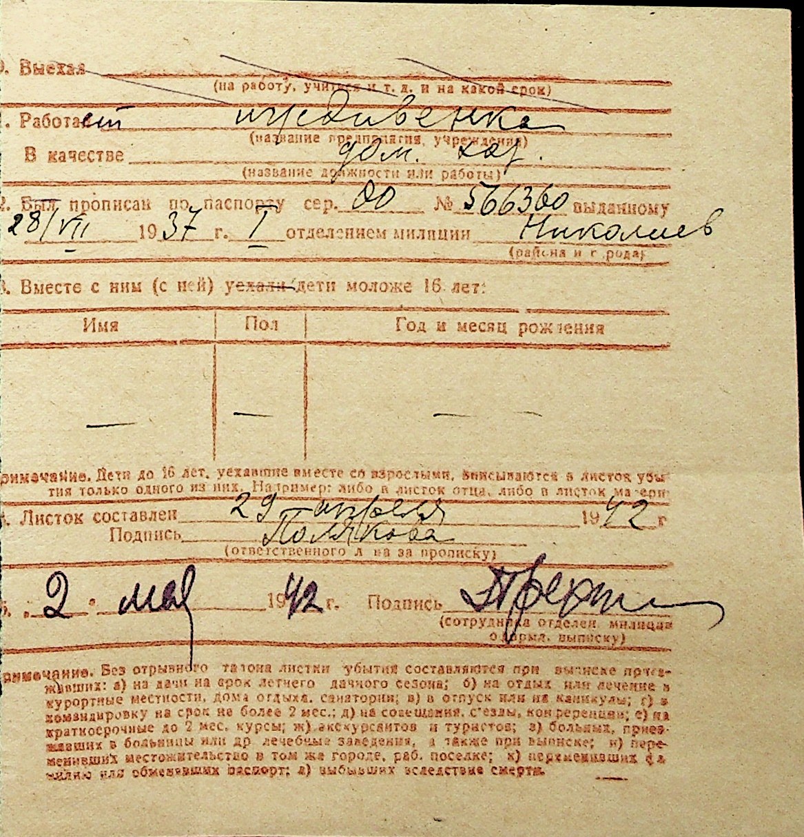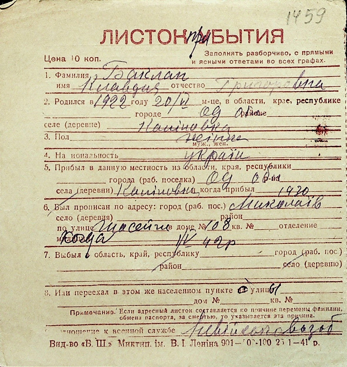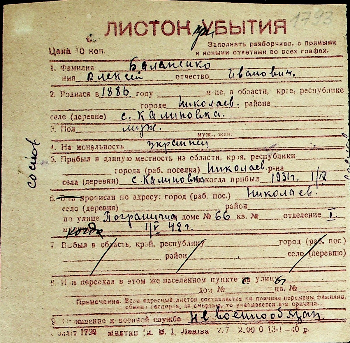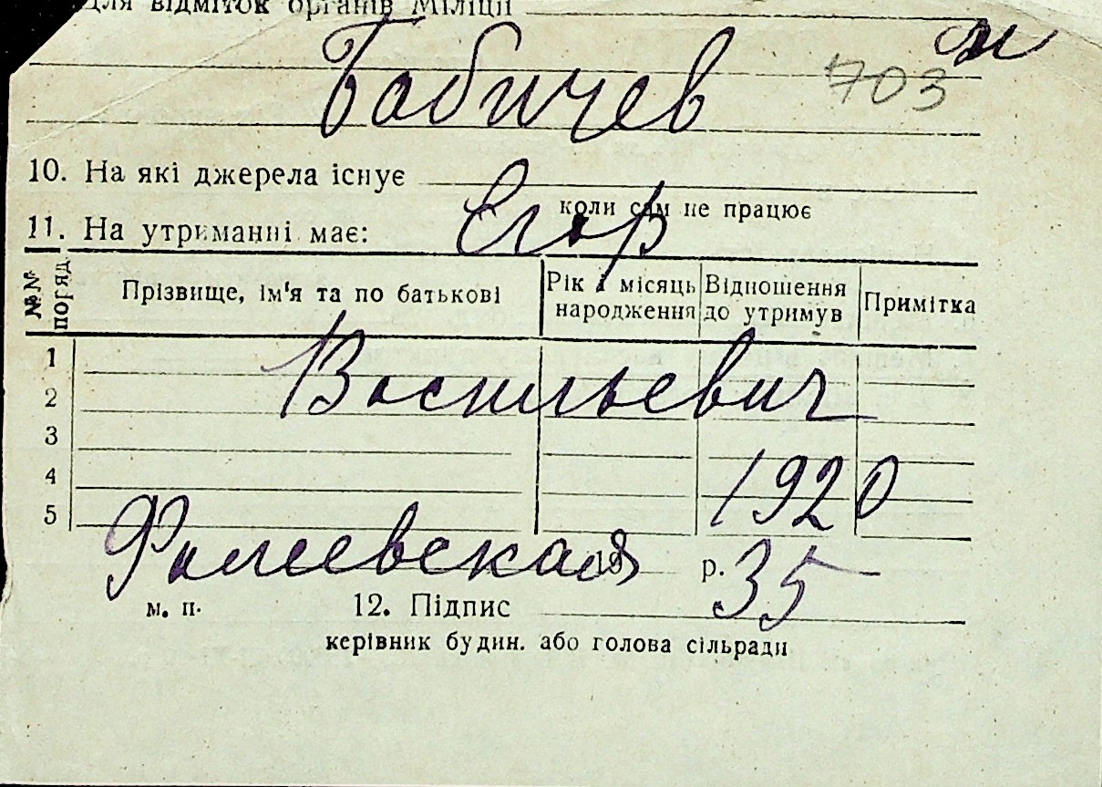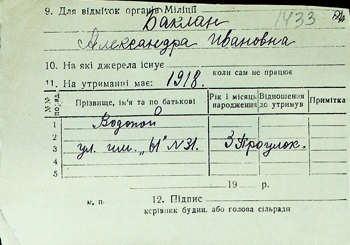 ◦ ◦ Перелік карток на осіб, які мешкали у м. Миколаїв у період окупації 1941–1944 років