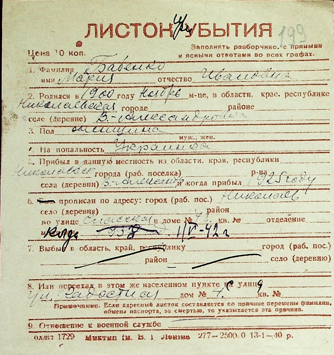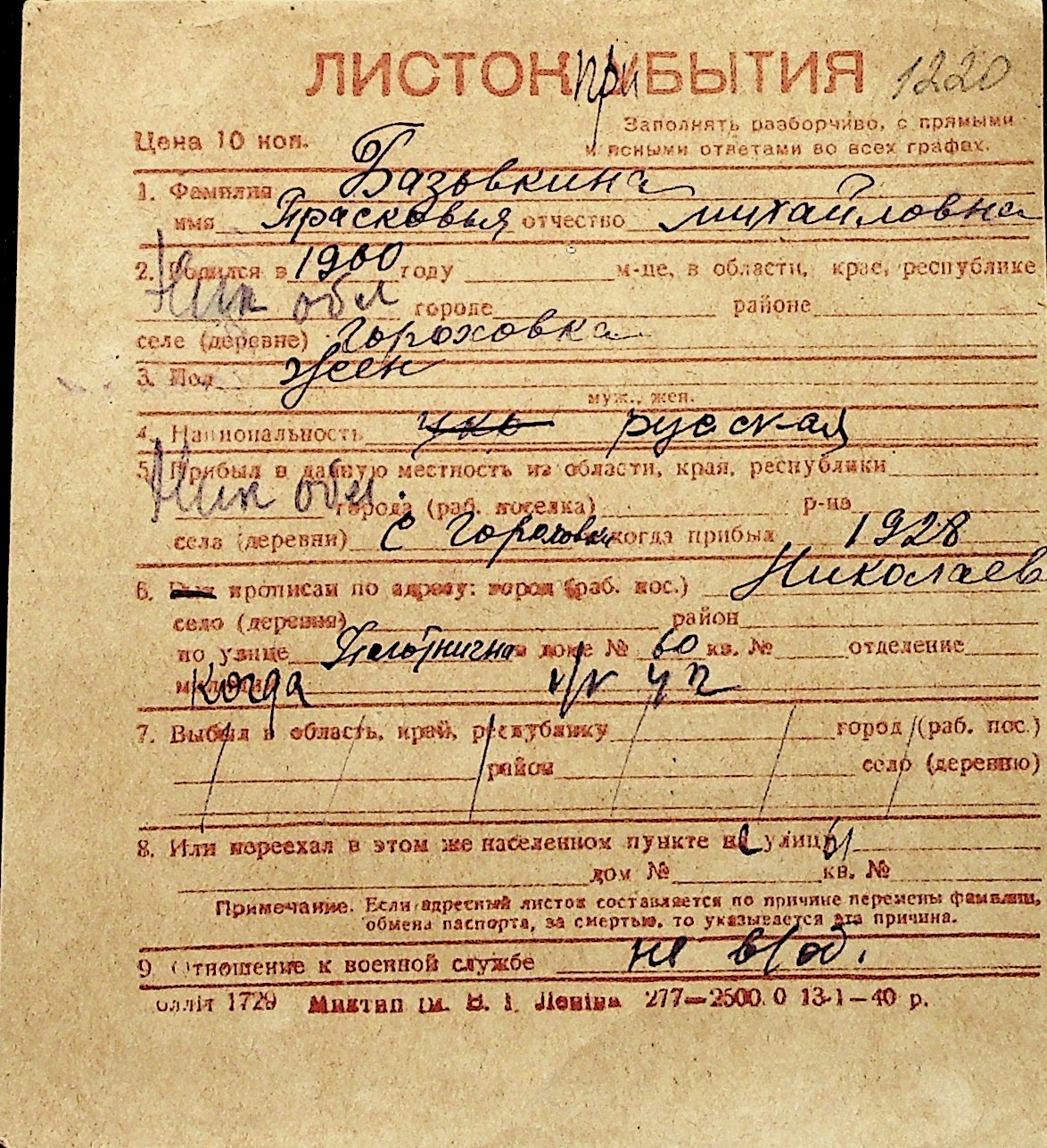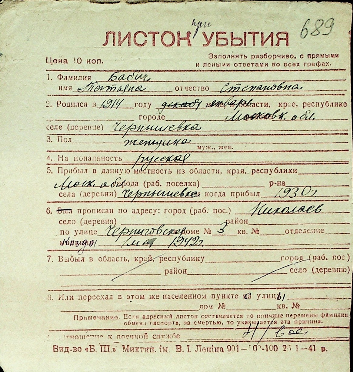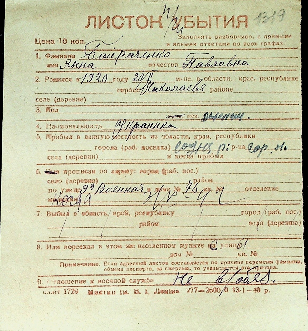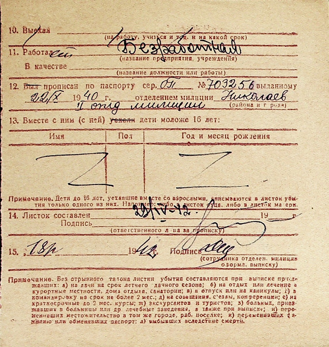◦ ◦ Перелік карток на осіб, які мешкали у м. Миколаїв у період окупації 1941–1944 років