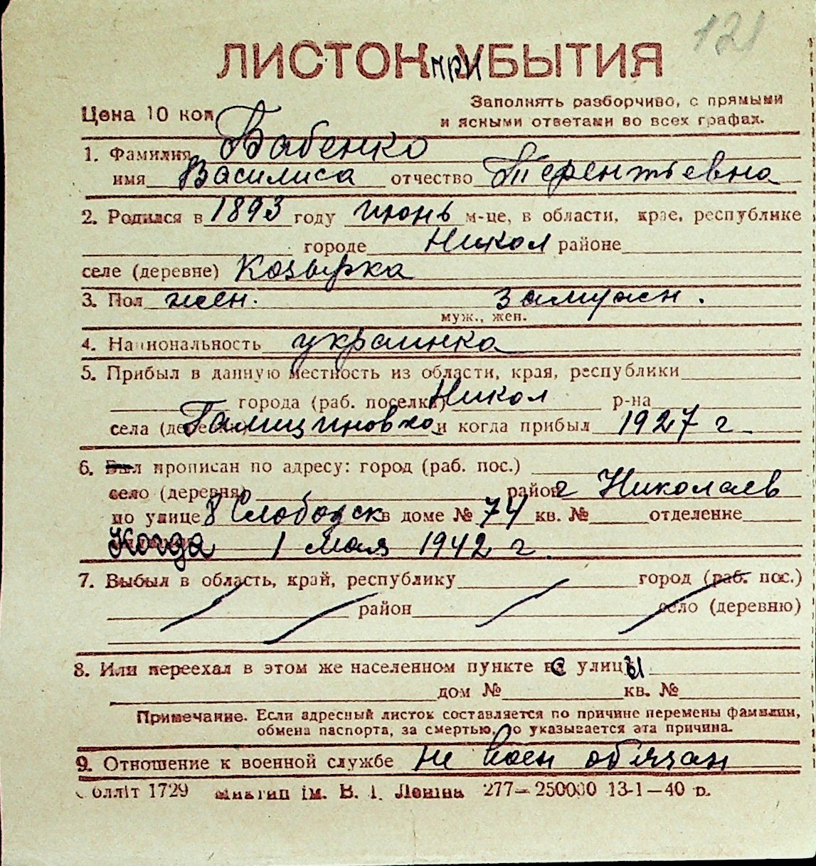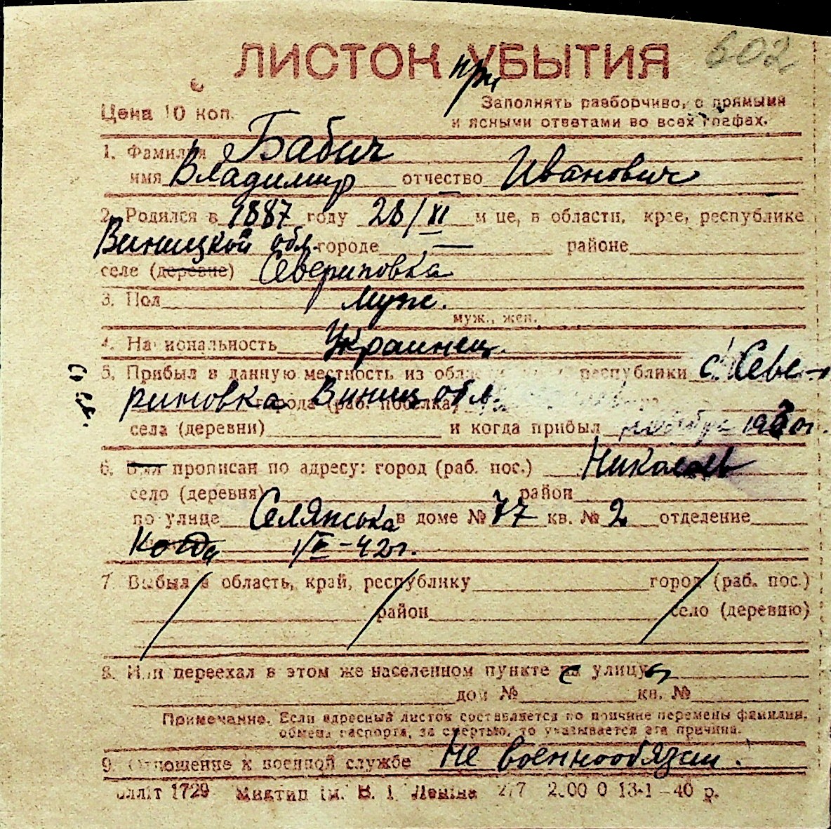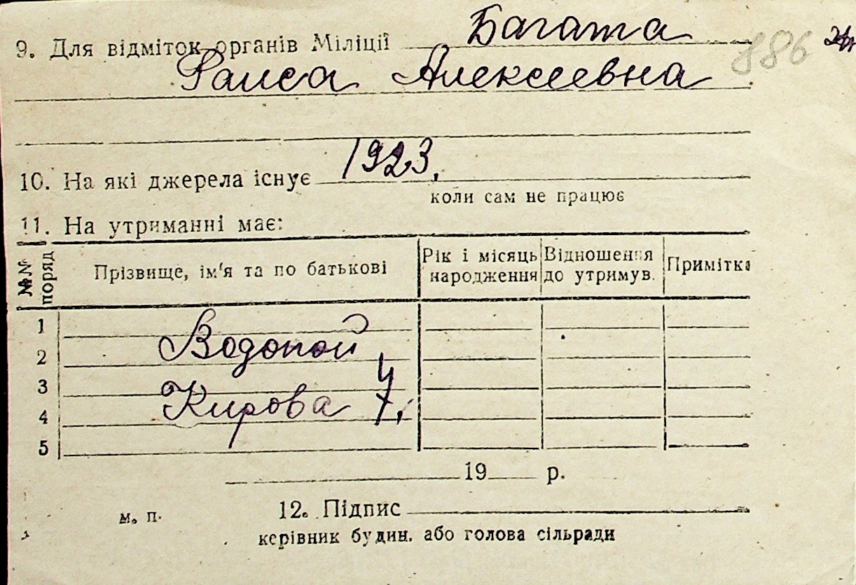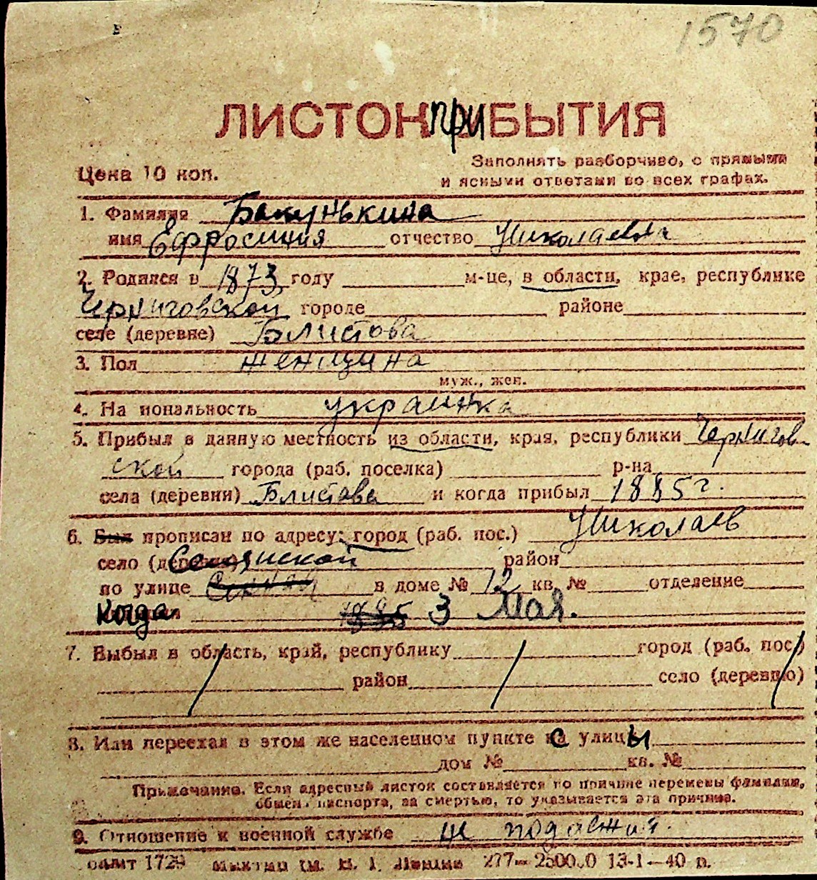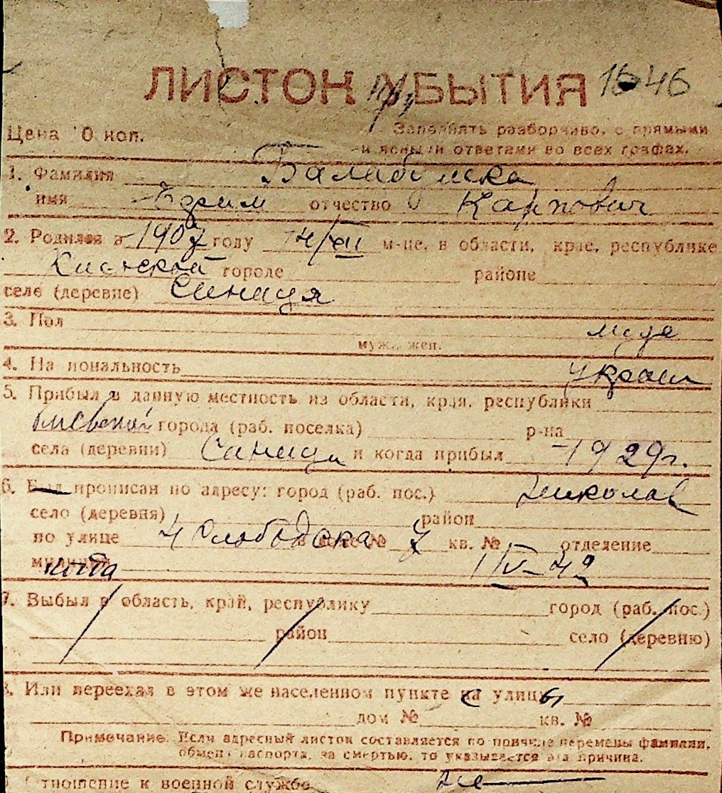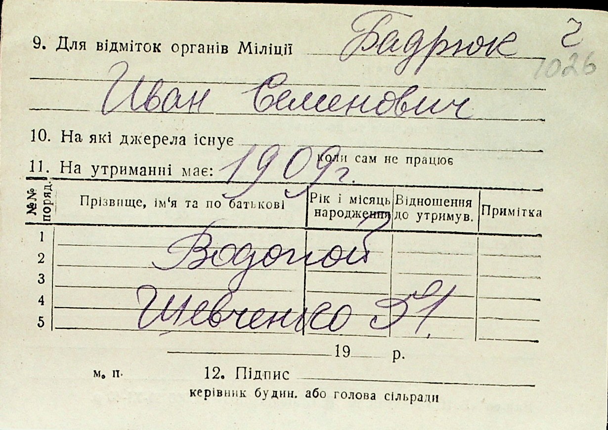 ◦ ◦ Перелік карток на осіб, які мешкали у м. Миколаїв у період окупації 1941–1944 років