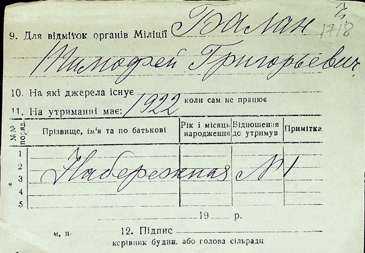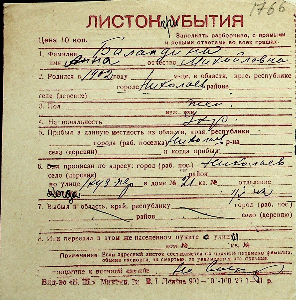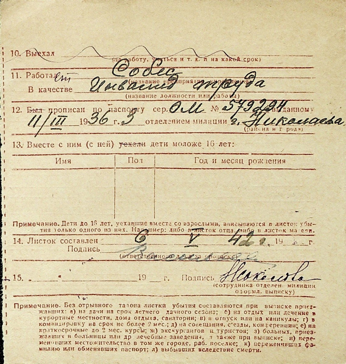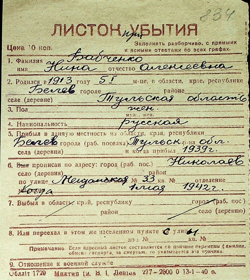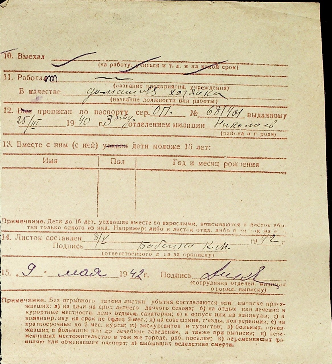 ◦ ◦ Перелік карток на осіб, які мешкали у м. Миколаїв у період окупації 1941–1944 років
