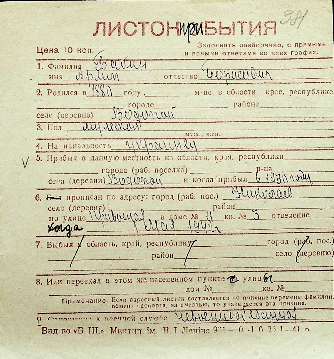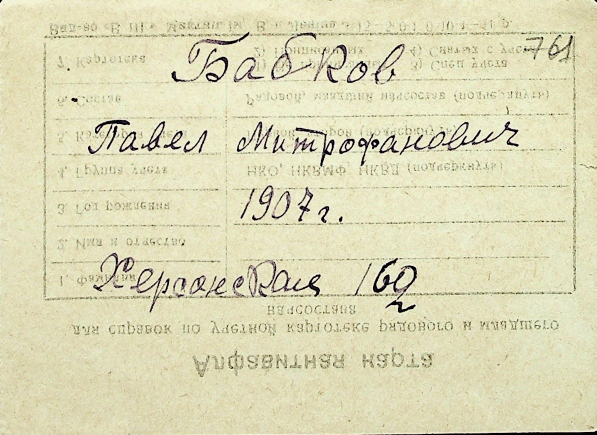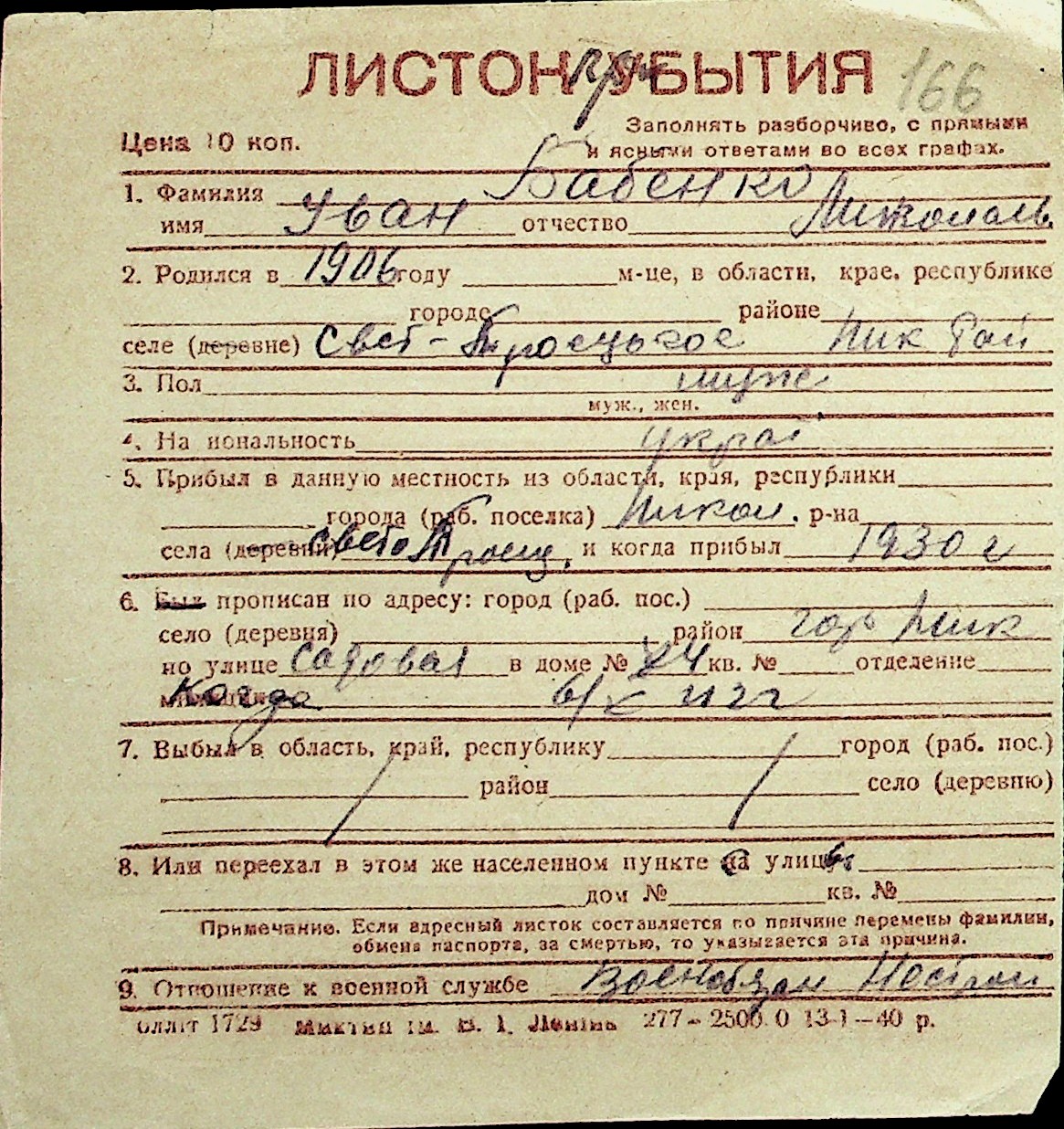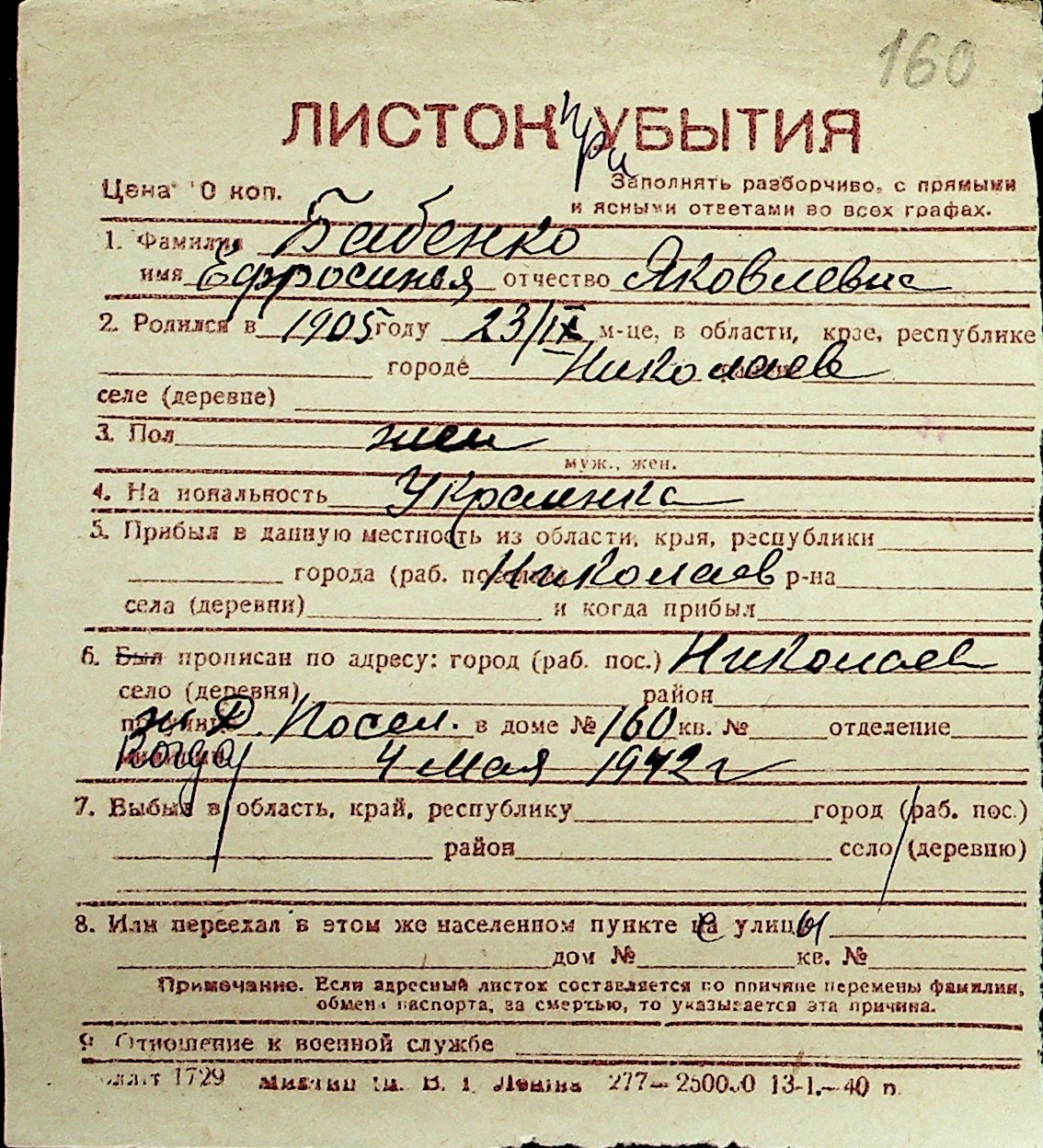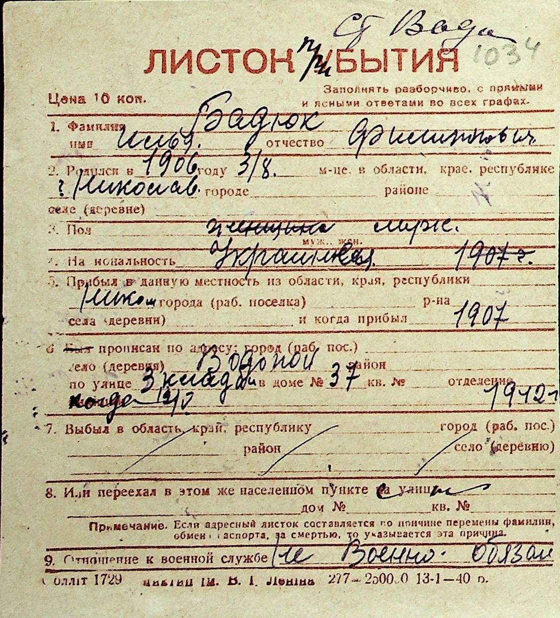◦ ◦ Перелік карток на осіб, які мешкали у м. Миколаїв у період окупації 1941–1944 років