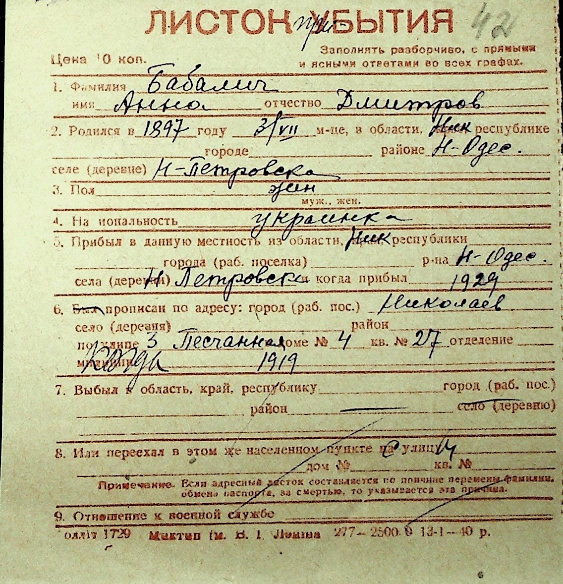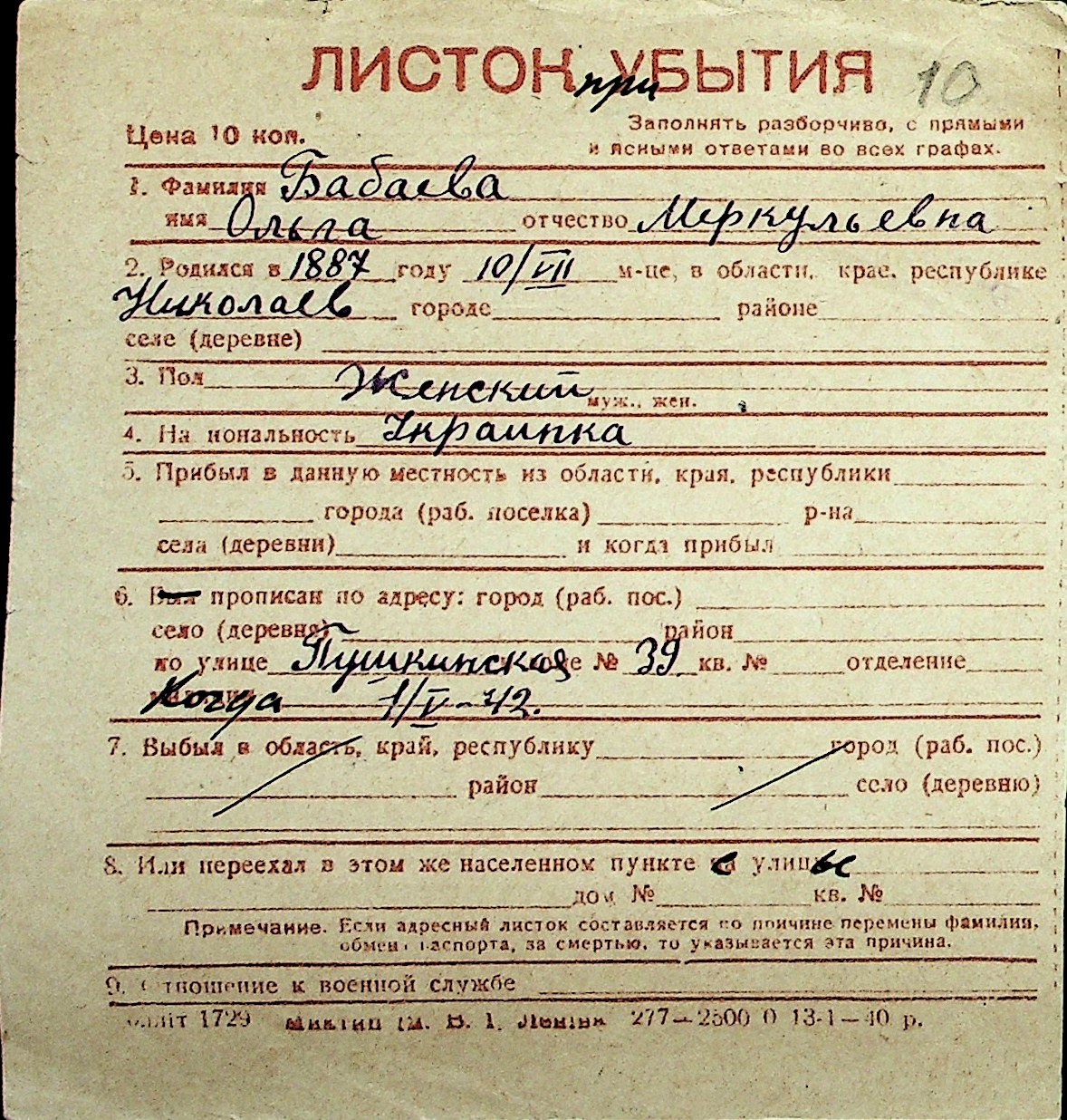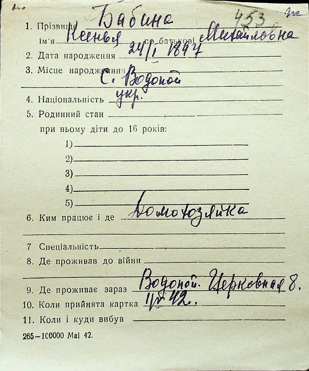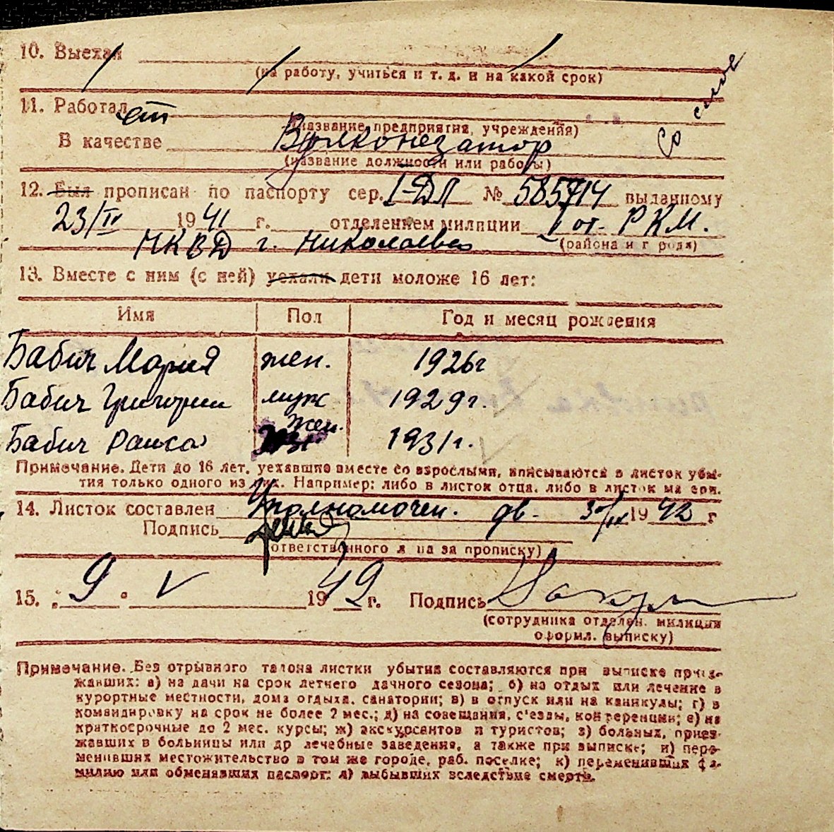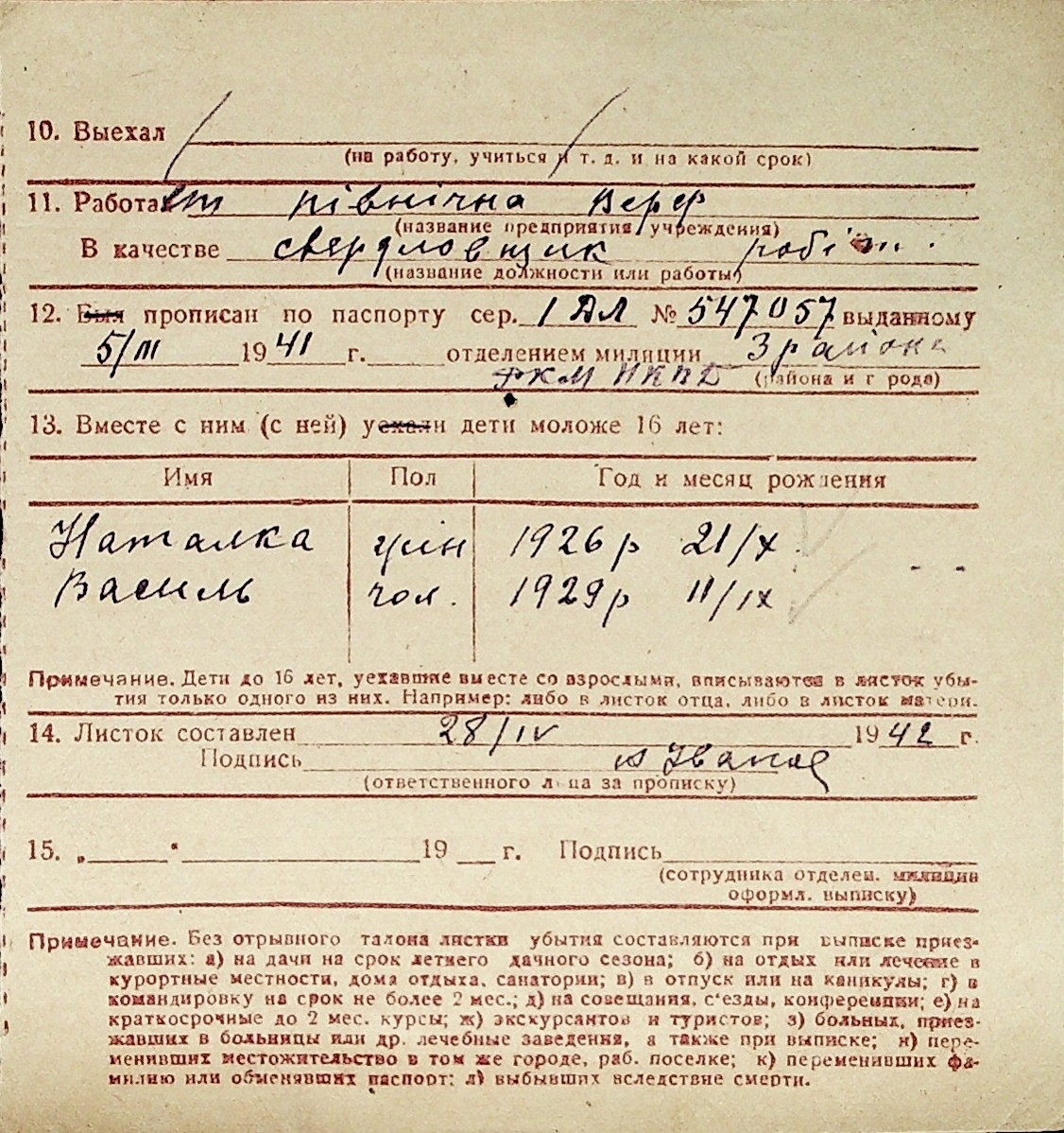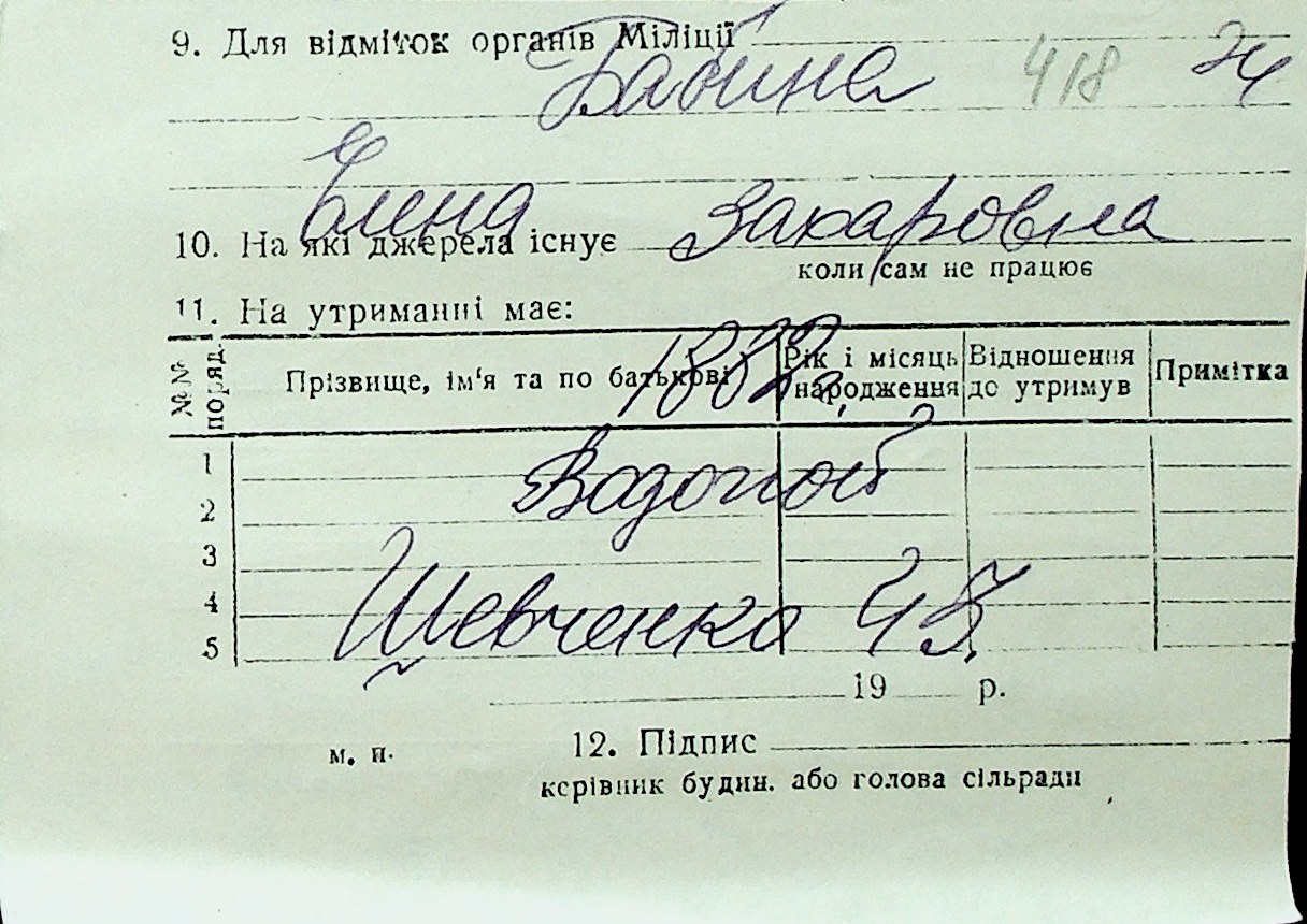 ◦ ◦ Перелік карток на осіб, які мешкали у м. Миколаїв у період окупації 1941–1944 років
