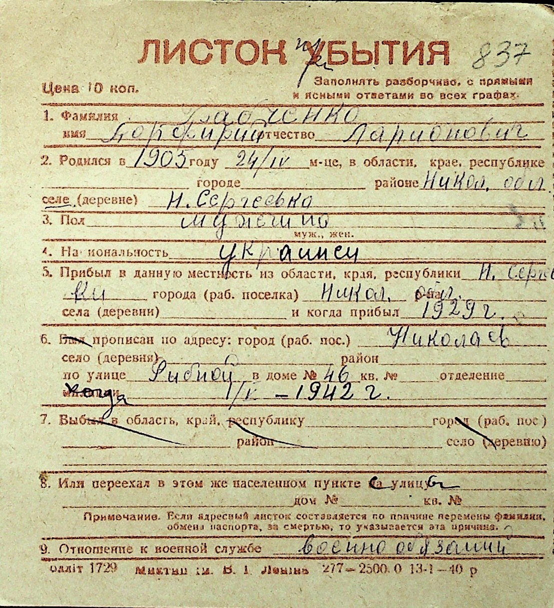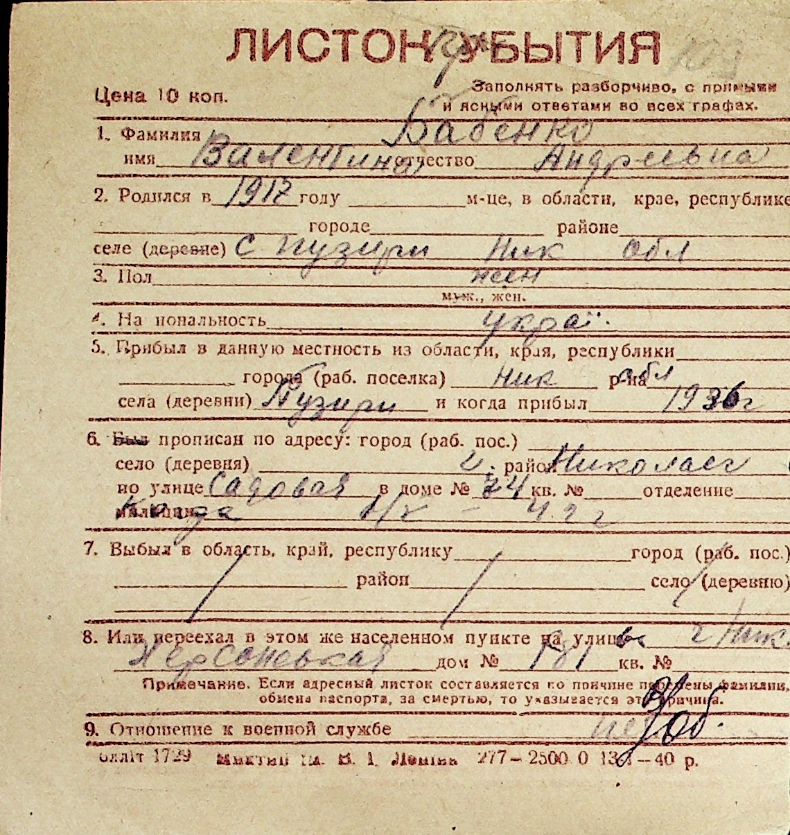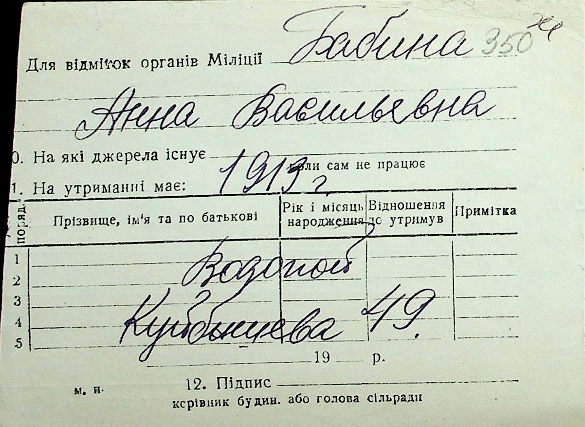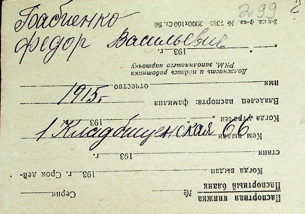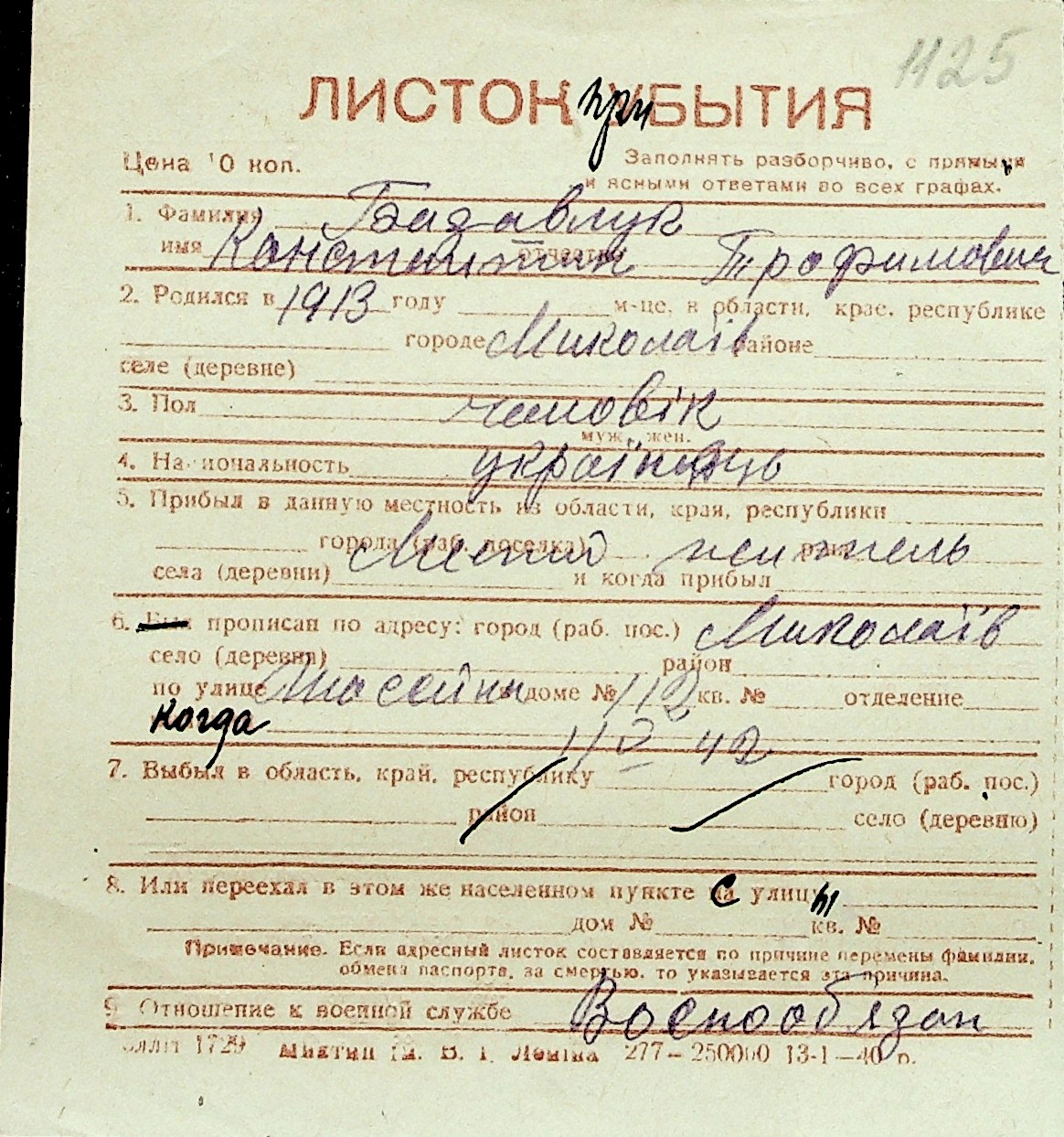 ◦ ◦ Перелік карток на осіб, які мешкали у м. Миколаїв у період окупації 1941–1944 років