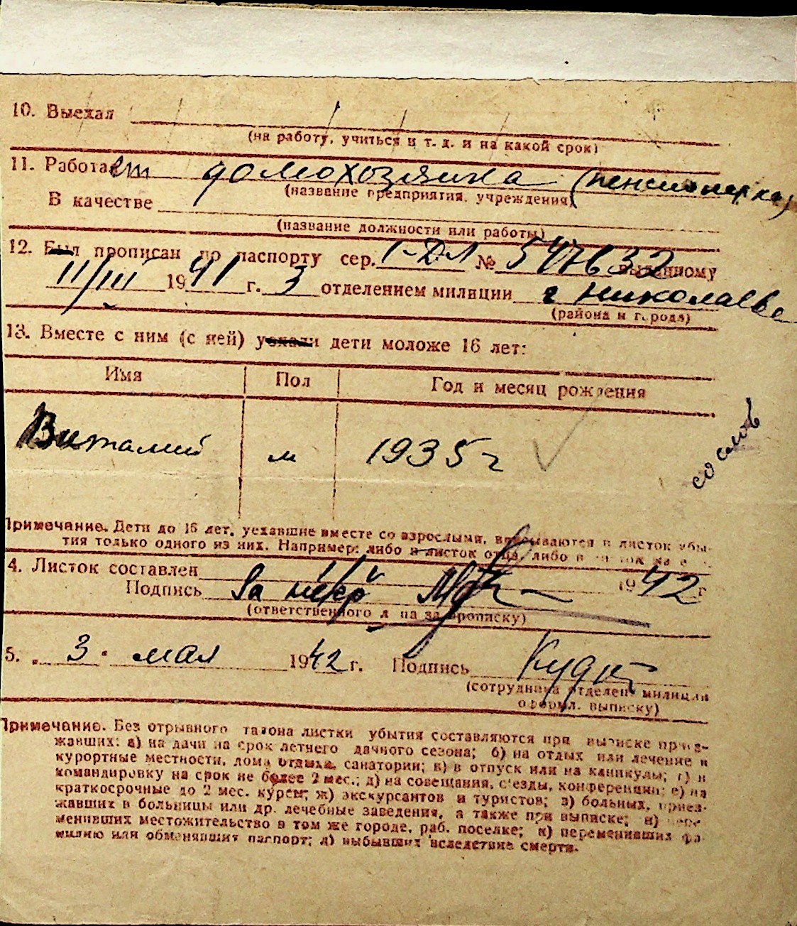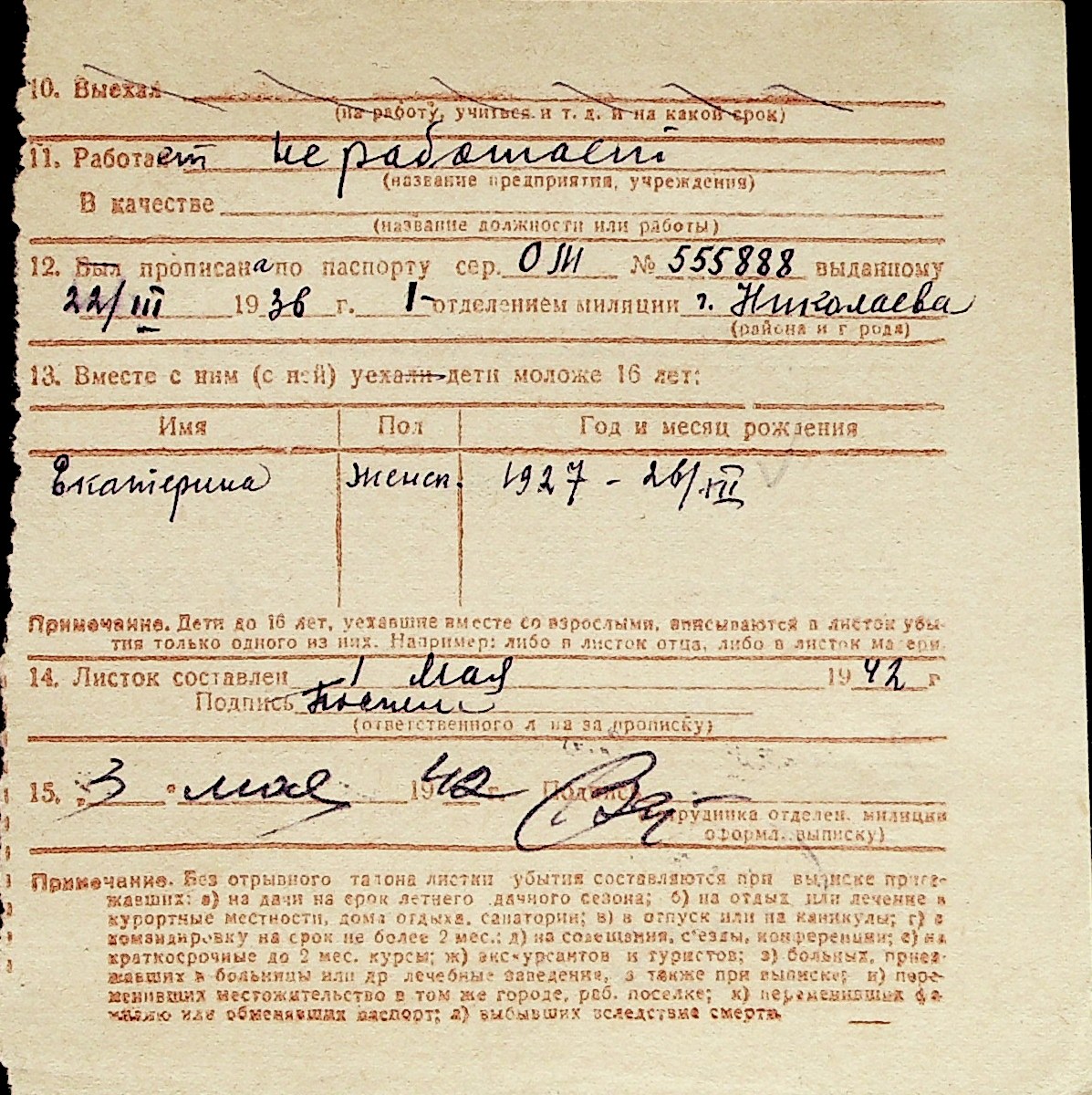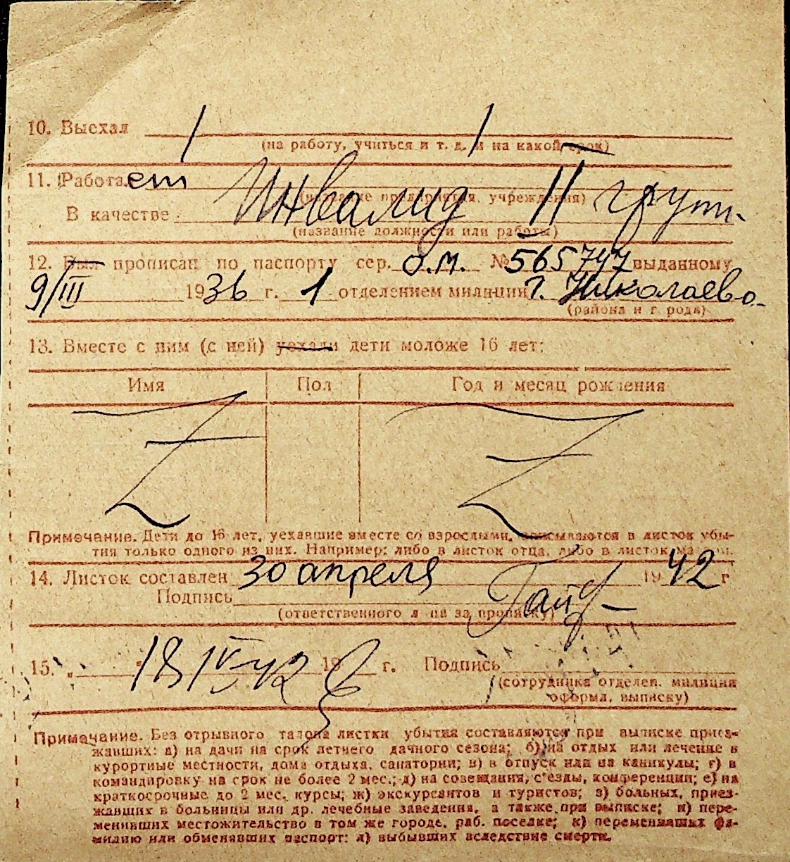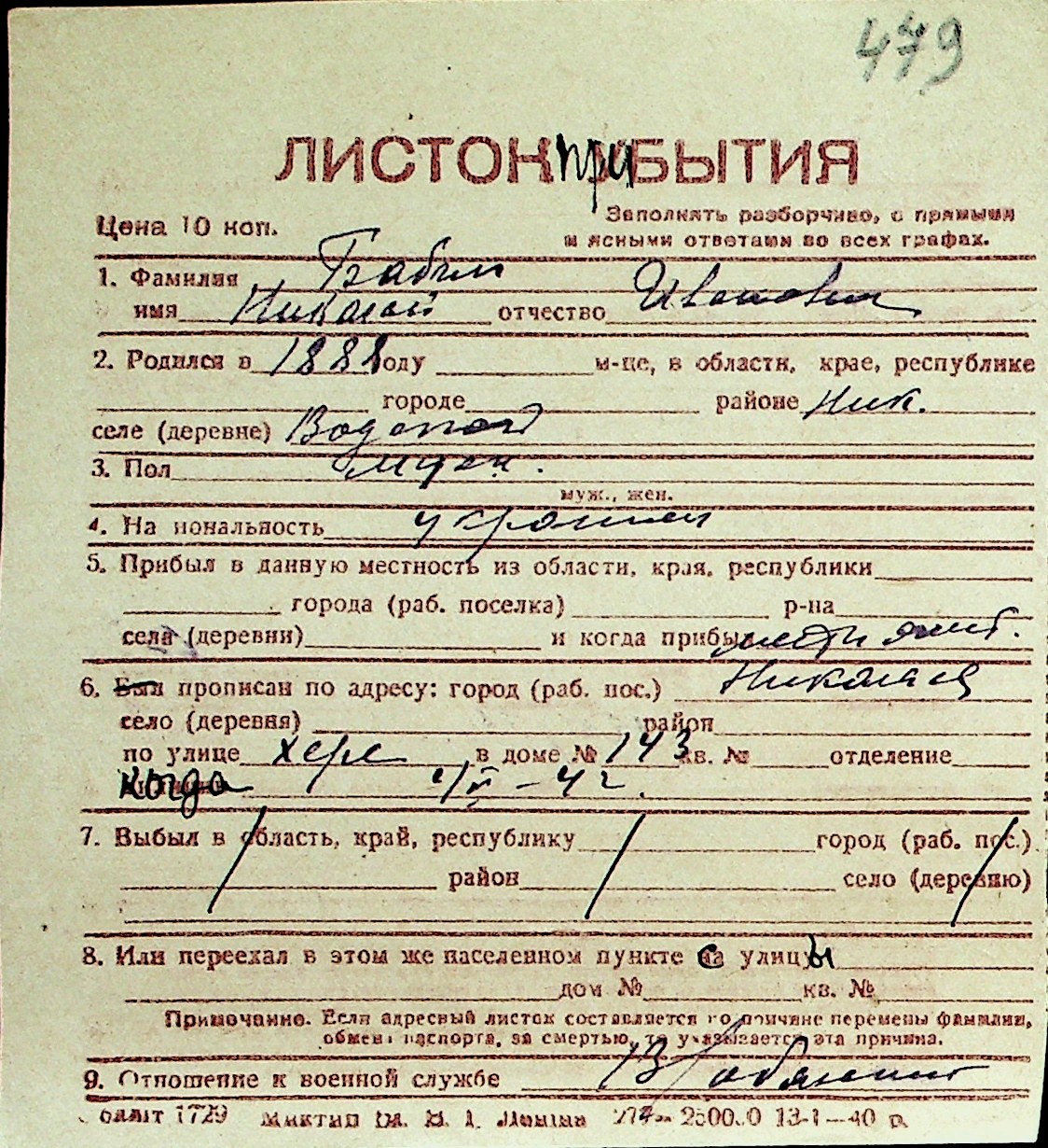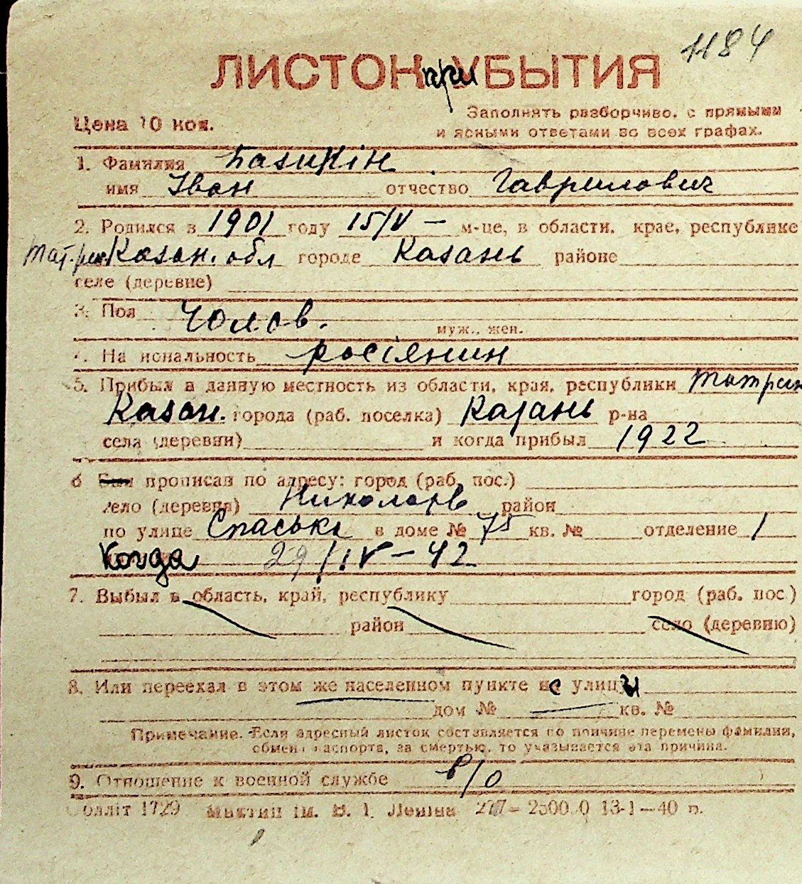 ◦ ◦ Перелік карток на осіб, які мешкали у м. Миколаїв у період окупації 1941–1944 років